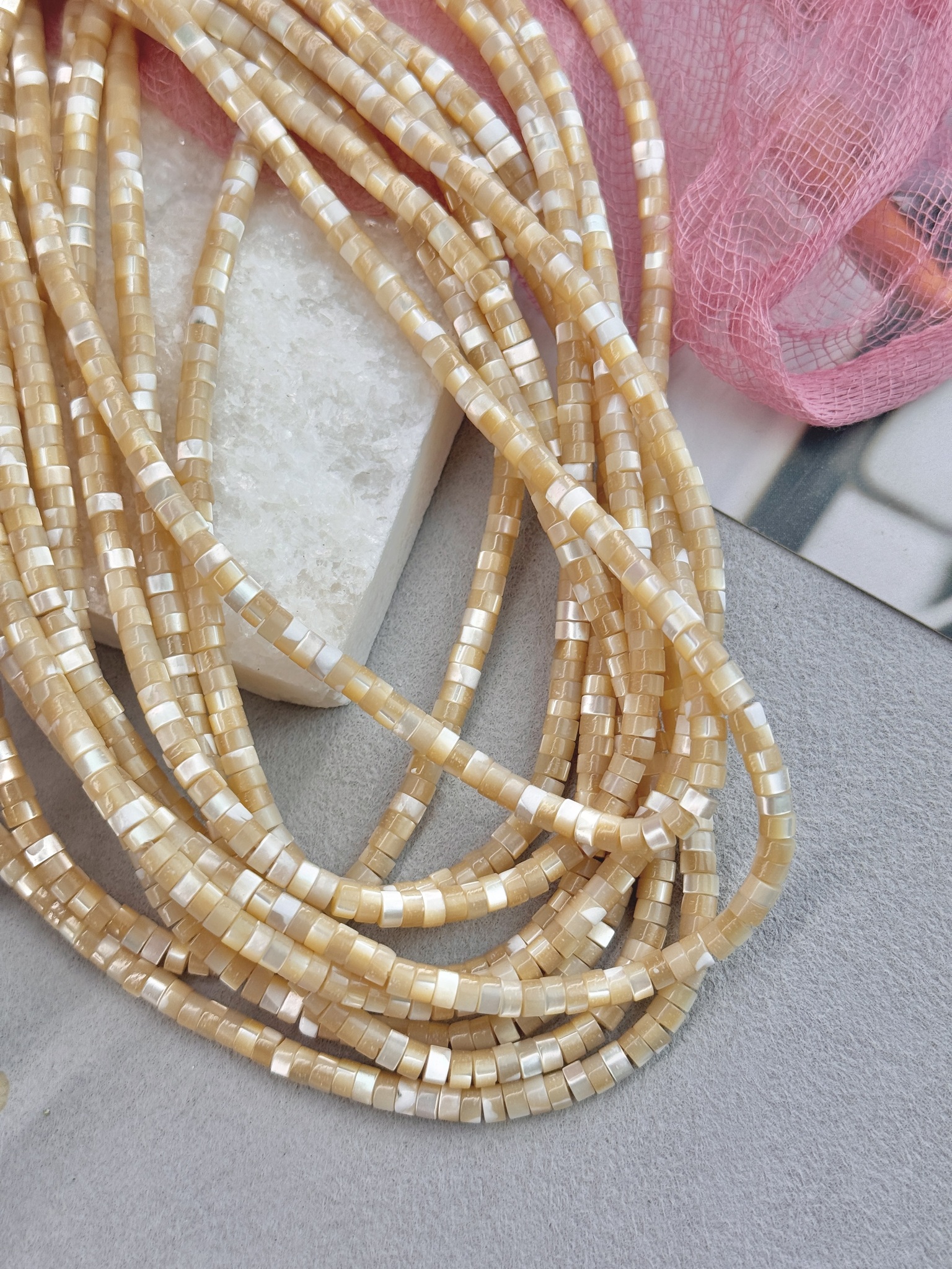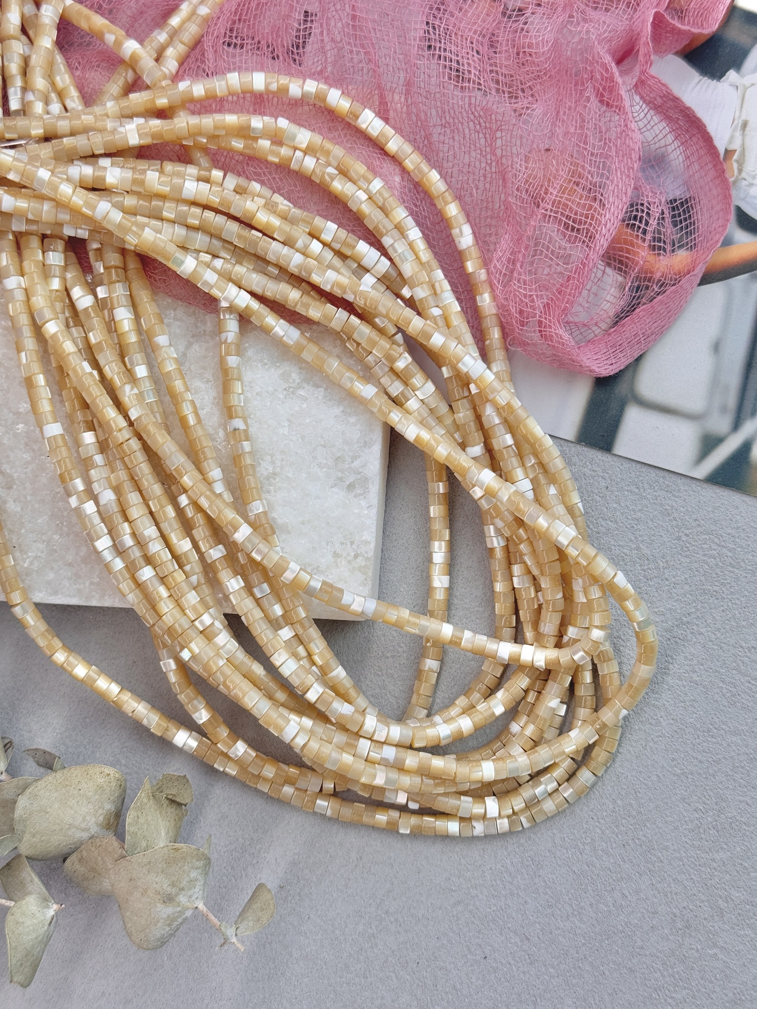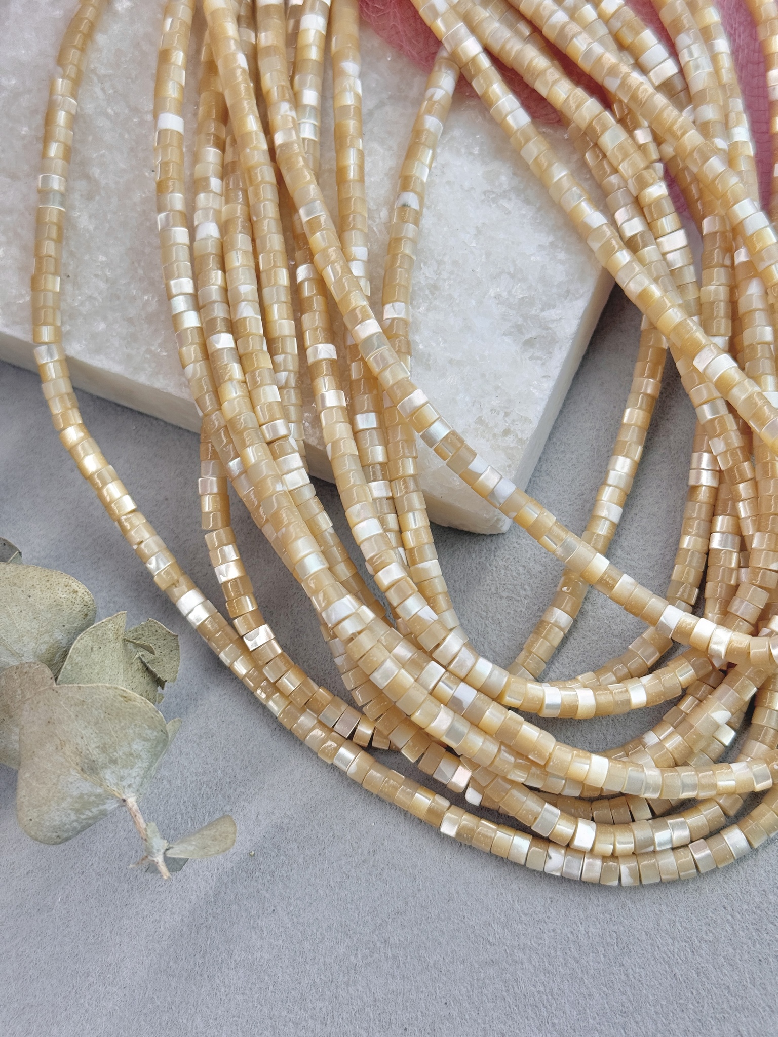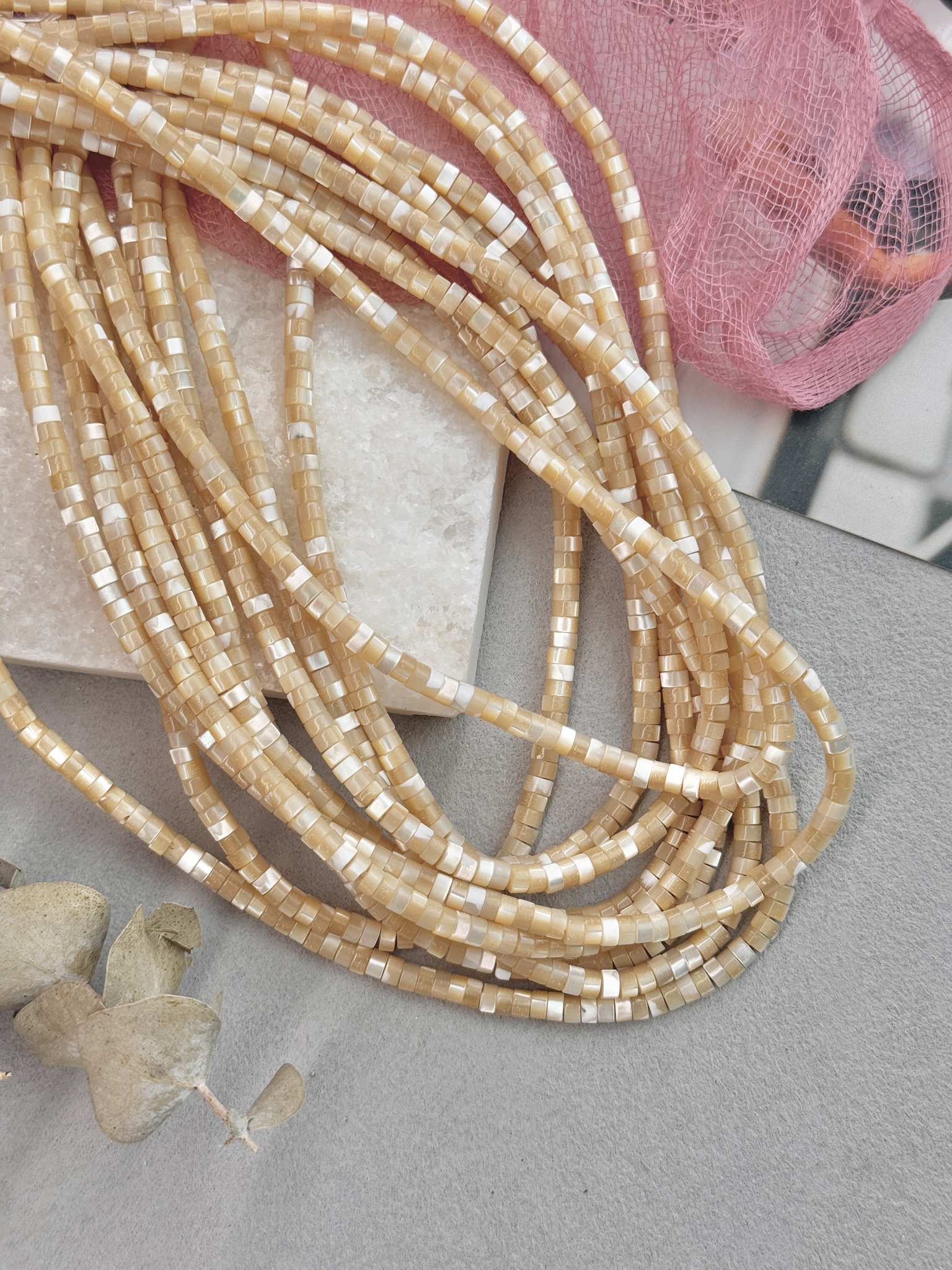 Бусины из натурального перламутра в форме диска. Идеальный материал для сборки украшений ручной работы: бусины не выцветают, гипоаллергенны, долговечны. Продаются нитью 40 см ( может отличаться на несколько сантиметров в зависимости от партии). Размер бусин 4*2 мм (могут отличаться друг от друга на несколько мм).