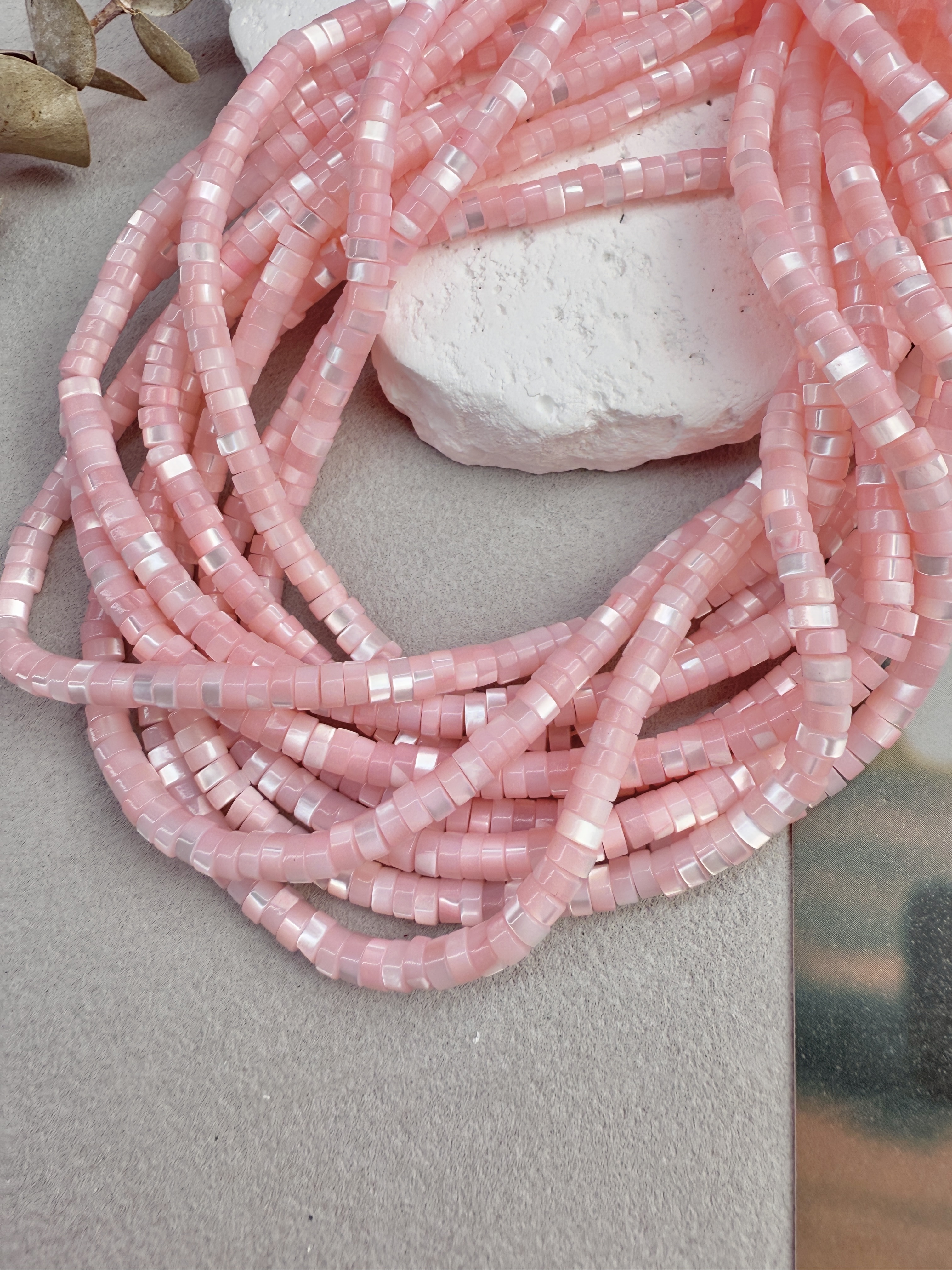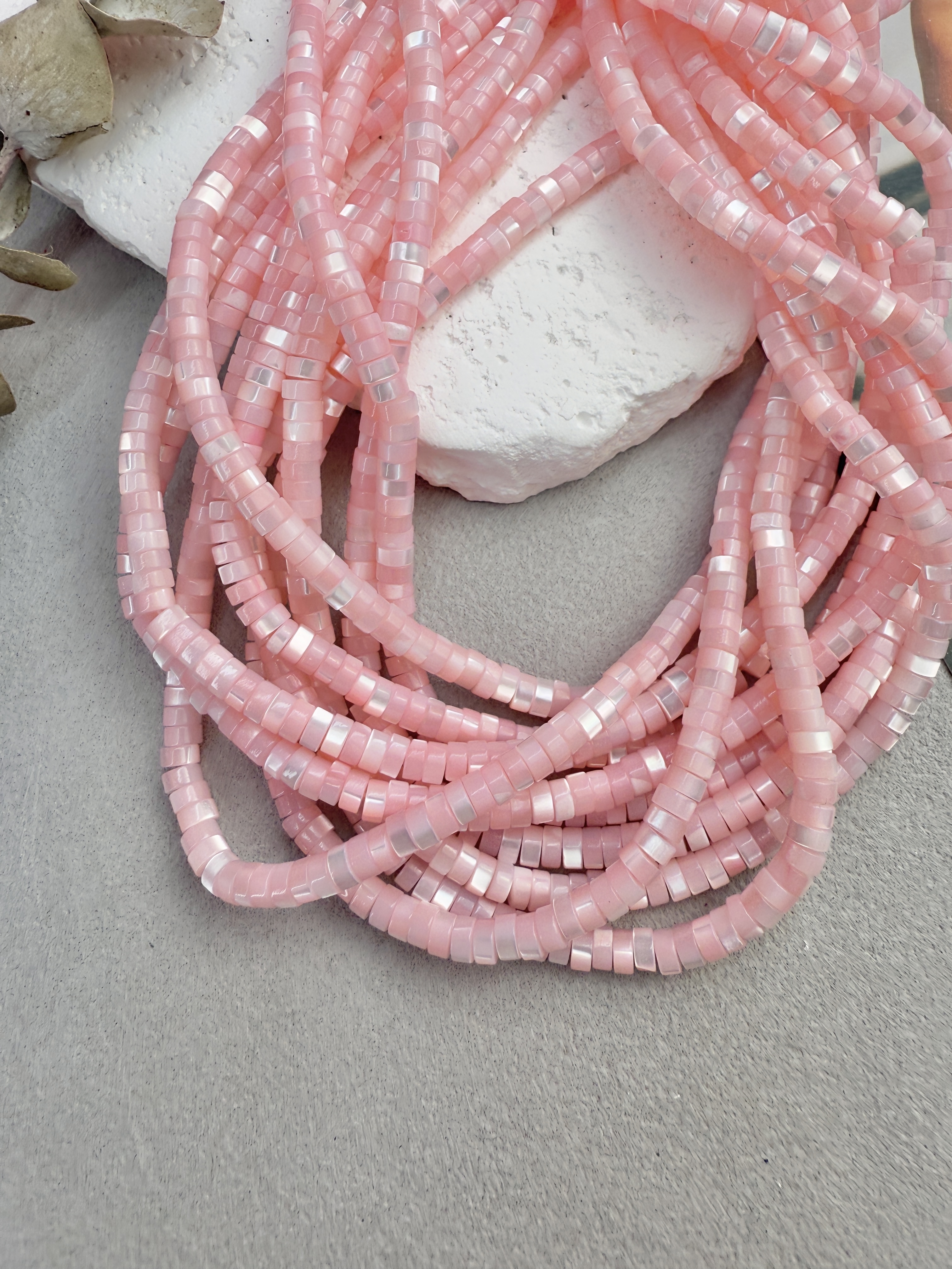 Бусины из натурального перламутра в форме диска. Идеальный материал для сборки украшений ручной работы: бусины не выцветают, гипоаллергенны, долговечны. Продаются нитью 40 см ( может отличаться на несколько сантиметров в зависимости от партии). Размер бусин 4*2 мм (могут отличаться друг от друга на несколько мм).