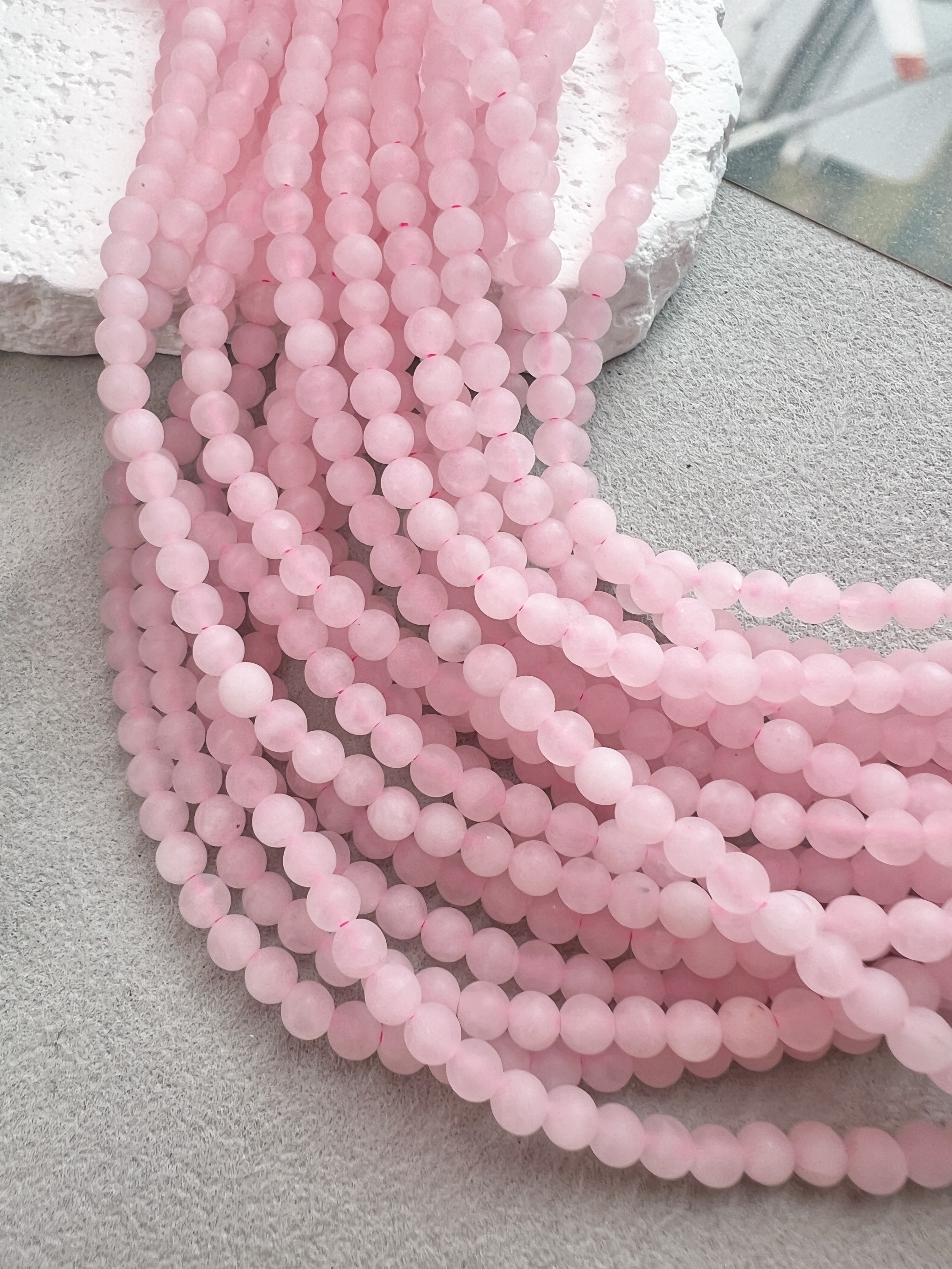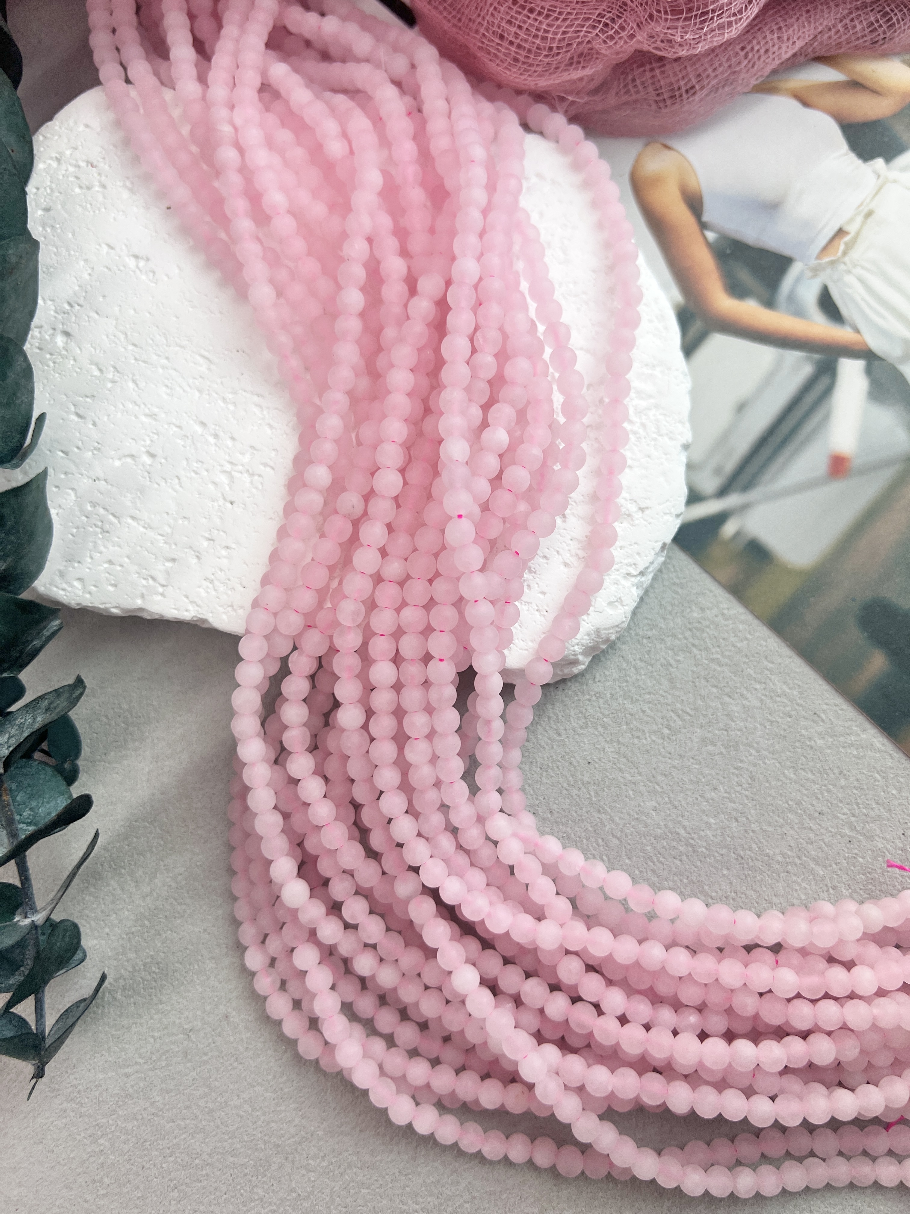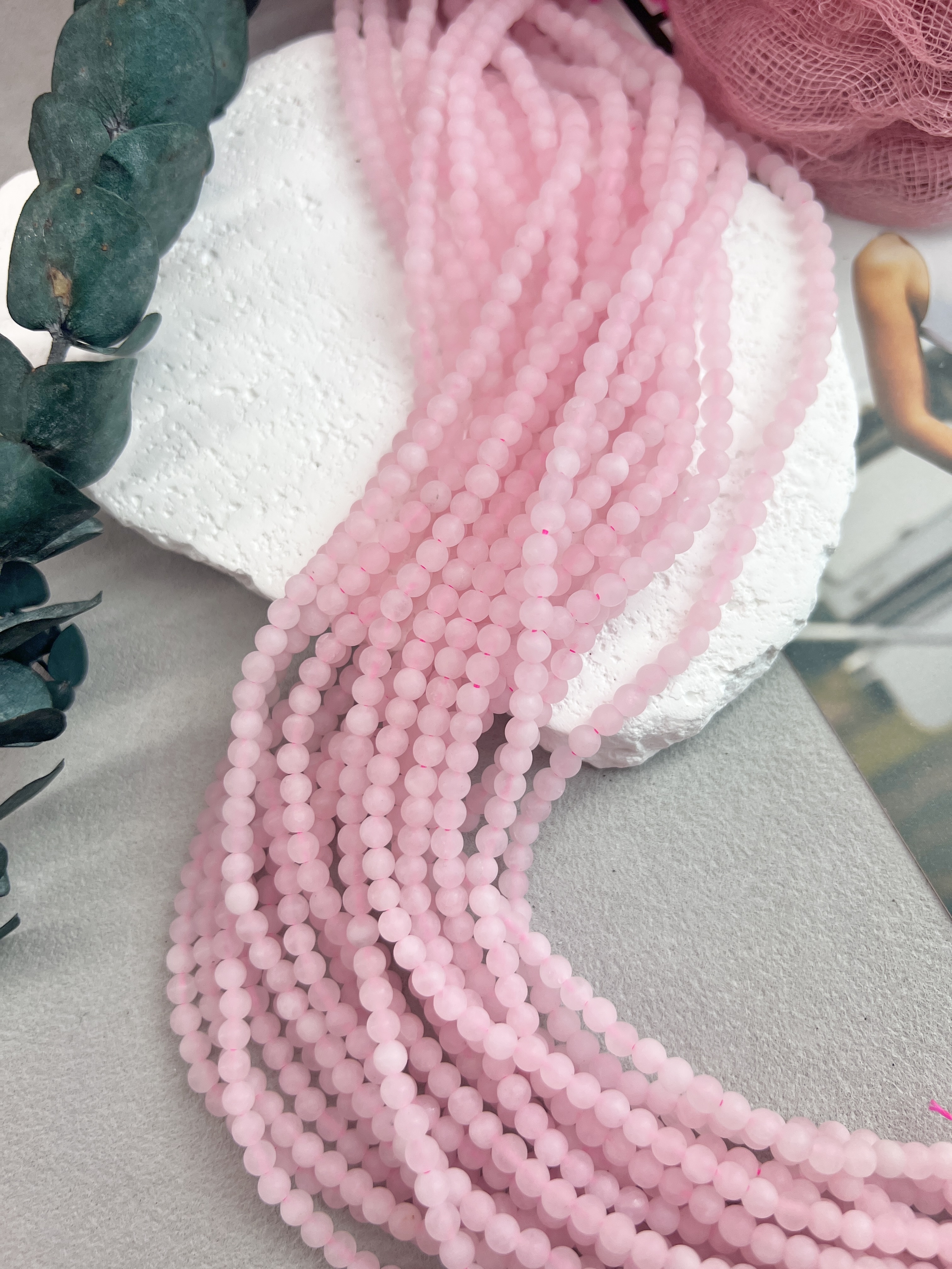 Натуральный розовый кварц в форме шара 4 мм. Обладает красивой матовой поверхностью. Идеальный материал для создания украшений ручной работы: не выцветают, не вызывают аллергии. Возможны неоднородности в цвете или огранке. Длина нити около 38 см (возможны отличия в пару см из-за разных партий). Цвет: нежно-розовый.