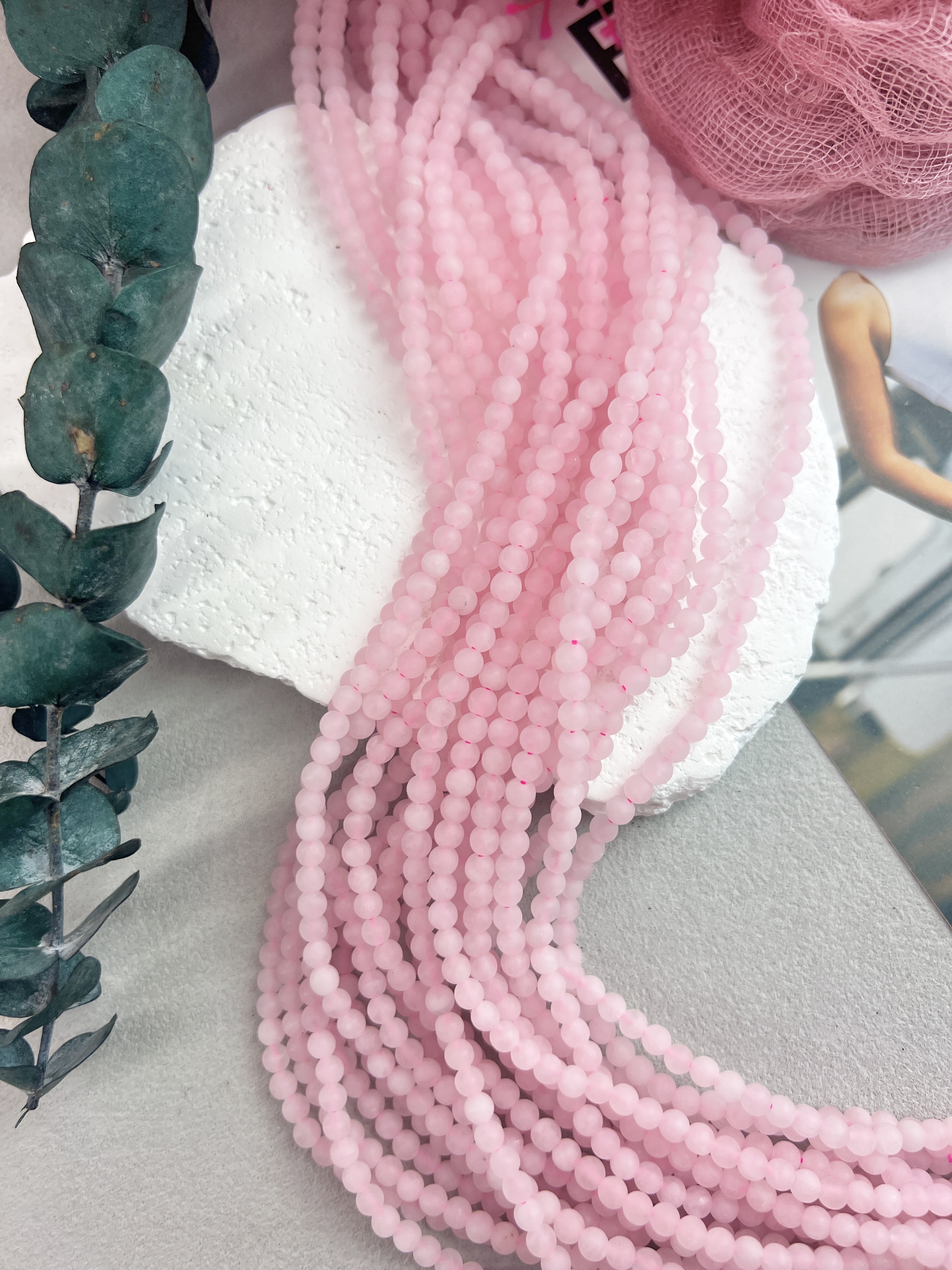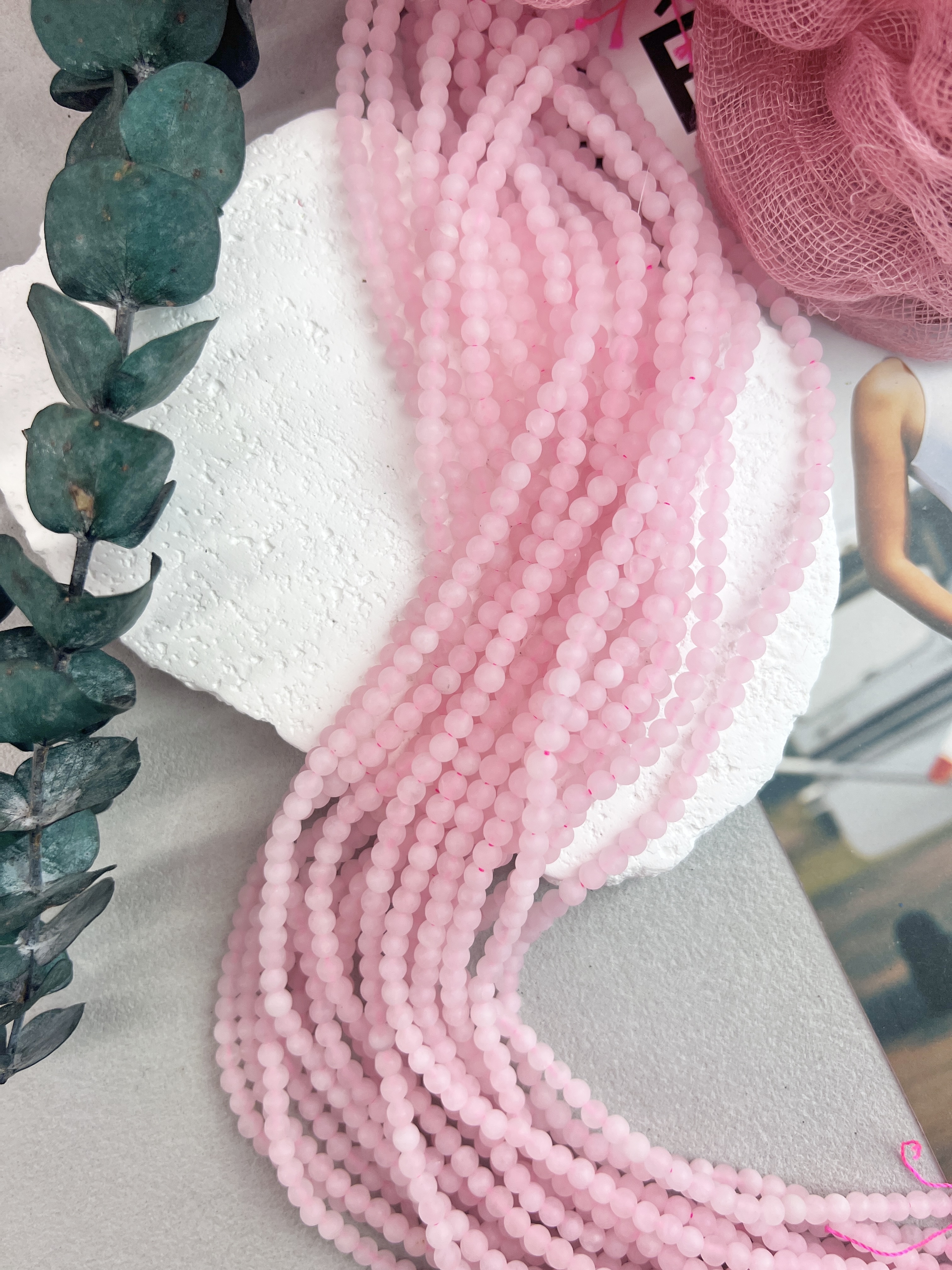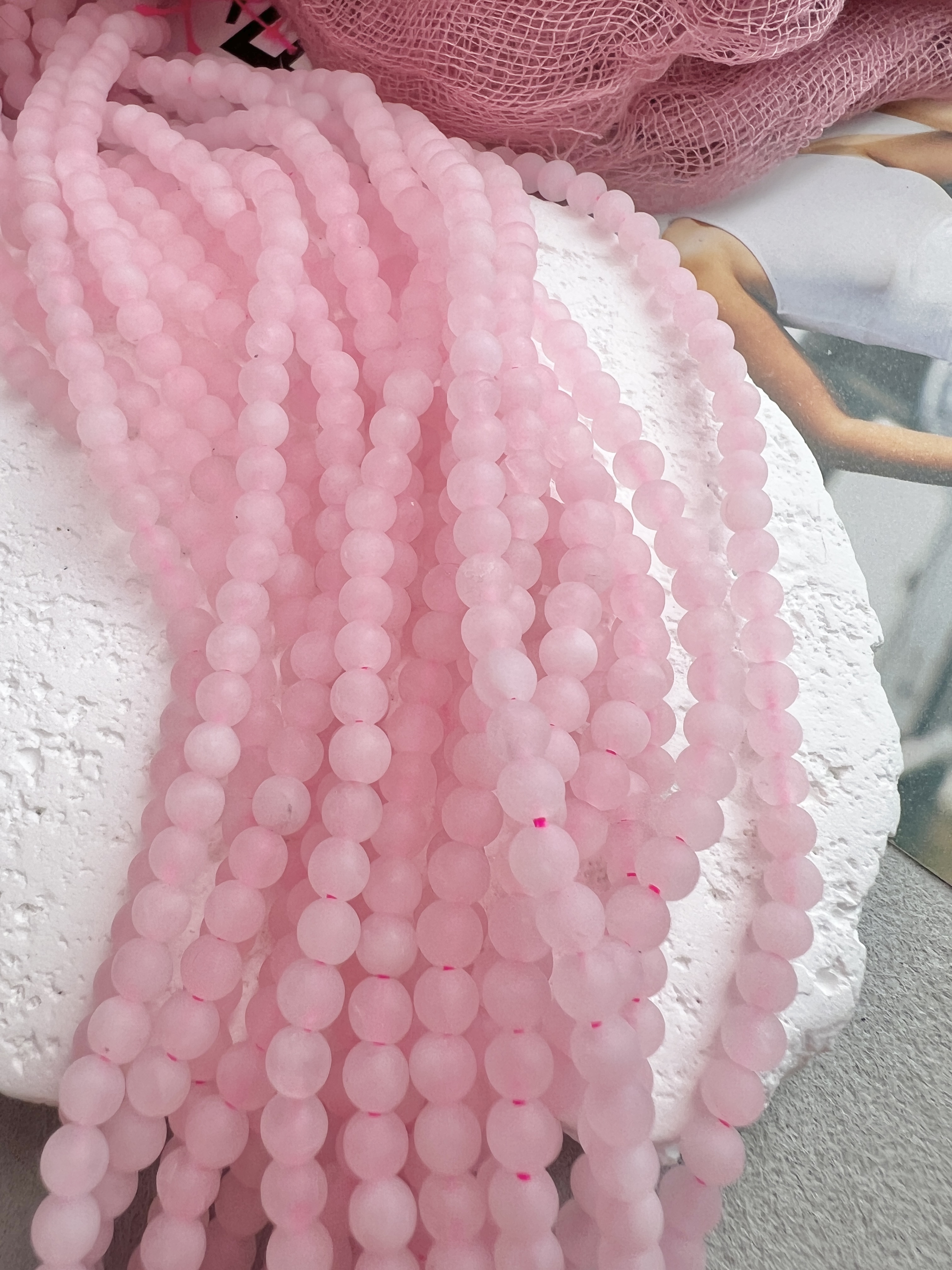 Натуральный розовый кварц в форме шара 4 мм. Обладает красивой матовой поверхностью. Идеальный материал для создания украшений ручной работы: не выцветают, не вызывают аллергии. Возможны неоднородности в цвете или огранке. Длина нити около 38 см (возможны отличия в пару см из-за разных партий). Цвет: нежно-розовый.