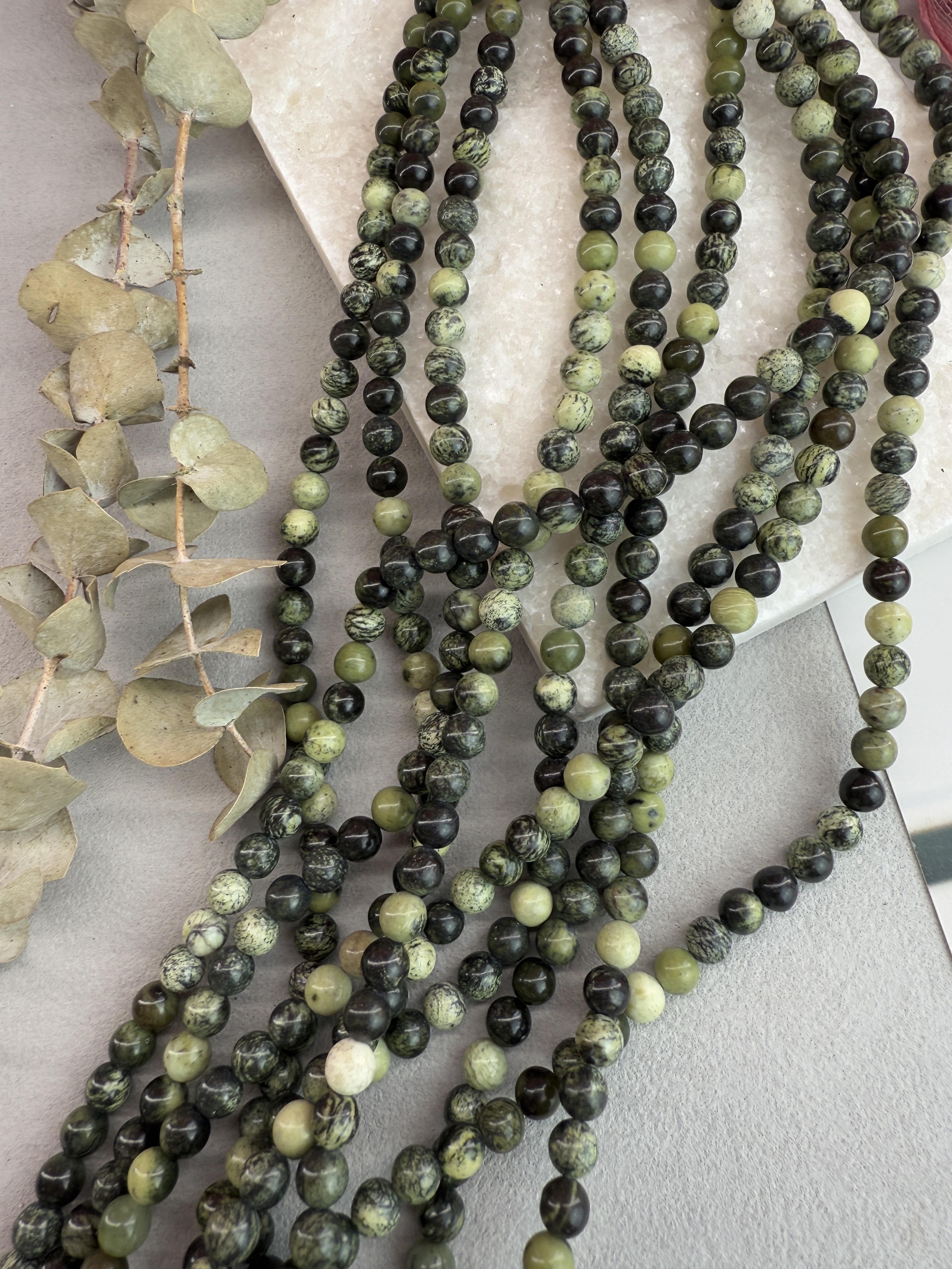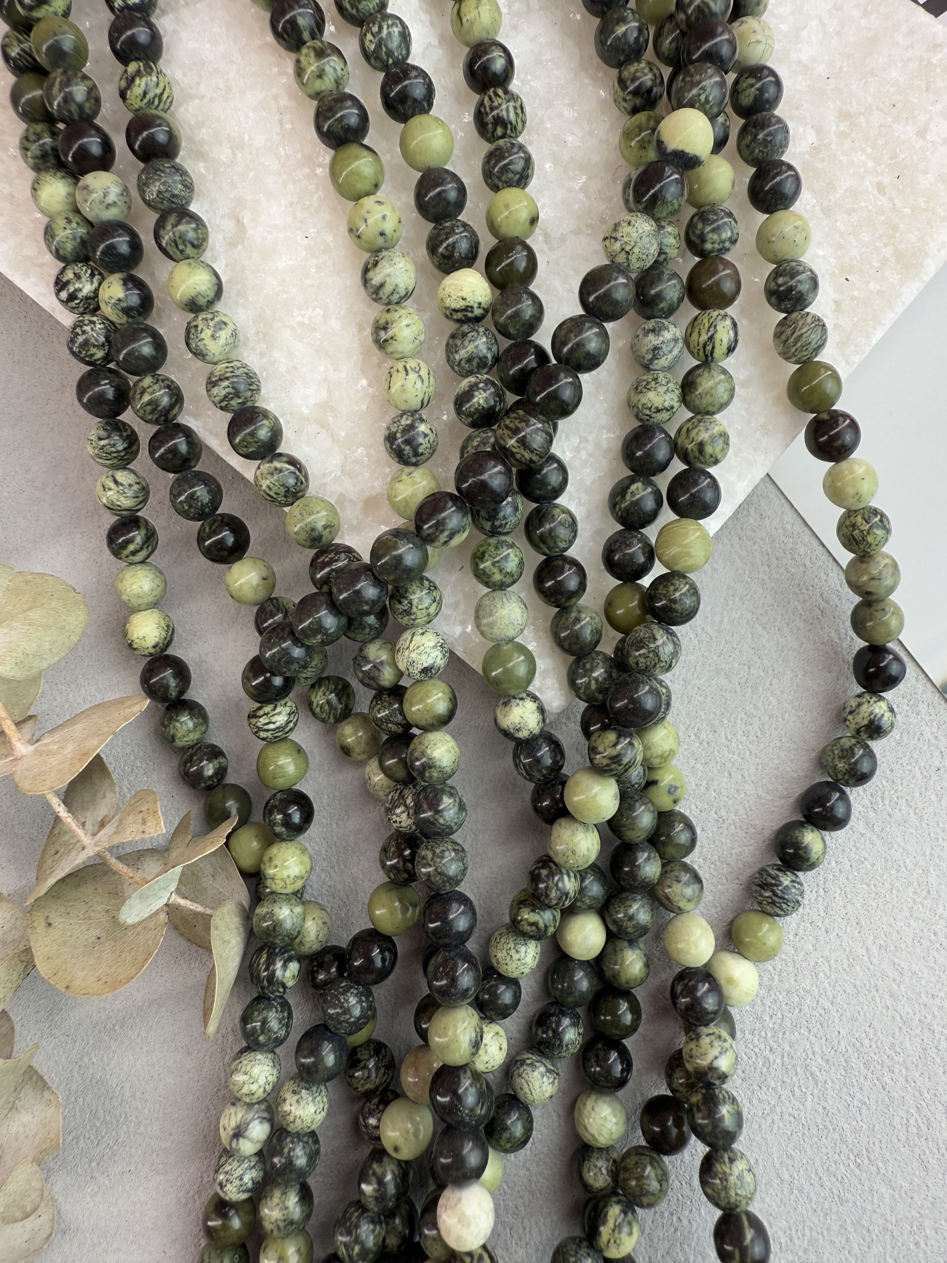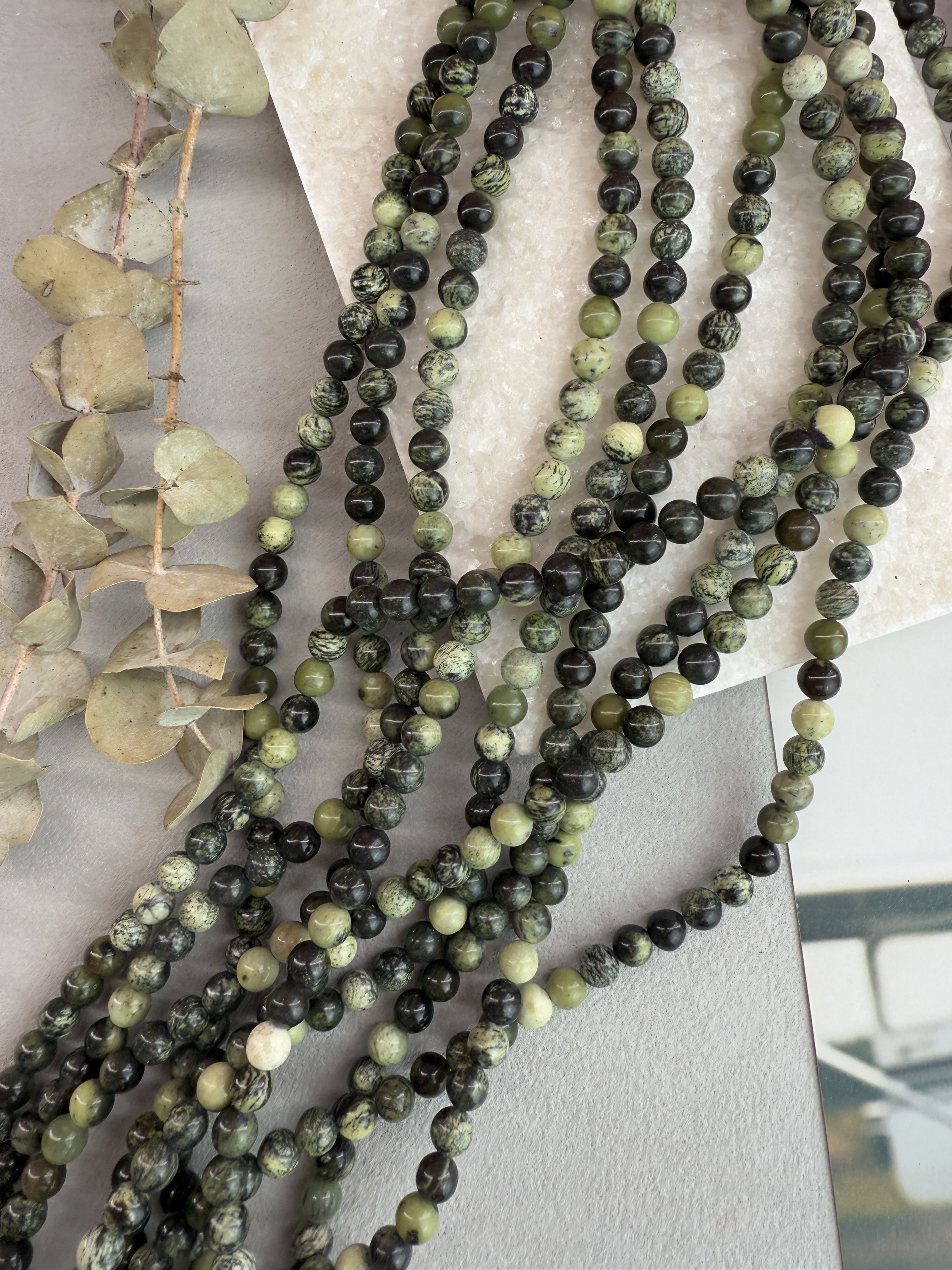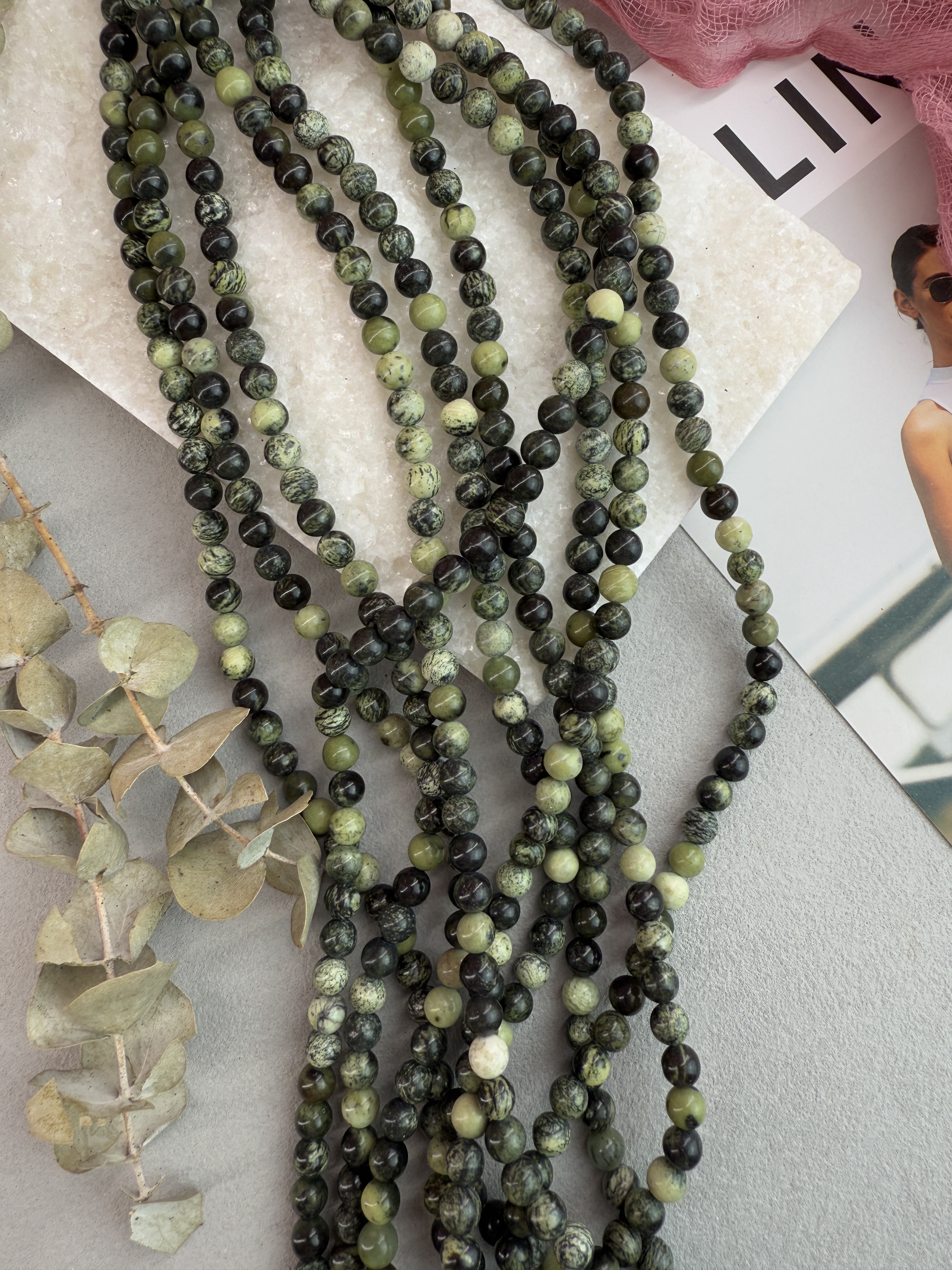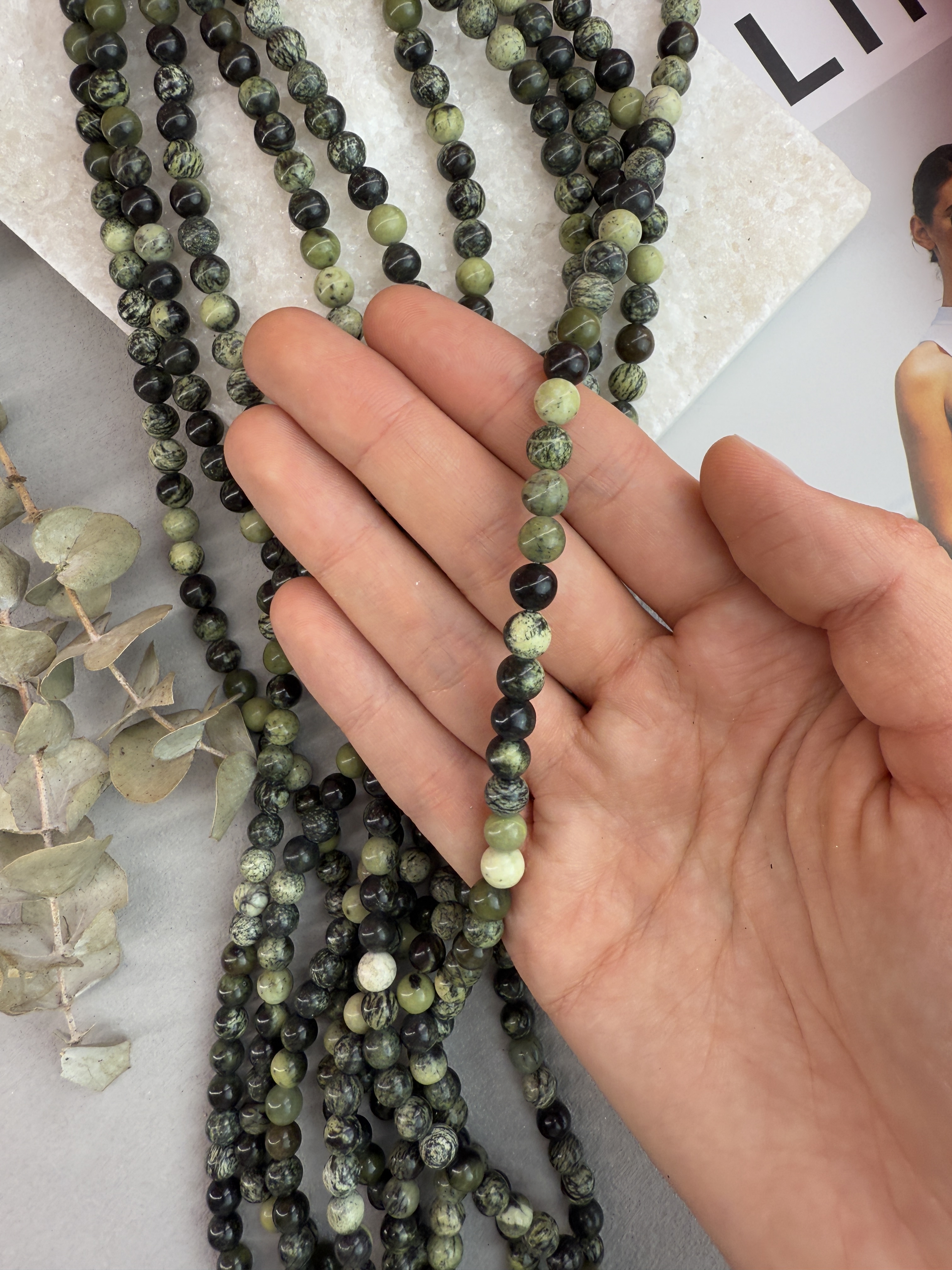 Бусины из натурального змеевика формы шар и размера 6 мм - идеальный материал для сборки украшений ручной работы: бусины не выцветают, гипоаллергенны, долговечны. Продаются нитью 37 см (может отличаться на несколько сантиметров в зависимости от партии).