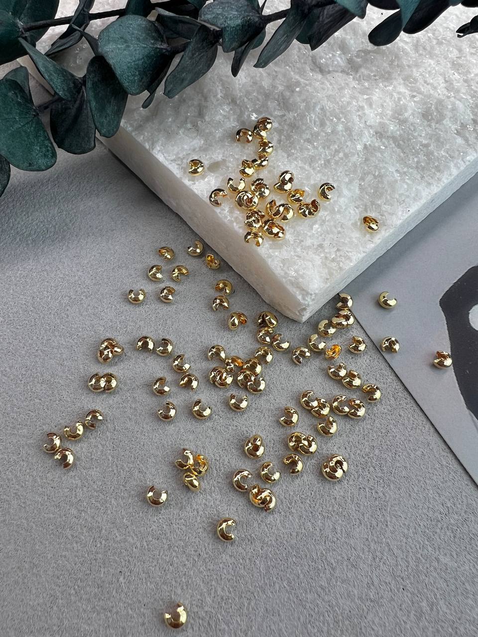 Обжимные (покрывные) бусины для маскировки узлов и кримпов. Для использования зажмите бусину по кругу на нужном участке при помощи круглогубцев с силиконовыми наконечниками. При повреждении покрытия обычными инструментами возможно преждевременное потемнение изделия.