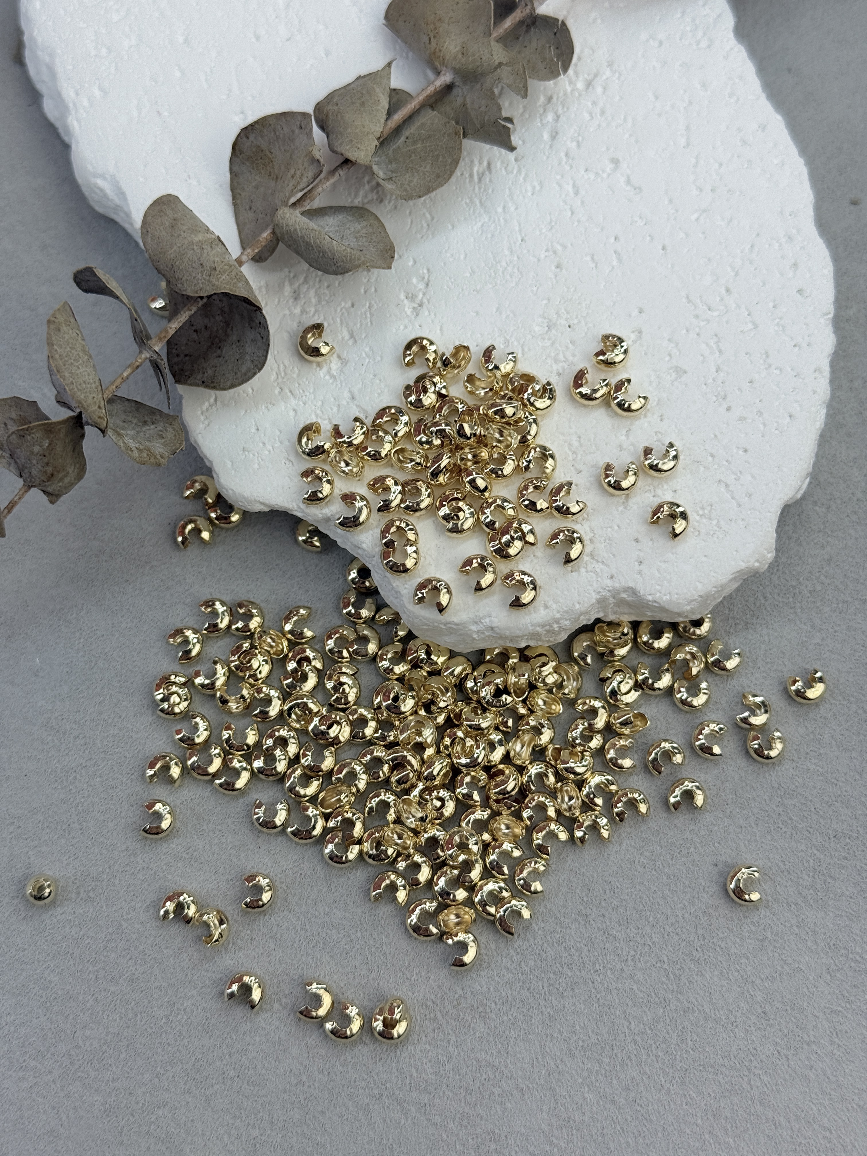 Обжимные бусины чтобы аккуратно спрятать кримп на ювелирном тросике для сборки украшений ручной работы. При повреждении покрытия обычными инструментами возможно преждевременное потемнение изделия.