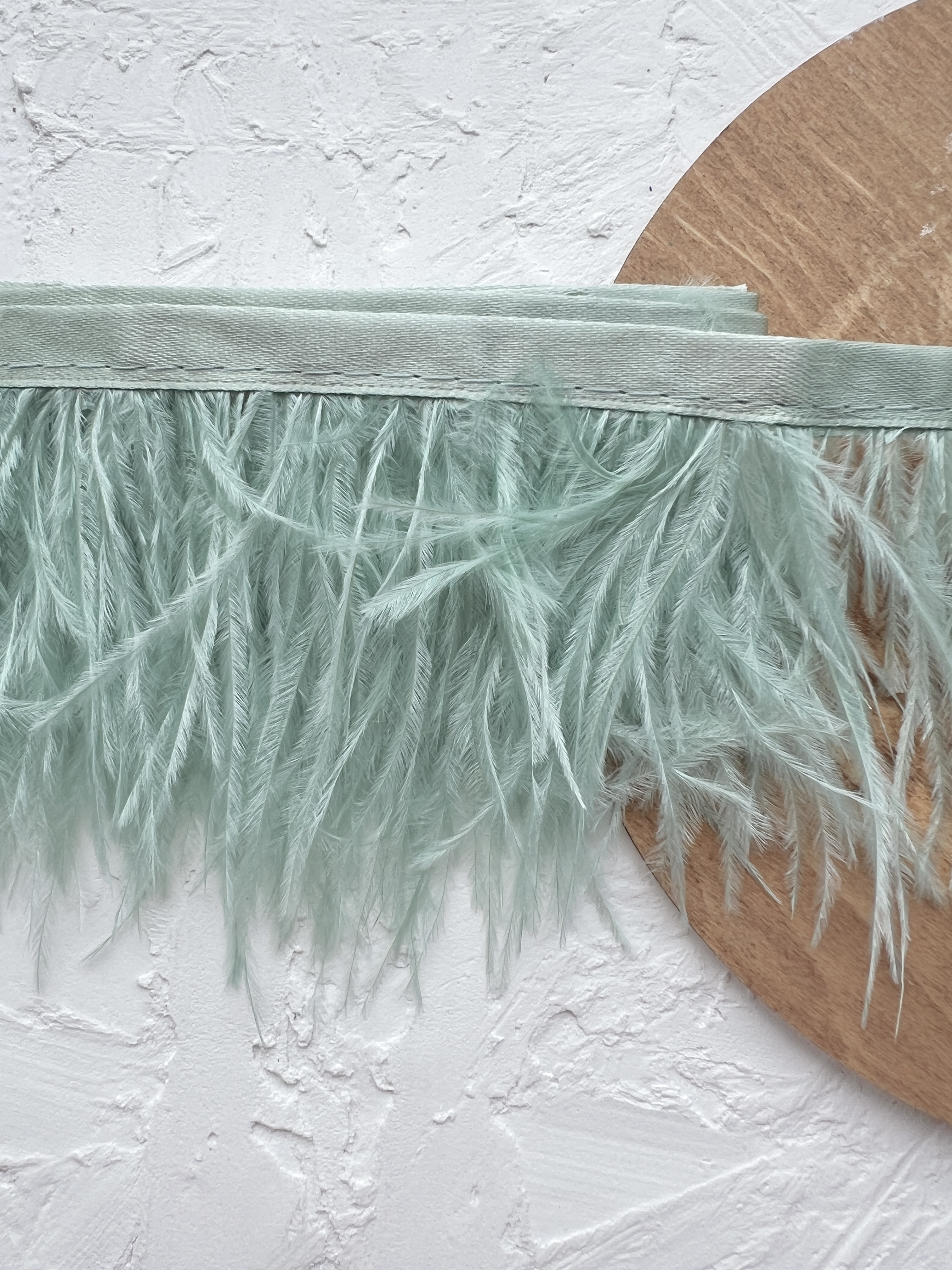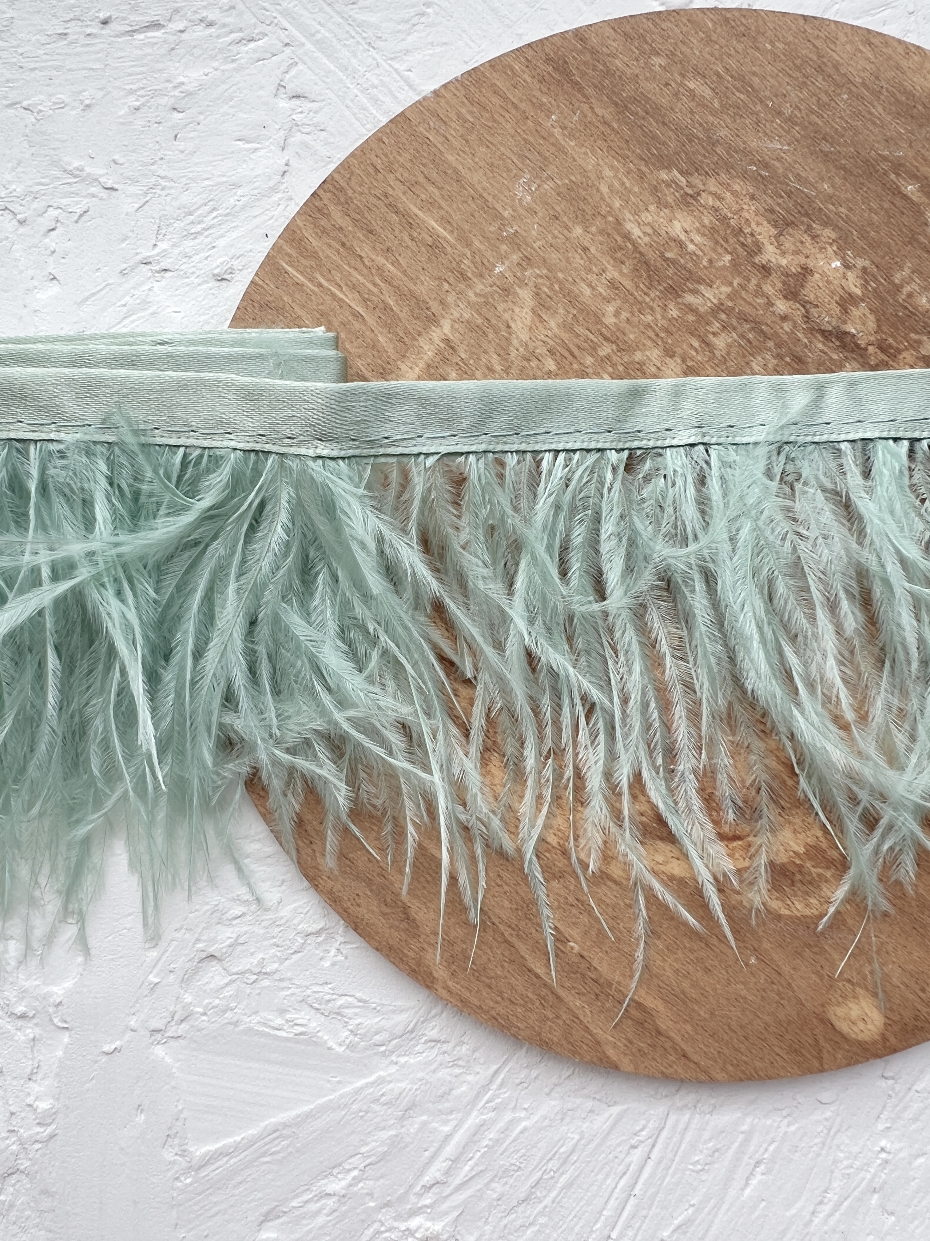 Натуральное, окрашенное перо страуса на ленте. Средняя длина 6-12 см (без учета тканевой тесьмы). Служат для декора, вышивки и создания украшений.