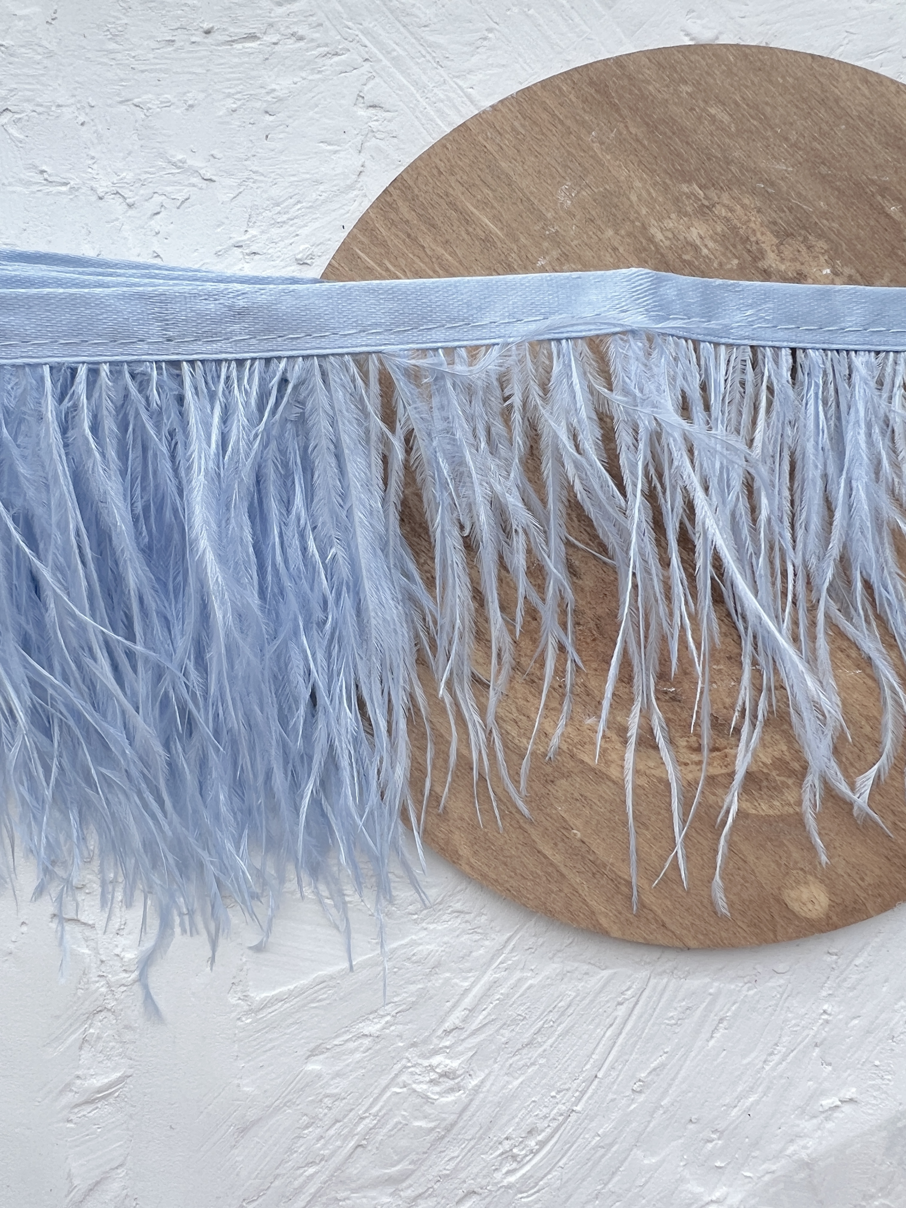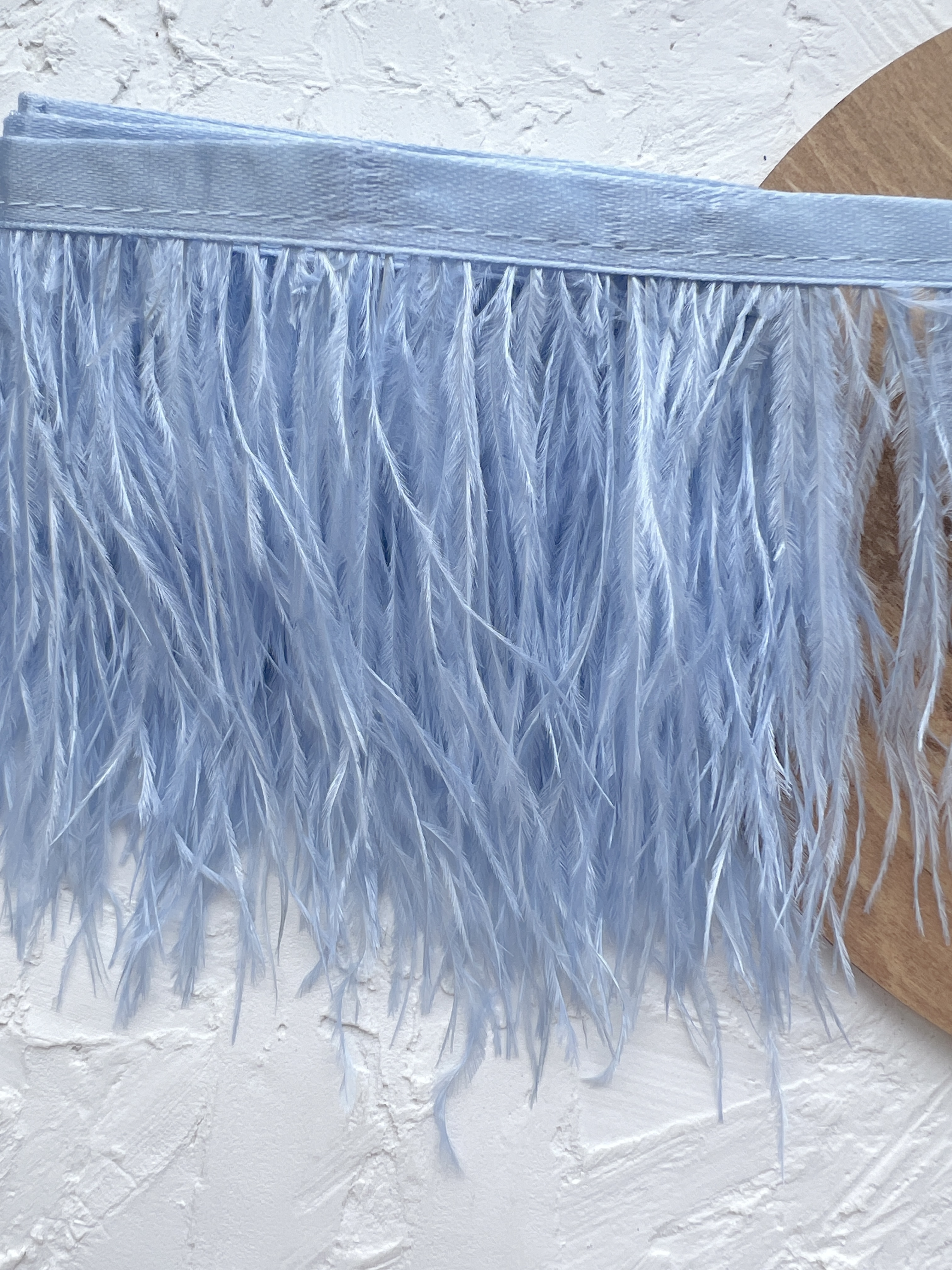 Натуральное, окрашенное перо страуса на ленте. Средняя длина 6-12 см (без учета тканевой тесьмы). Служат для декора, вышивки и создания украшений.