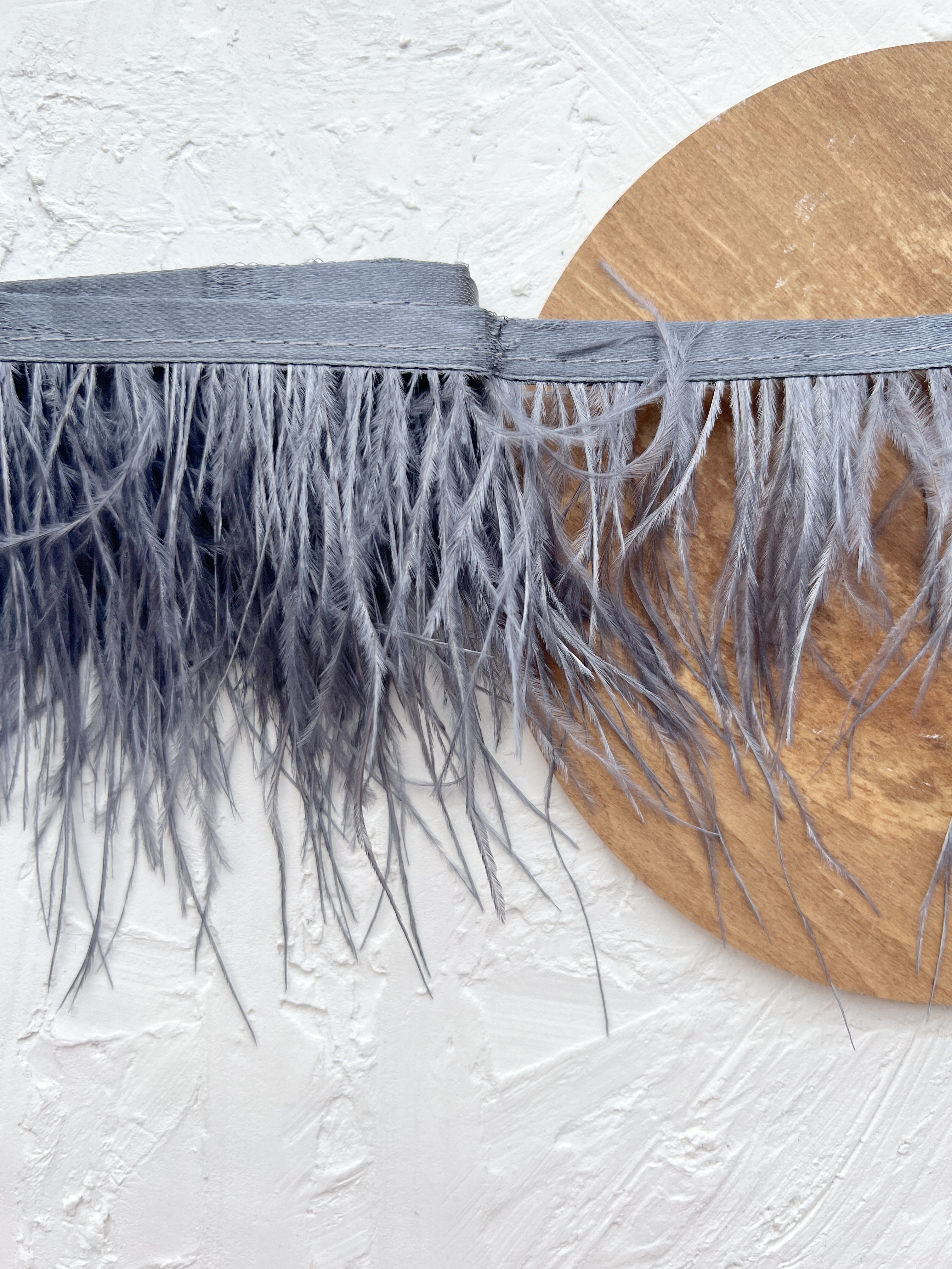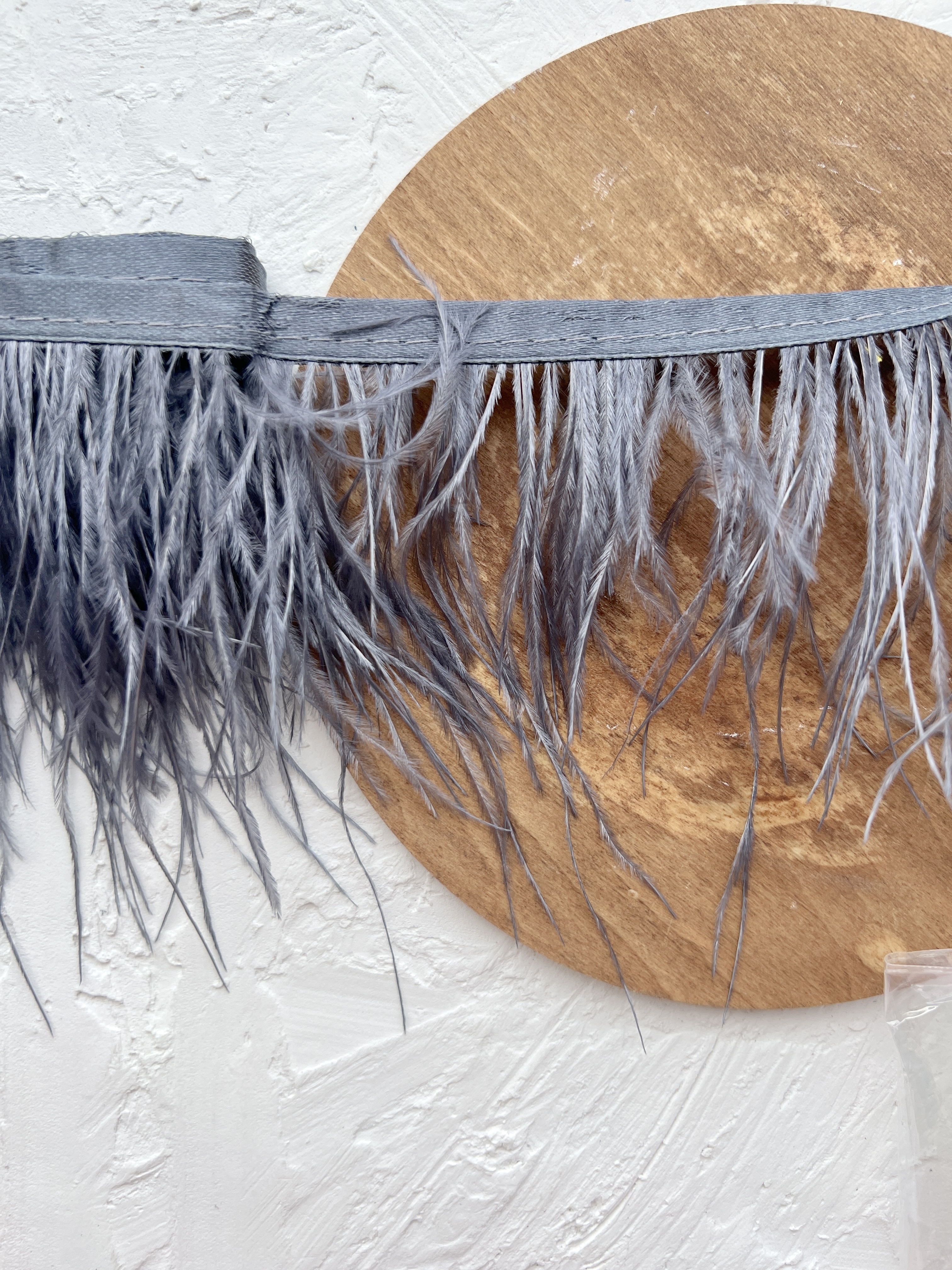 Натуральное, окрашенное перо страуса на ленте. Средняя длина 6-12 см (без учета тканевой тесьмы). Служат для декора, вышивки и создания украшений.
