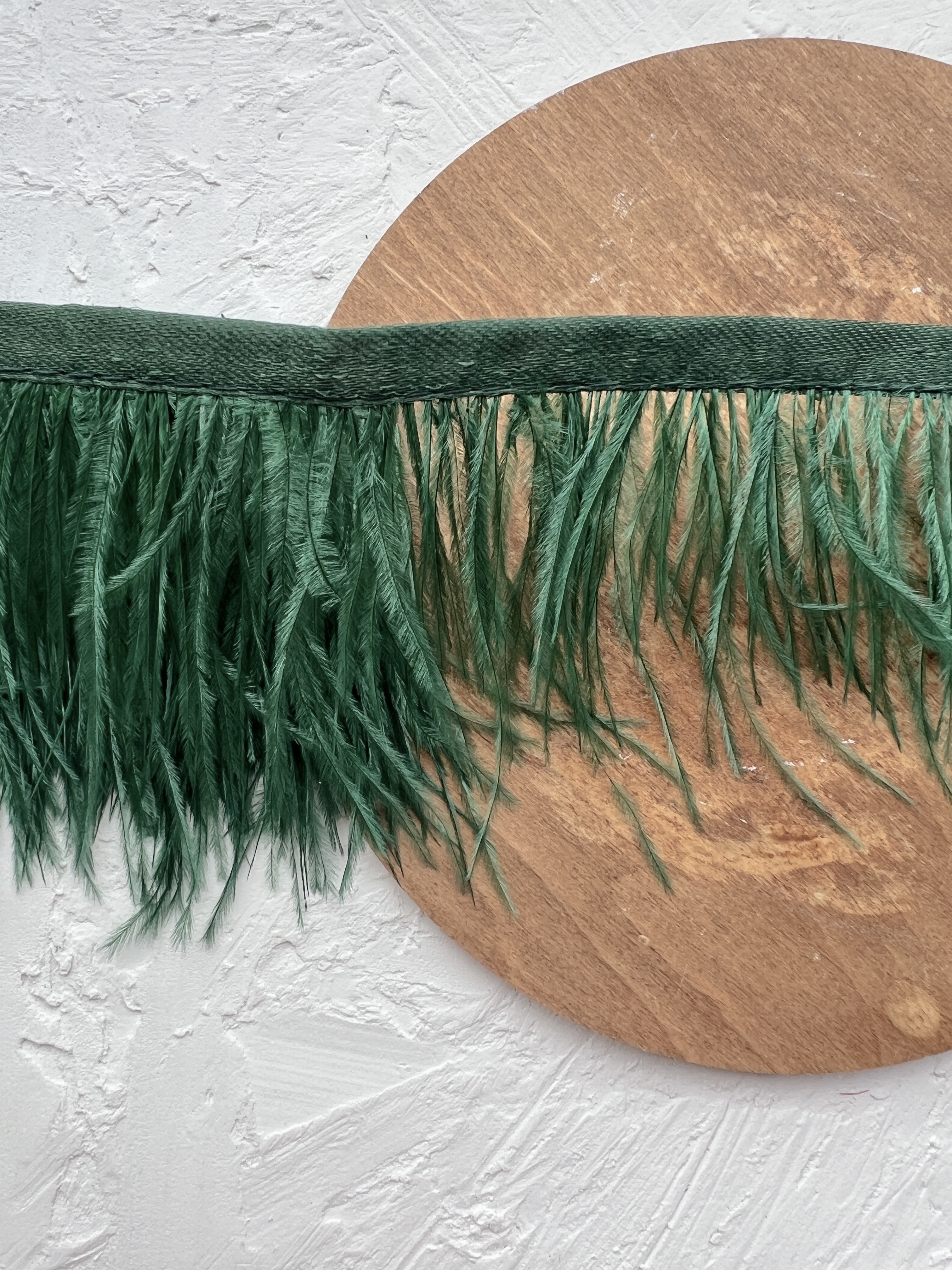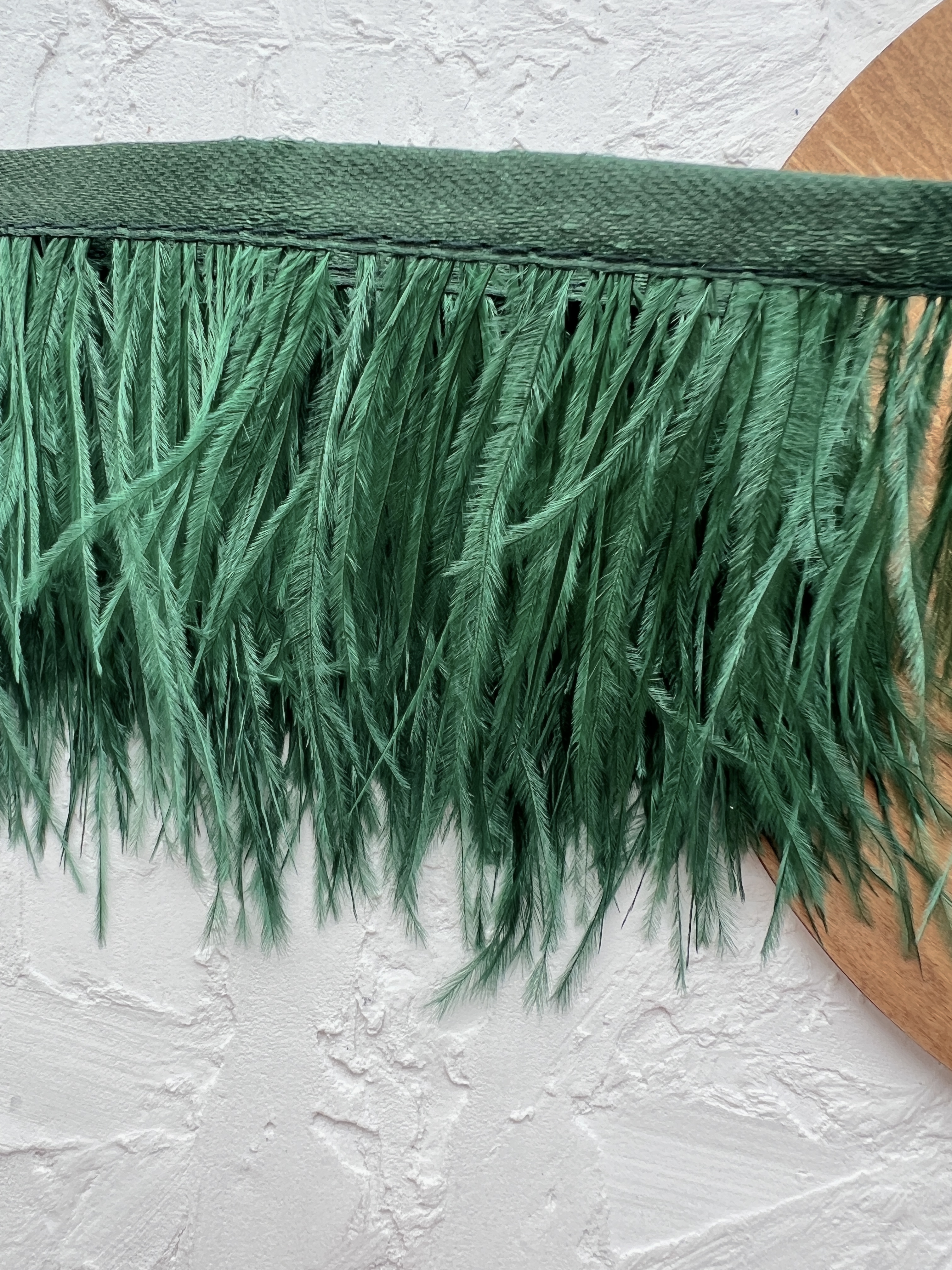 Натуральное, окрашенное перо страуса на ленте. Средняя длина 6-12 см (без учета тканевой тесьмы). Служат для декора, вышивки и создания украшений.
