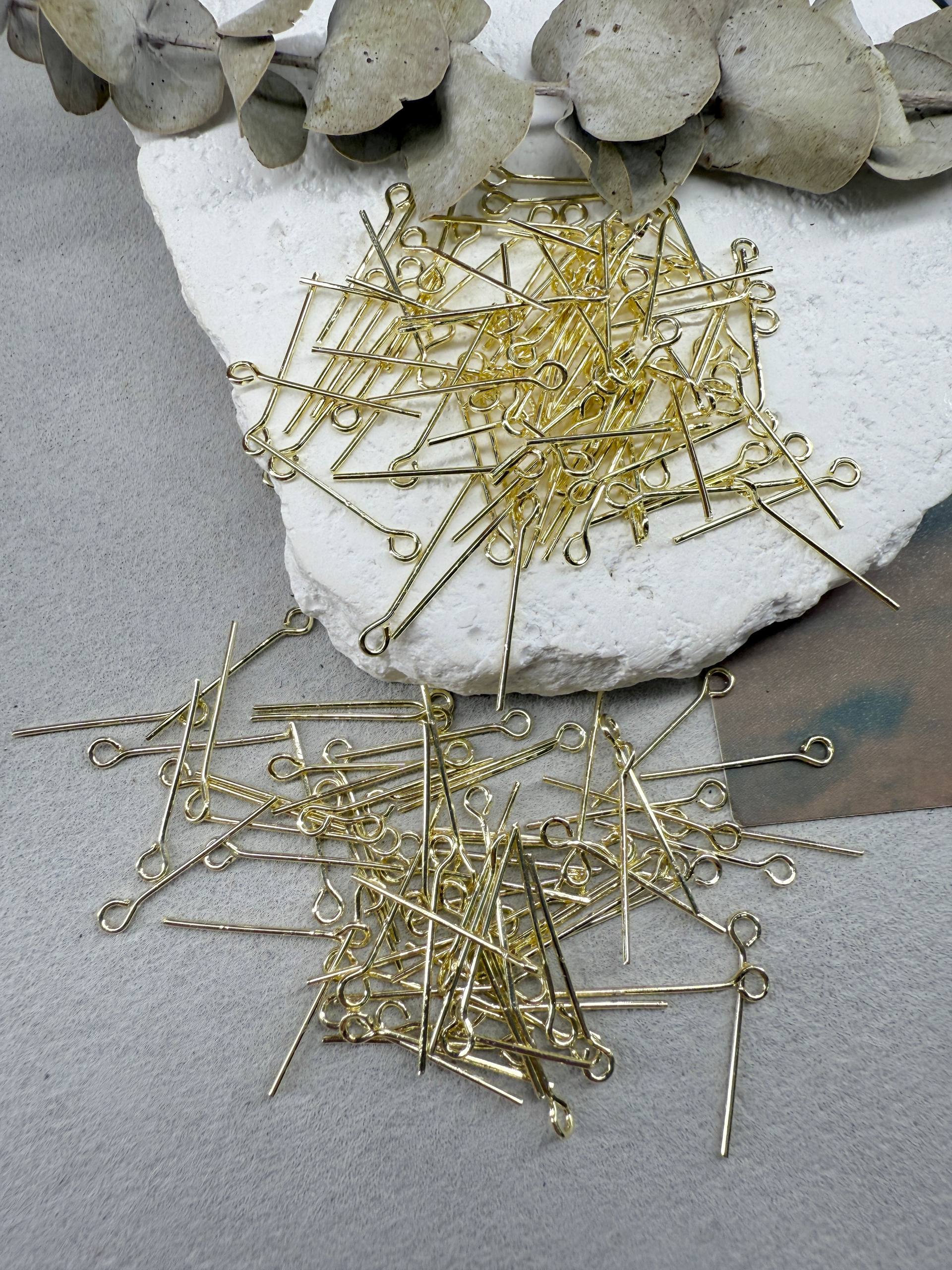 Пины жесткие с петелькой 20 мм, позолота 14к, 100 шт