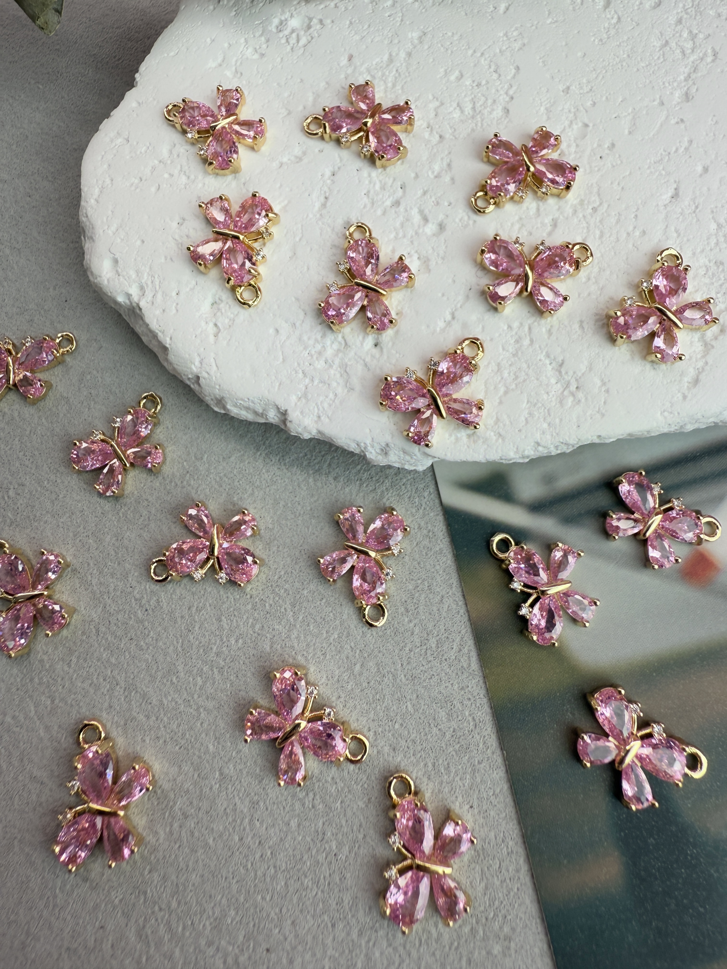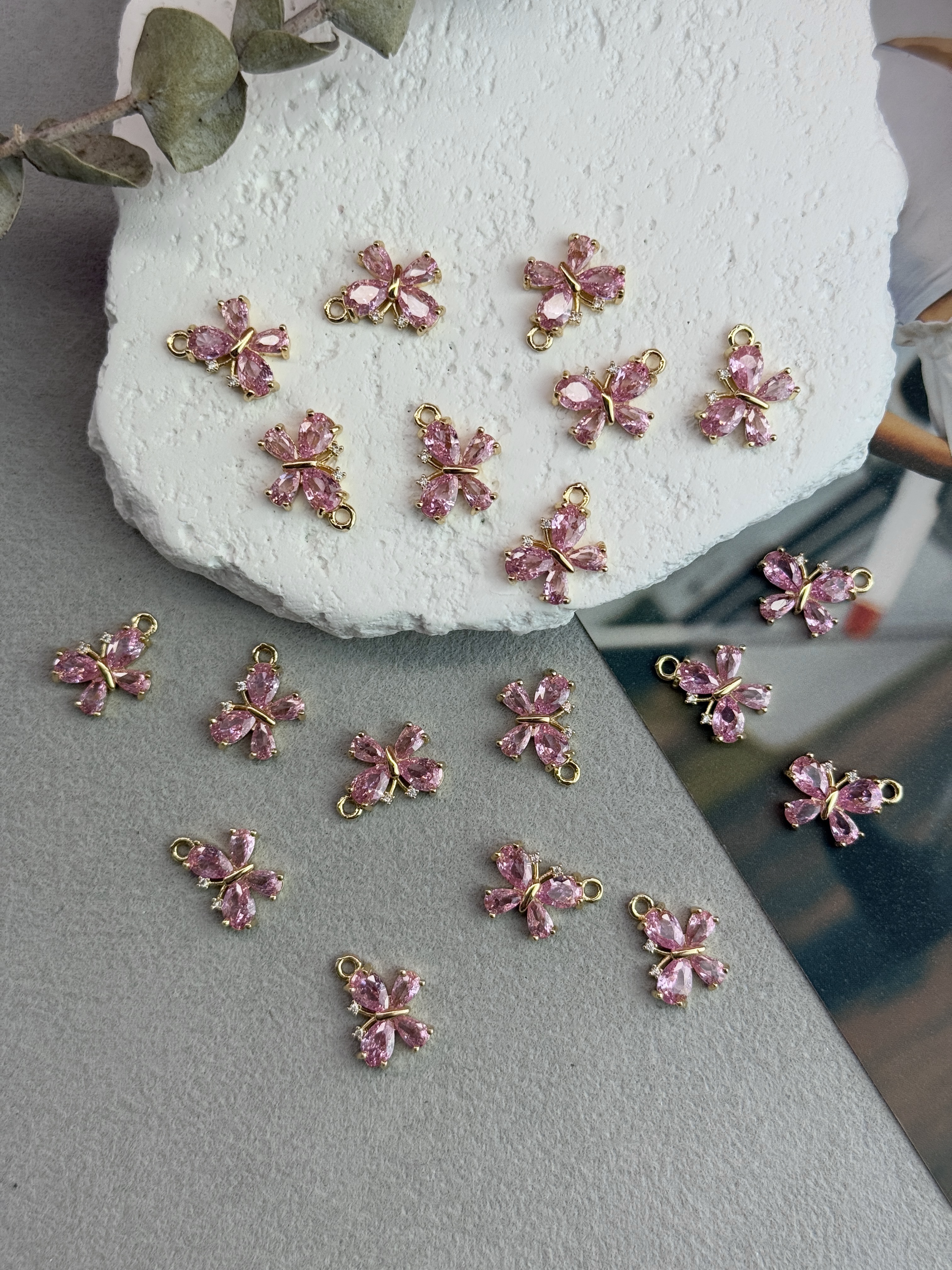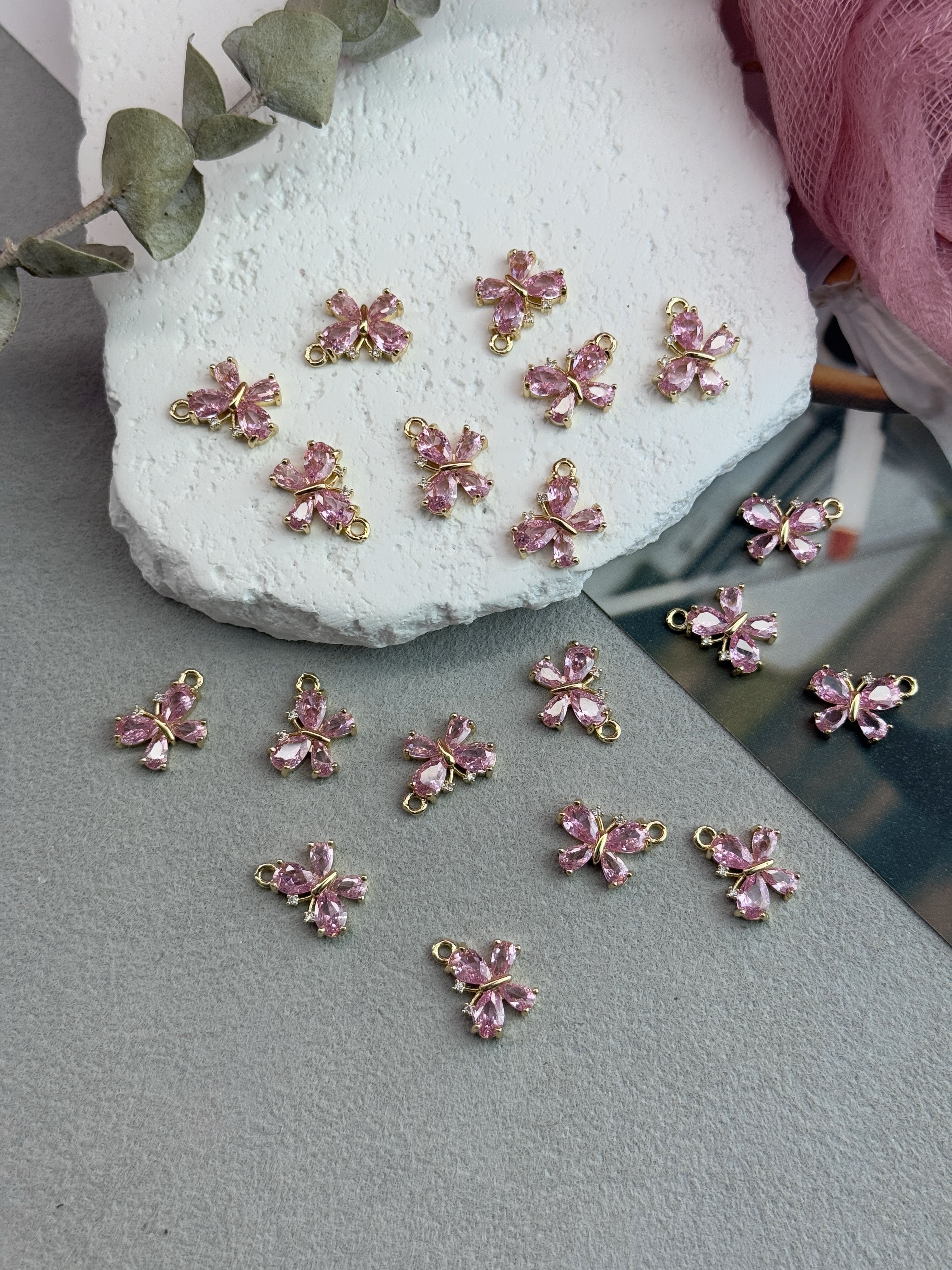 Подвеска «Бабочка» с цирконами, позолота 14к, 10*15 мм, розовый