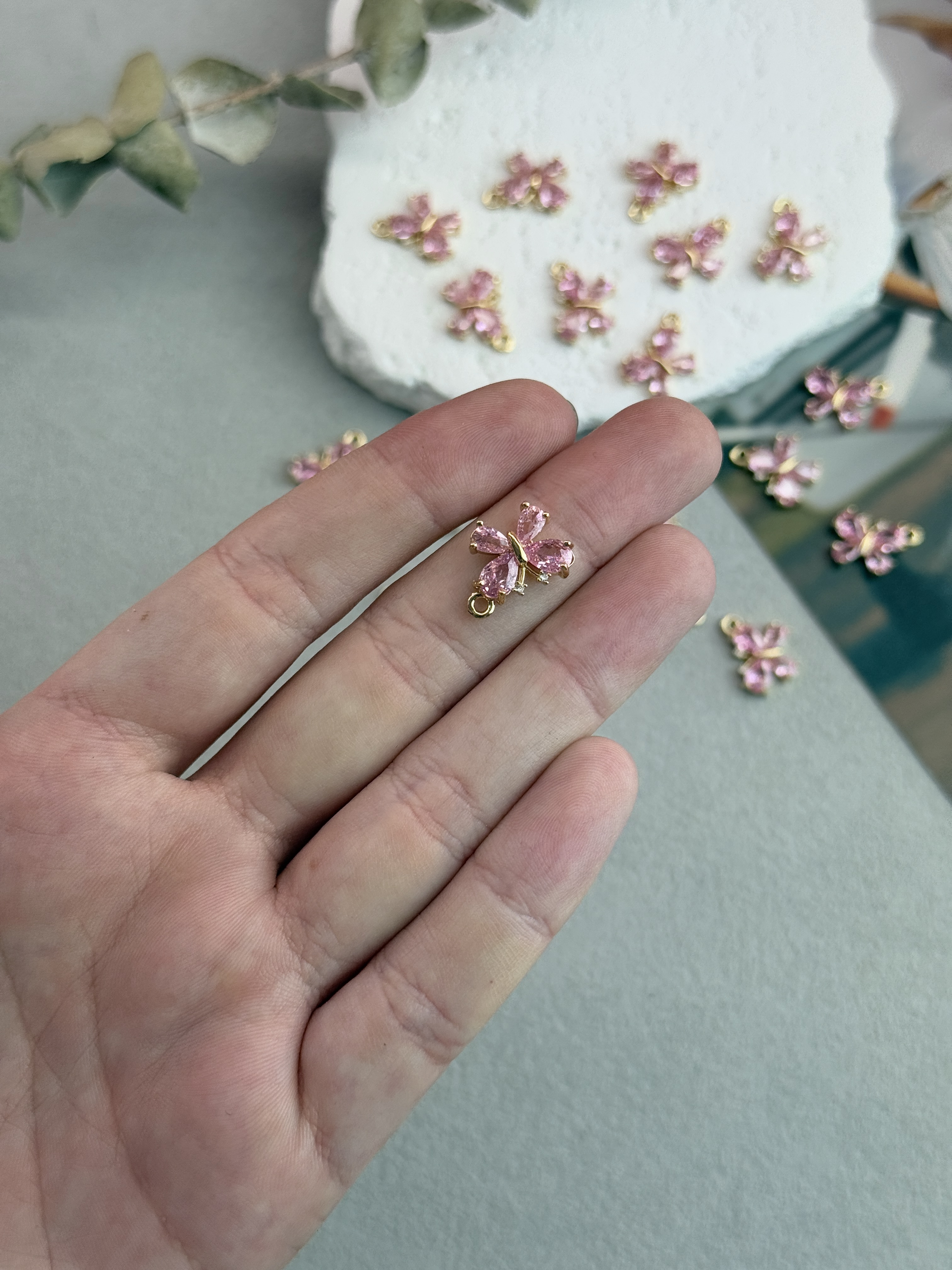 Подвеска в виде бабочки с розовыми цирконами.