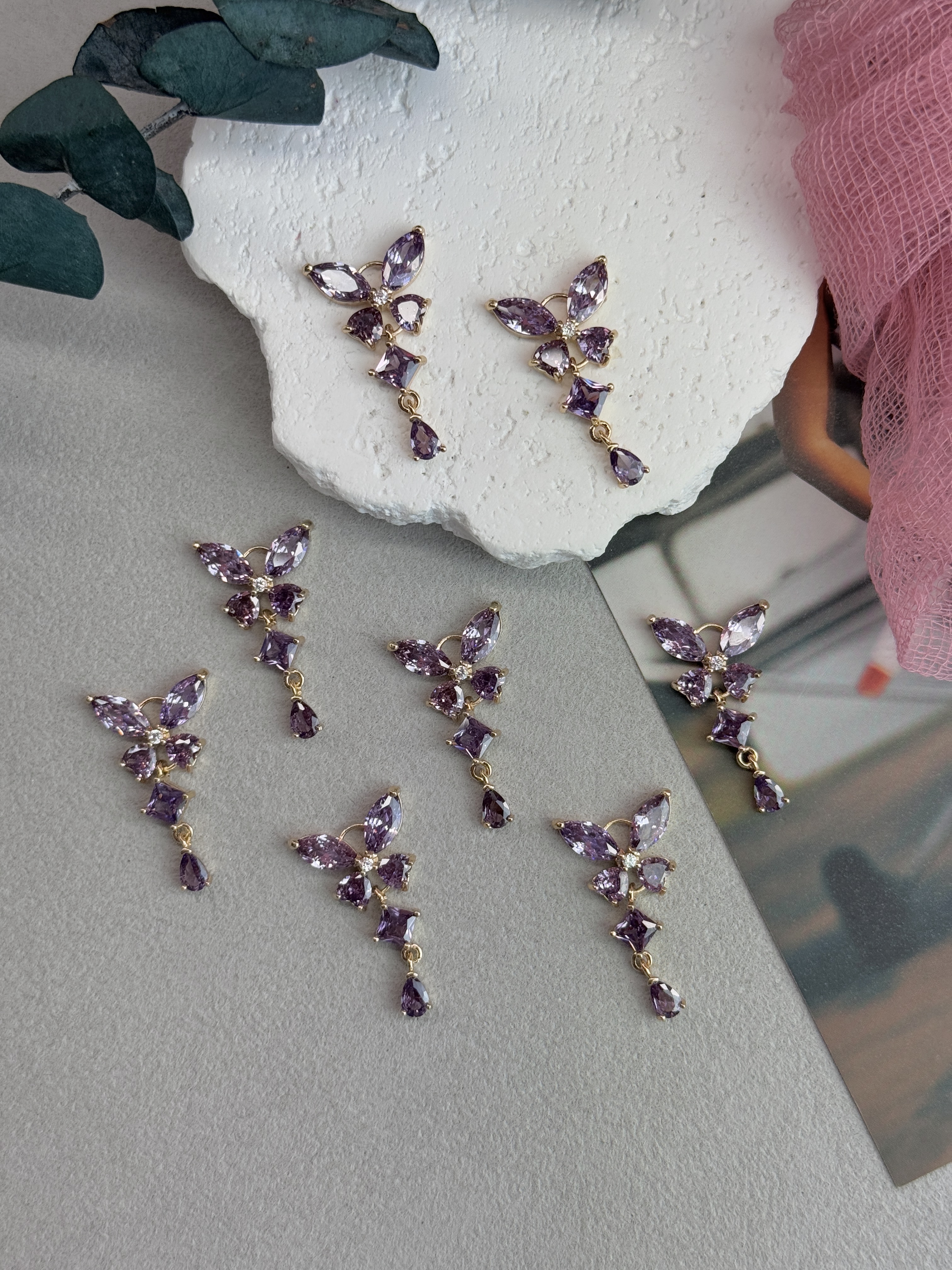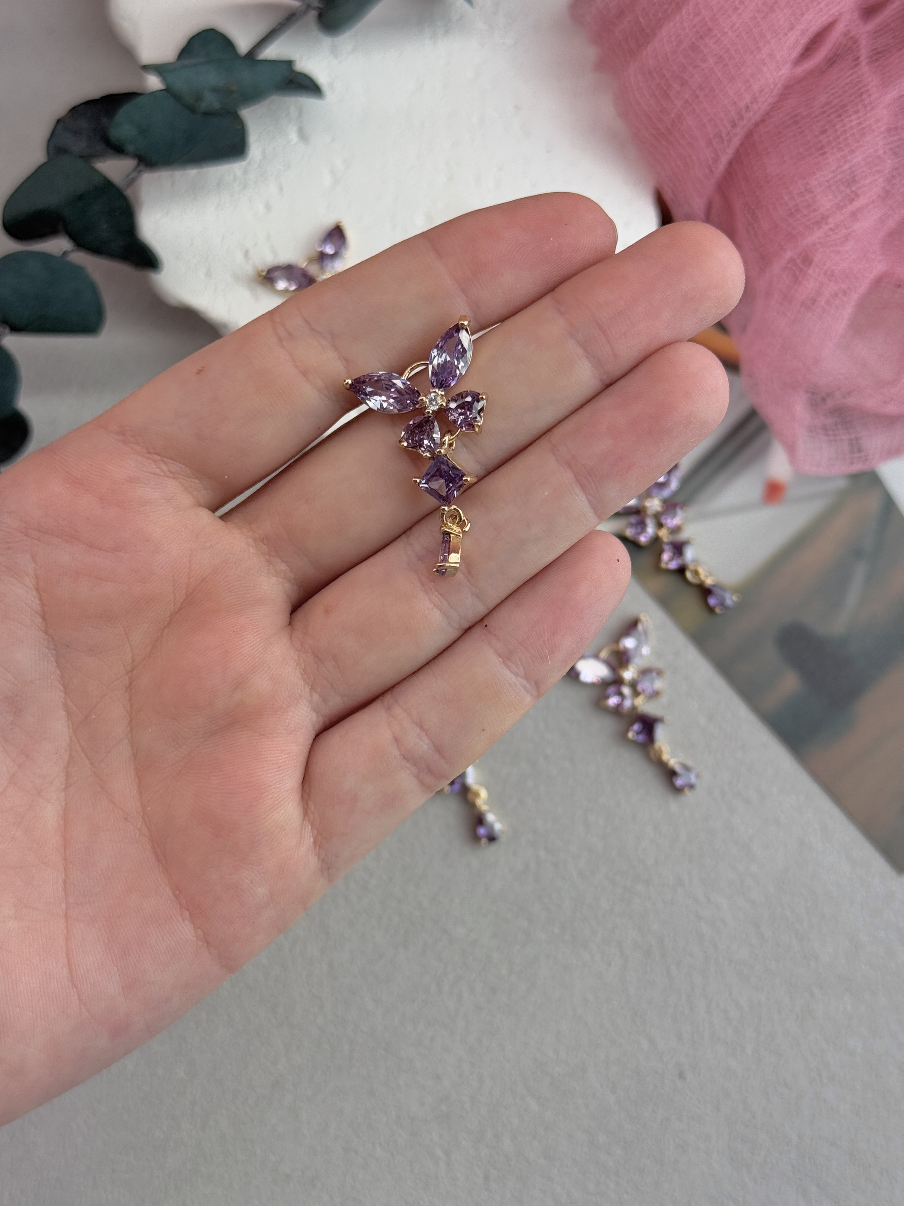 Подвеска в виде бабочки с вставками фиолетовых фианитов (циркона) для создания украшений ручной работы. Гипоаллергенная фурнитура для сборки украшений.