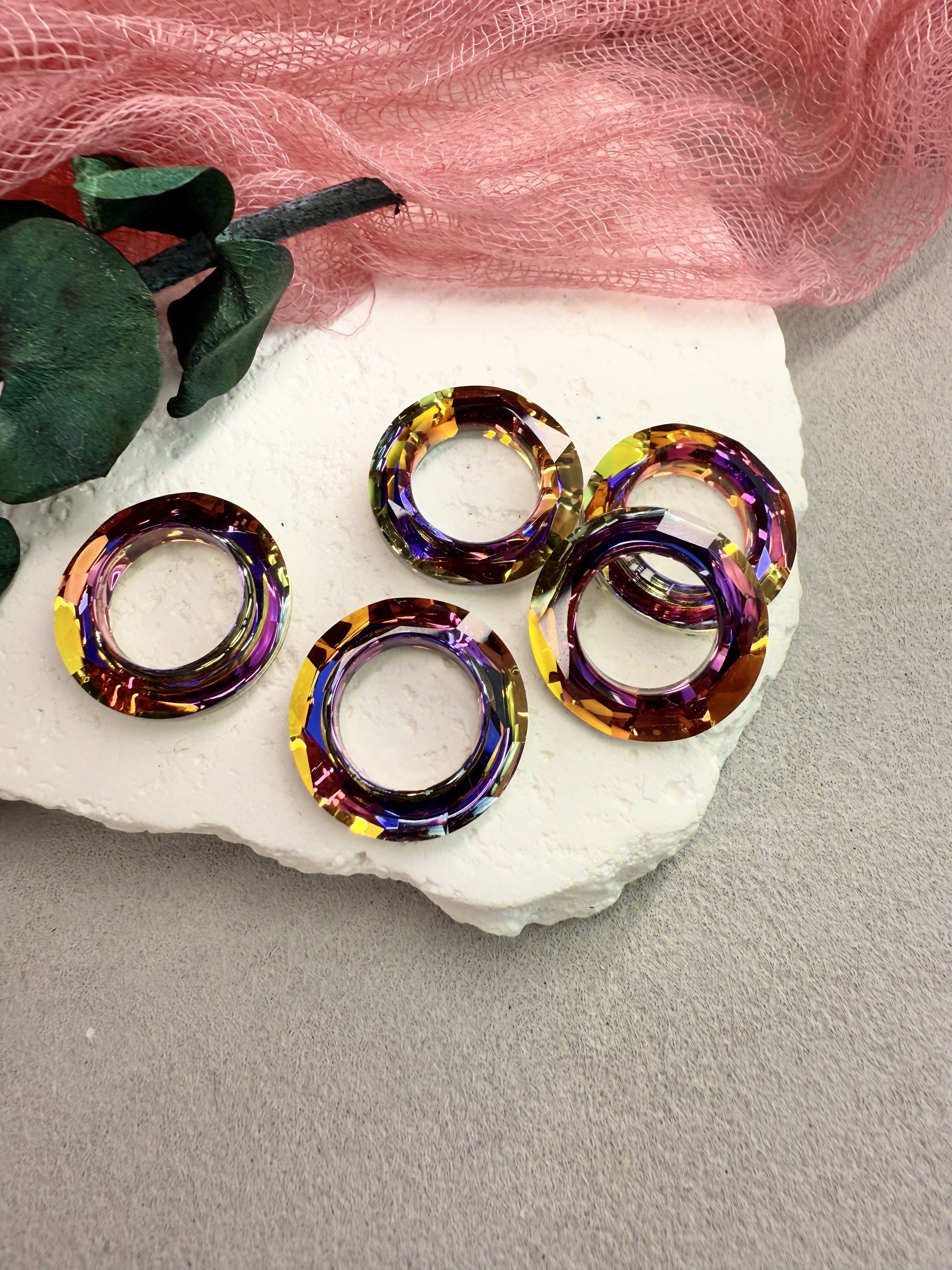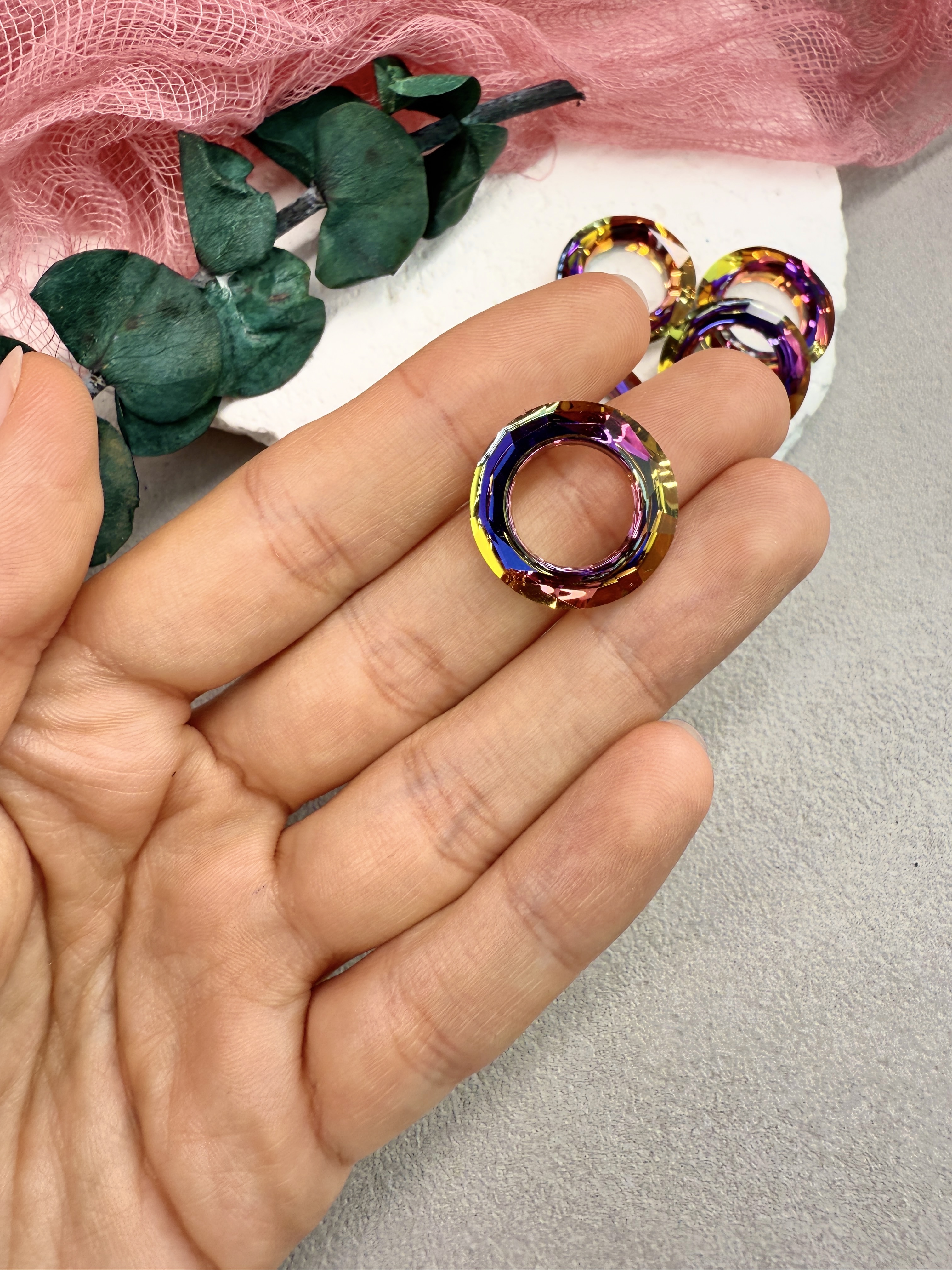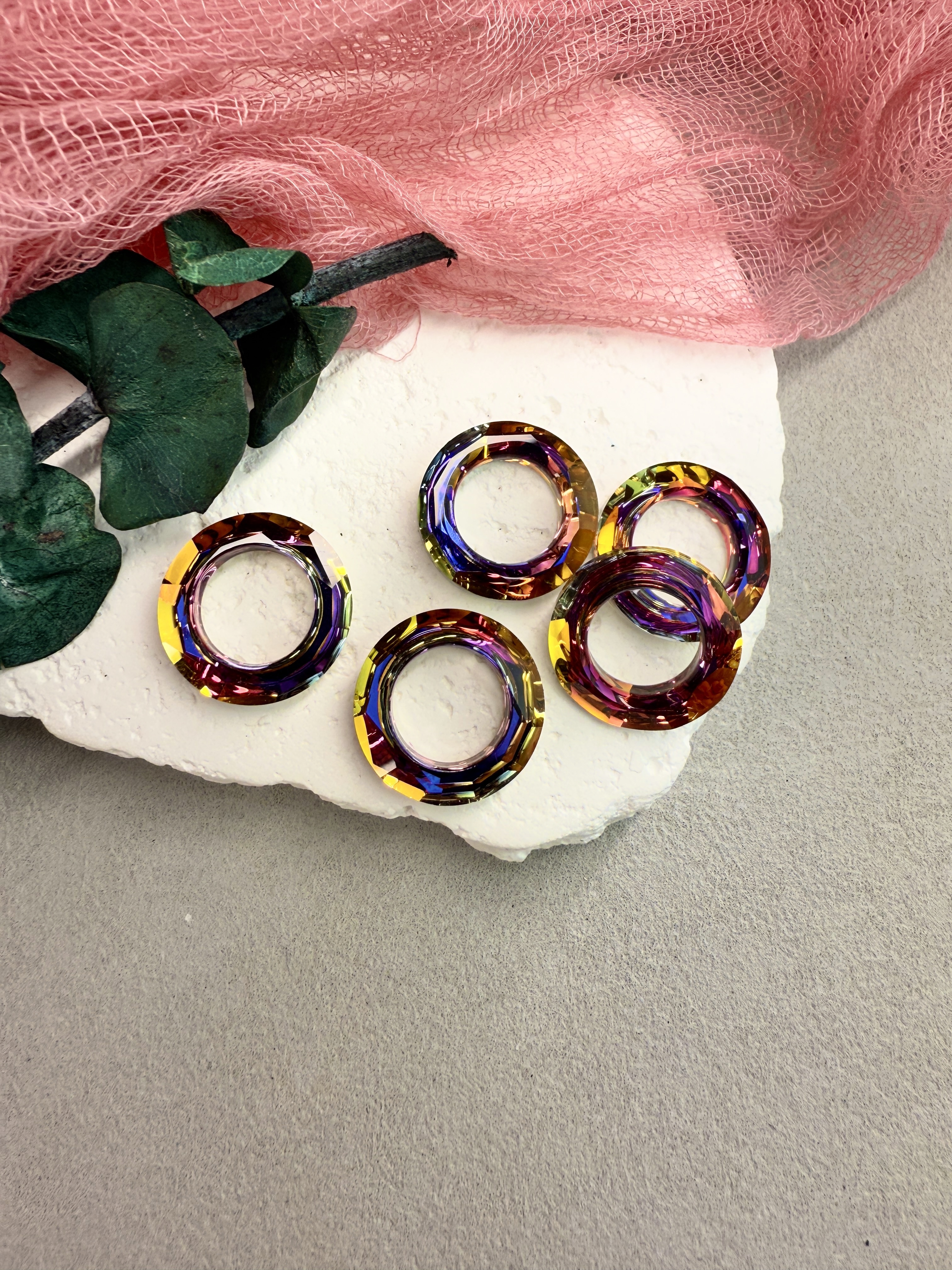 Изящная подвеска в виде граненного круга с переливающимися цветами. Подвеска выполнена из хрустального стекла (стекло с добавлением свинца для повышения блеска и твердости). Цвет переливается от красного до желто-зеленого цвета. Размер 20 мм, в упаковке 1 штука.