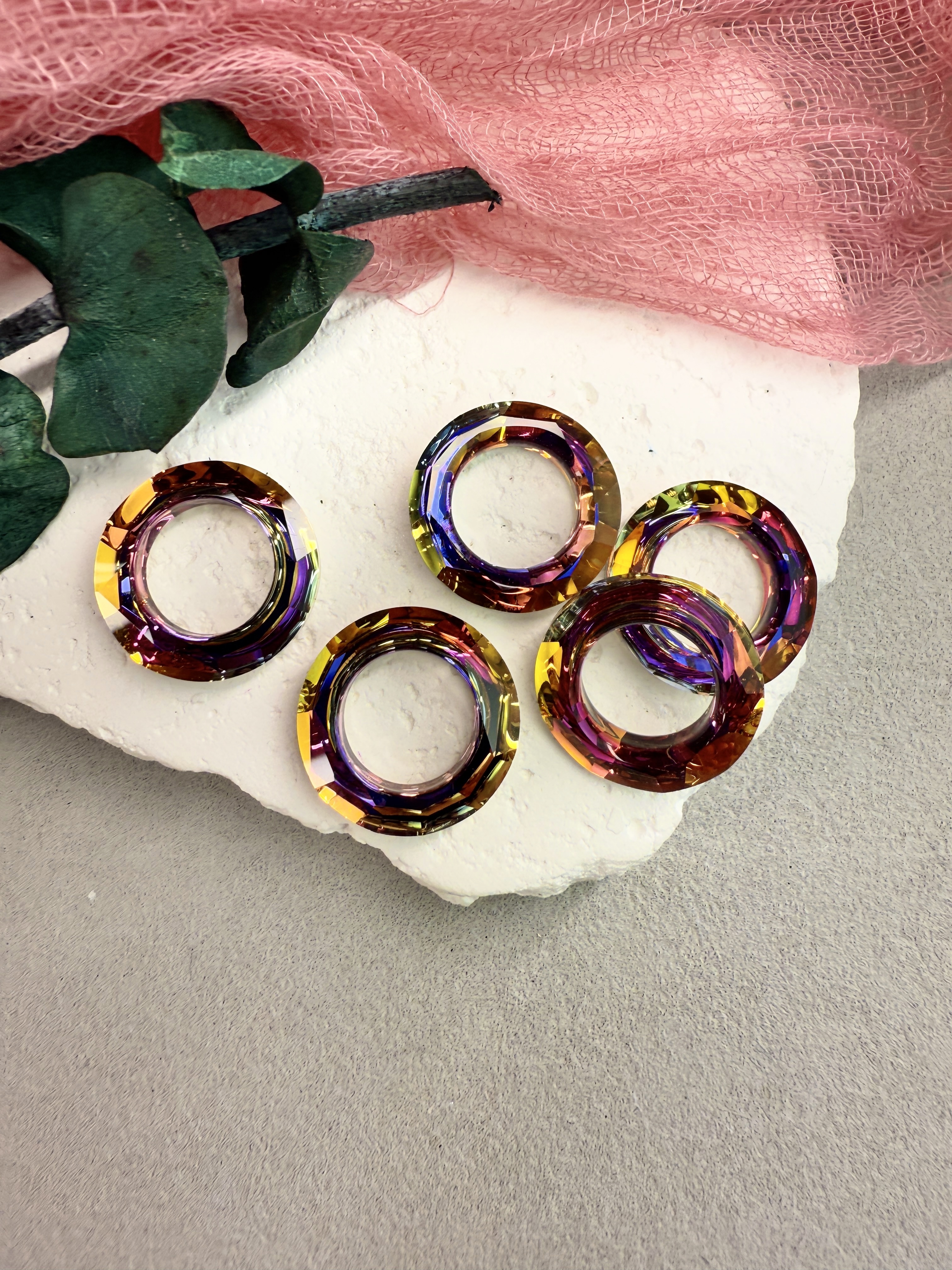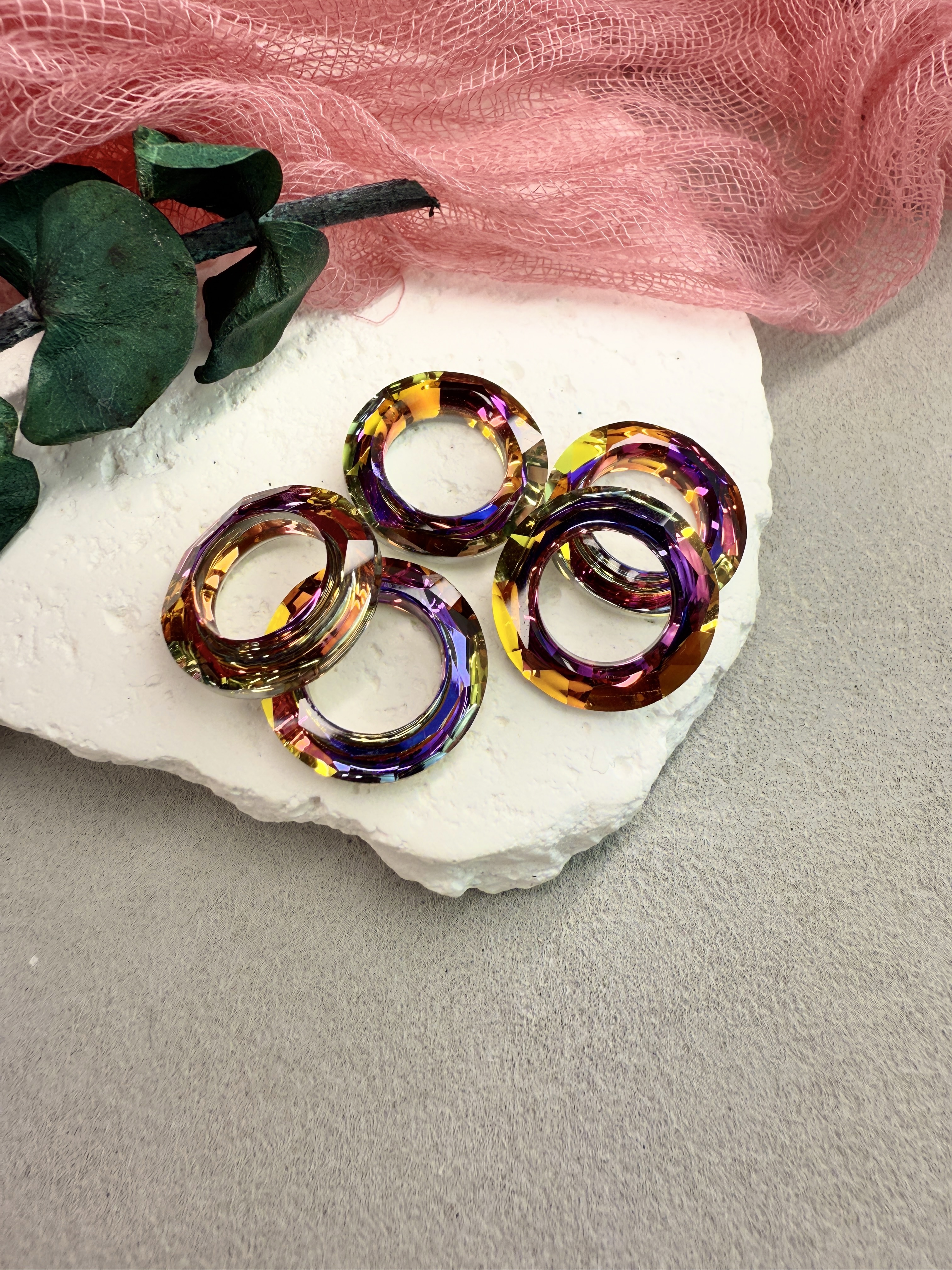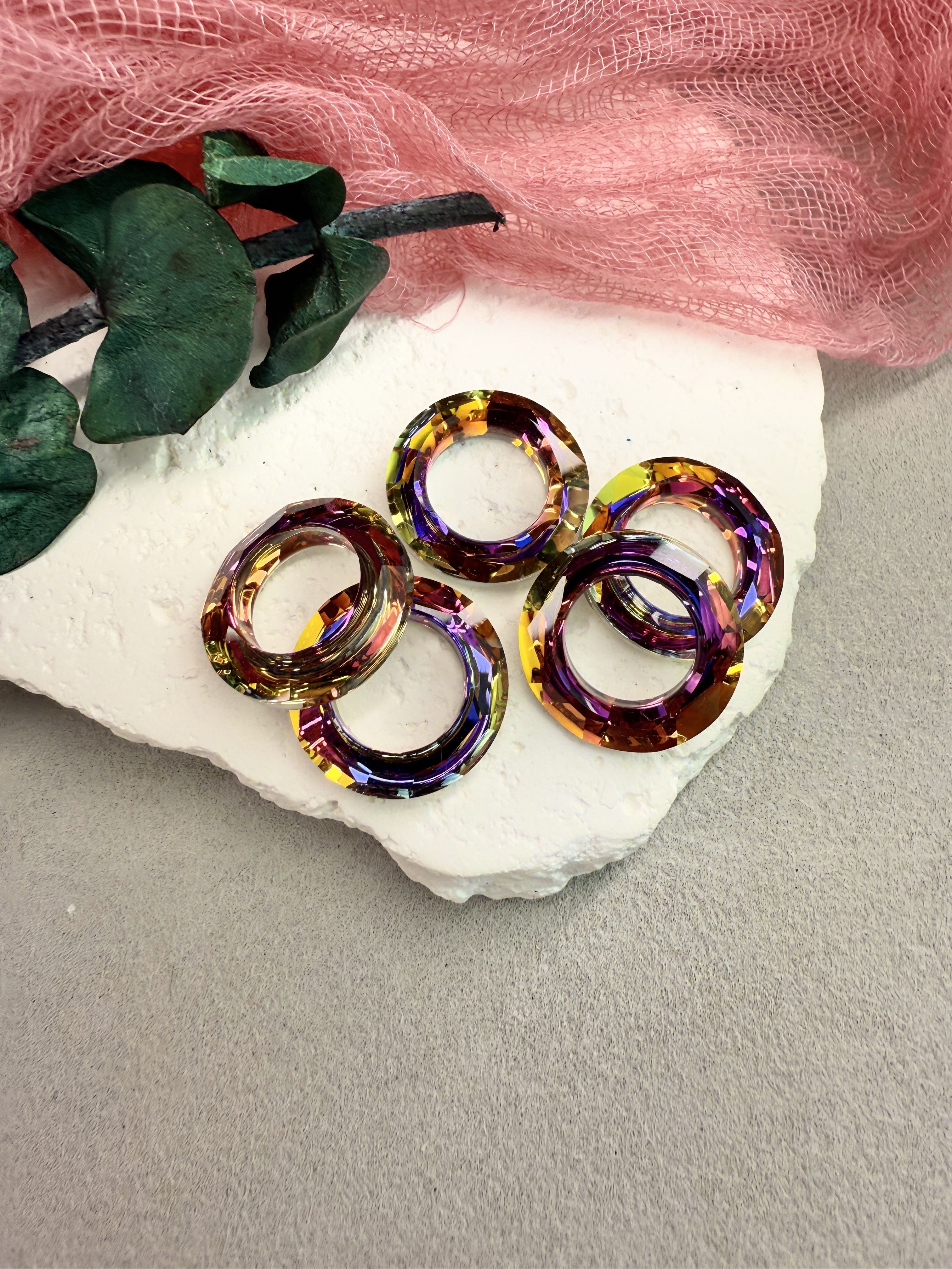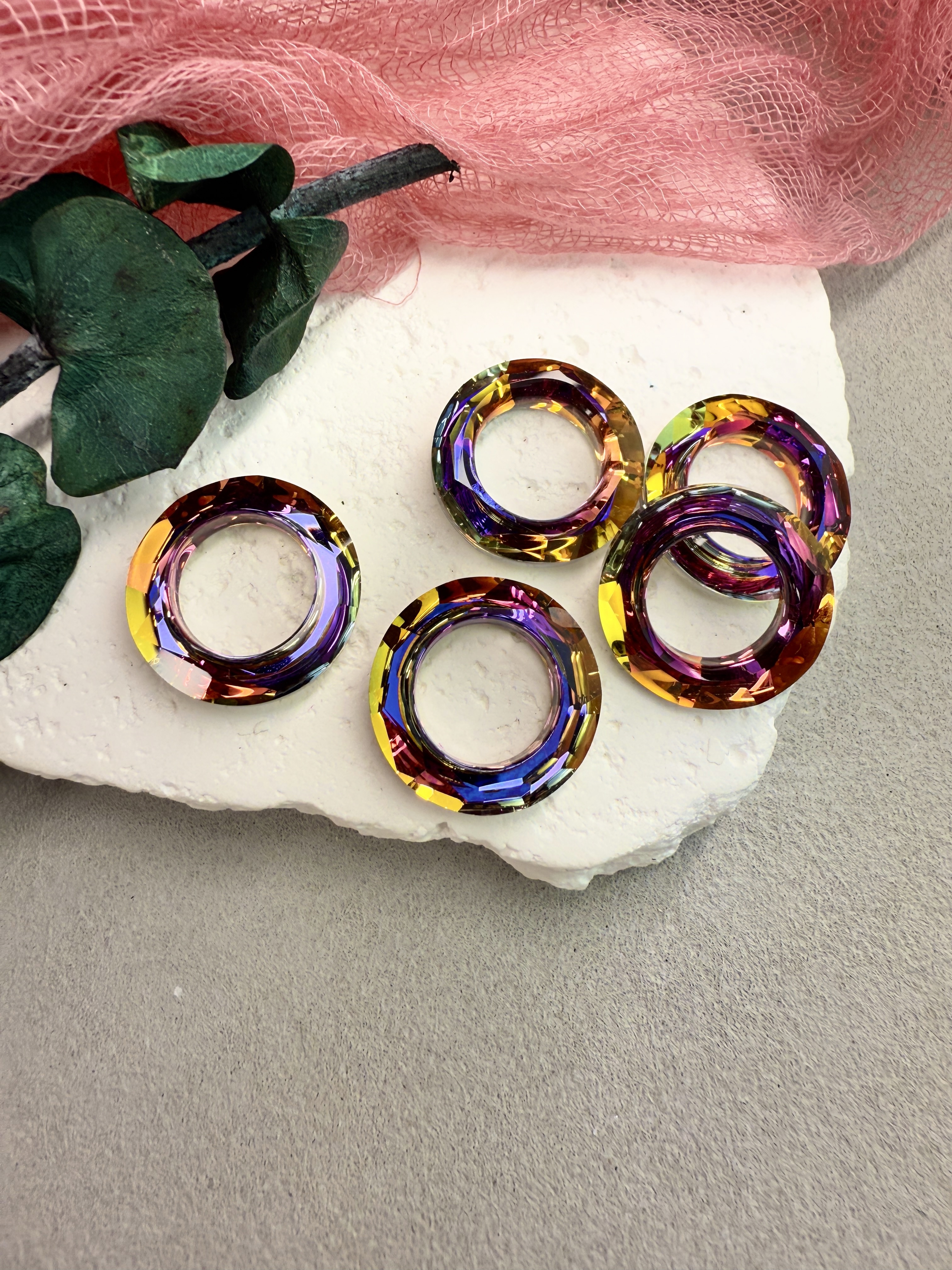 Изящная подвеска в виде граненного круга с переливающимися цветами. Подвеска выполнена из хрустального стекла (стекло с добавлением свинца для повышения блеска и твердости). Цвет переливается от красного до желто-зеленого цвета. Размер 20 мм, в упаковке 1 штука.