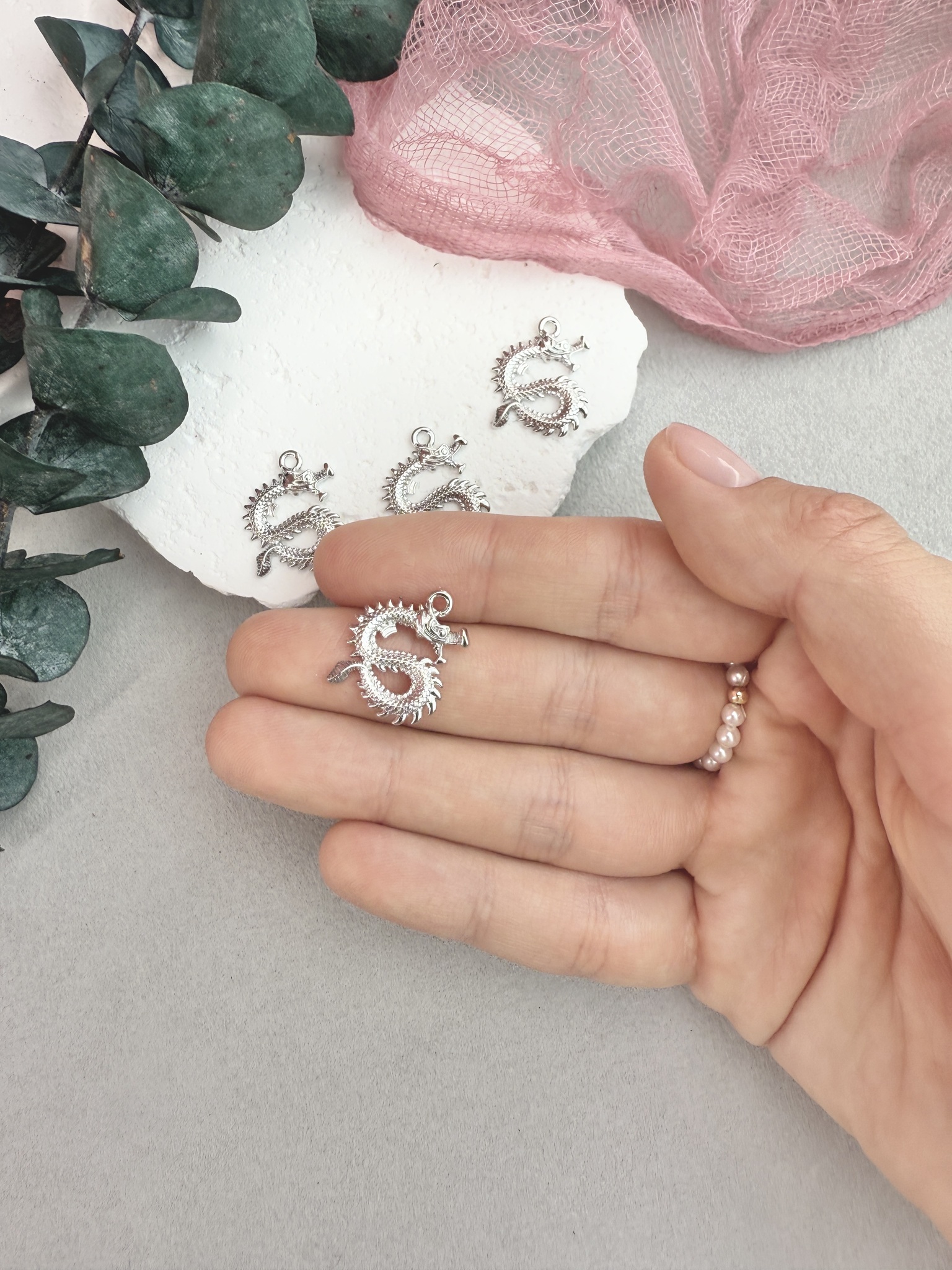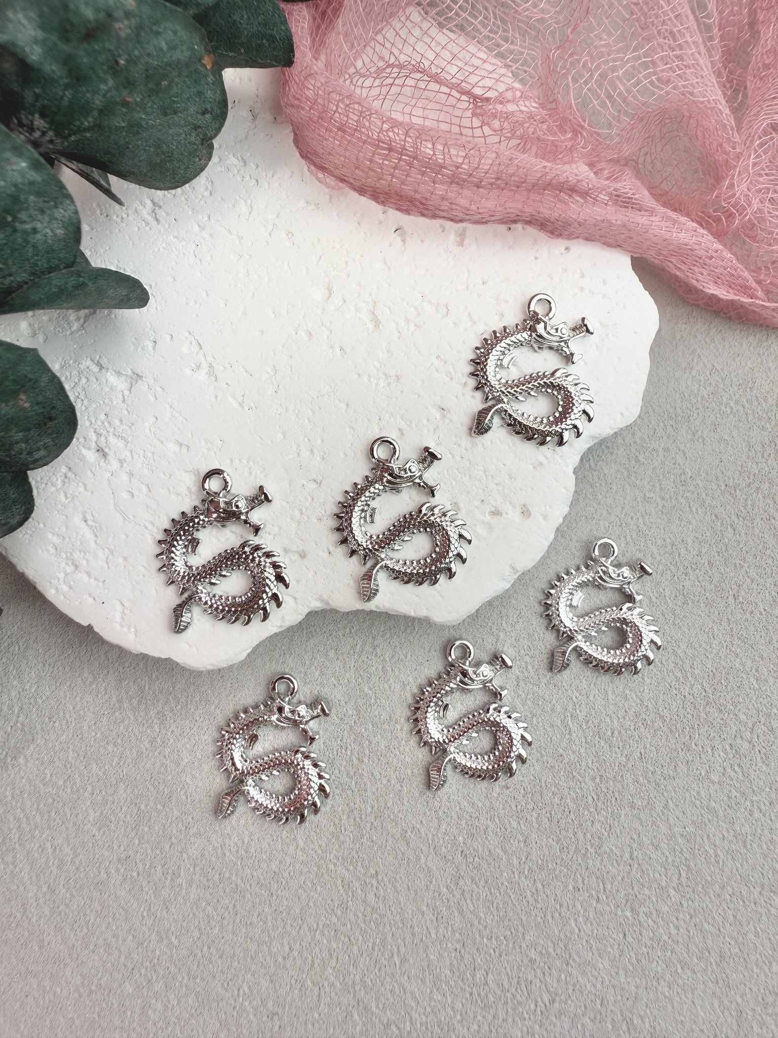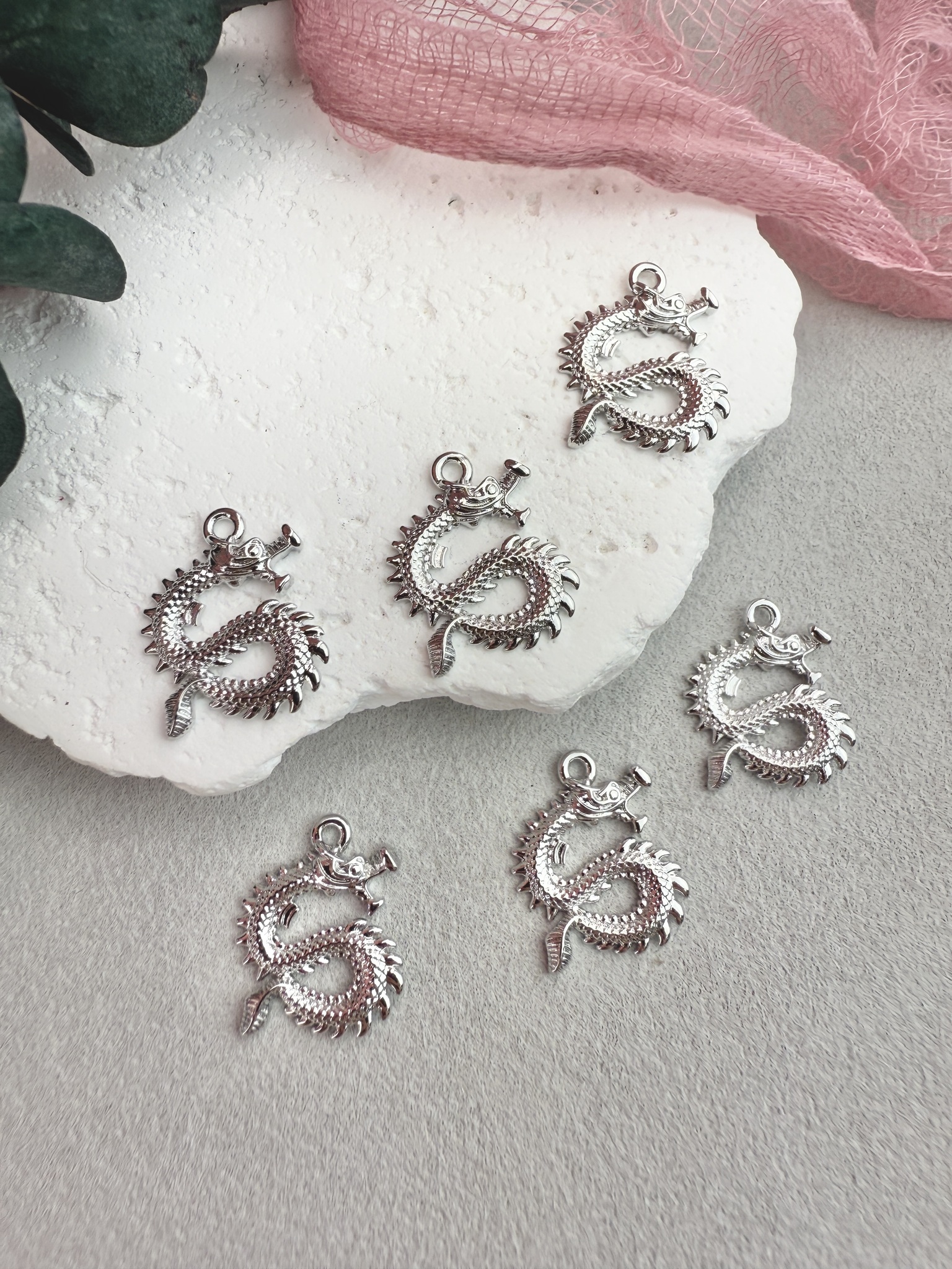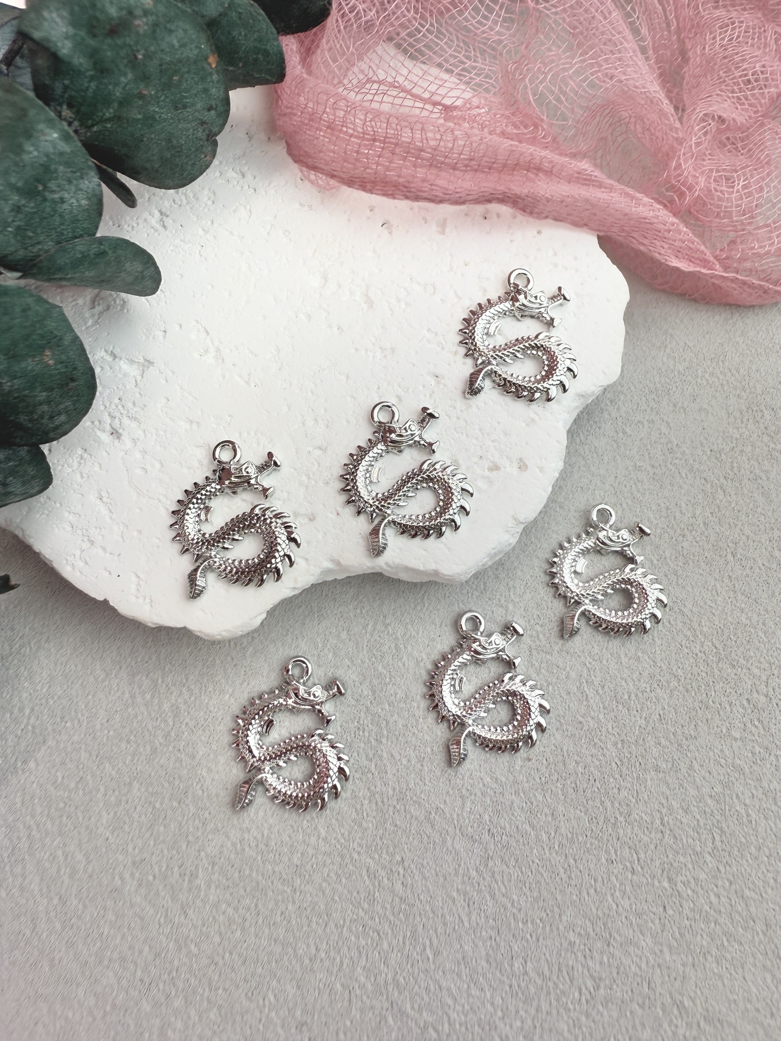 Подвеска в виде китайского дракона для создания украшений ручной работы. Гипоаллергенная фурнитура для сборки украшений.