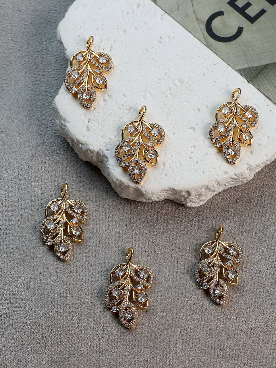 Сплав металлов на основе латуни с позолотой 14 карат, с фианитами белого цвета.
