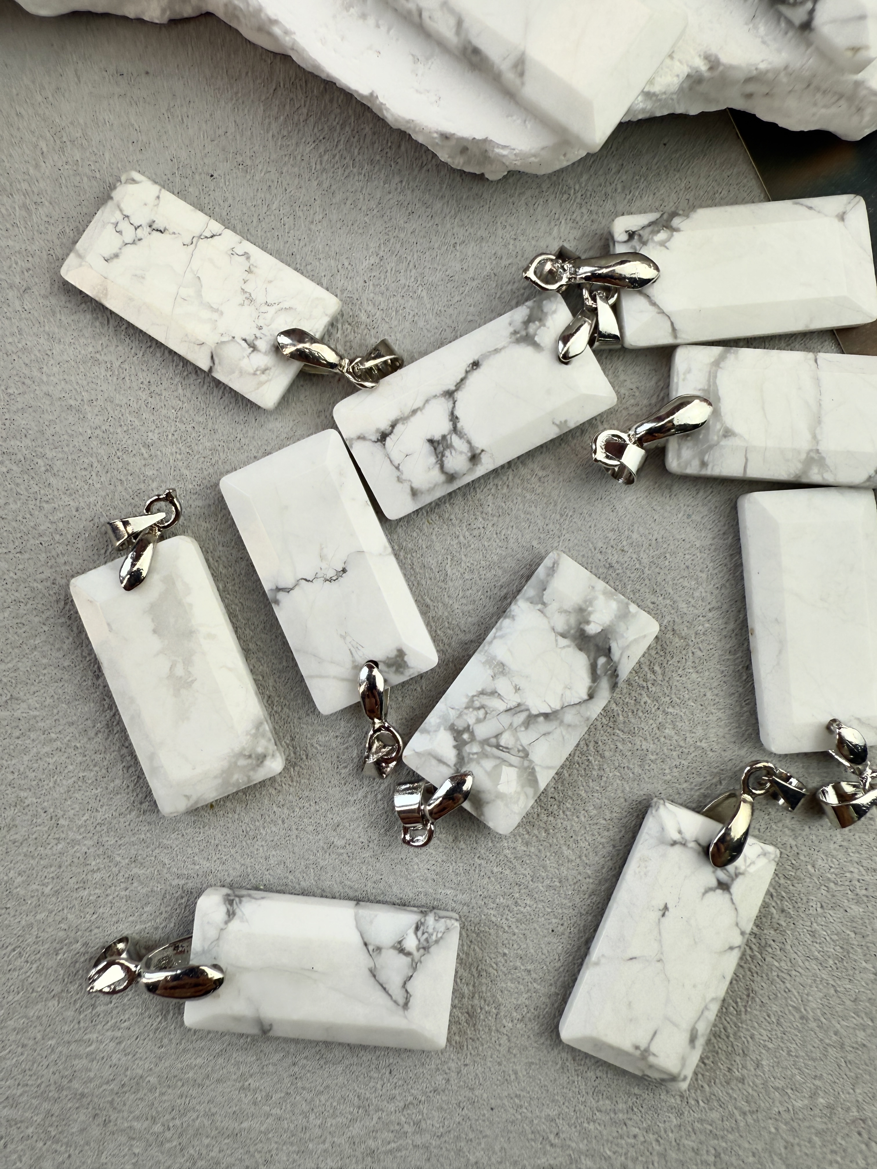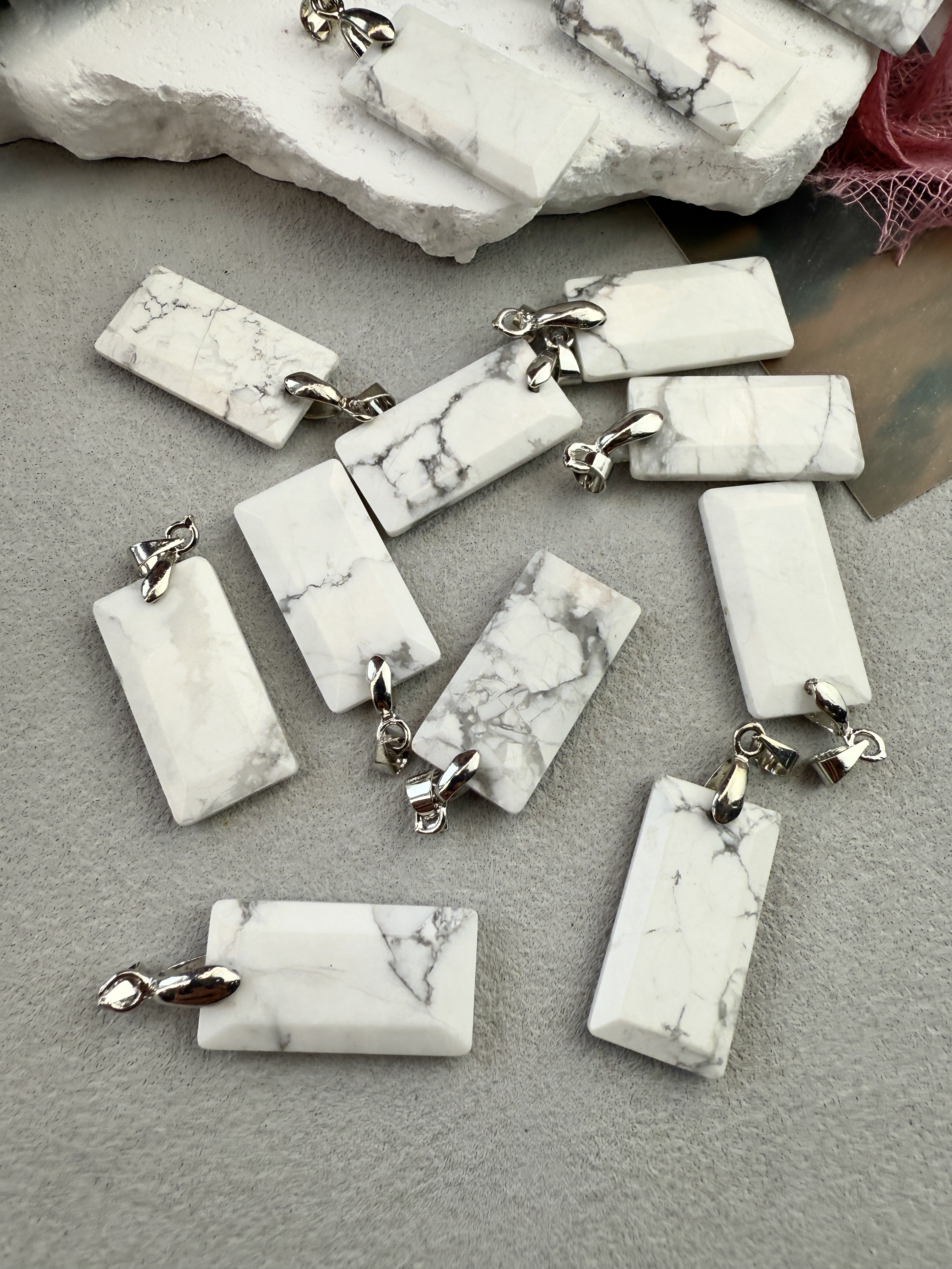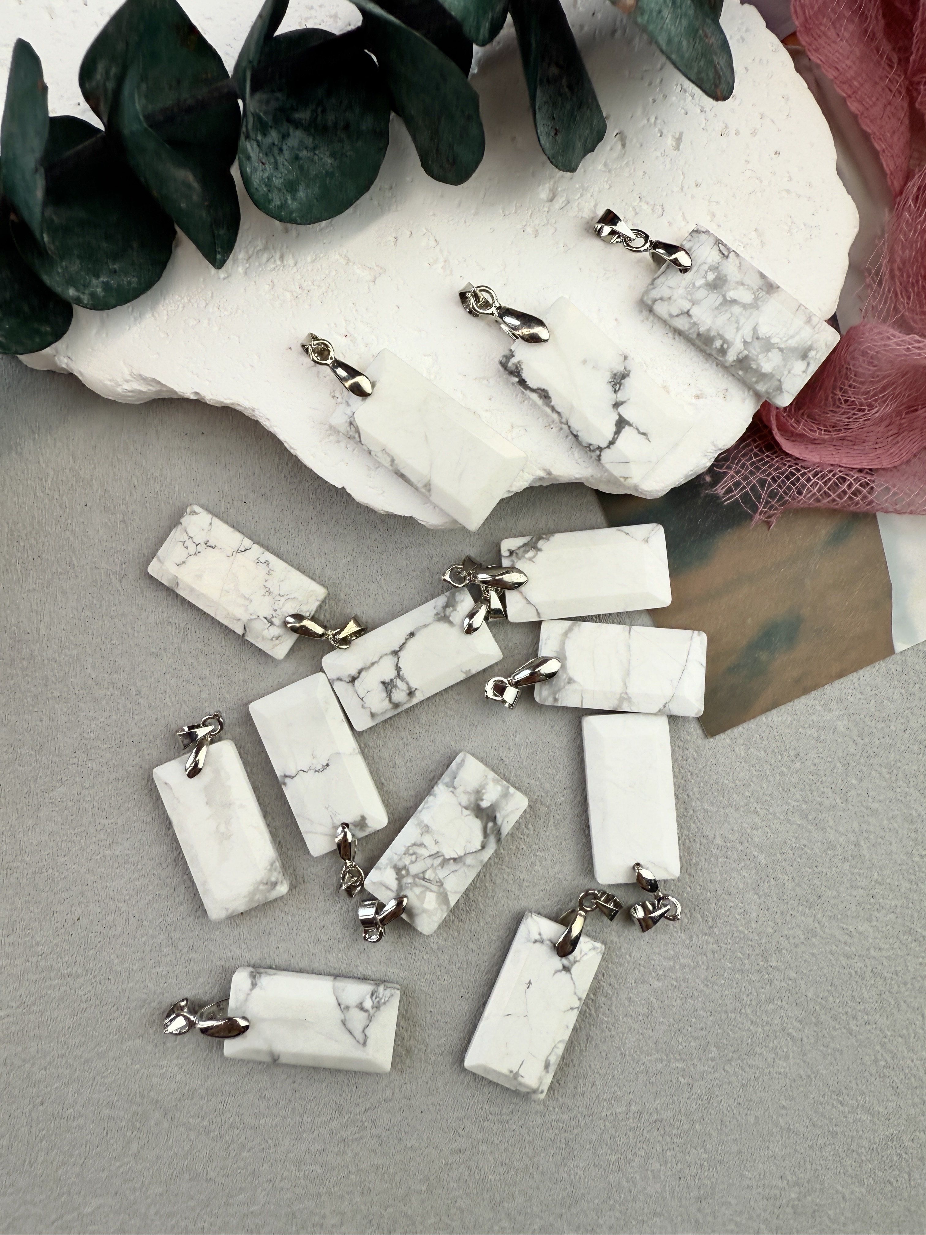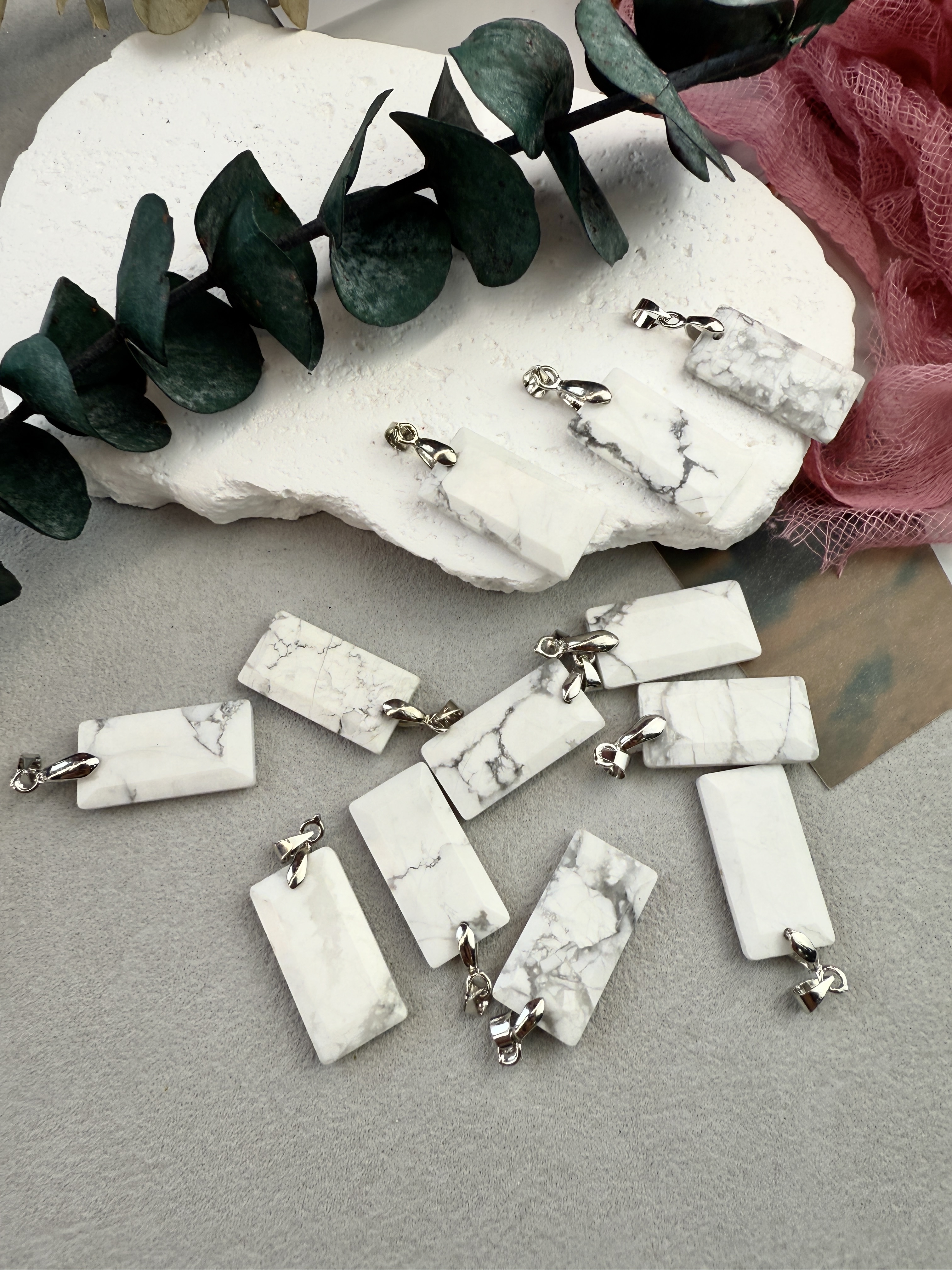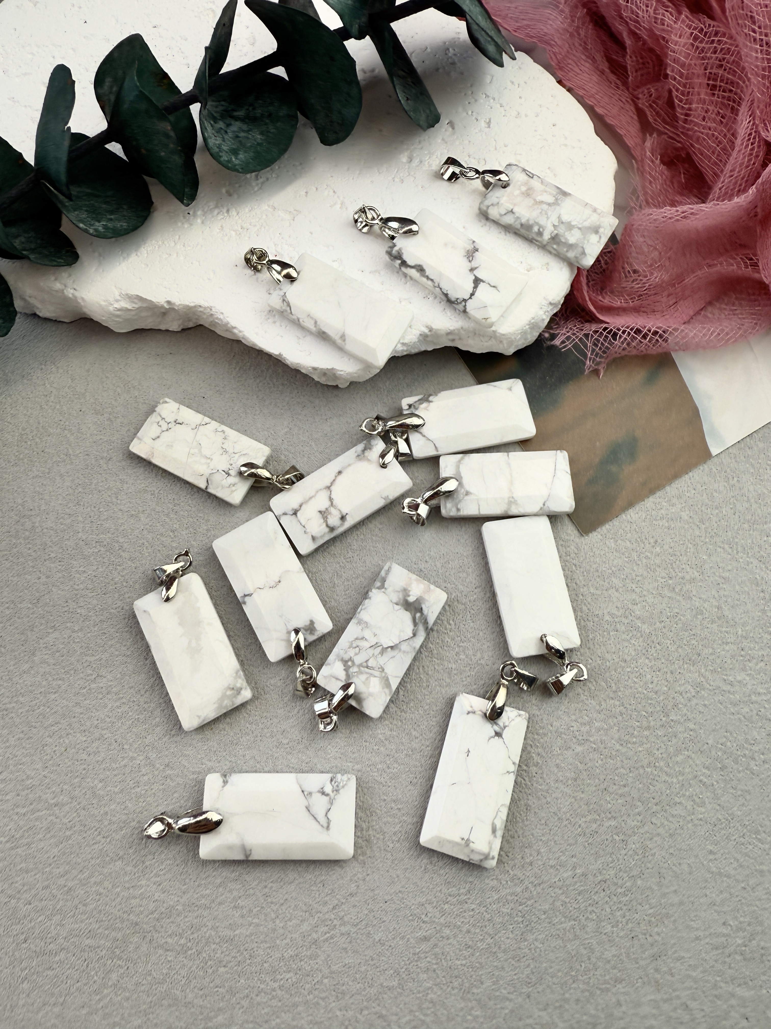 Подвеска в виде прямоугольника из белой бирюзы для создания украшений ручной работы. Гипоаллергенная фурнитура для сборки украшений.