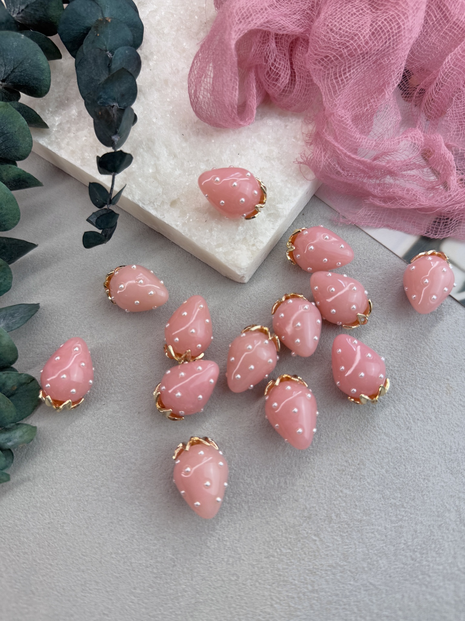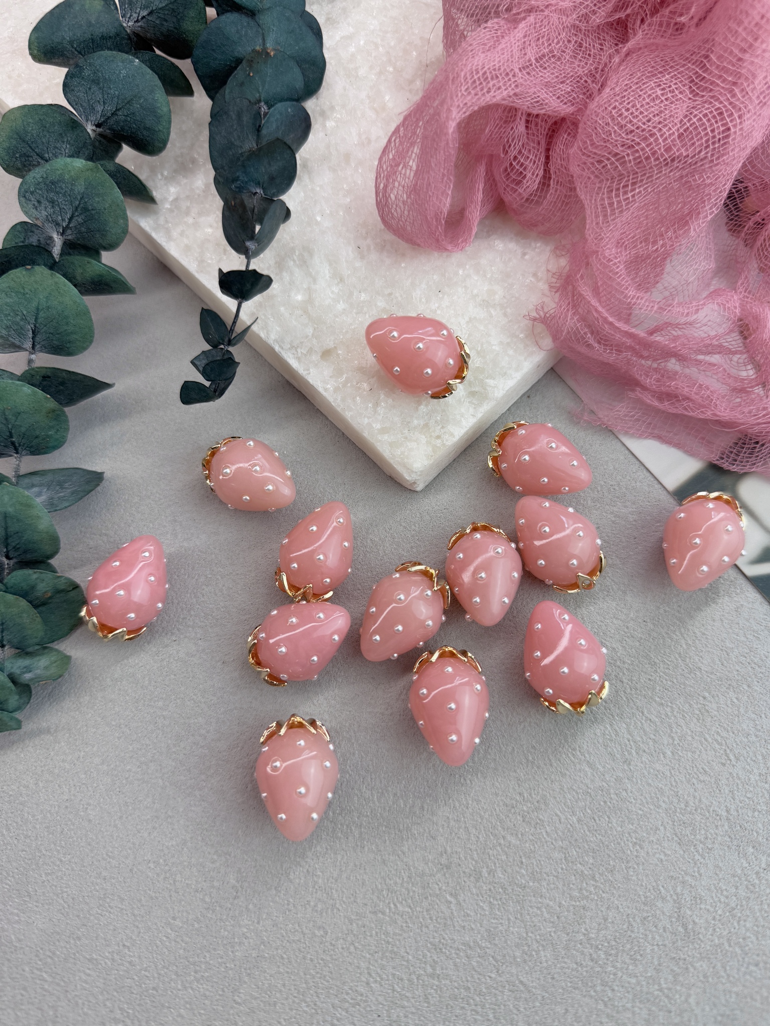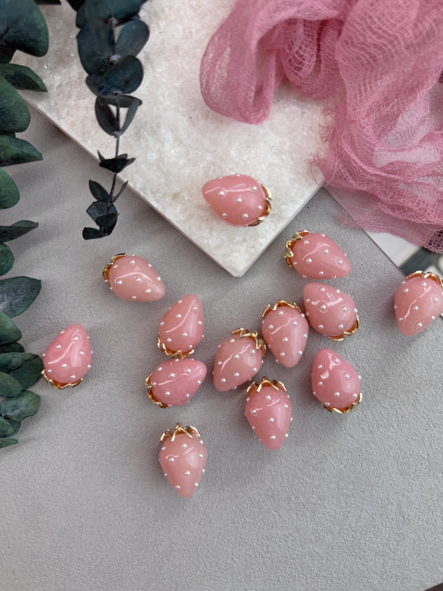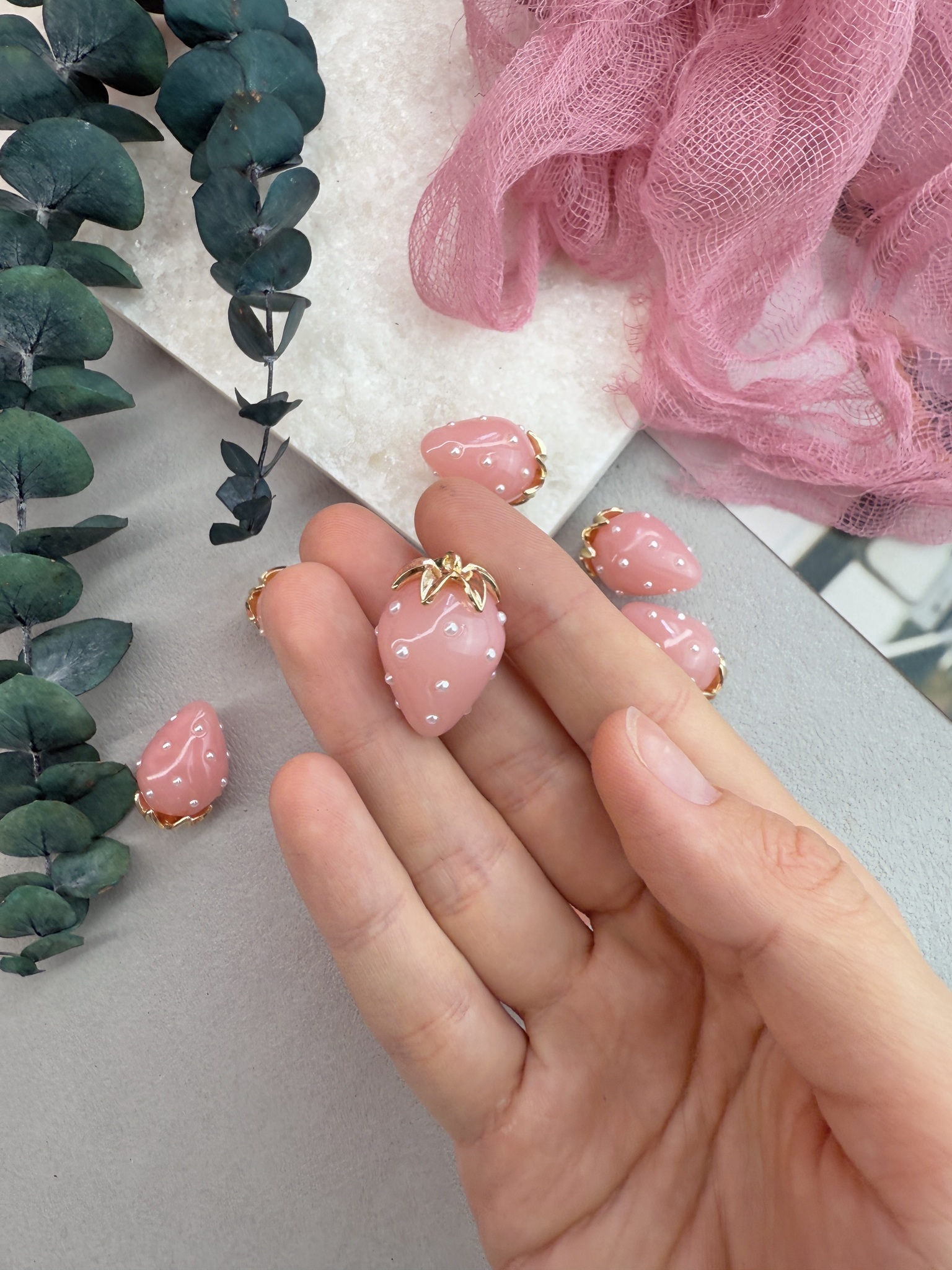 Подвеска из орг стекла (вид пластика) в виде крупной клубнички. Гипоаллергенная фурнитура для сборки украшений.