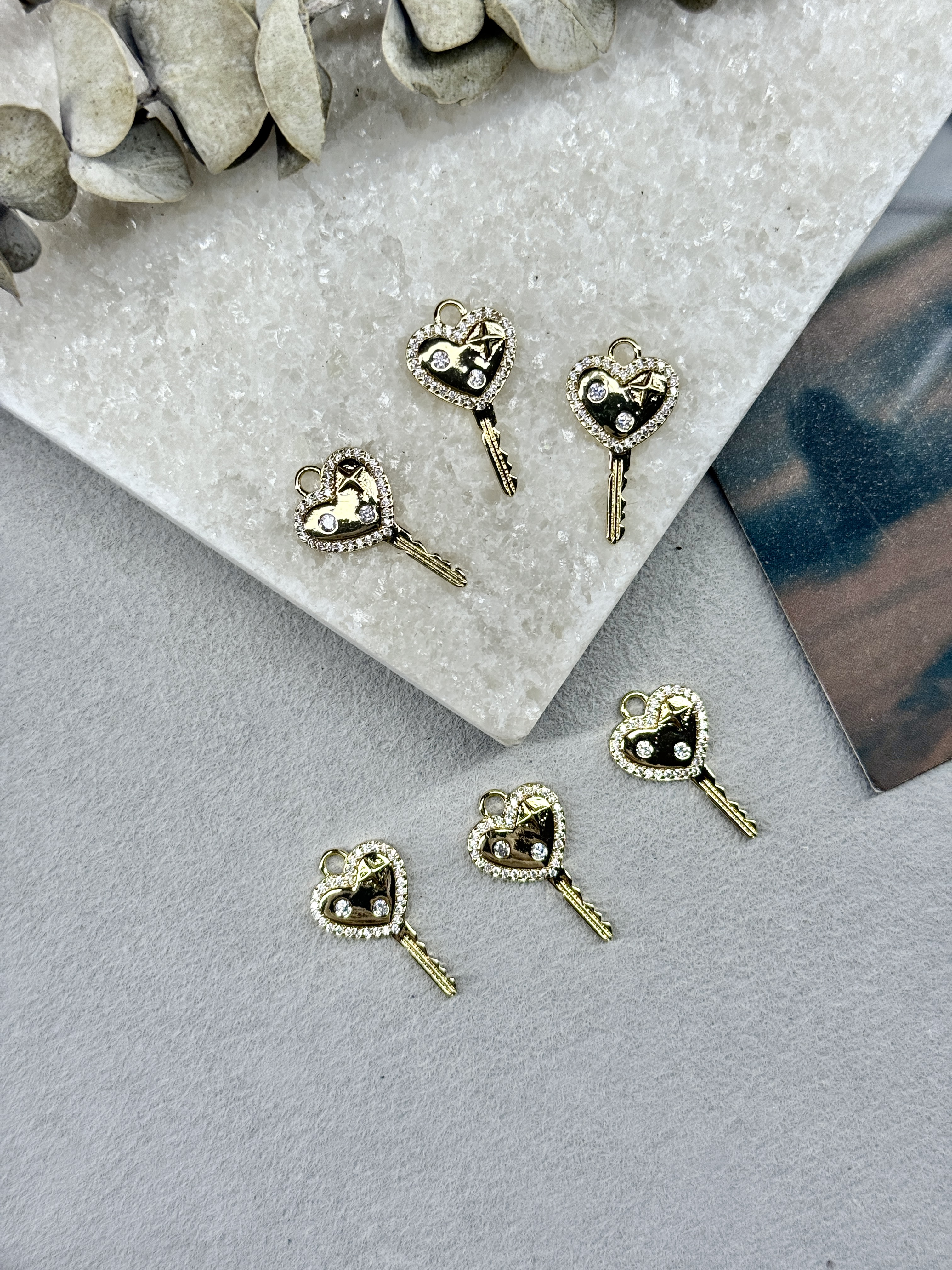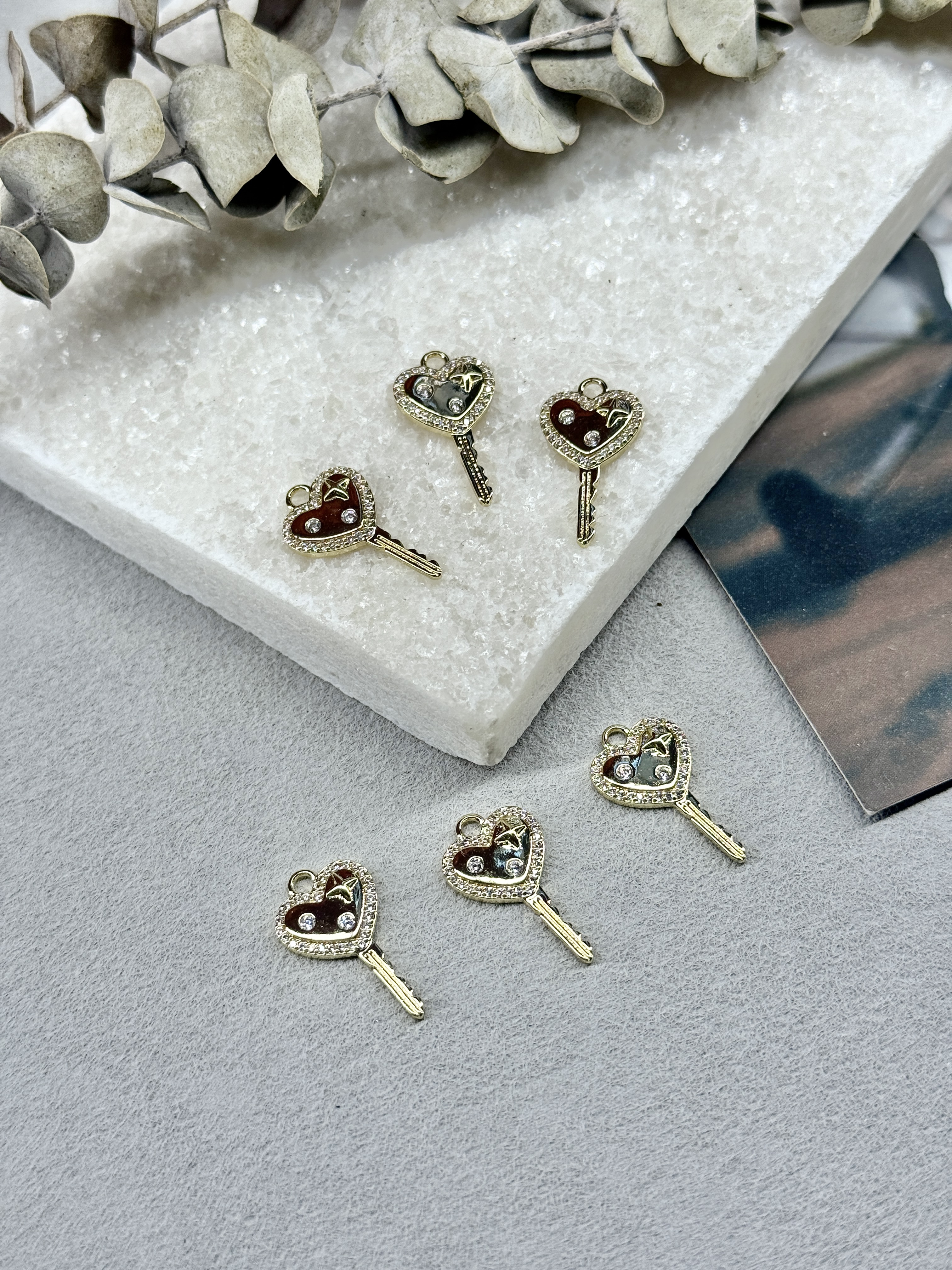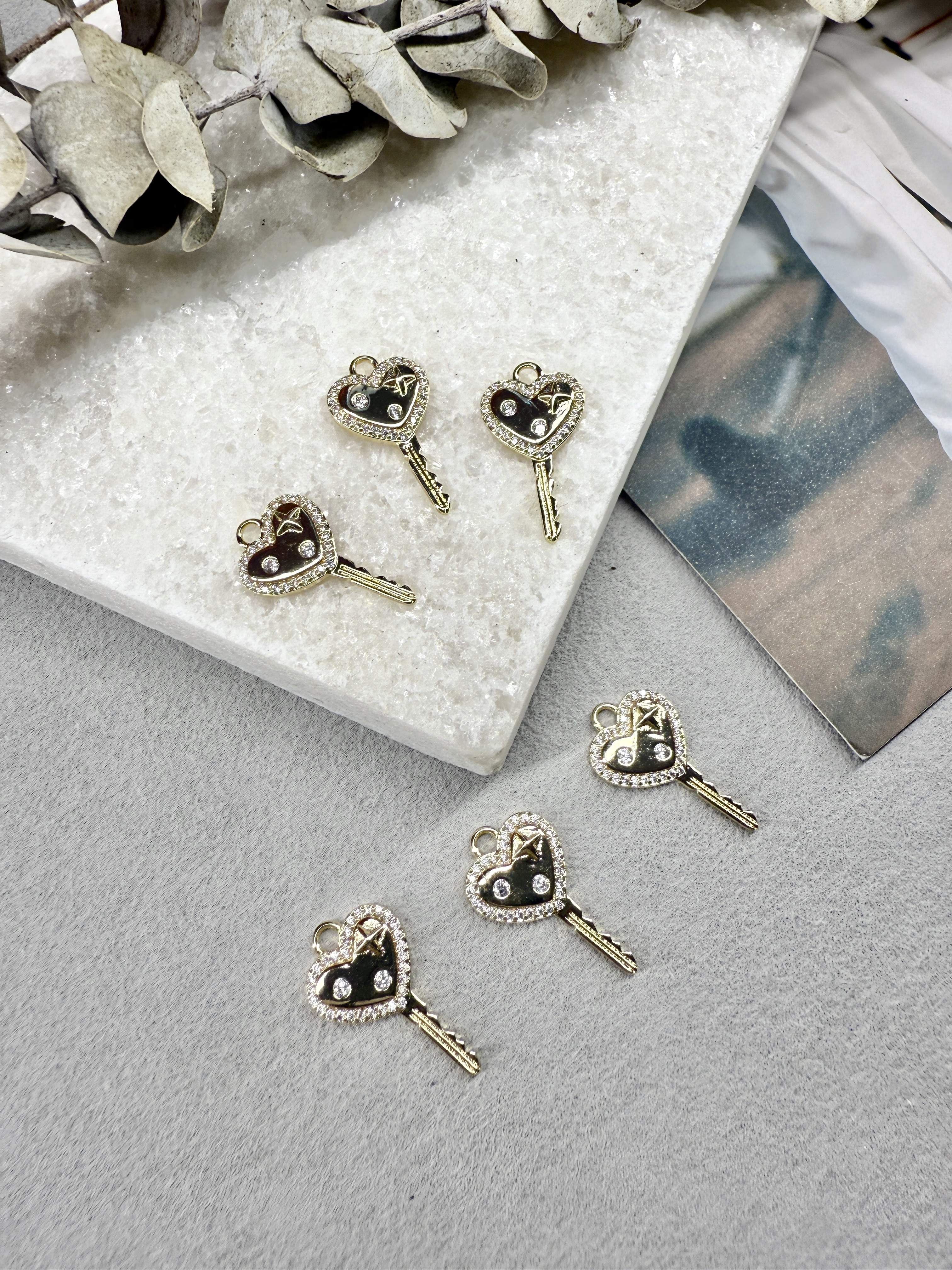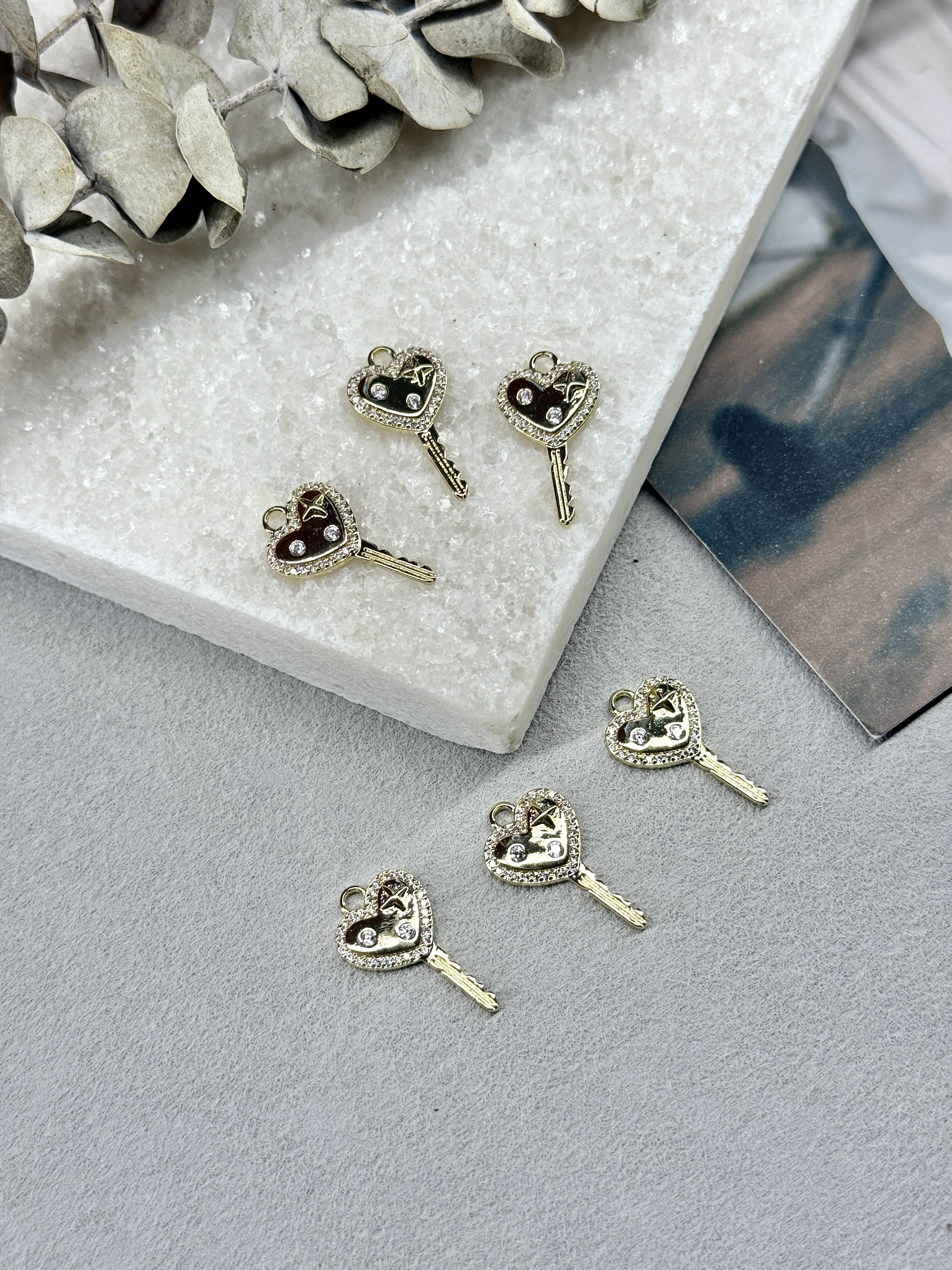 Подвеска в виде ключика с вставками фианита для создания украшений ручной работы. Гипоаллергенная фурнитура для сборки украшений.