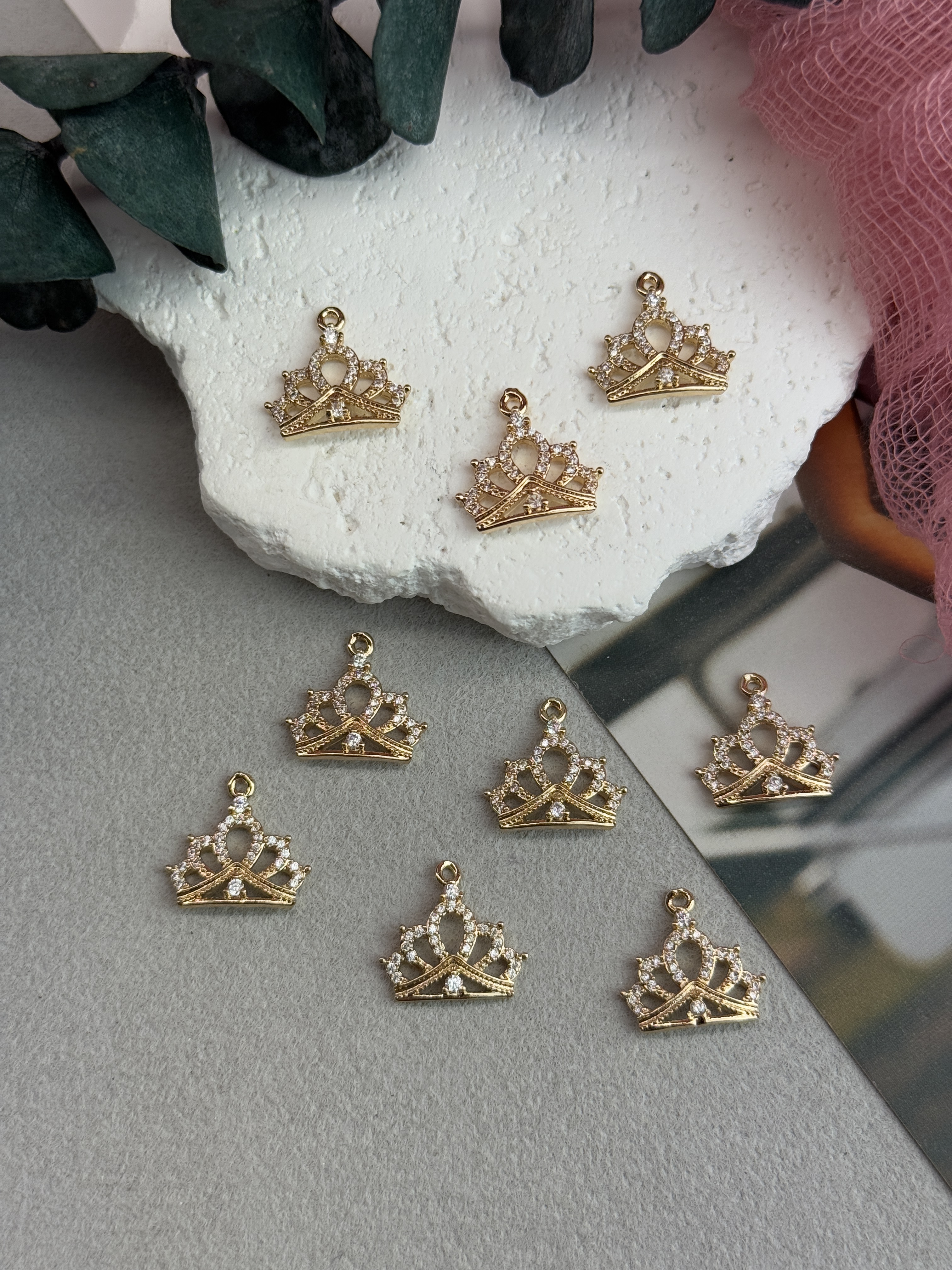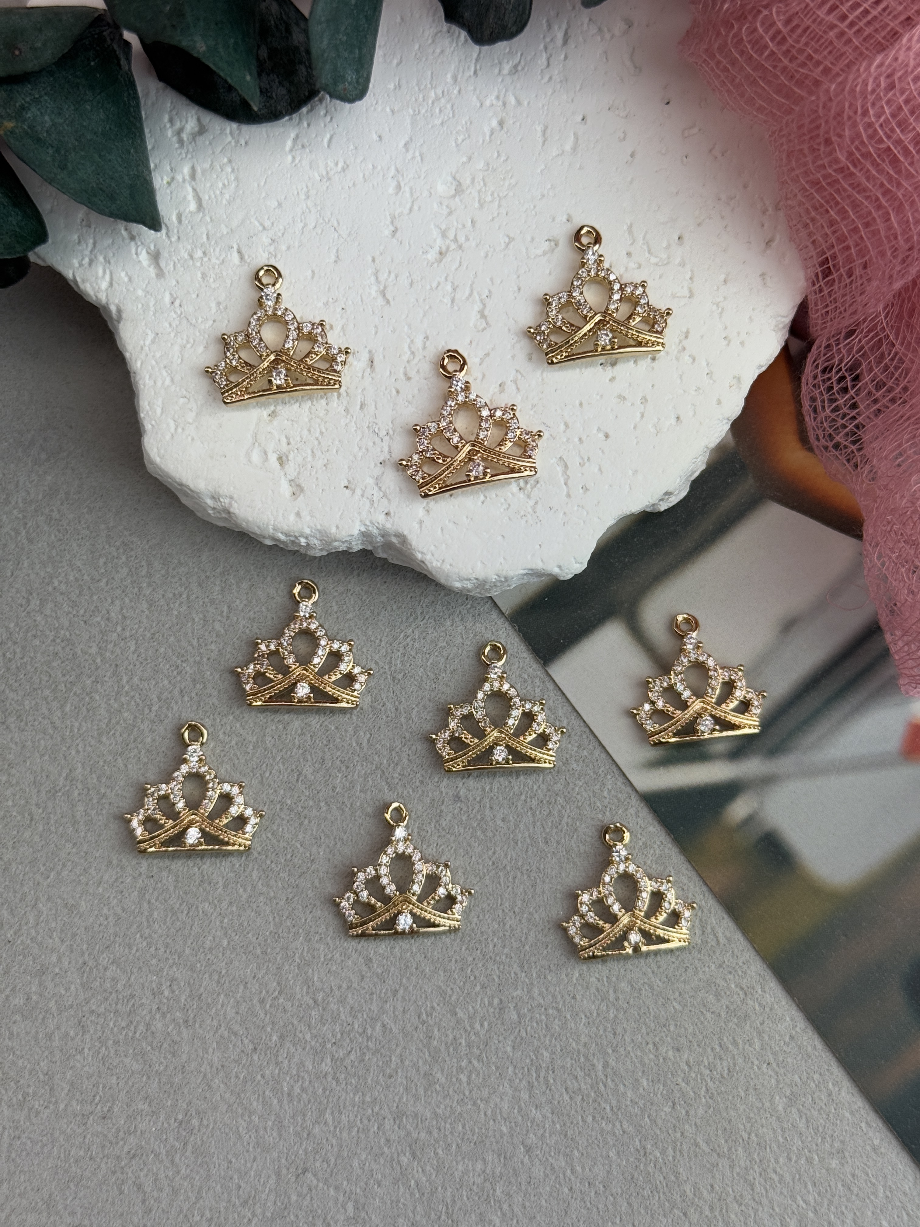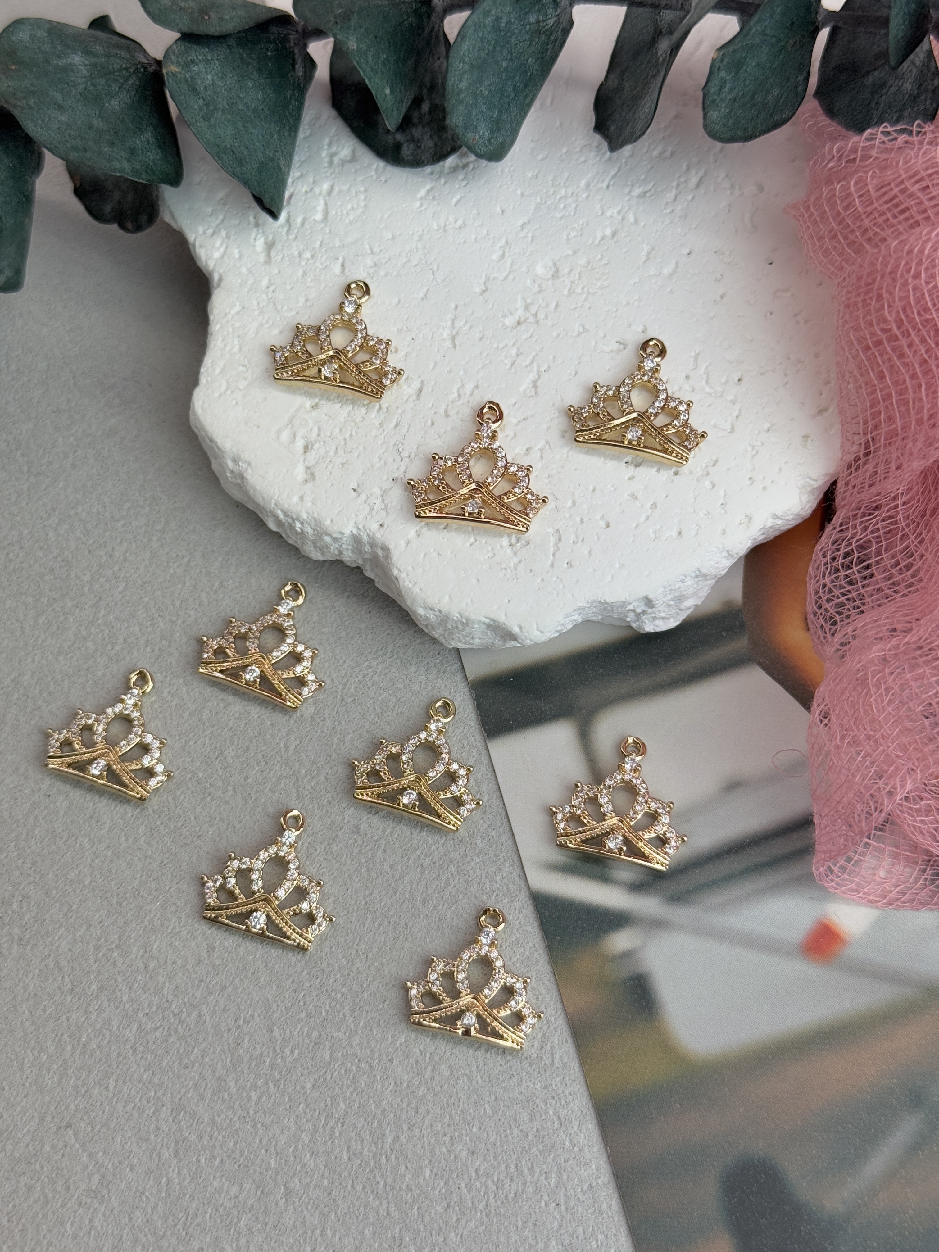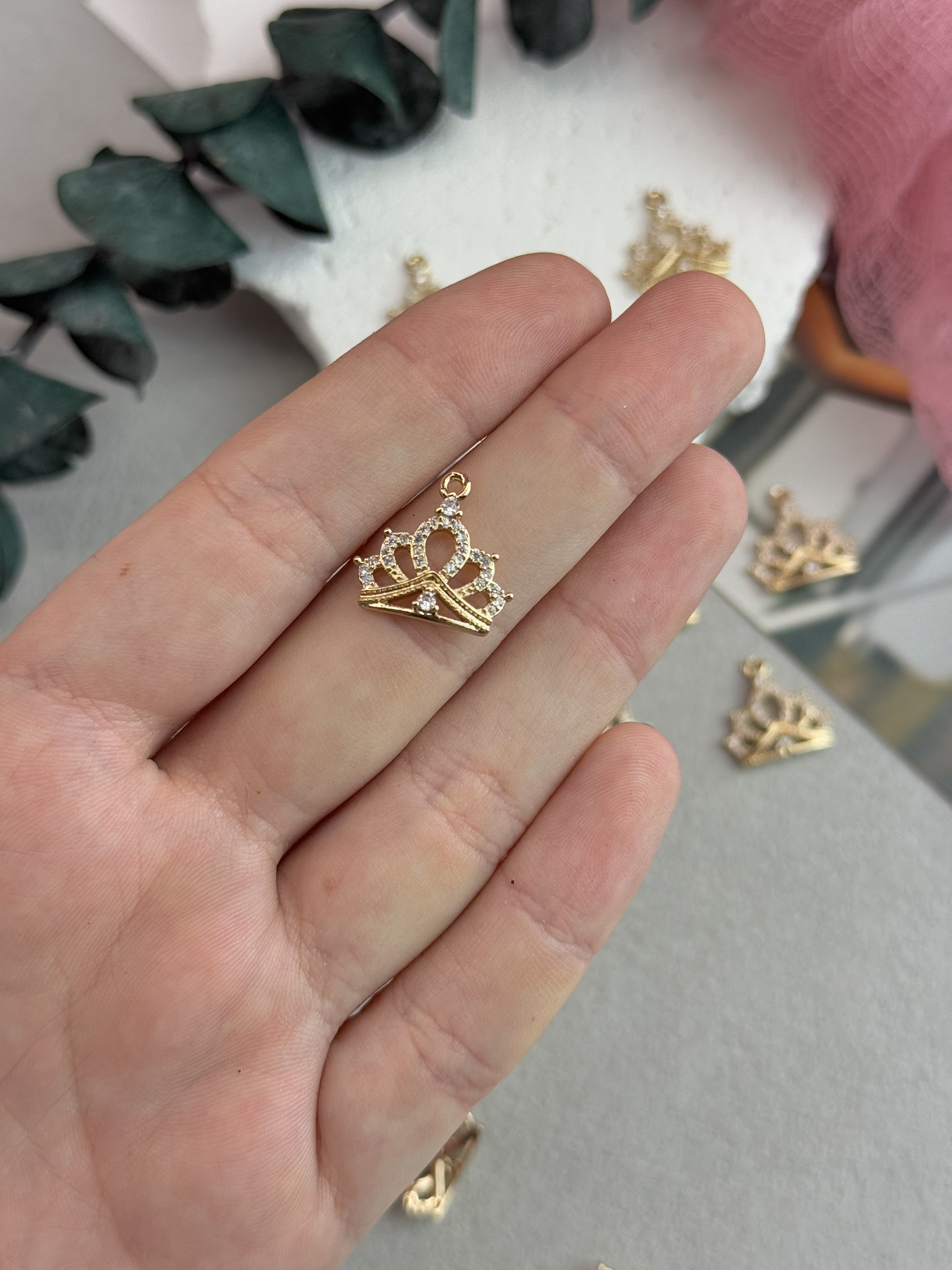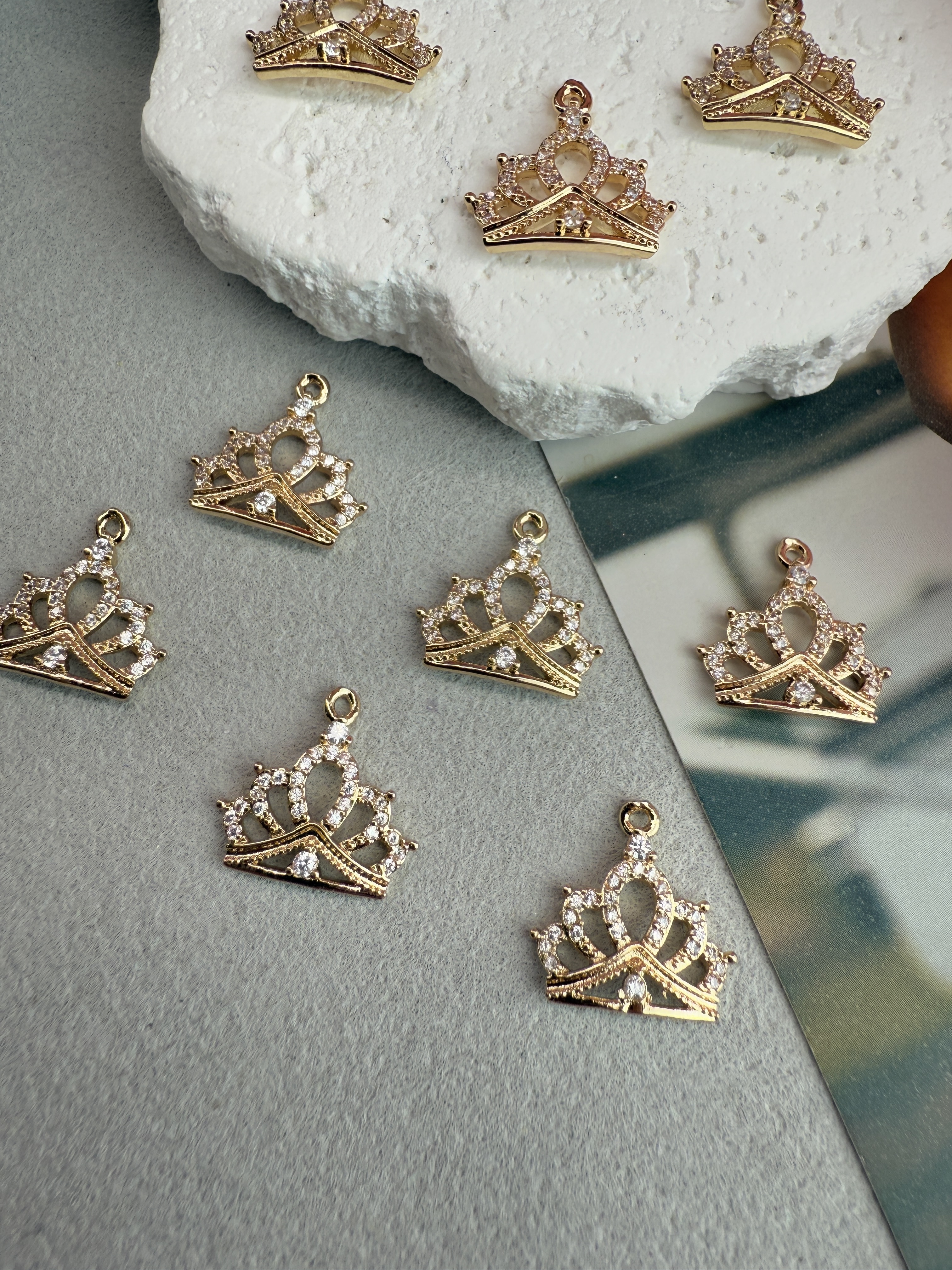 Подвеска «Корона» с фианитами, позолота 14к, 16*15 мм