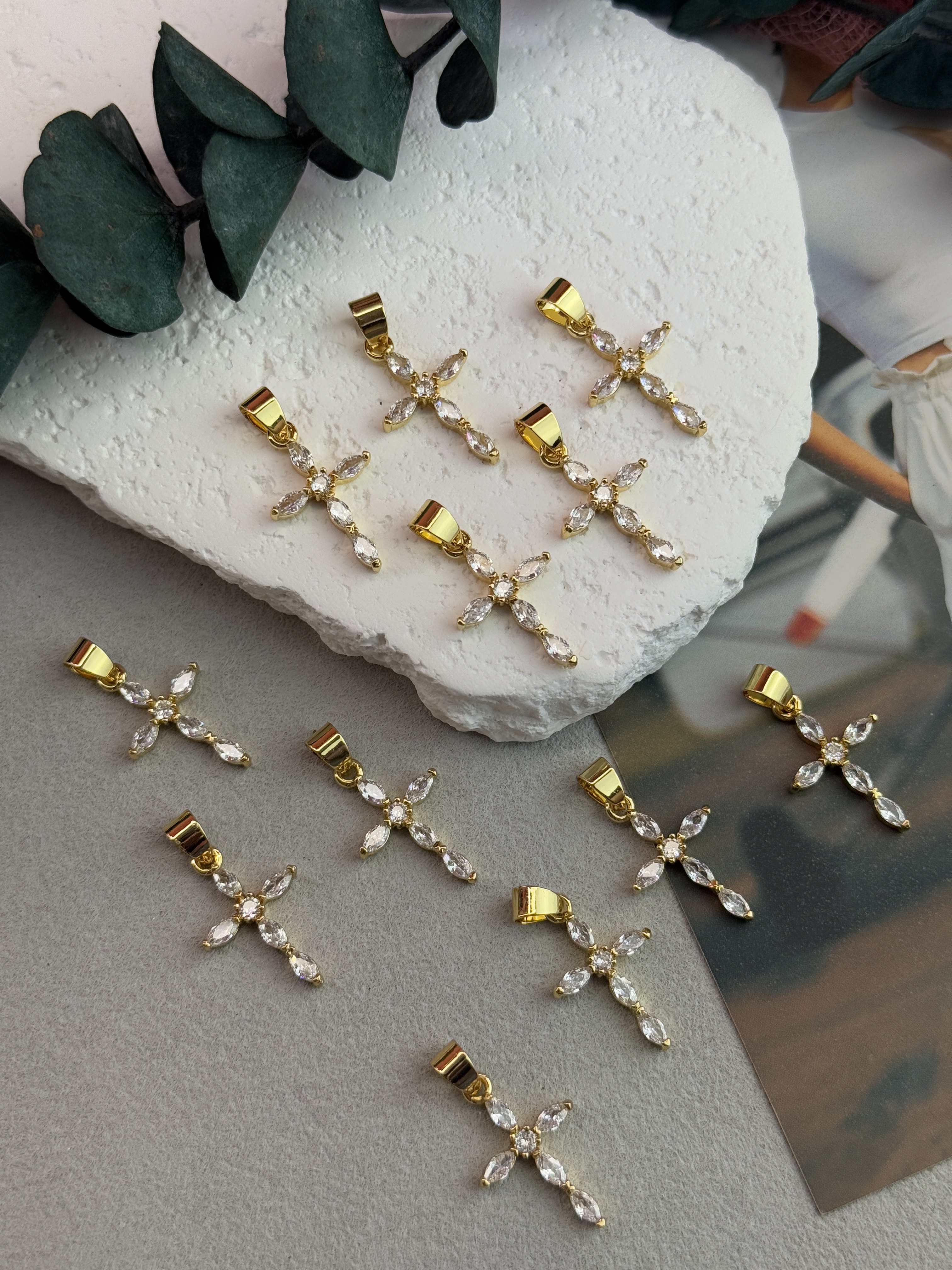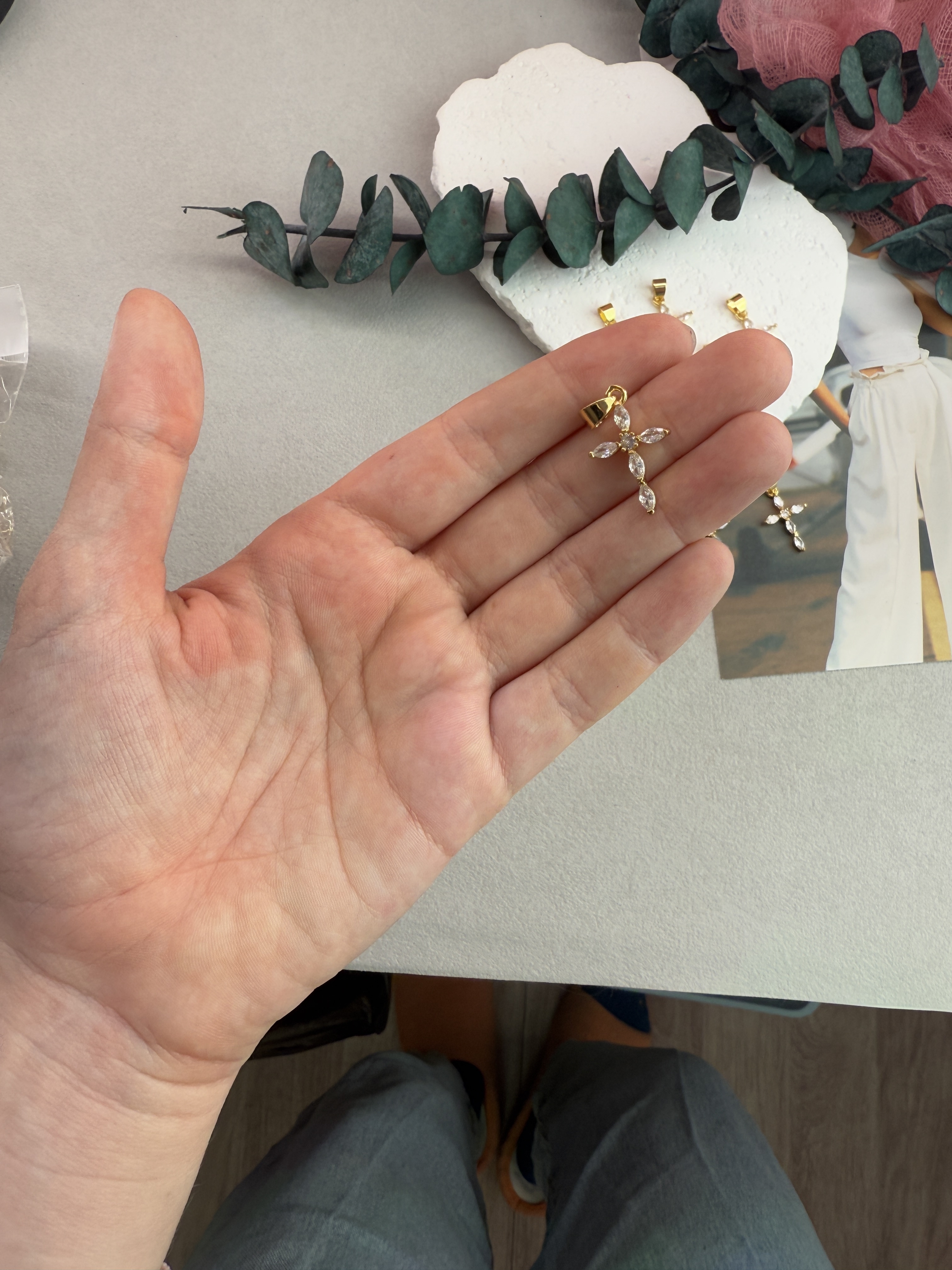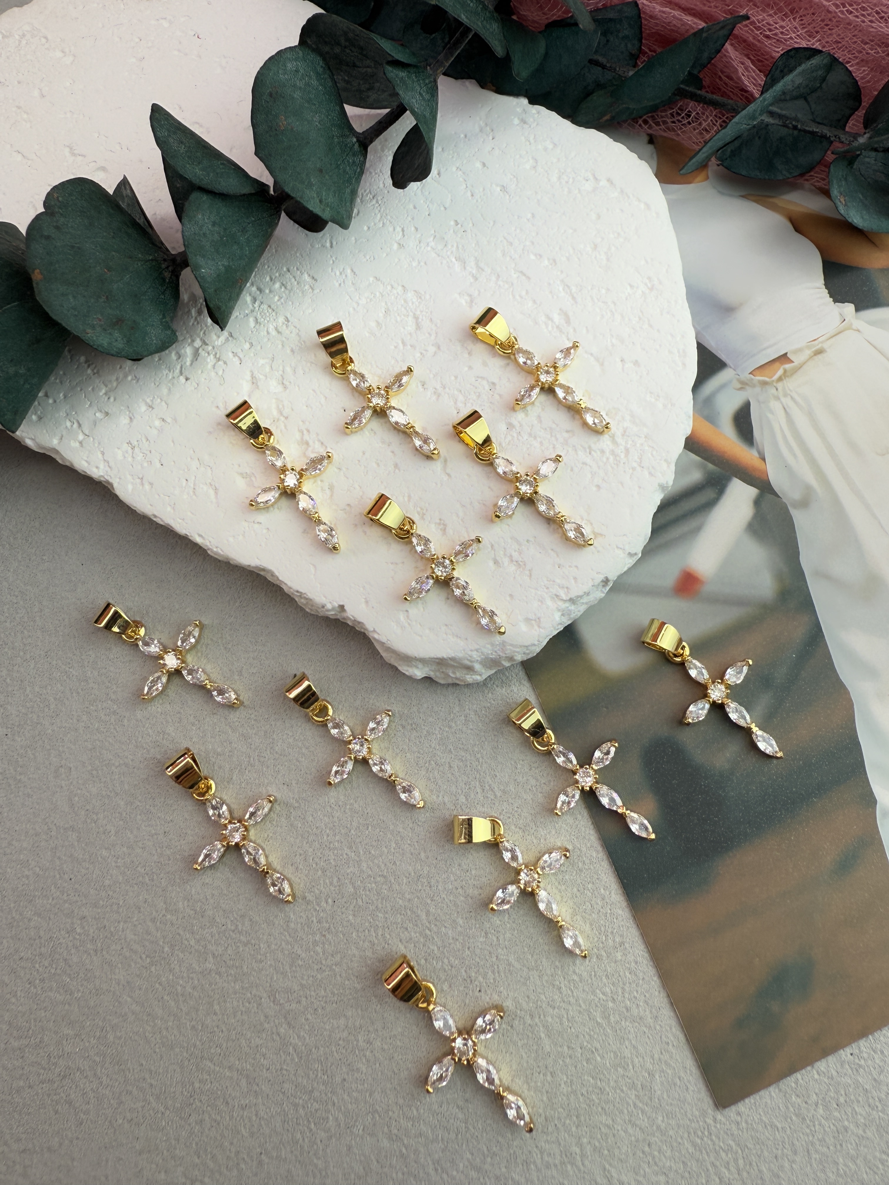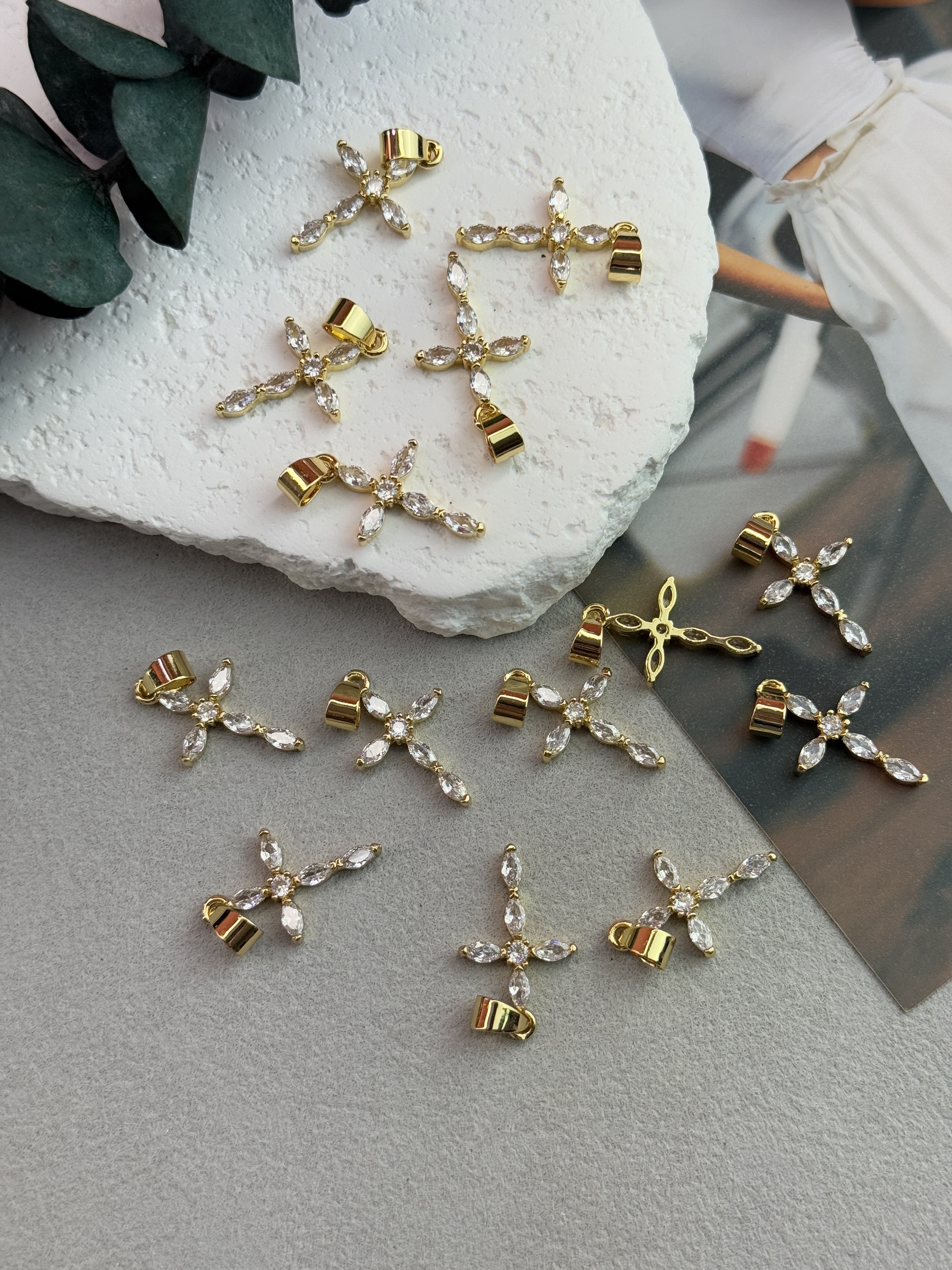 Подвеска в виде креста с вставками белых фианитов (циркона) для создания украшений ручной работы. Гипоаллергенная фурнитура для сборки украшений.