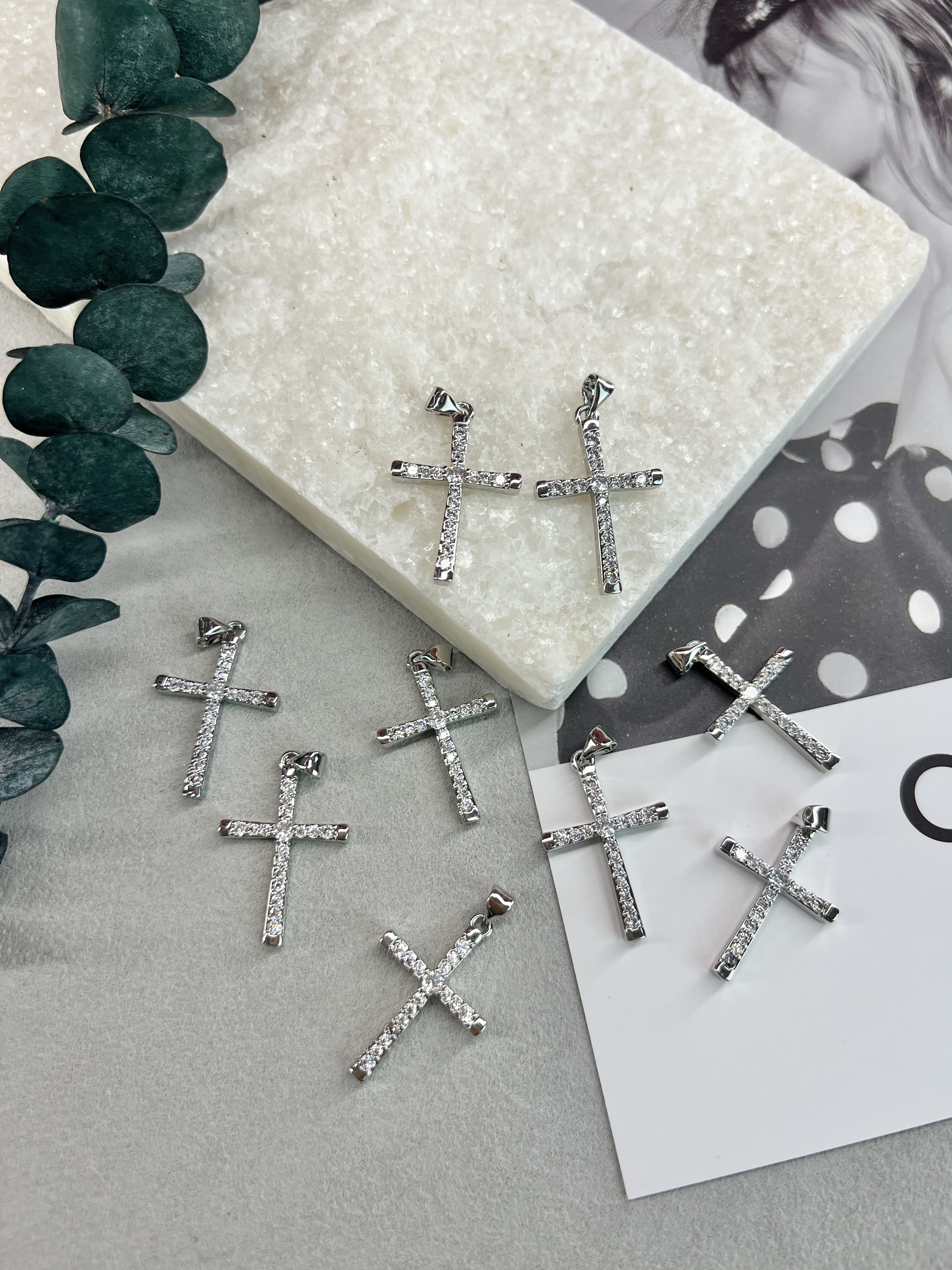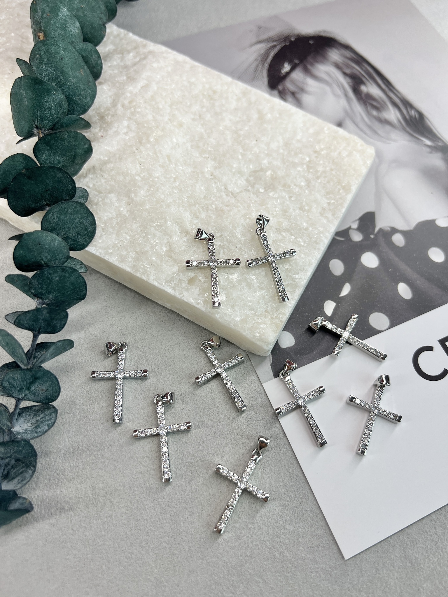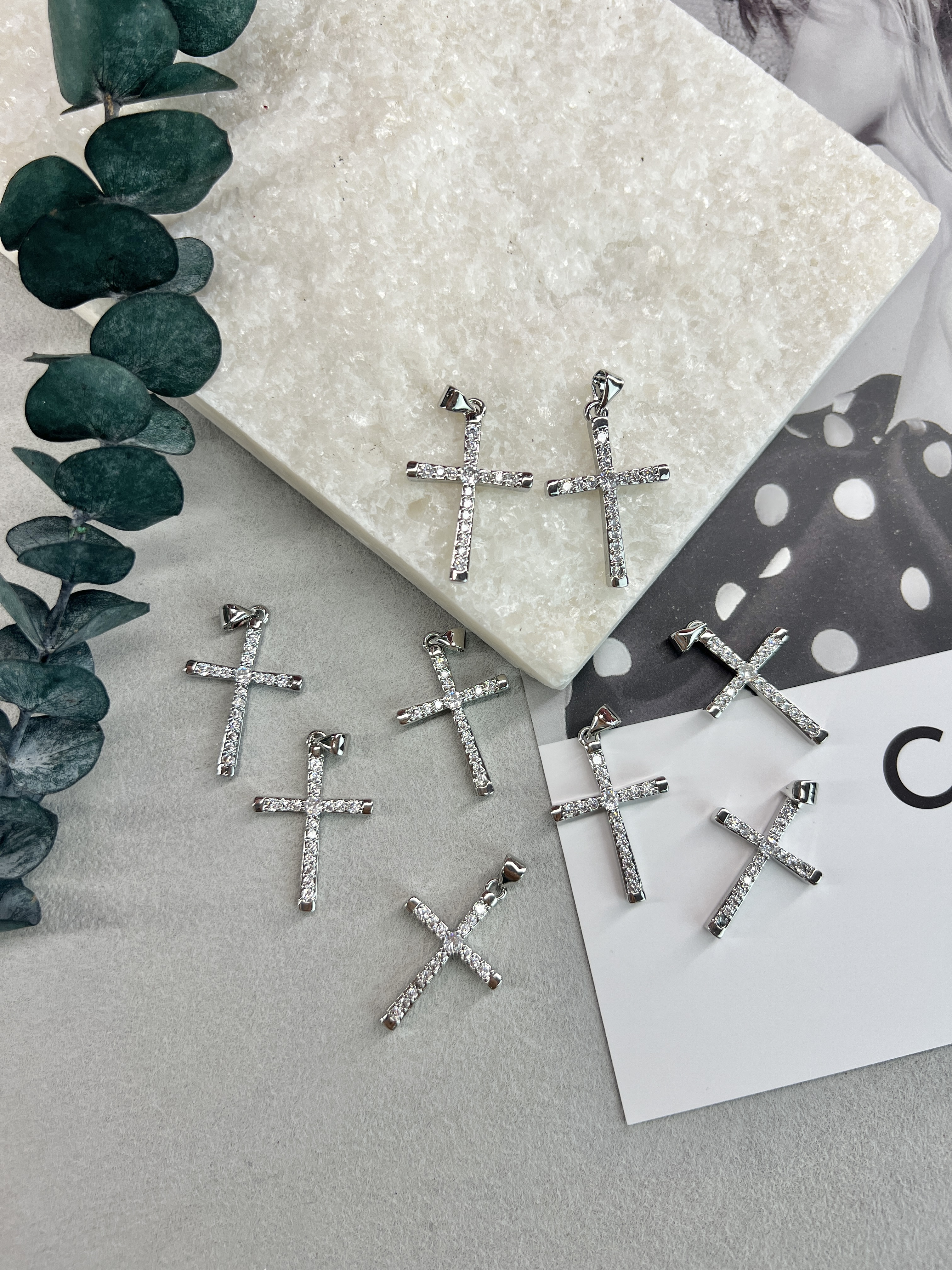 Подвеска в виде креста с вставками белых фианитов (циркона) для создания украшений ручной работы. Гипоаллергенная фурнитура для сборки украшений.