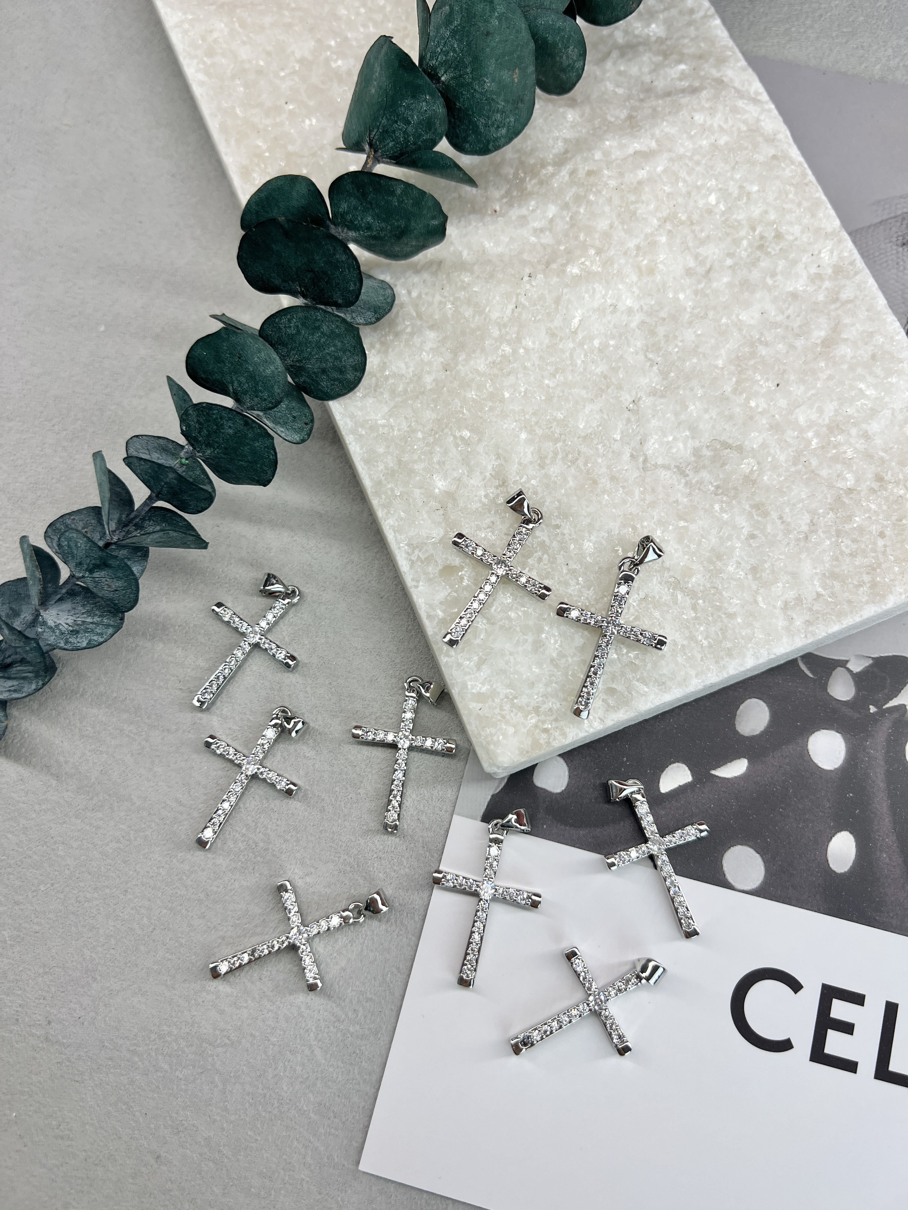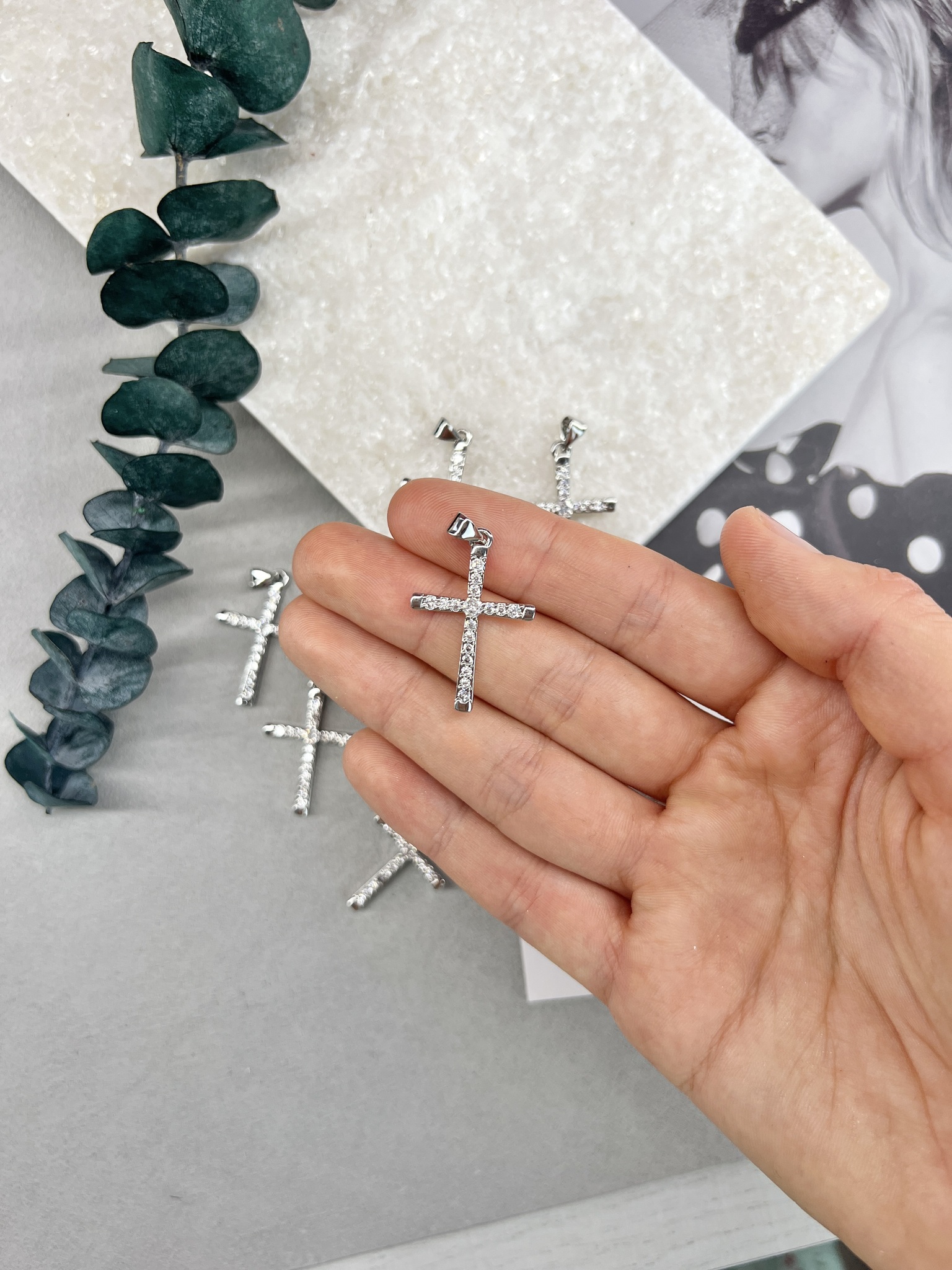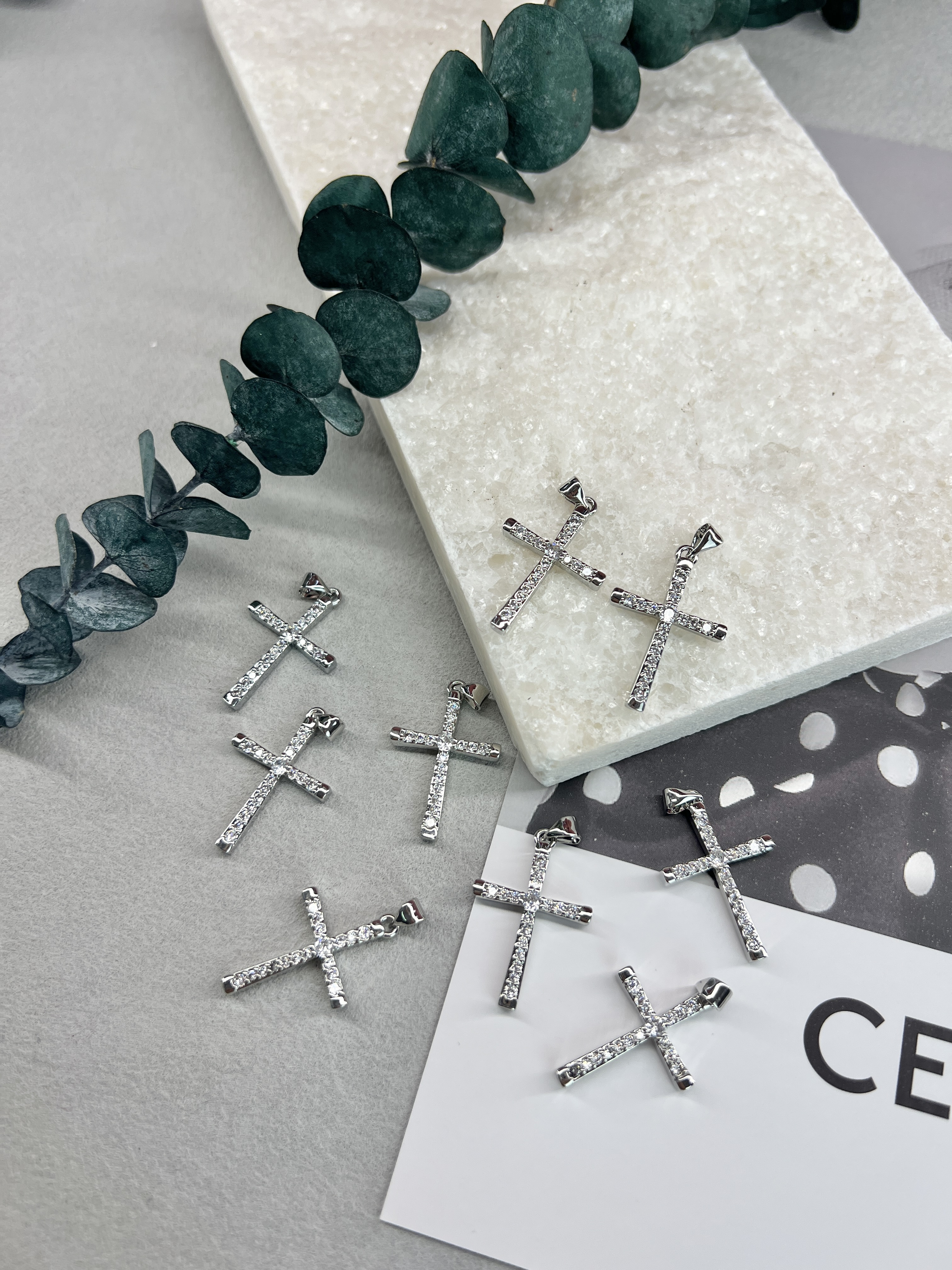 Подвеска в виде креста с вставками белых фианитов (циркона) для создания украшений ручной работы. Гипоаллергенная фурнитура для сборки украшений.