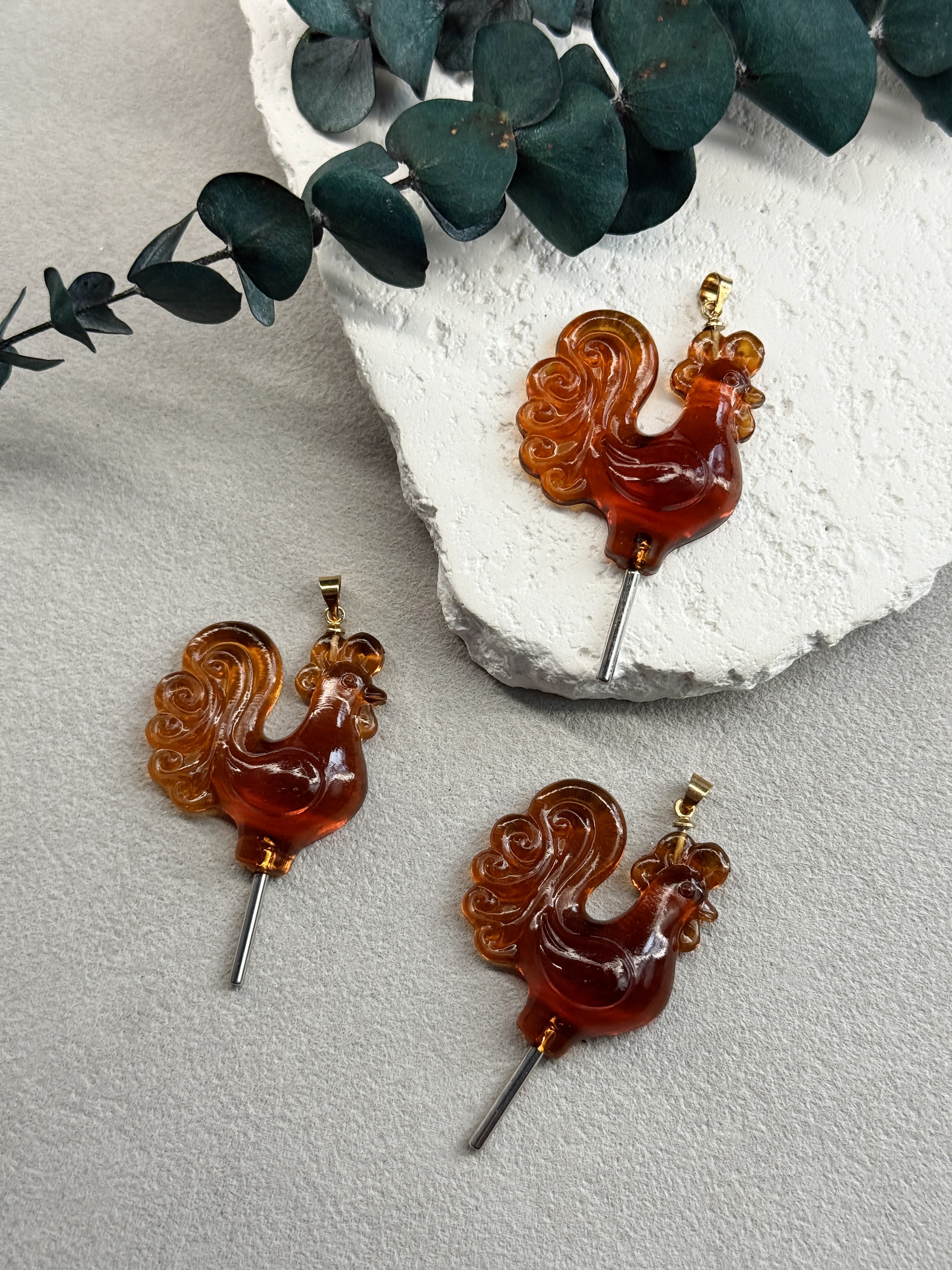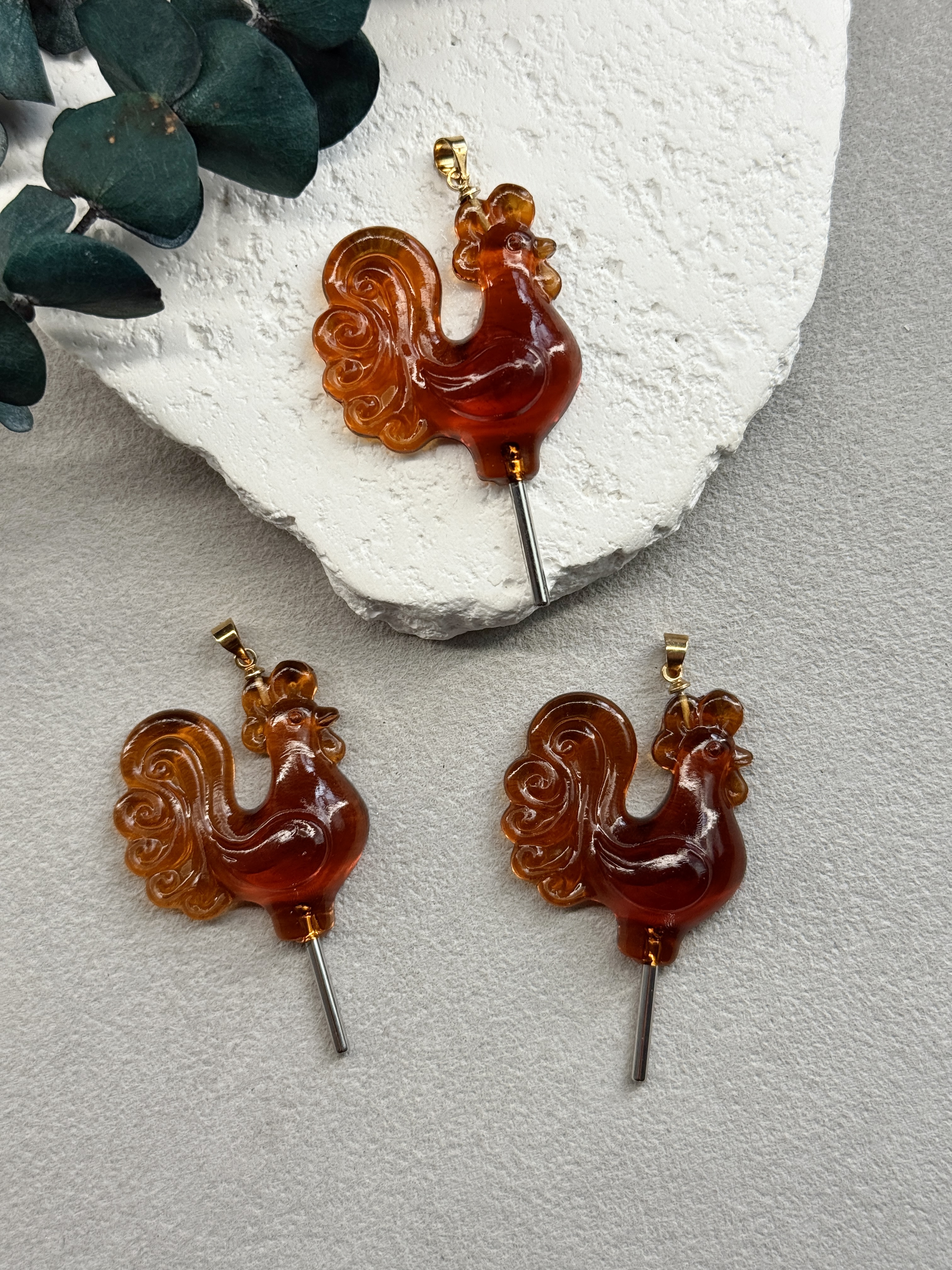 Подвеска "Петушок на палочке" ручной работы, бейл и палочка-родий, карамель
