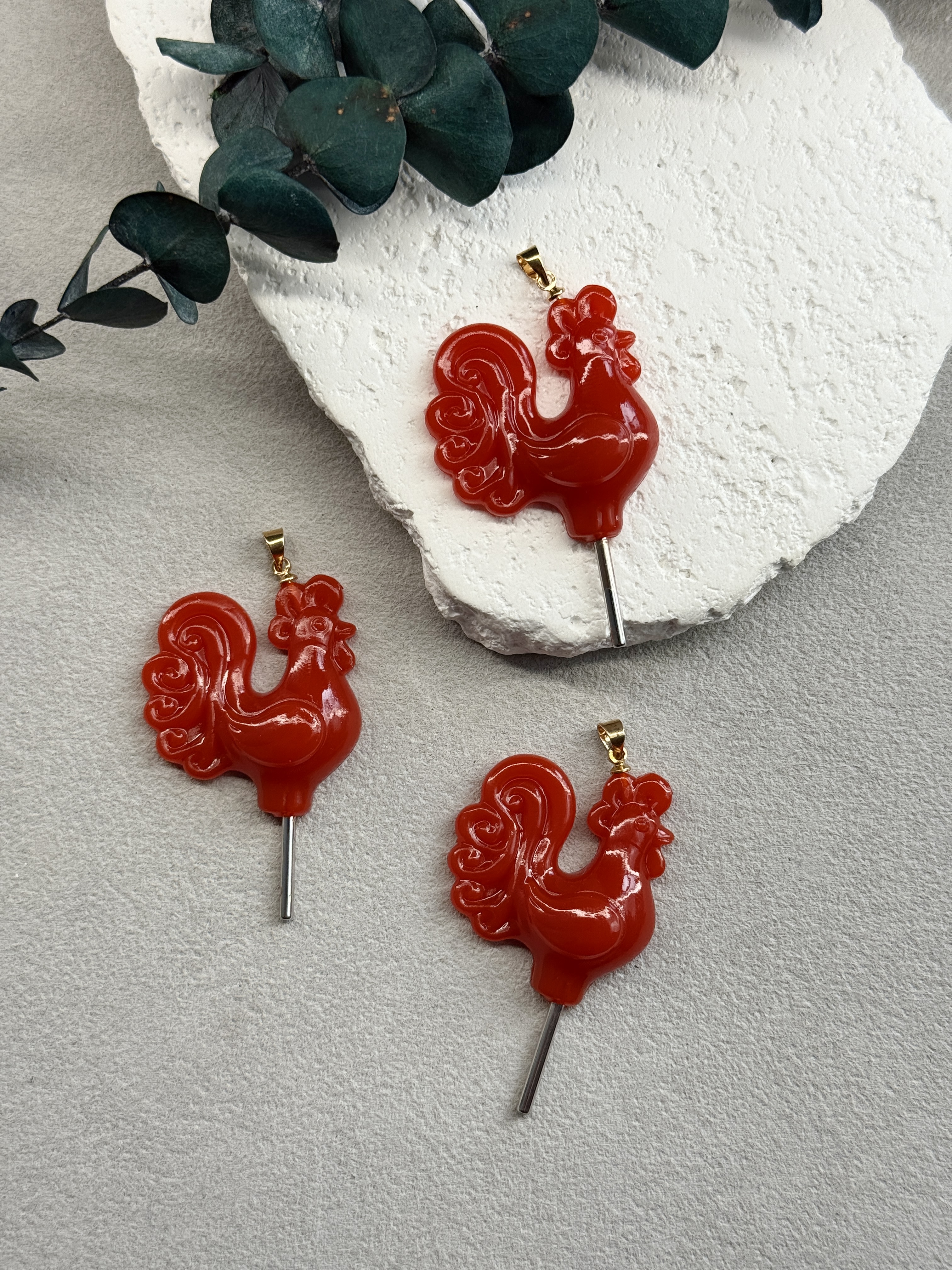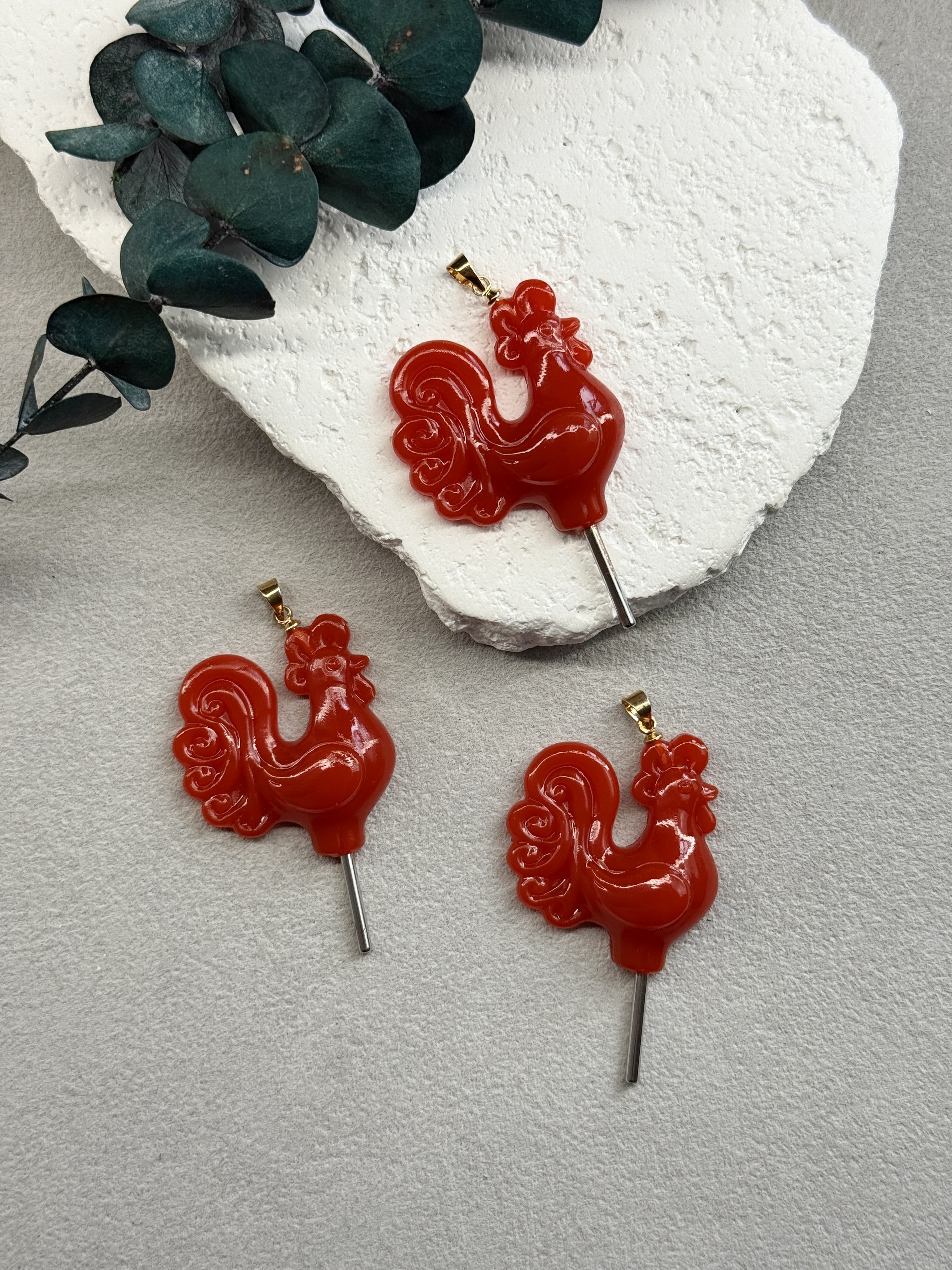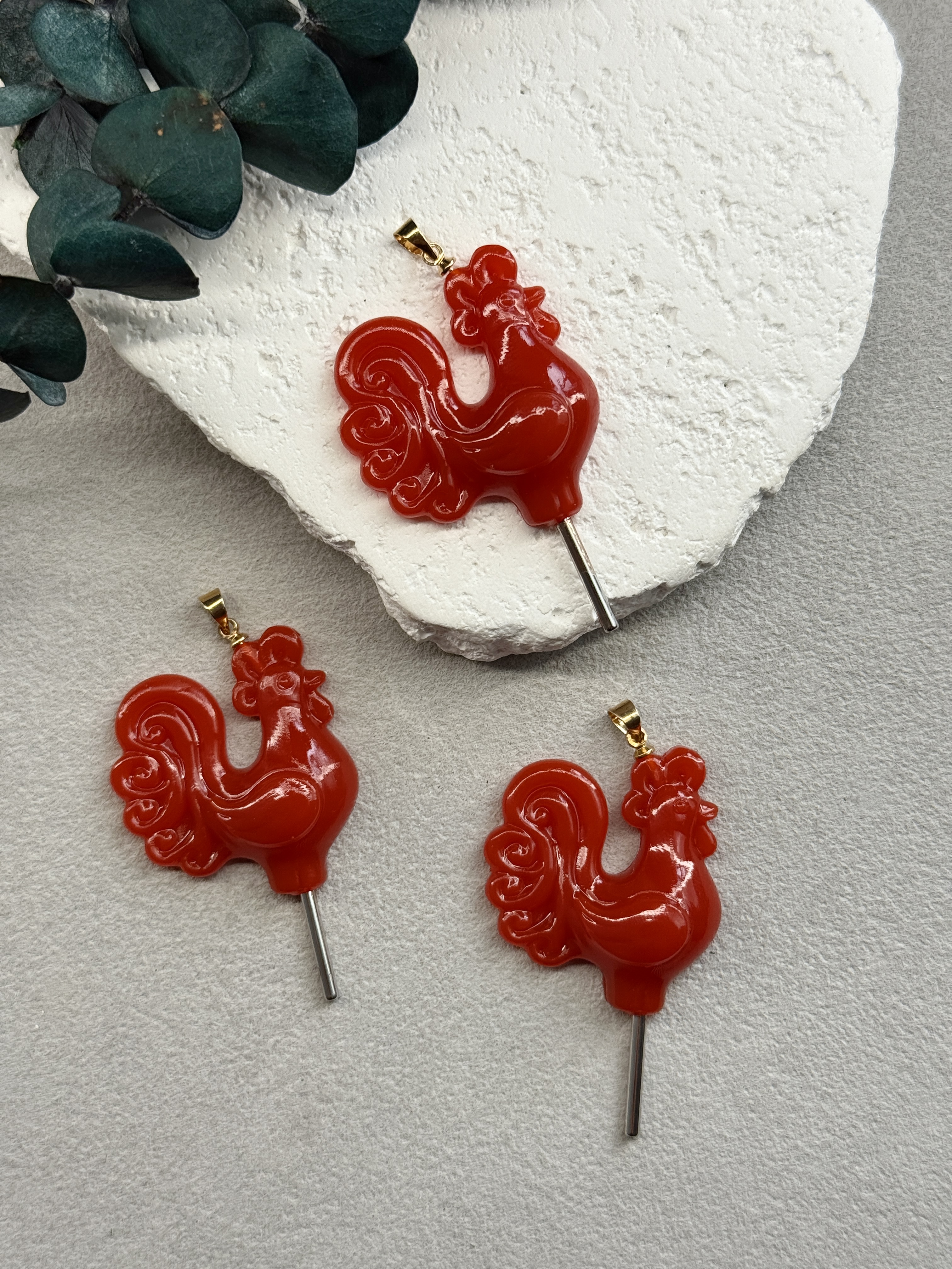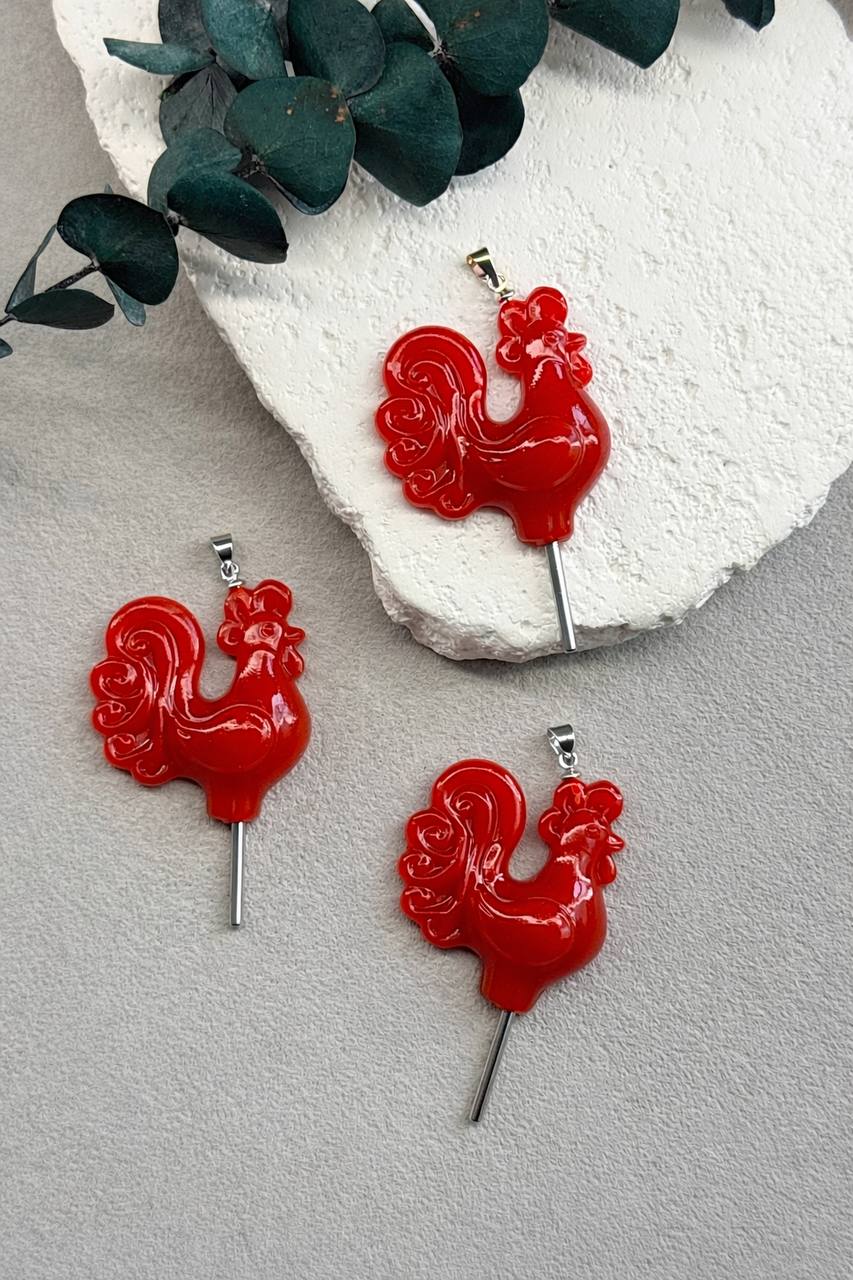 Подвеска "Петушок на палочке" ручной работы, бейл и палочка-родий, красный