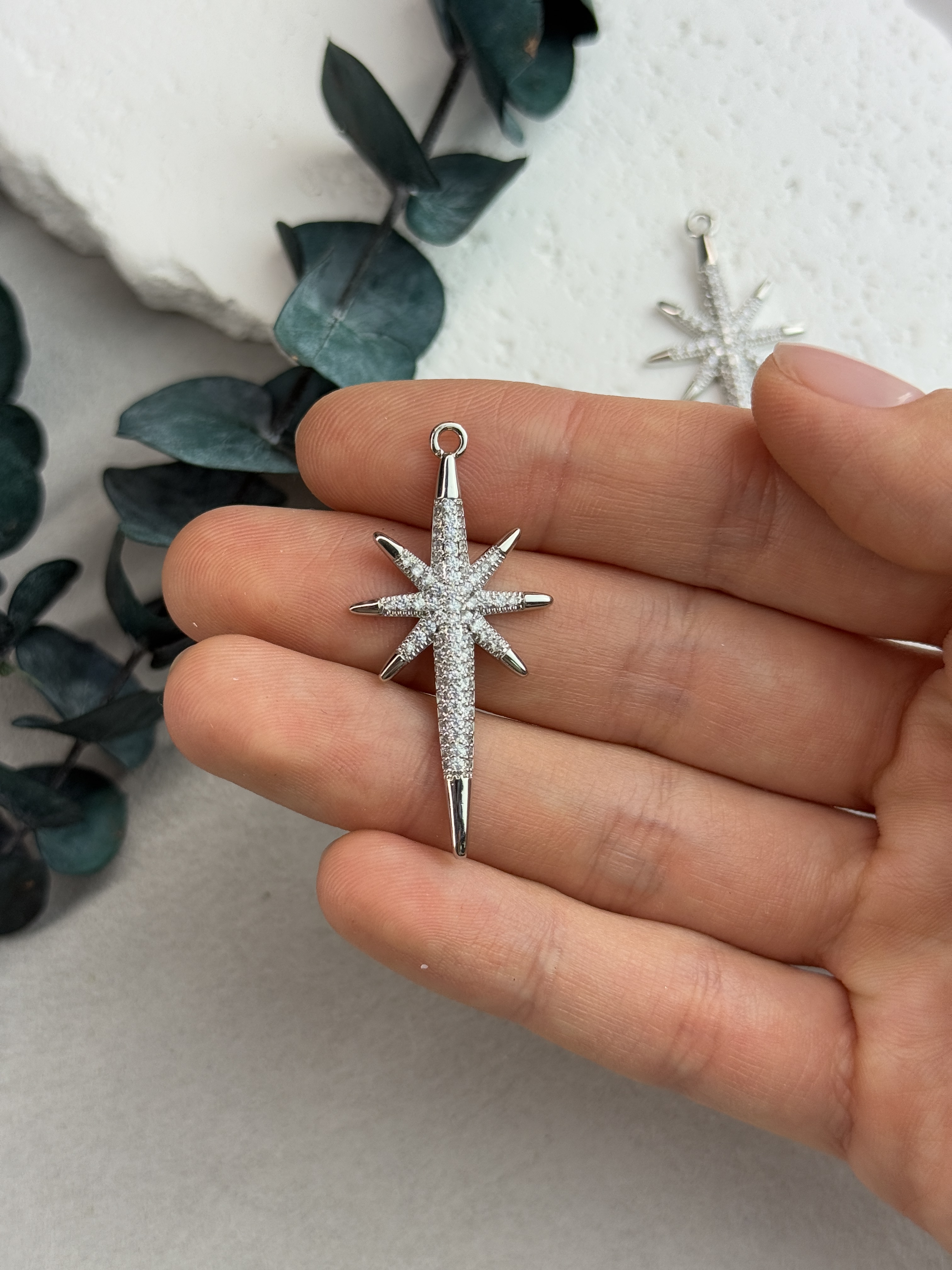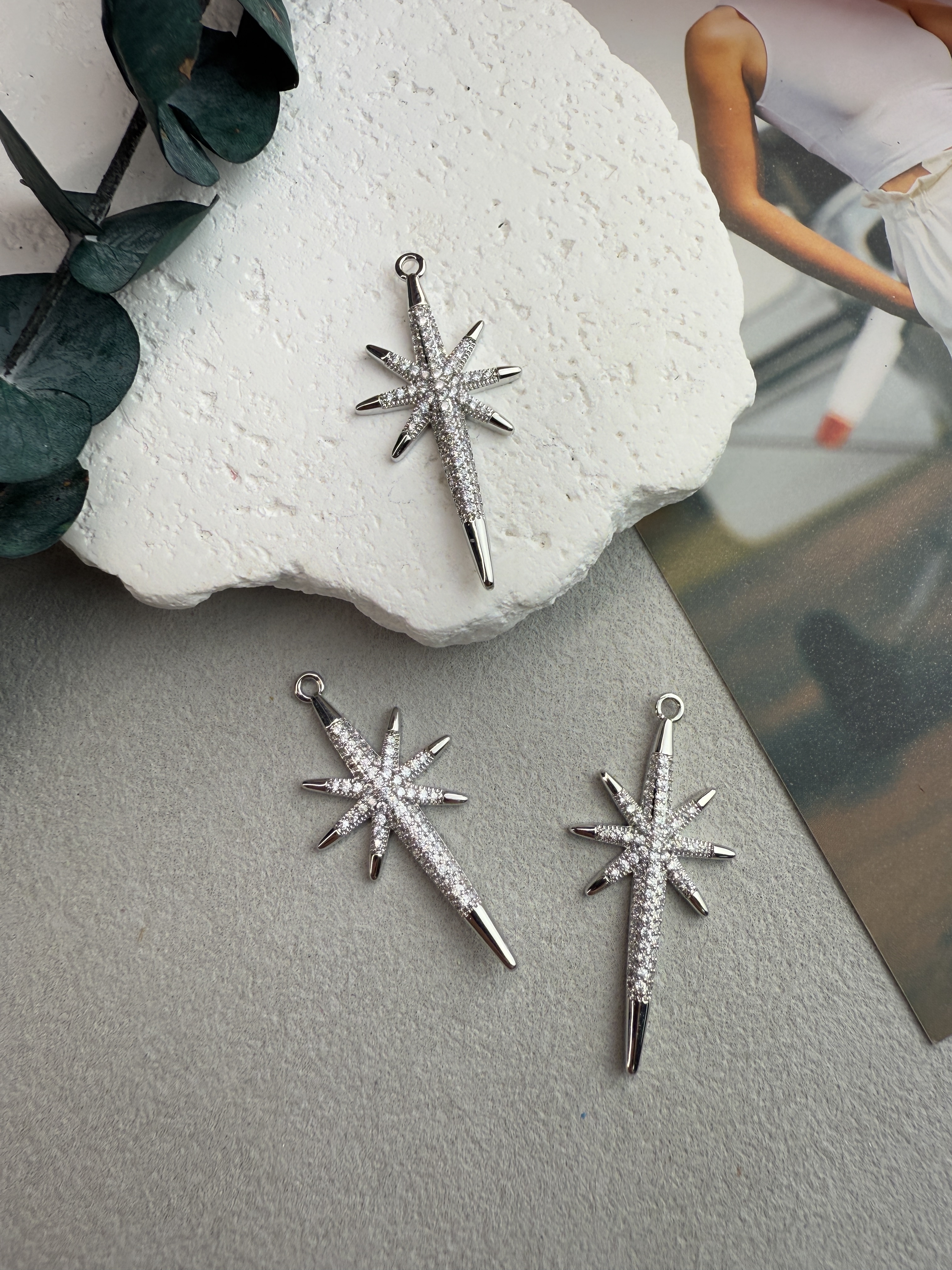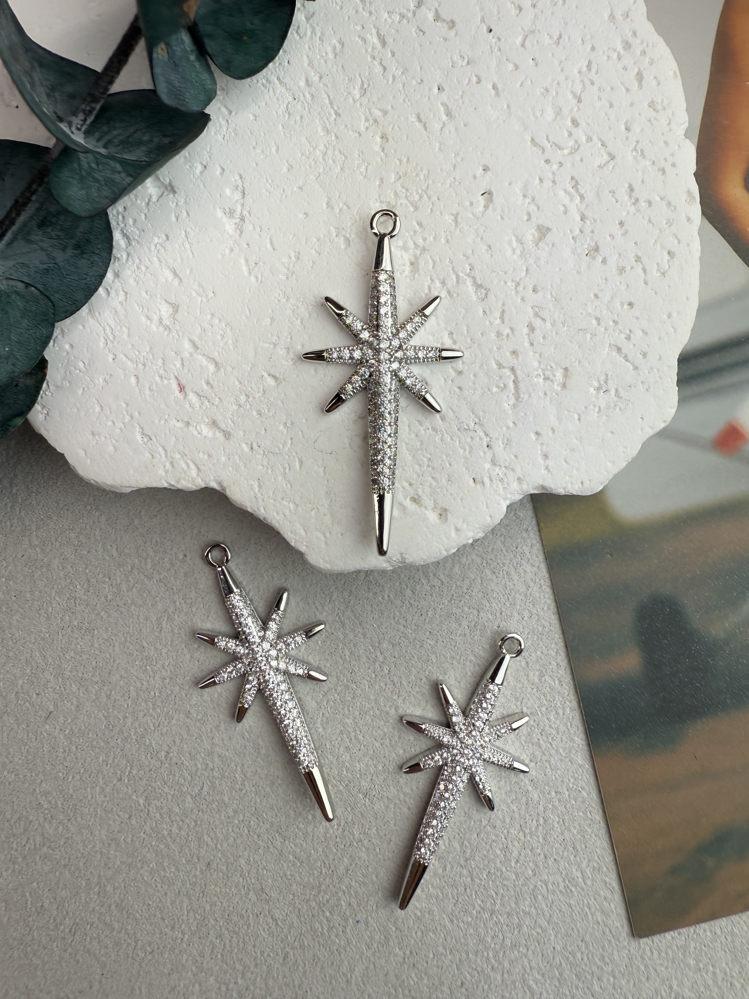 Подвеска в виде звезды с вставками белых фианитов (циркона) для создания украшений ручной работы. Гипоаллергенная фурнитура для сборки украшений.