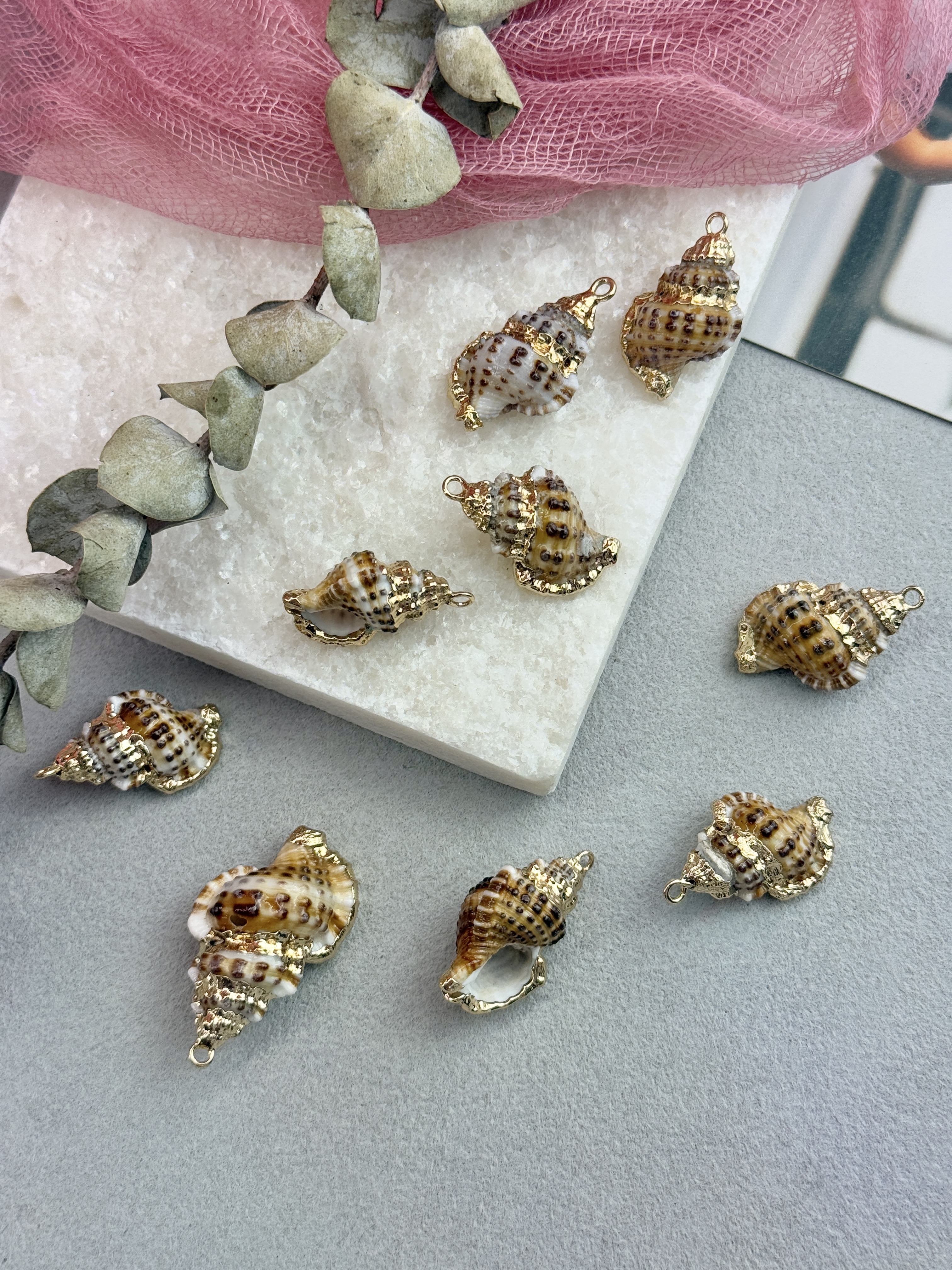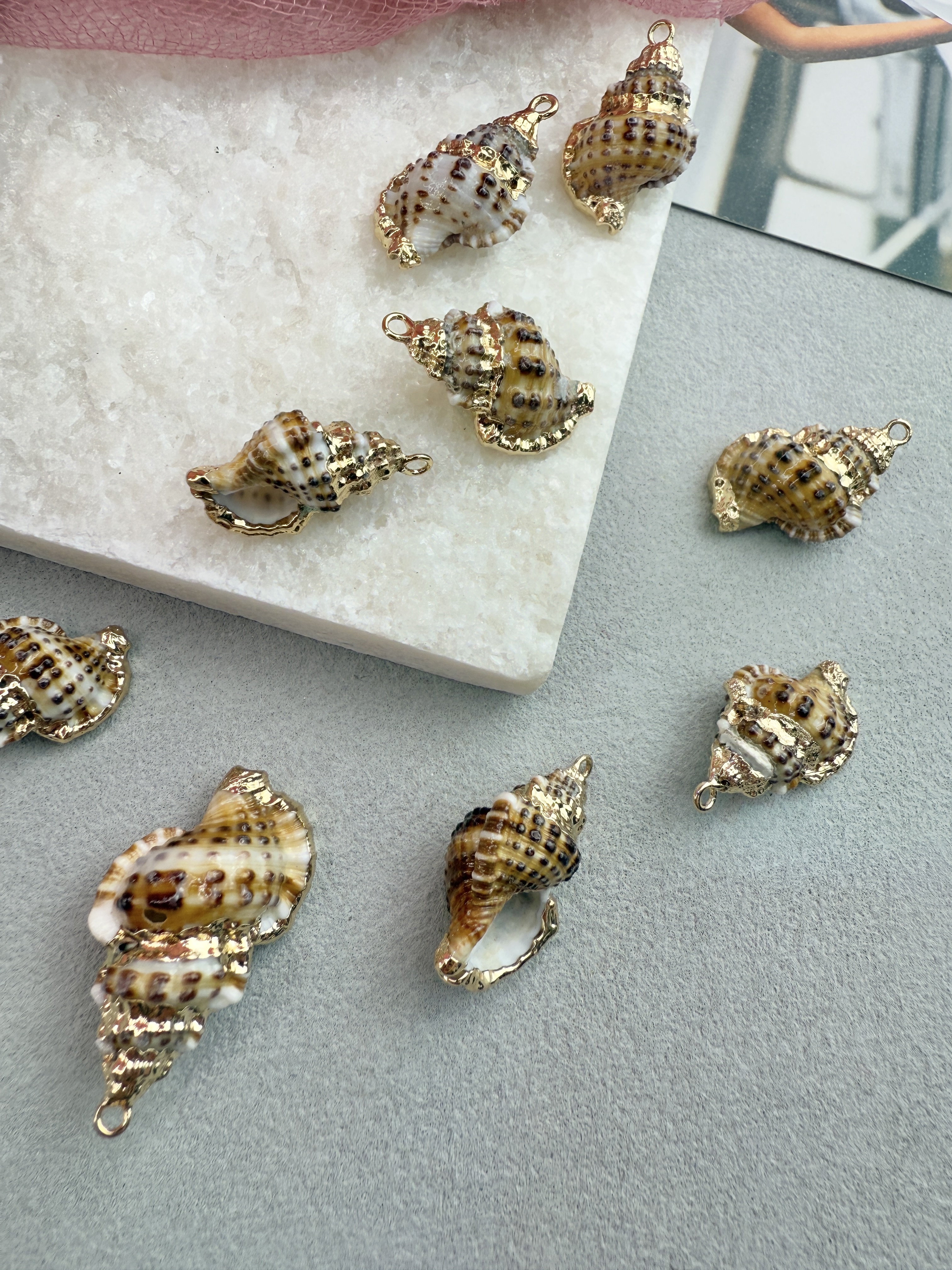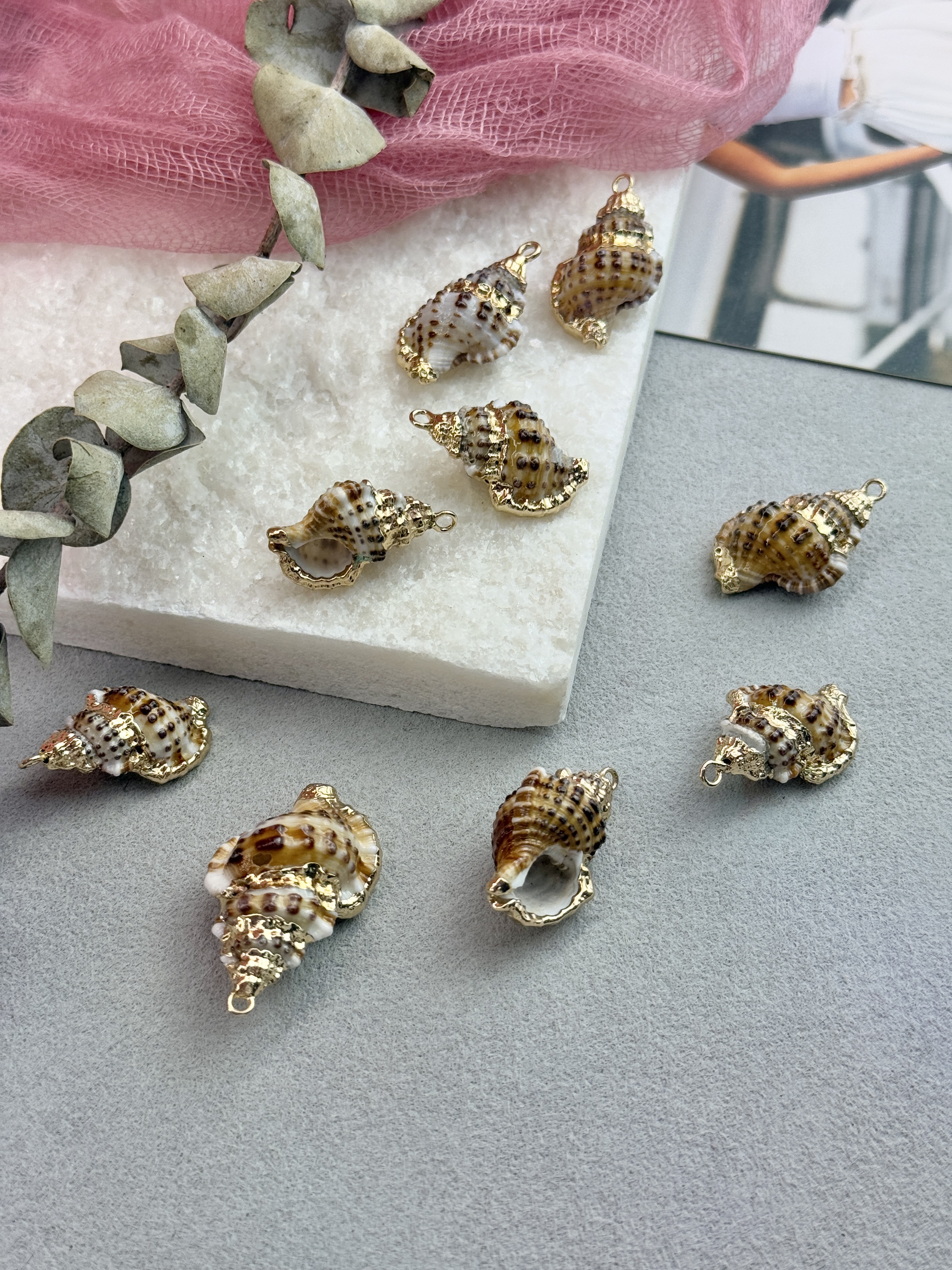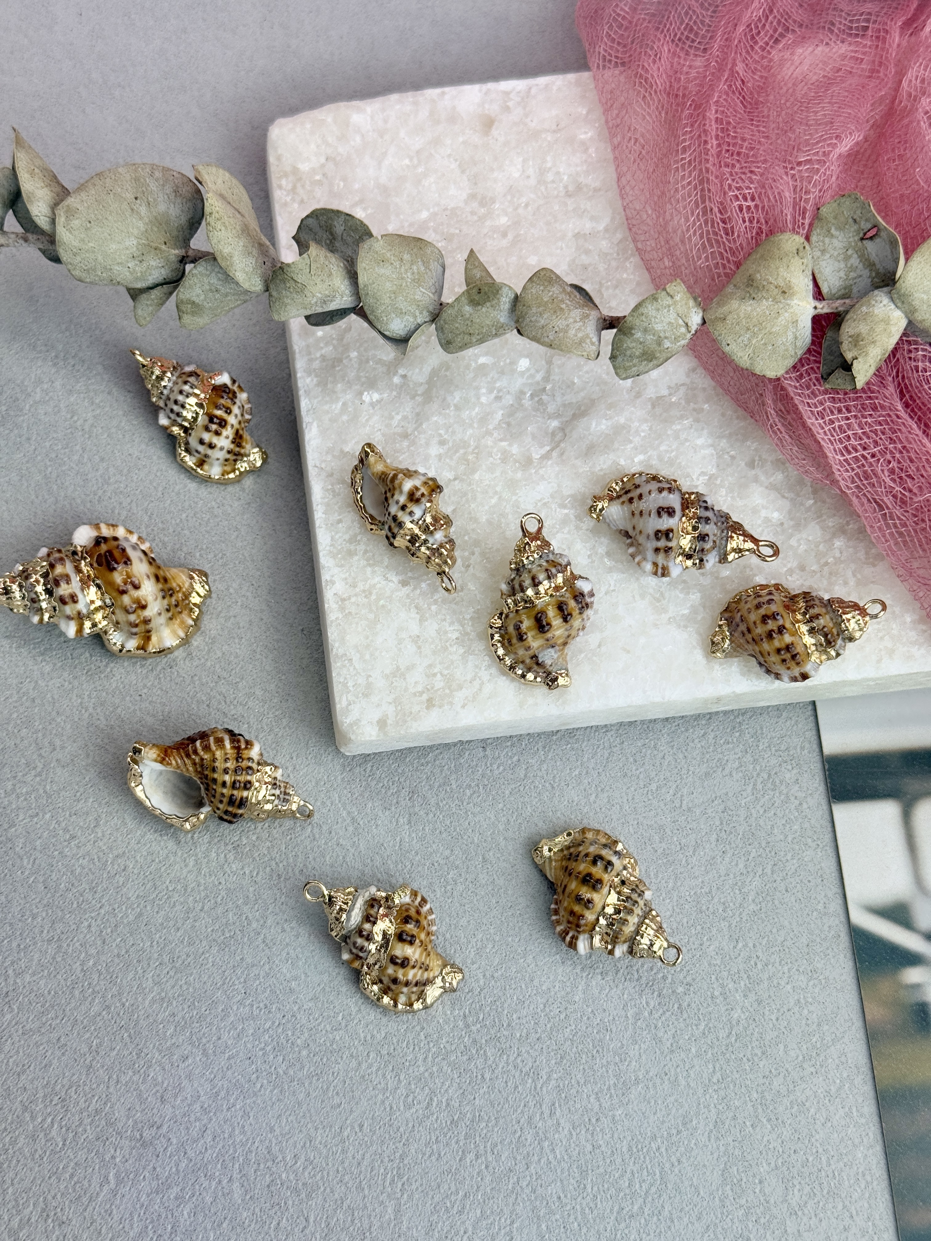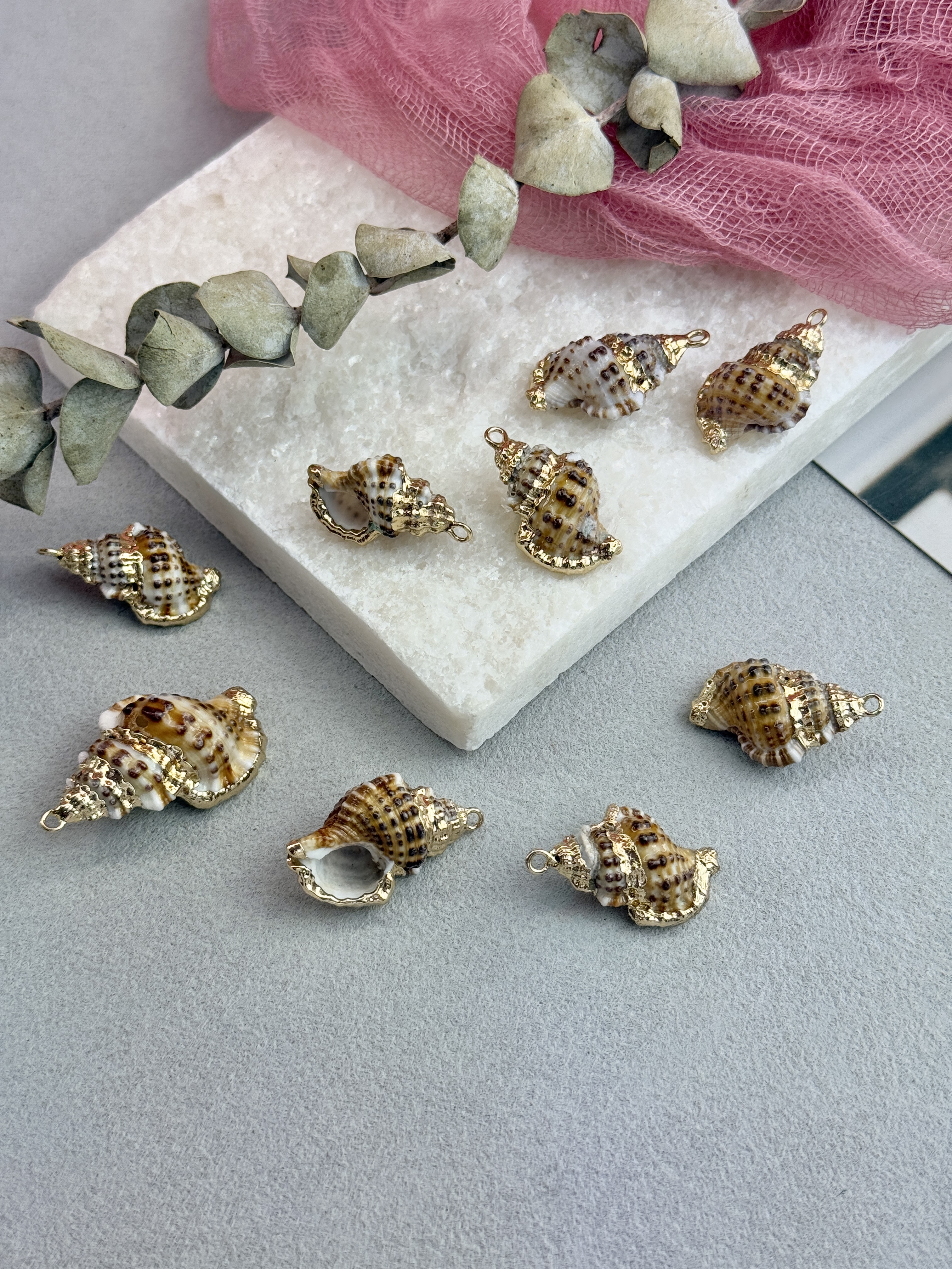 Подвеска ракушка с гальваническим покрытием некоторых участков. Размер ракушки 15-28 мм (выбирается любой случайный набор). Ракушки в наборе могут быть не одинакового размера.