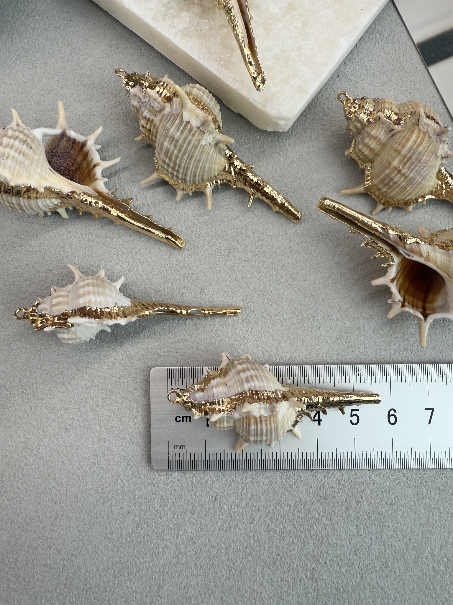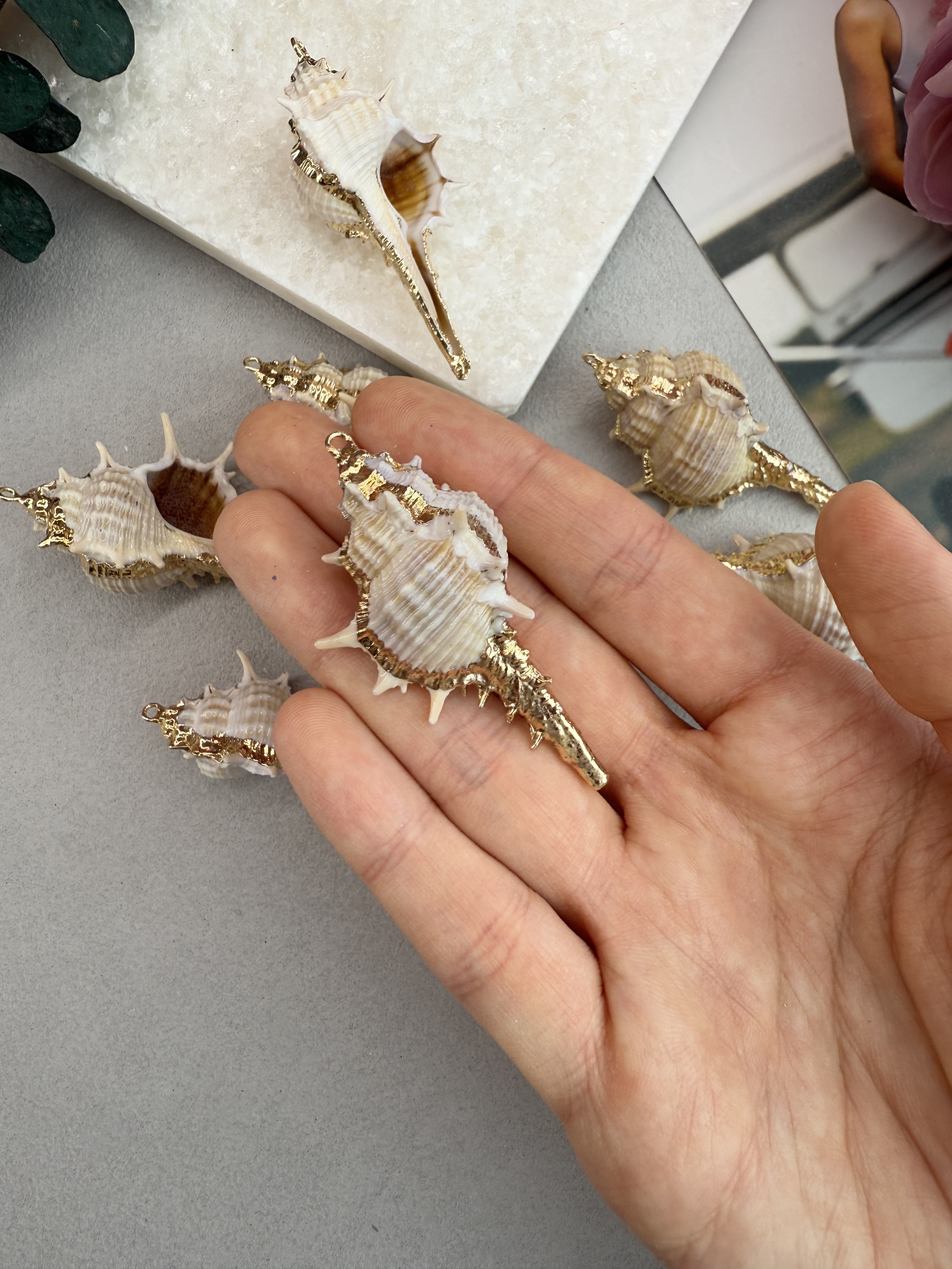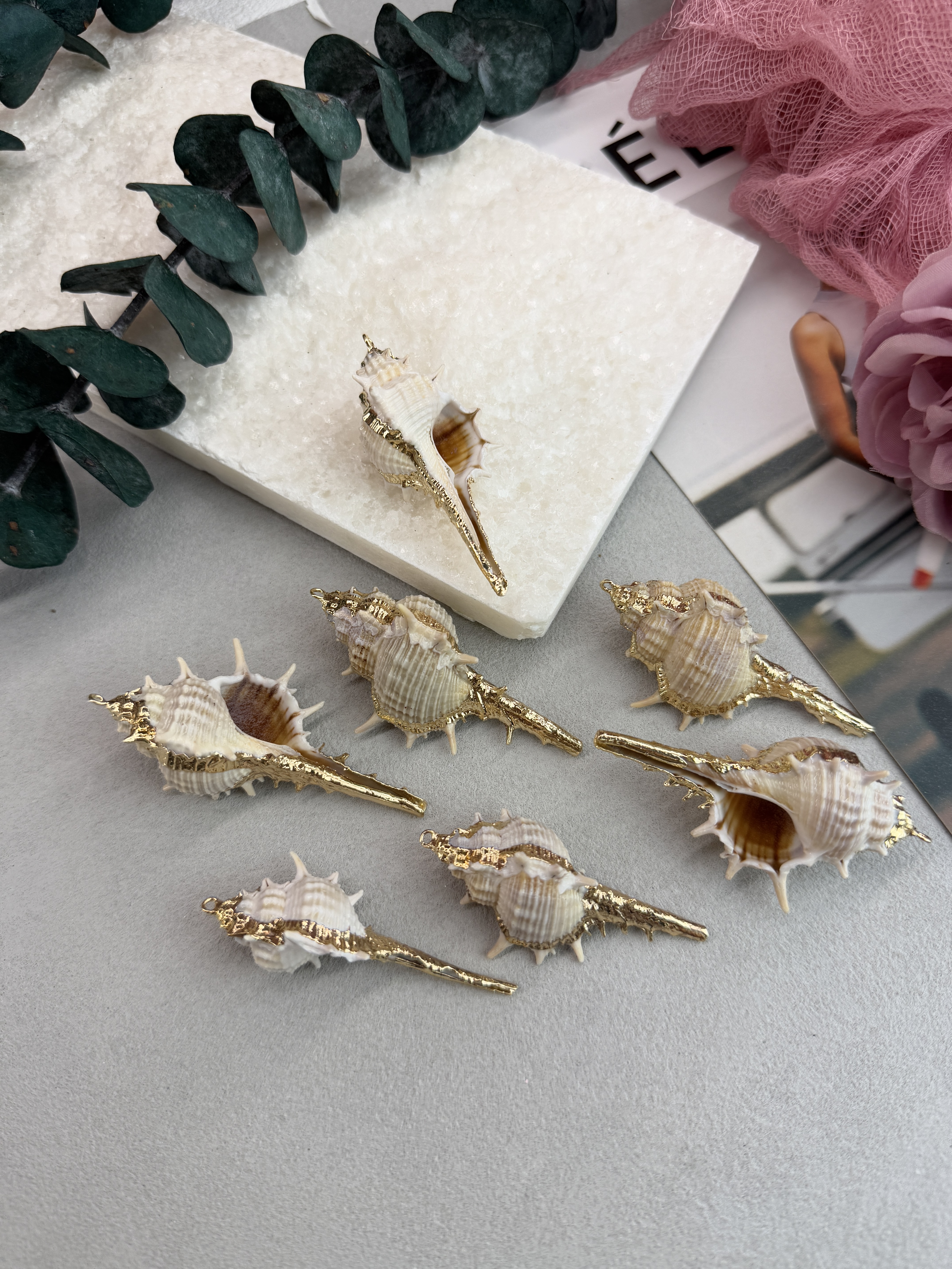 Подвеска ракушка с гальваническим покрытием некоторых участков. Размер ракушки 20-40 мм (выбирается любой случайный набор). Ракушки в наборе могут быть не одинакового размера.