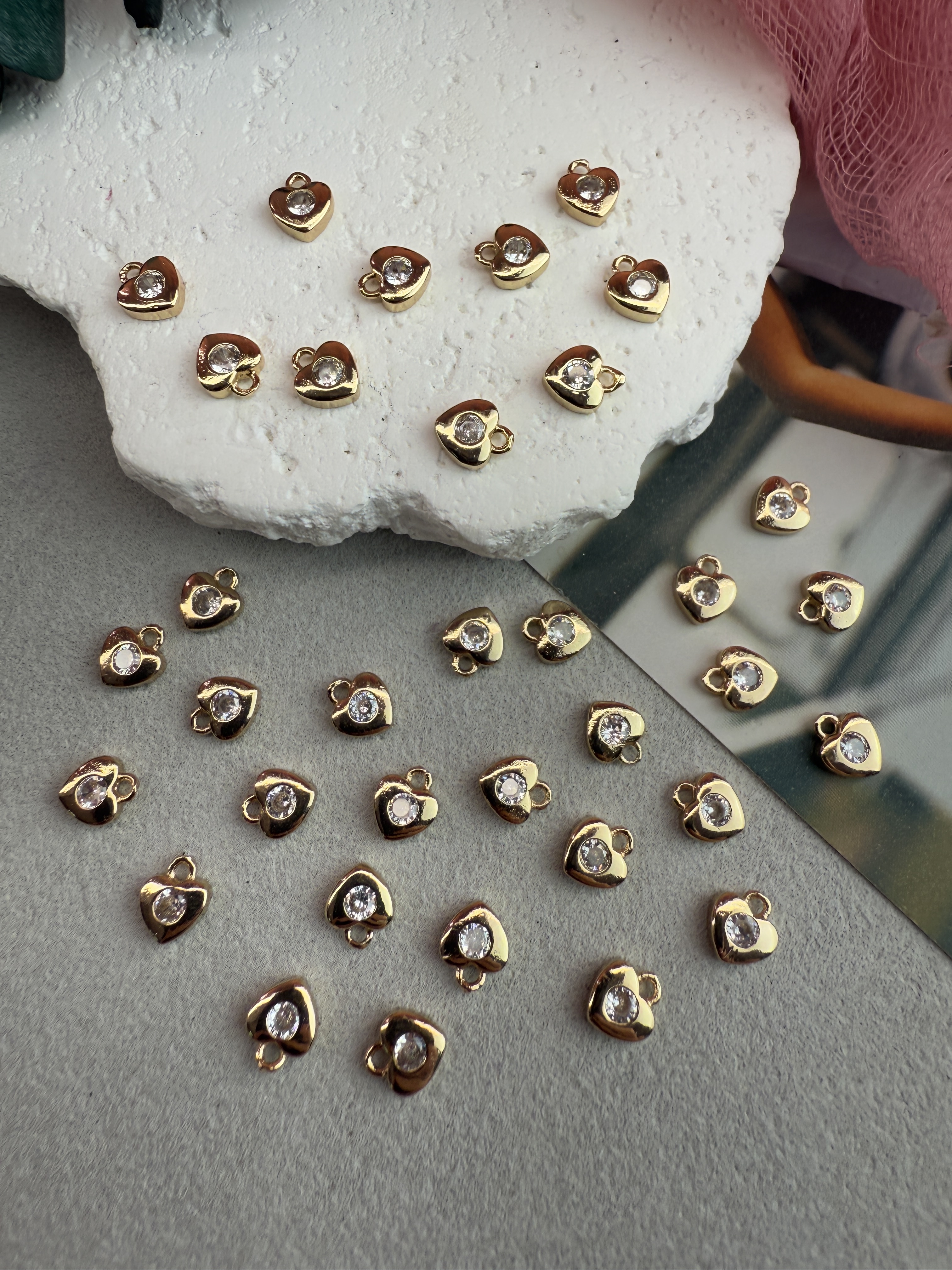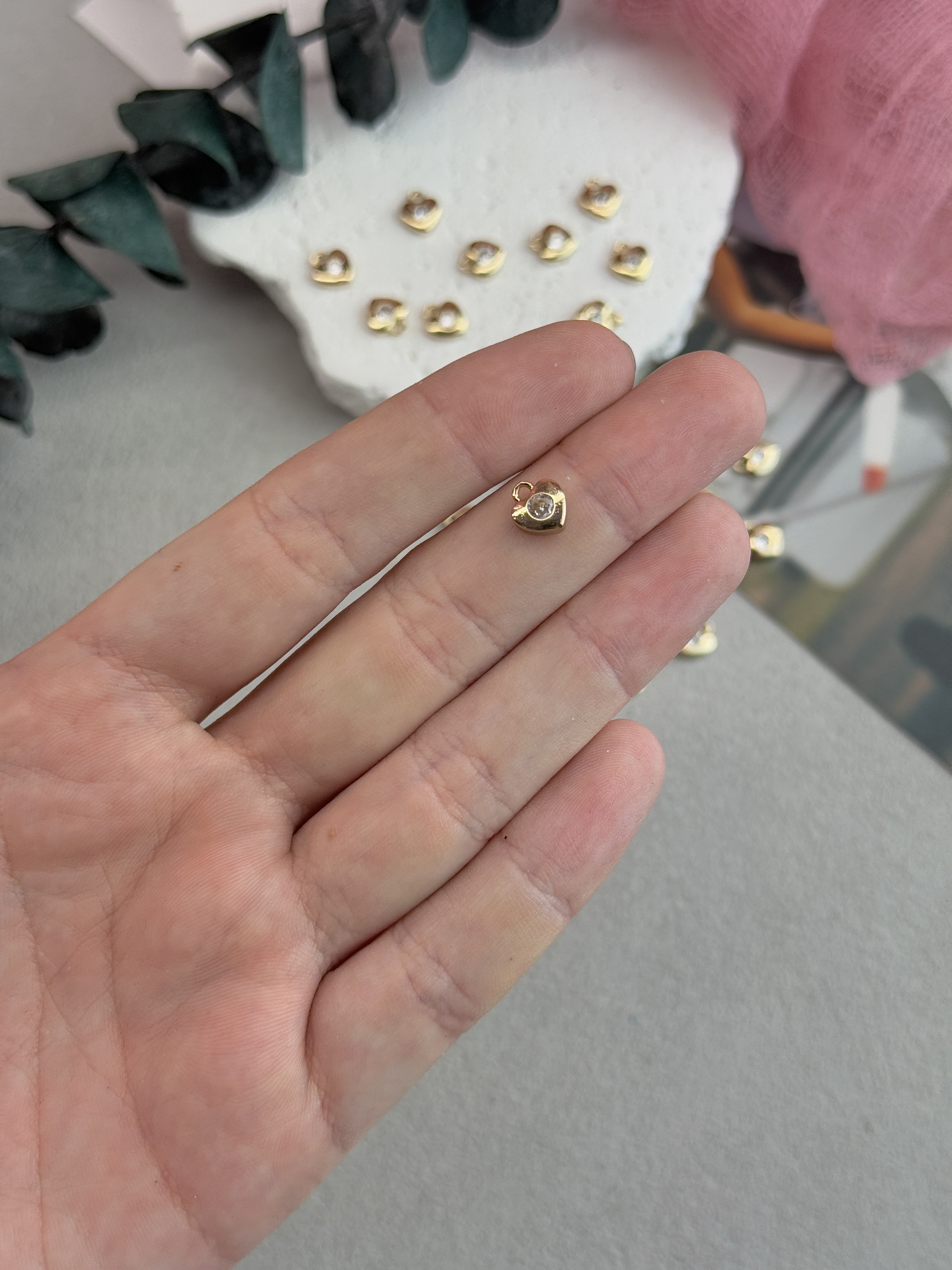 Подвеска в виде сердечка с фианитом для создания украшений ручной работы.