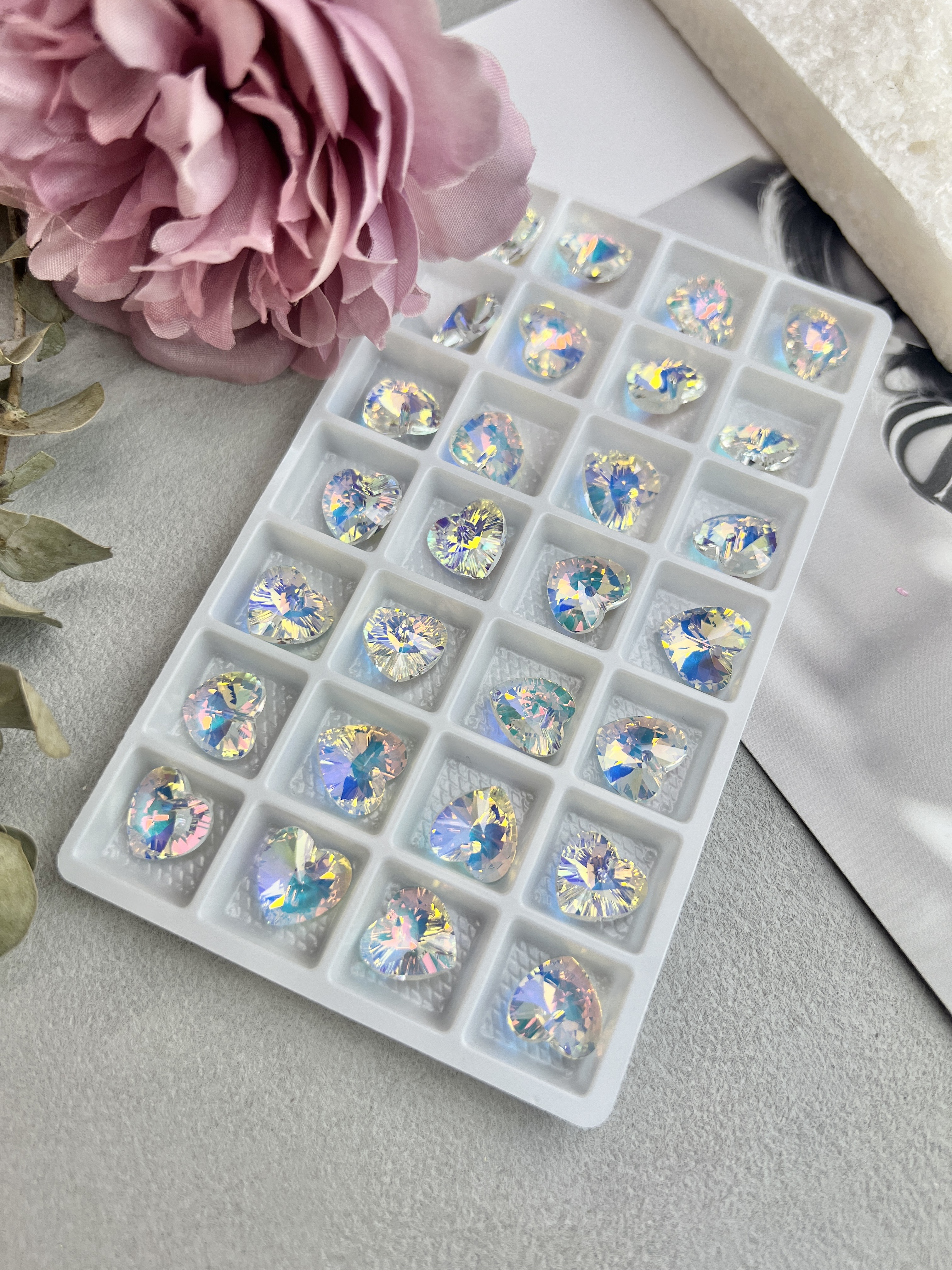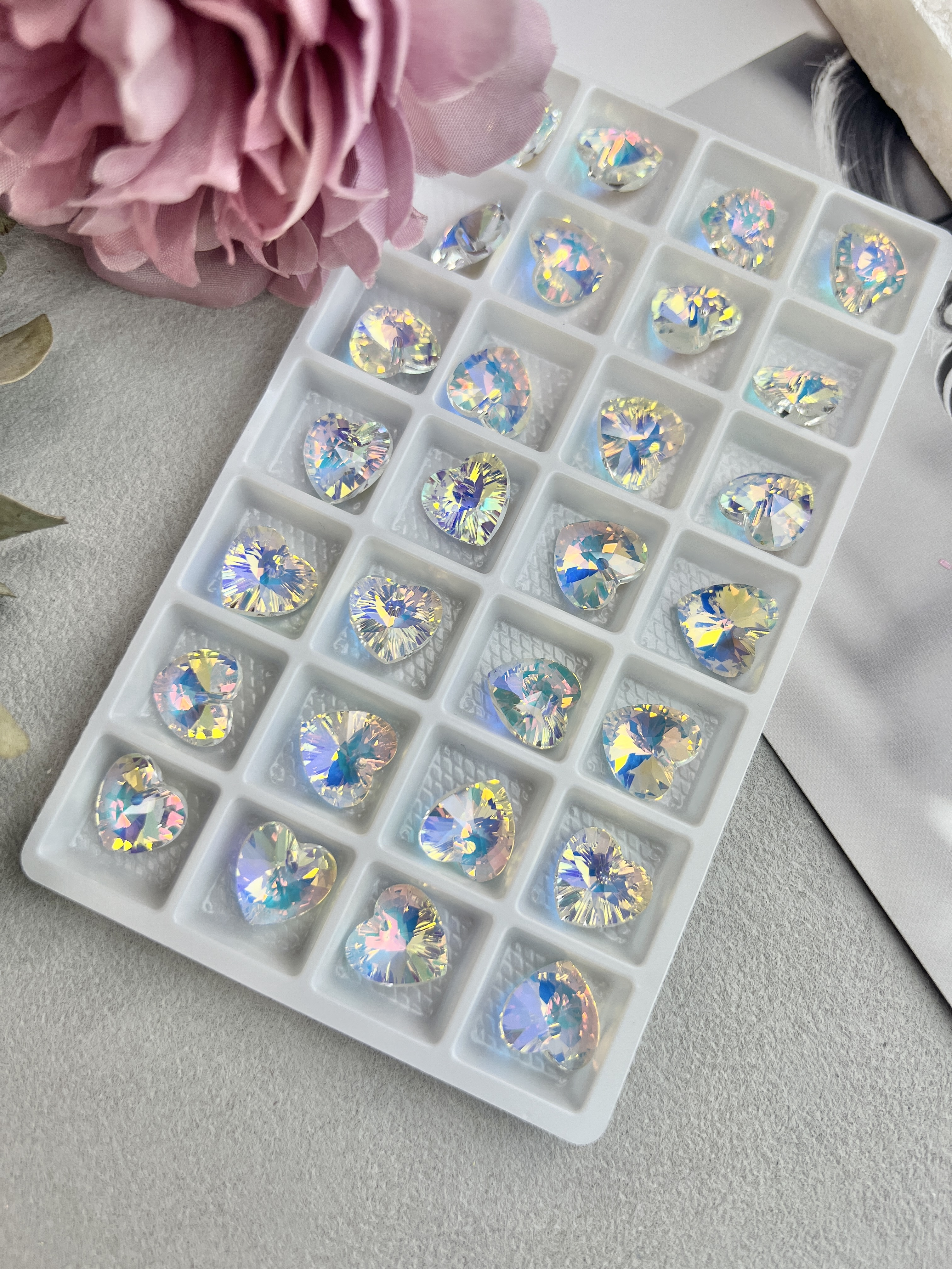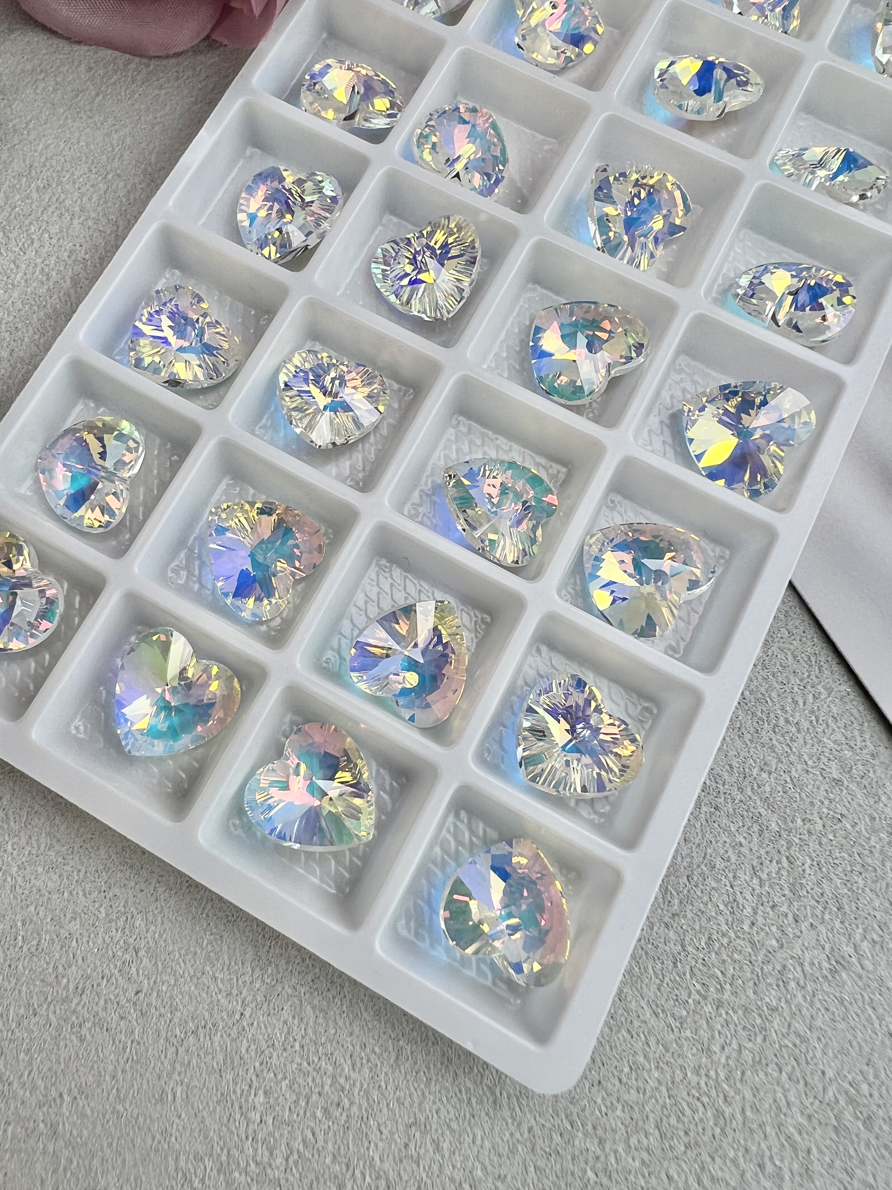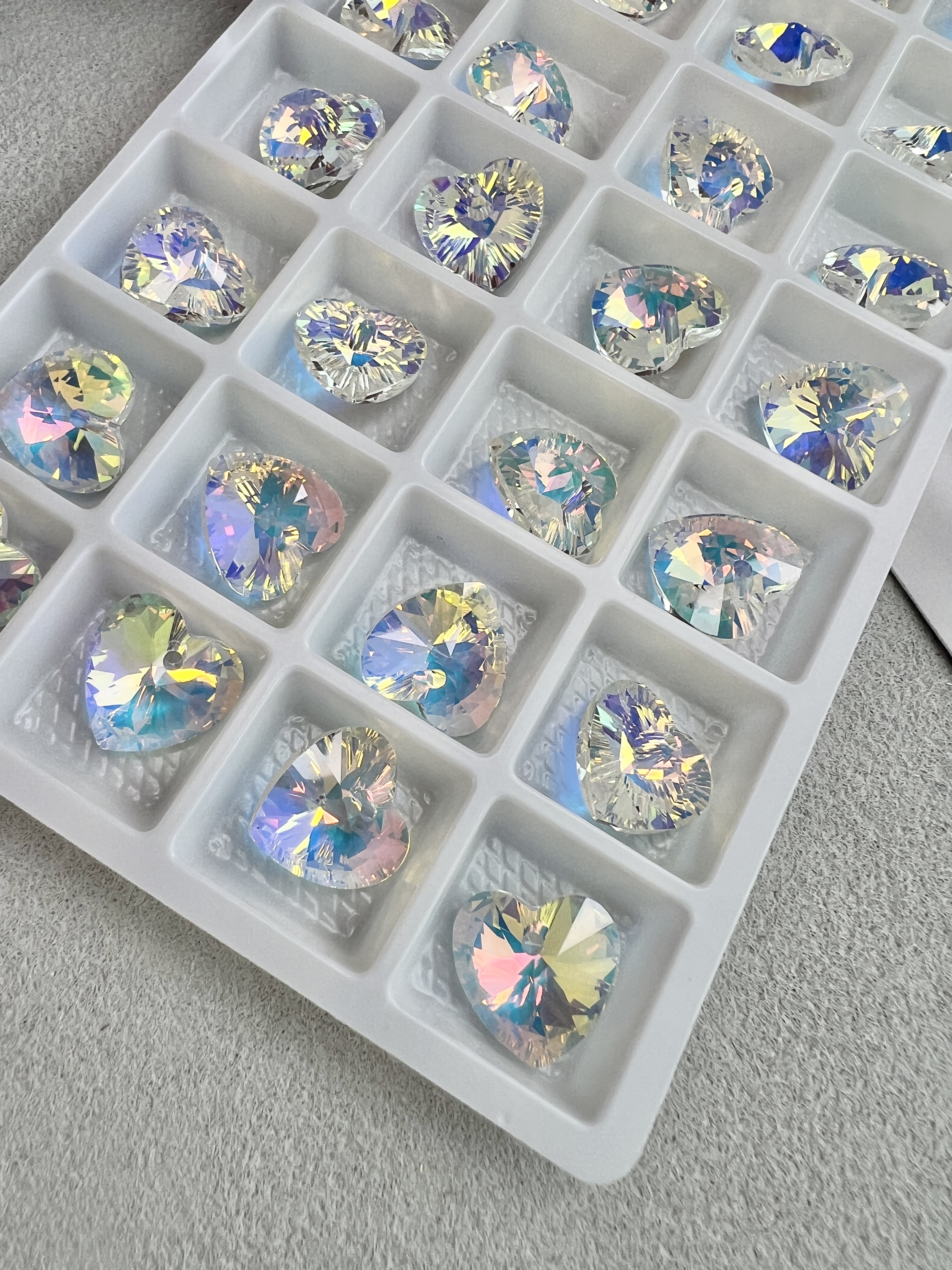 Изящная подвеска в виде маленького сердца с гранями. Подвеска выполнена из хрустального стекла (стекло с добавлением свинца для повышения блеска и твердости). Цвет: белый с радужными переливами. Размер одного сердца 12 мм, в упаковке 2 штуки.