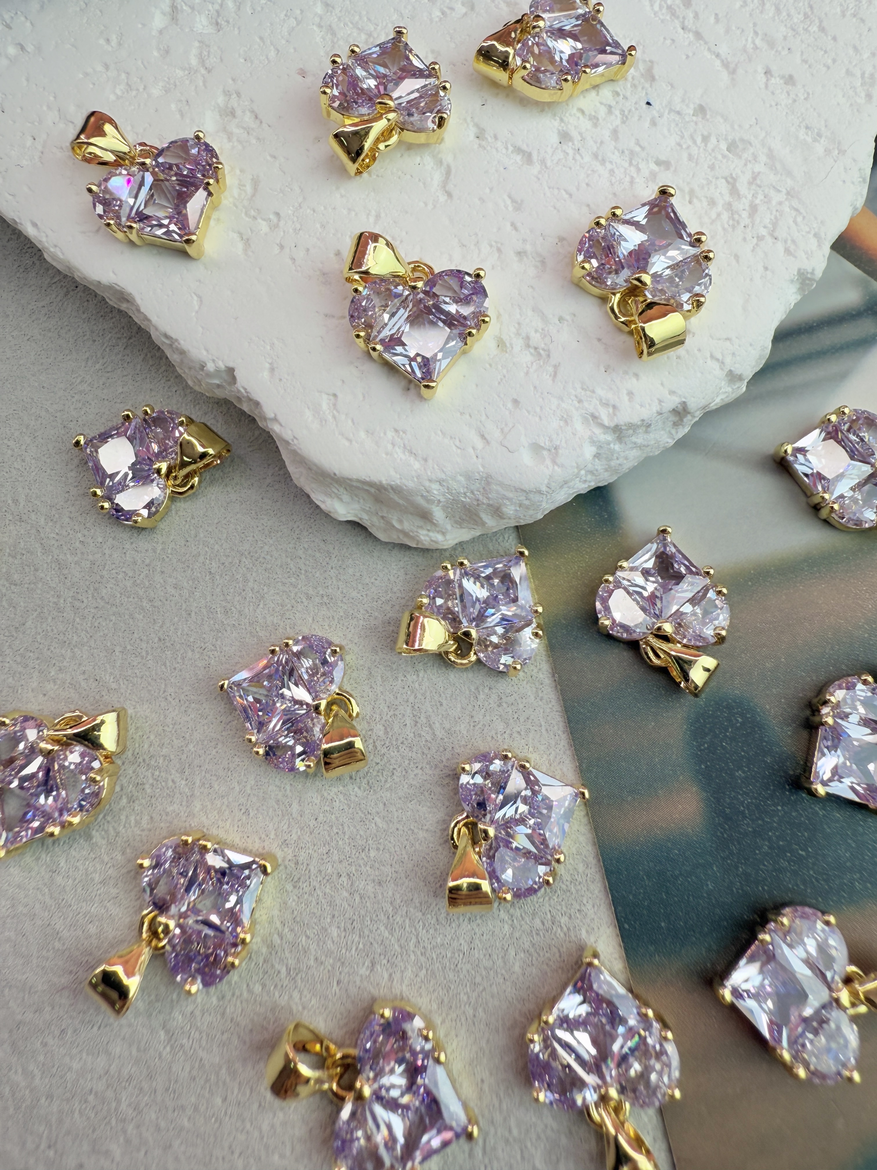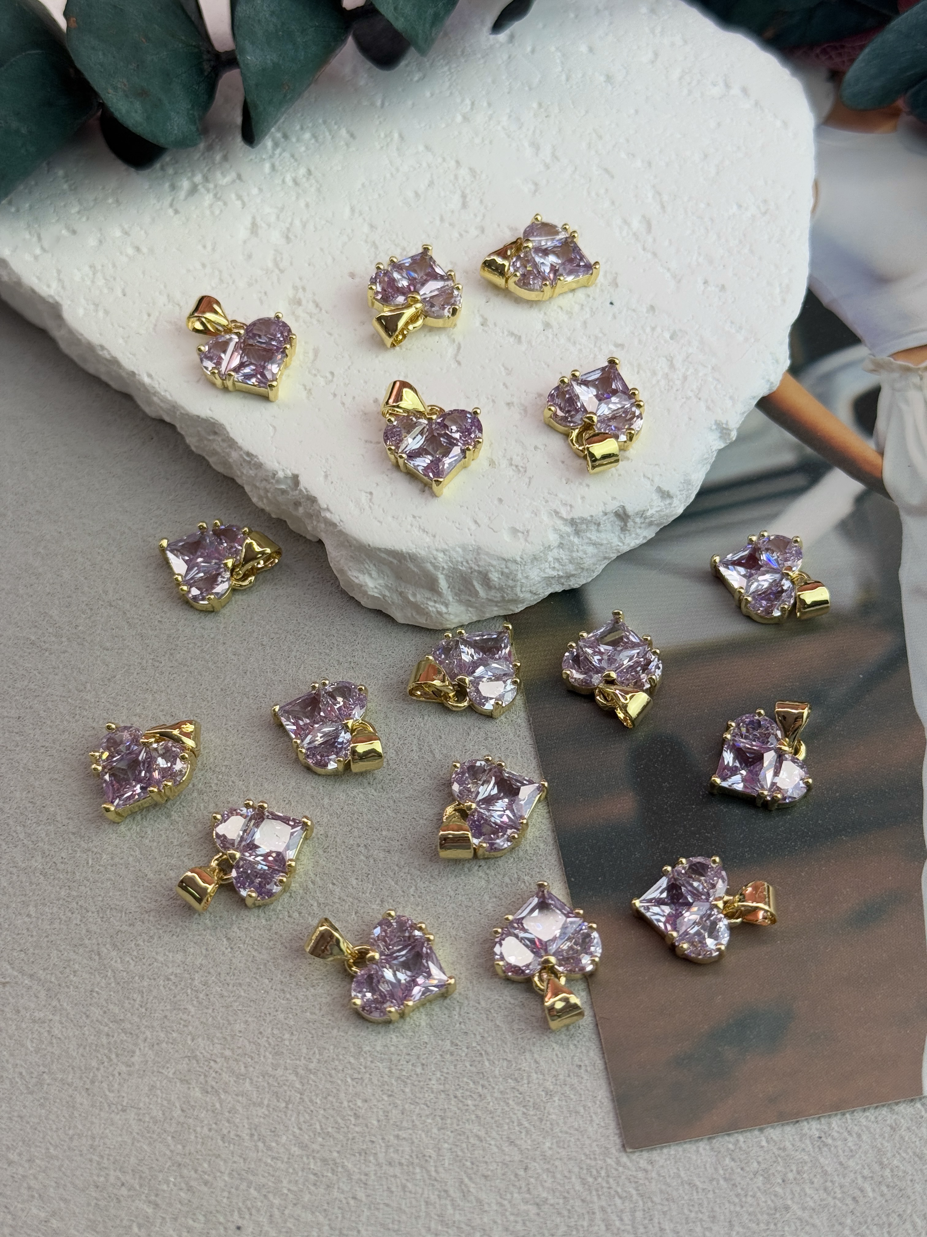 Подвеска сердце с крупными вставками циркона ювелирной огранки для создания украшений ручной работы. Гипоаллергенная фурнитура для сборки украшений.