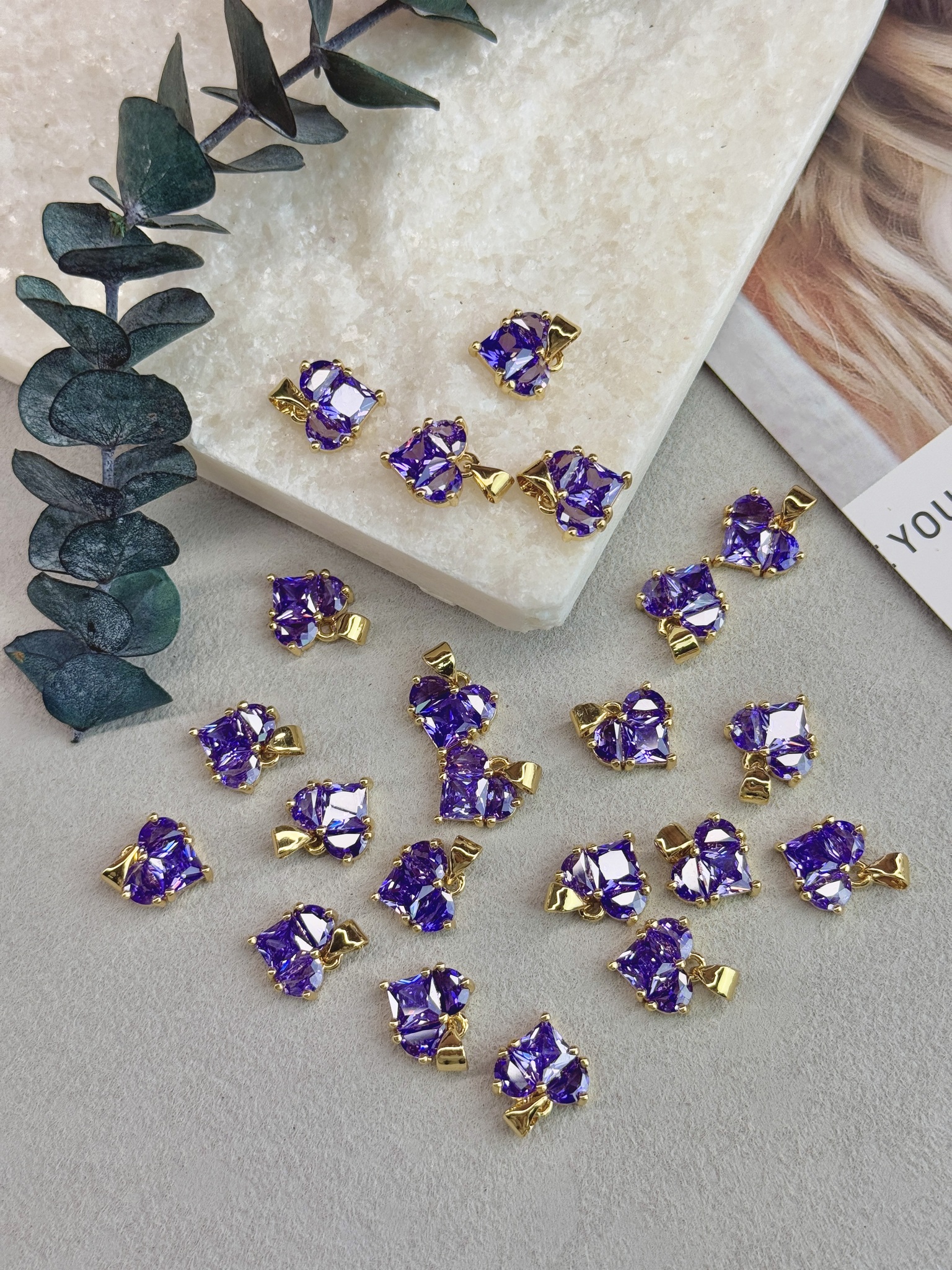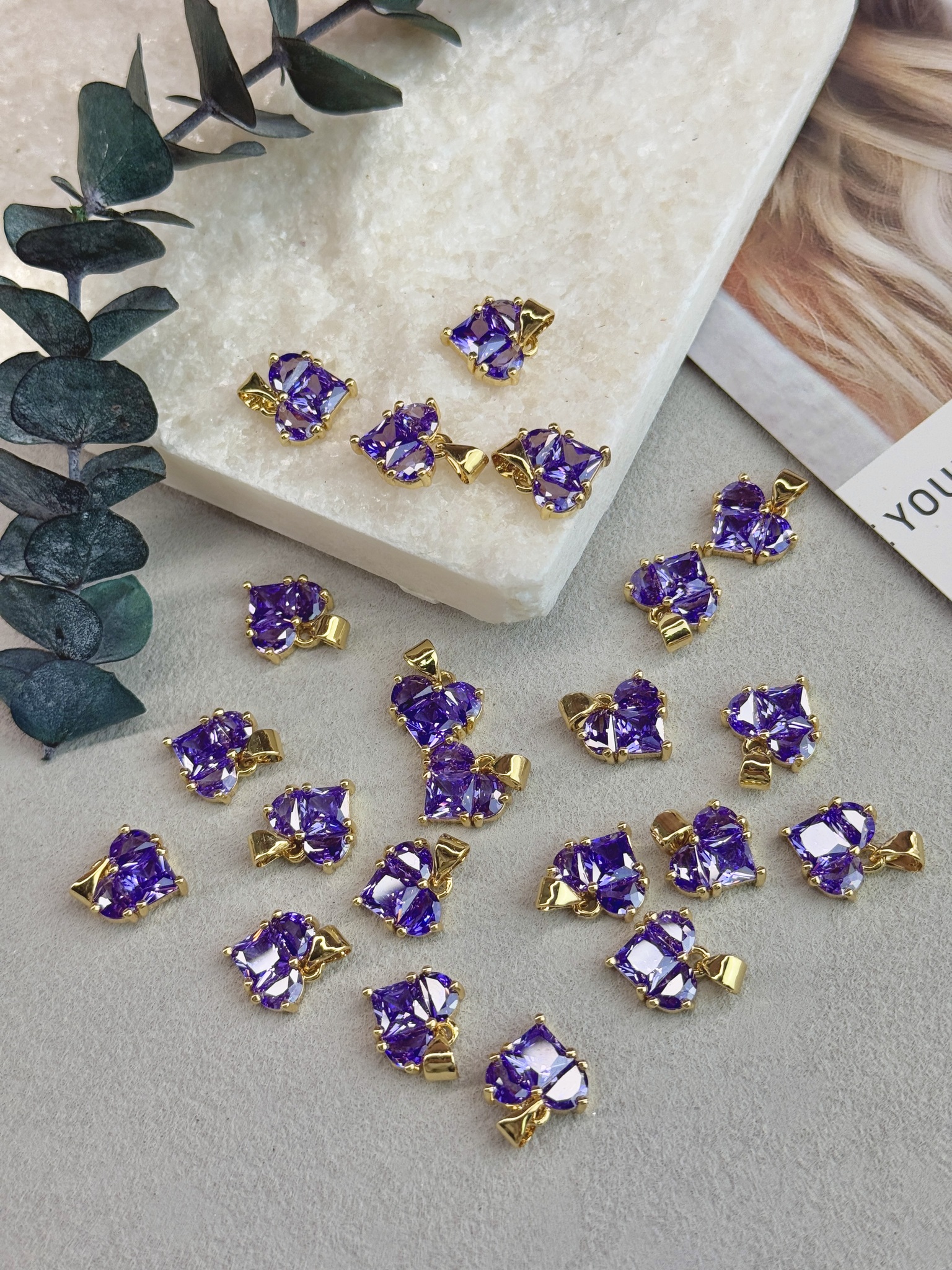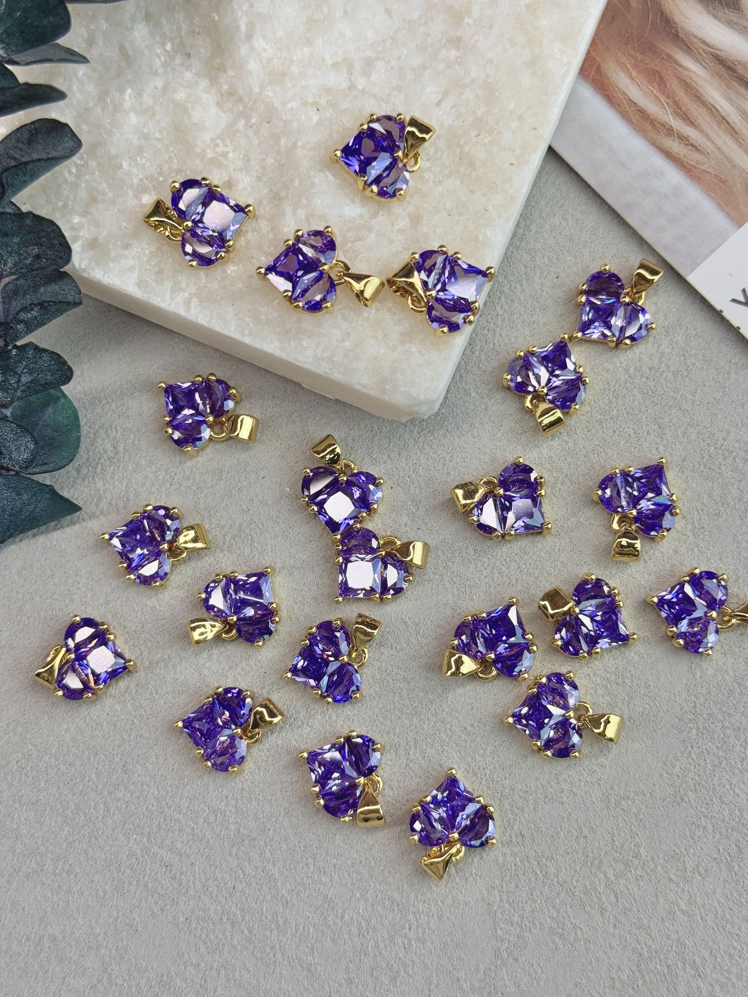 Подвеска "Сердце" с фианитами, позолота 18К, 12 мм, фиолетовый