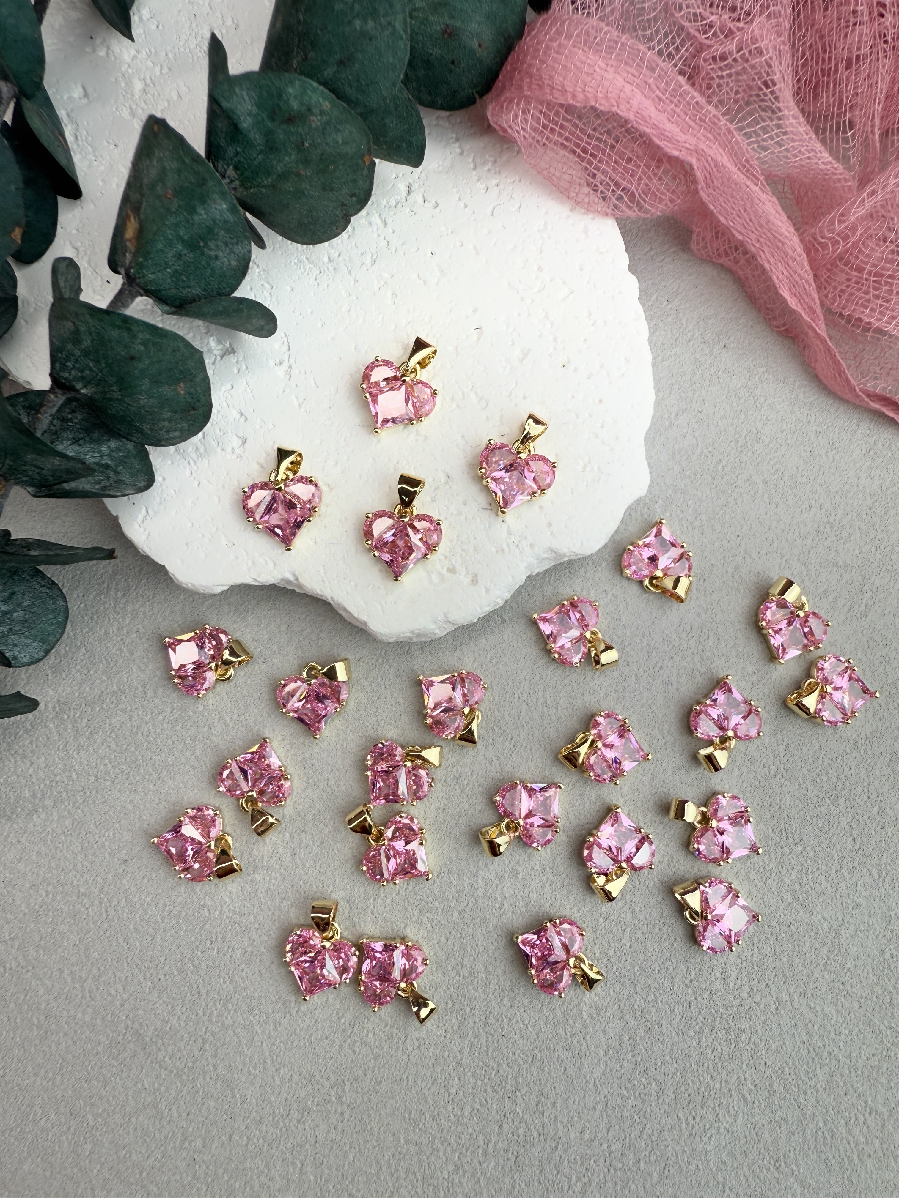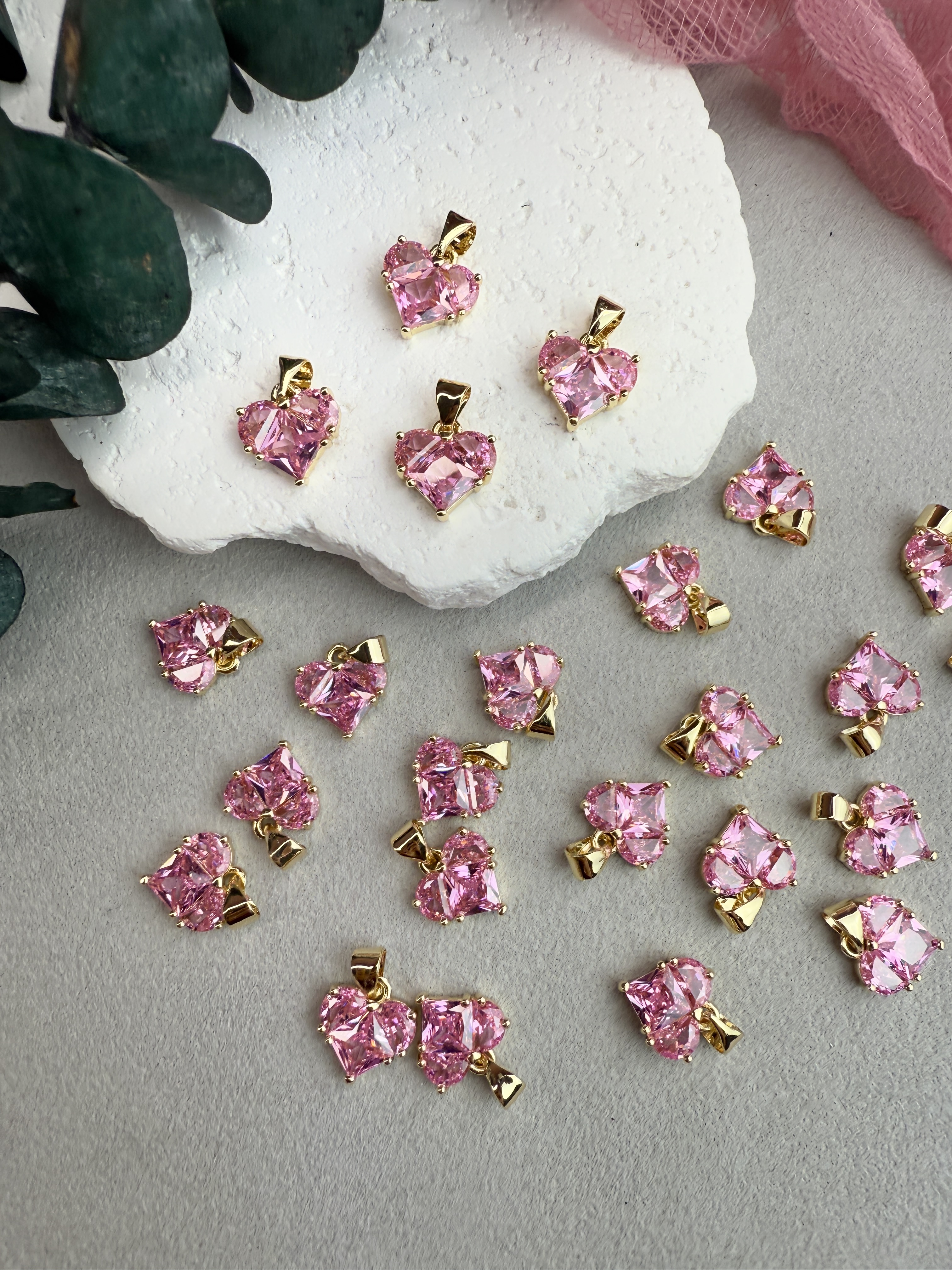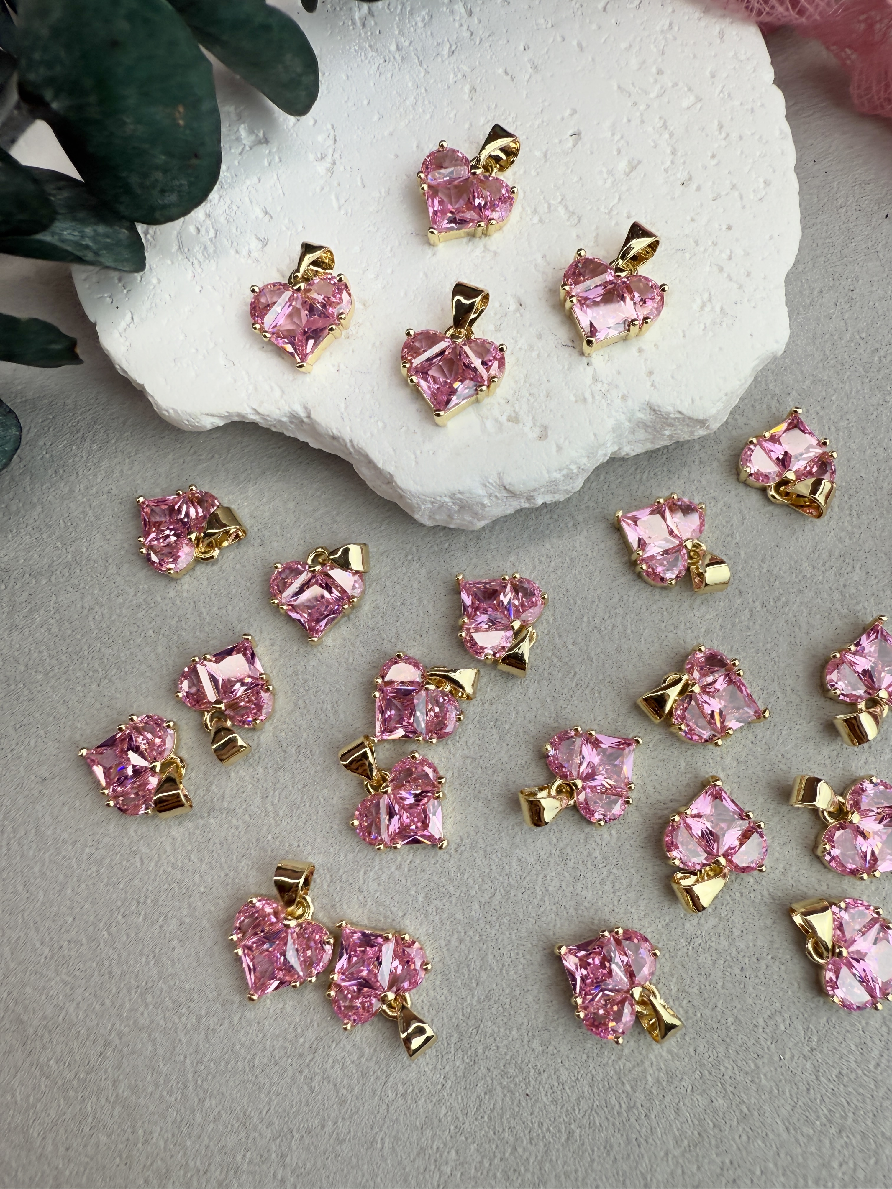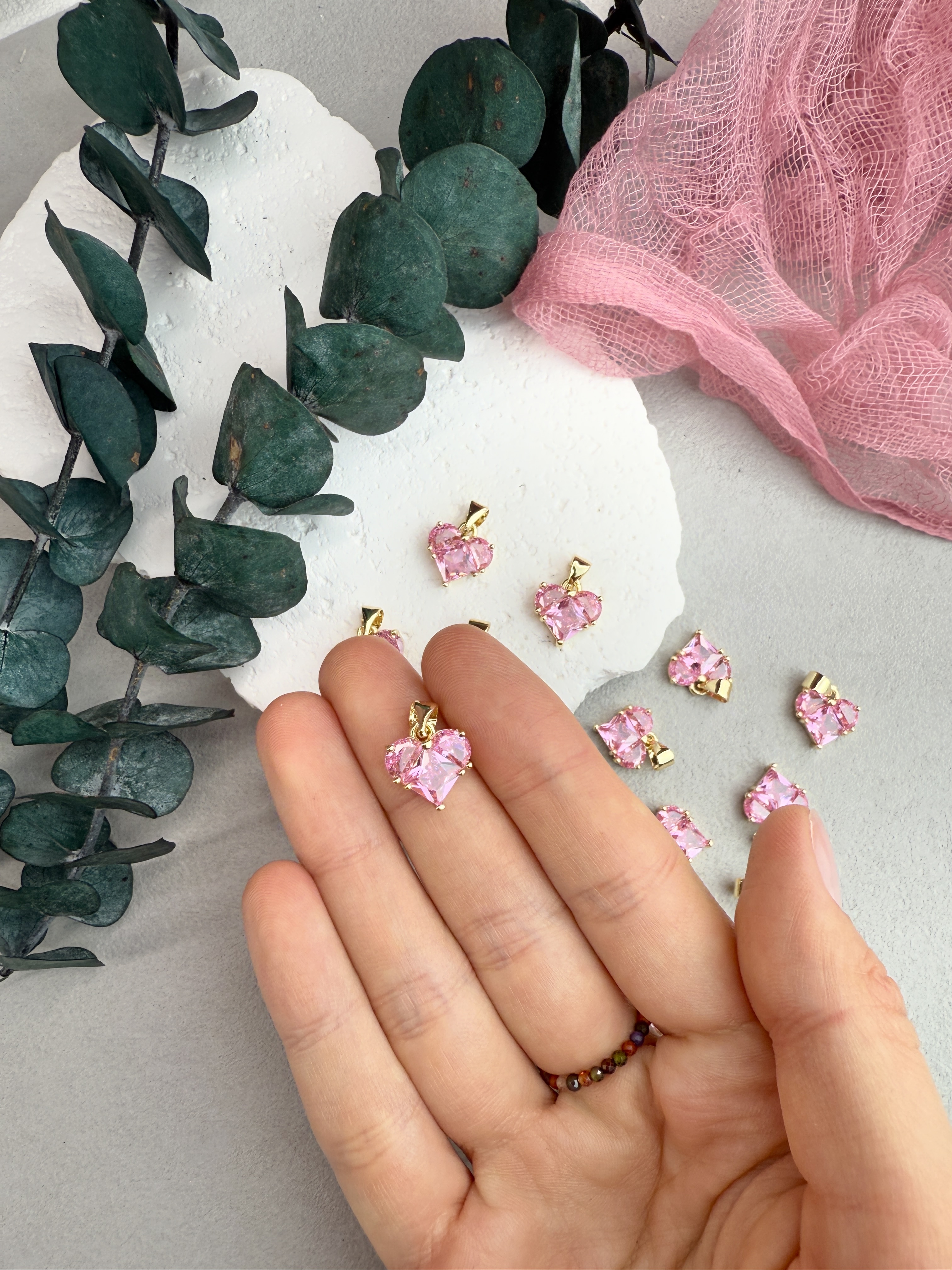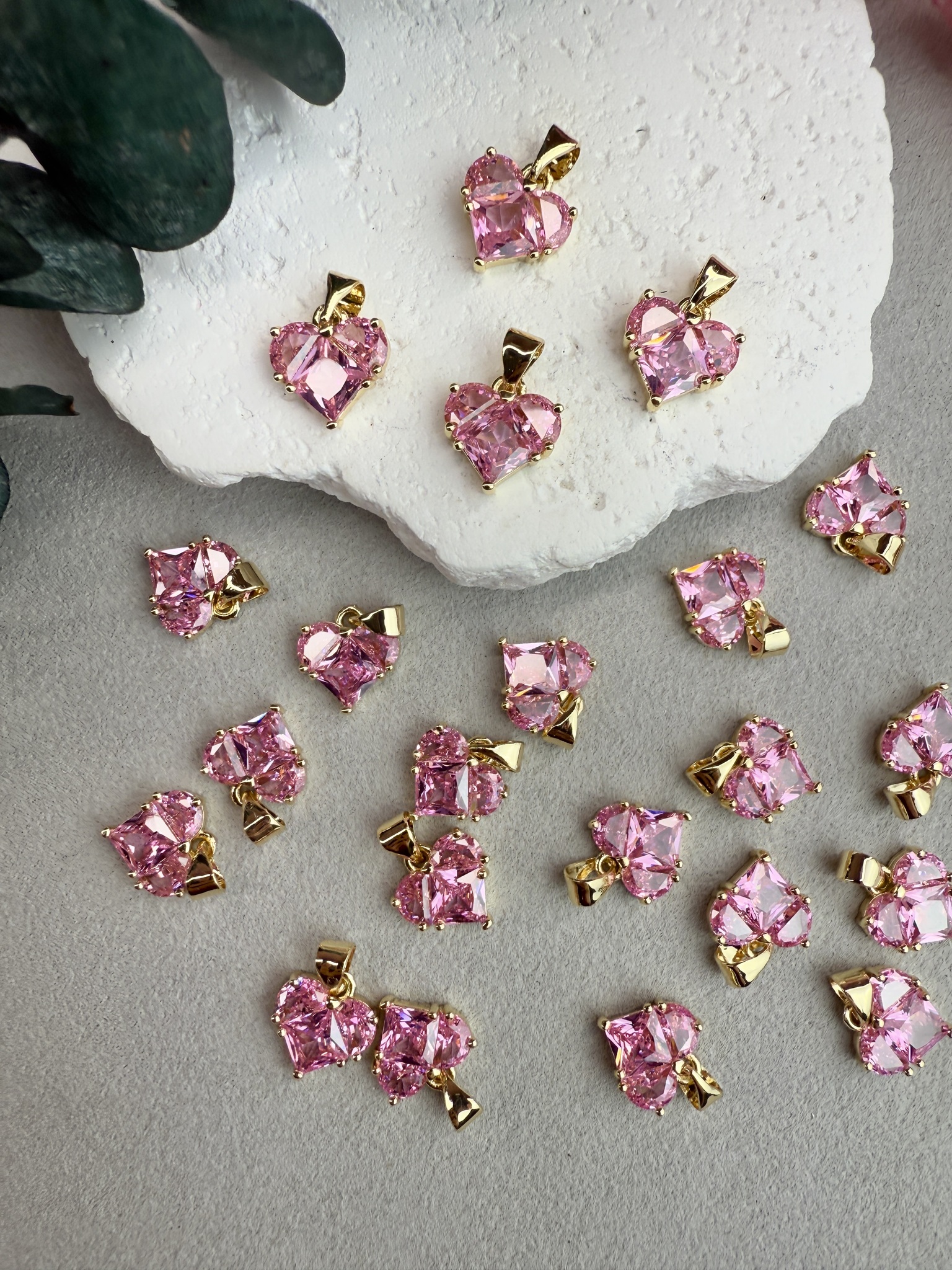 Подвеска сердце с крупными вставками циркона ювелирной огранки для создания украшений ручной работы. Гипоаллергенная фурнитура для сборки украшений.