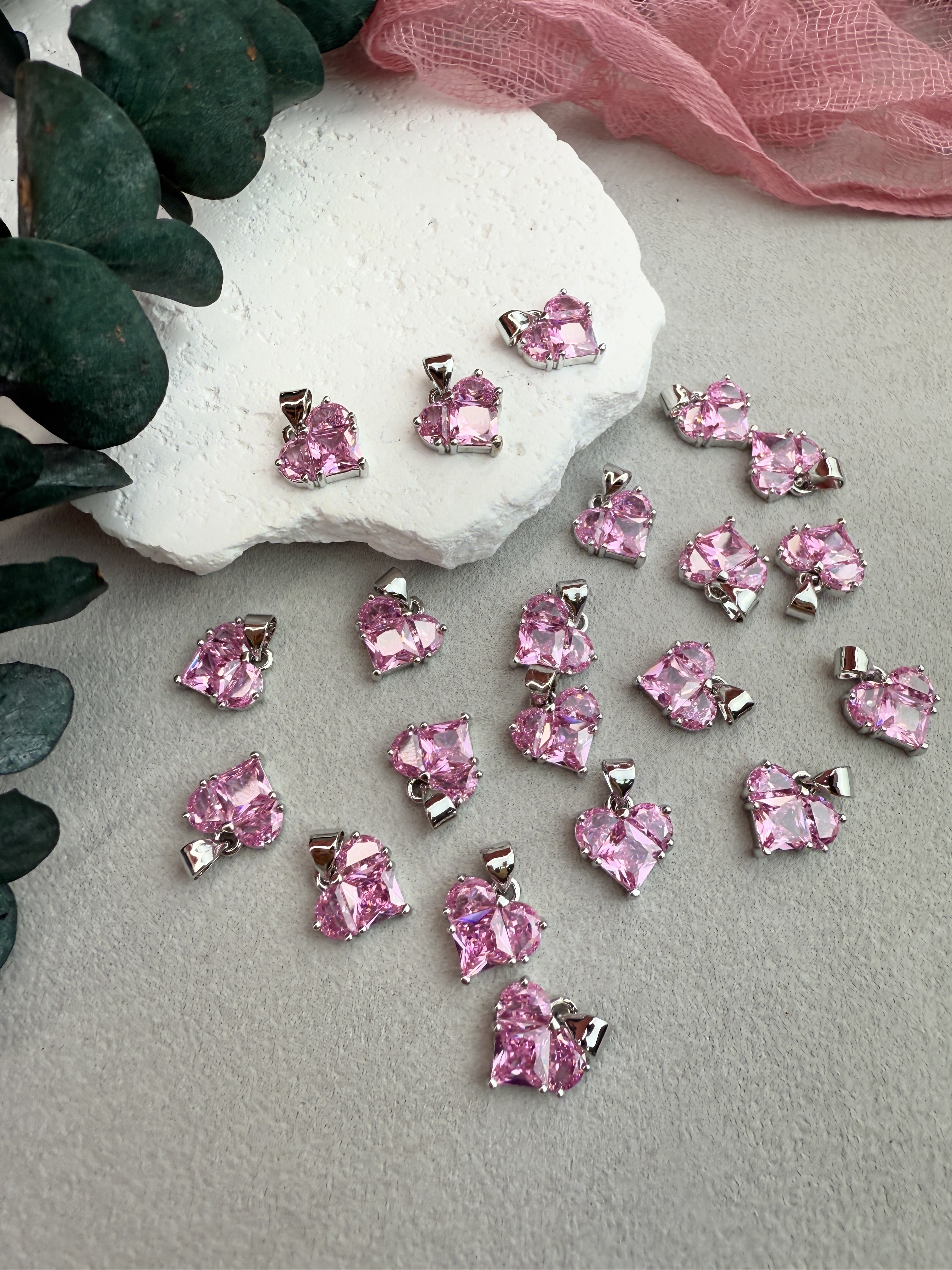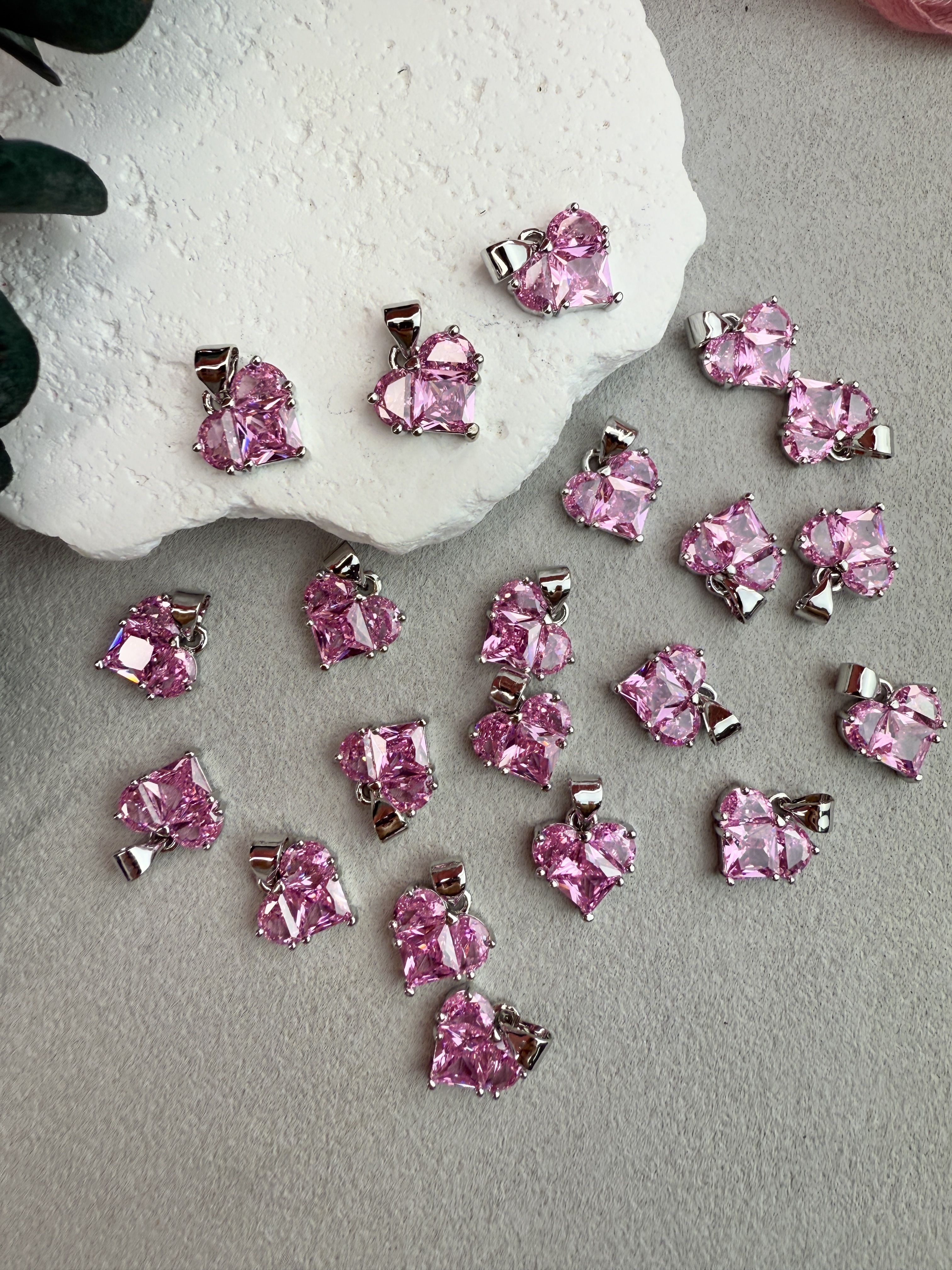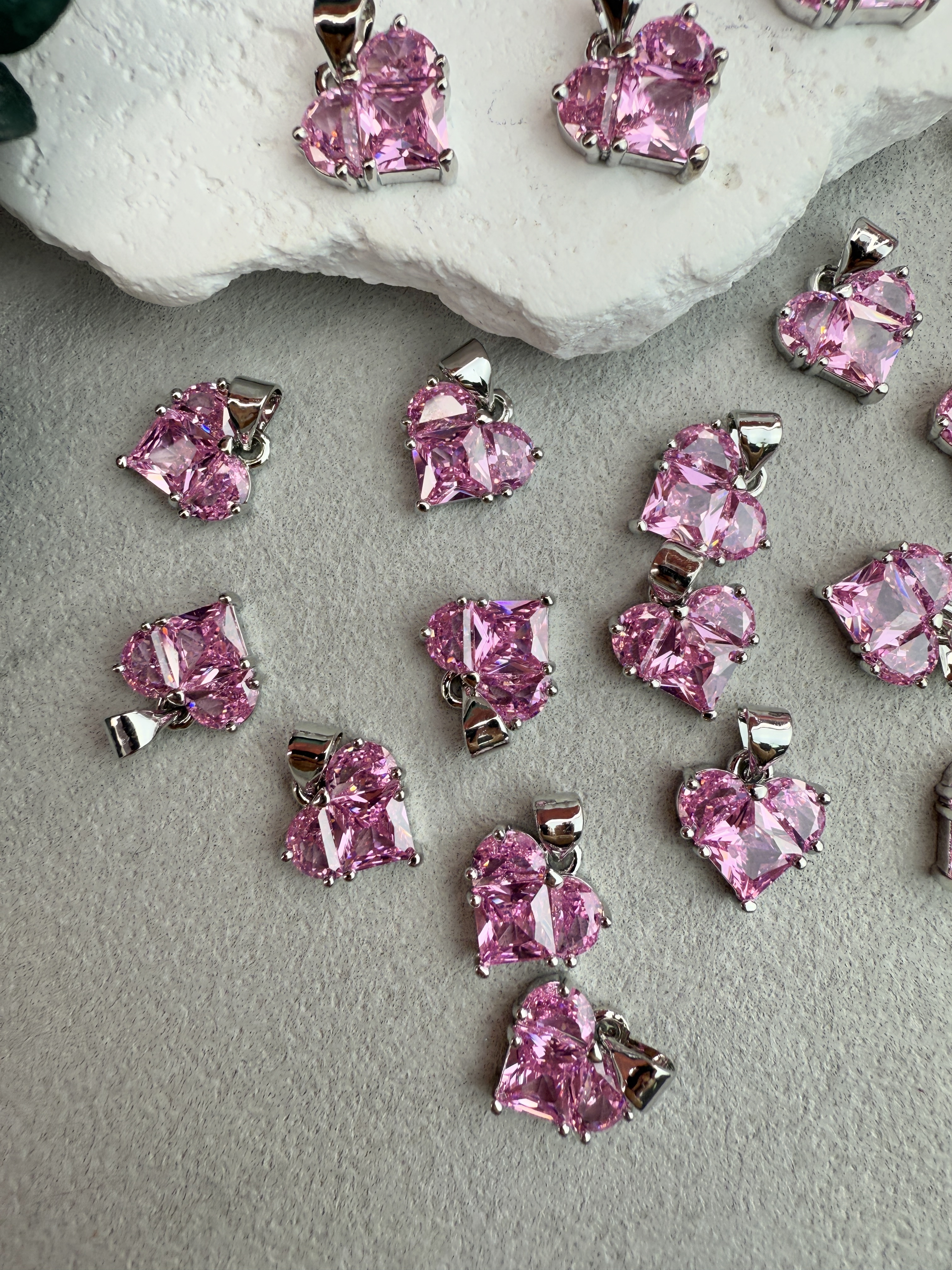 Подвеска сердце с крупными вставками циркона ювелирной огранки для создания украшений ручной работы. Гипоаллергенная фурнитура для сборки украшений.