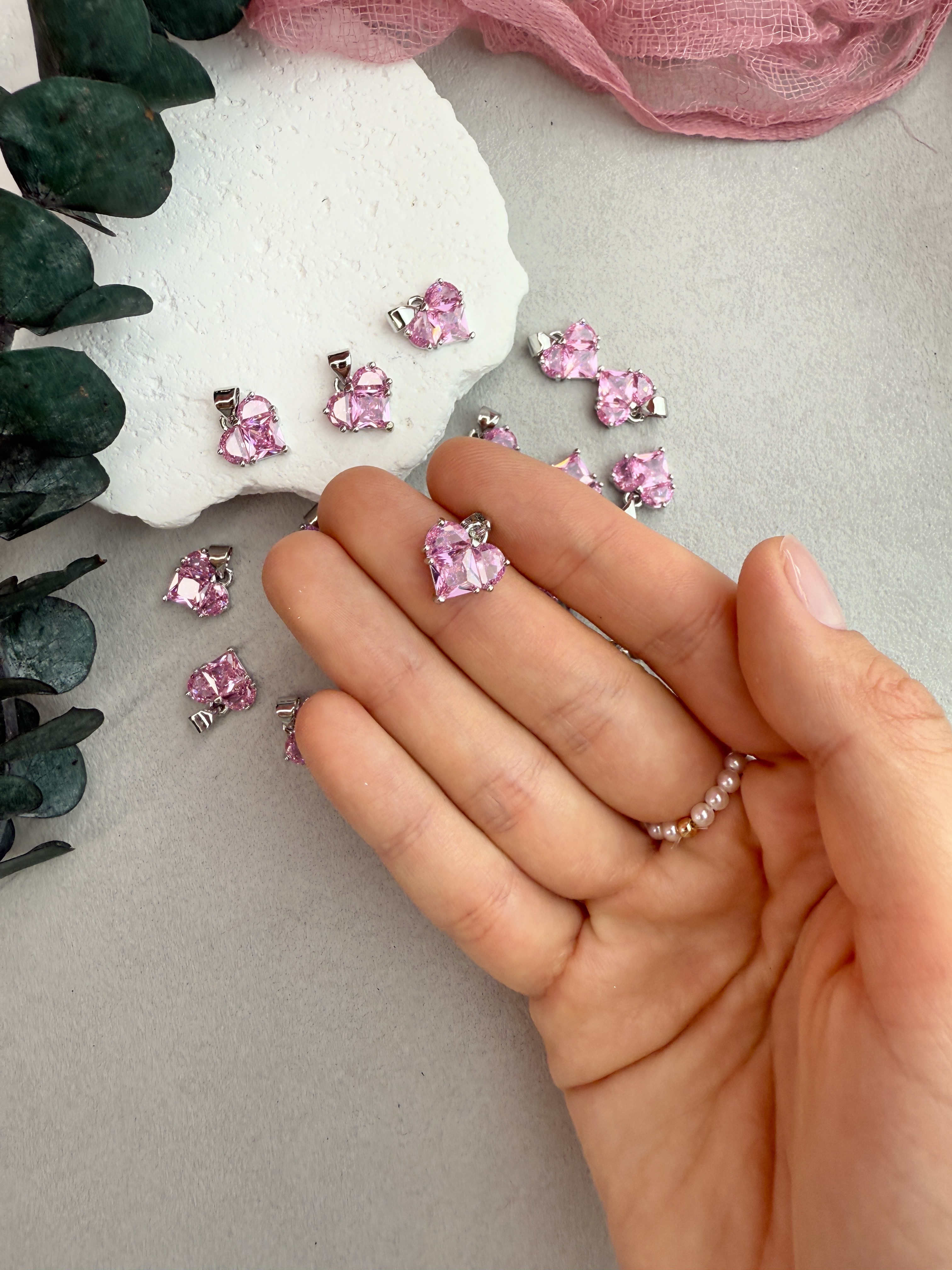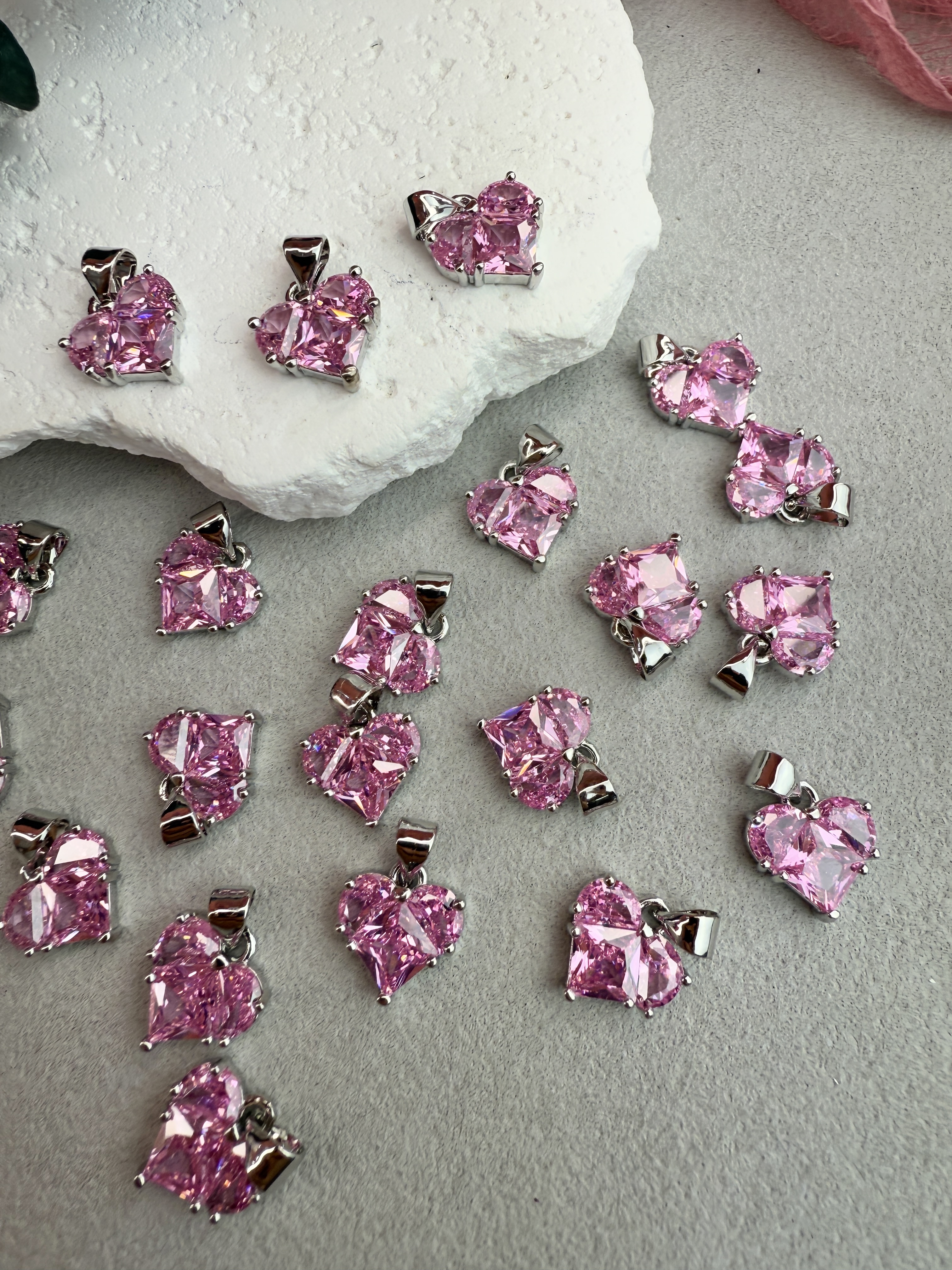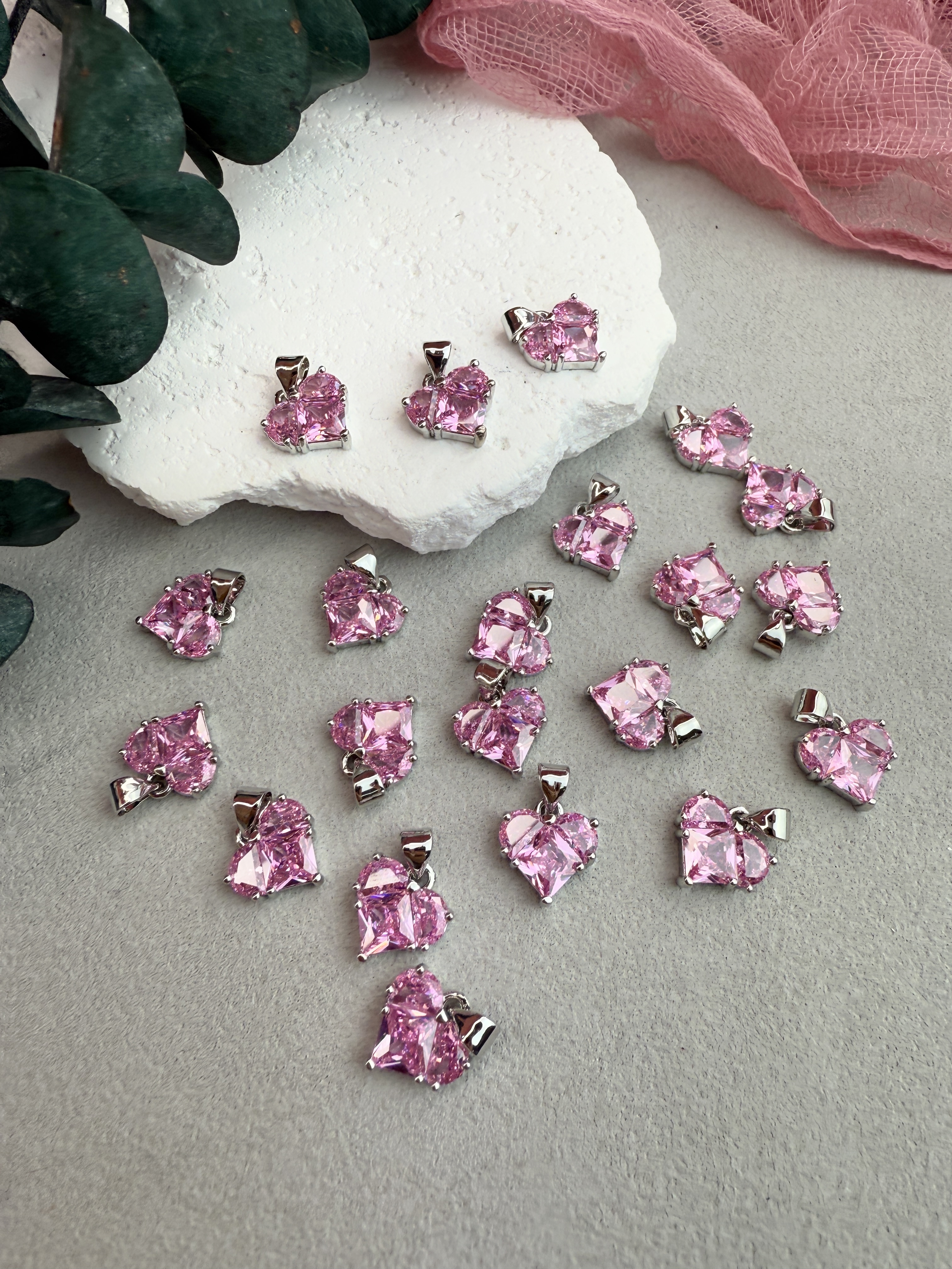 Подвеска сердце с крупными вставками циркона ювелирной огранки для создания украшений ручной работы. Гипоаллергенная фурнитура для сборки украшений.