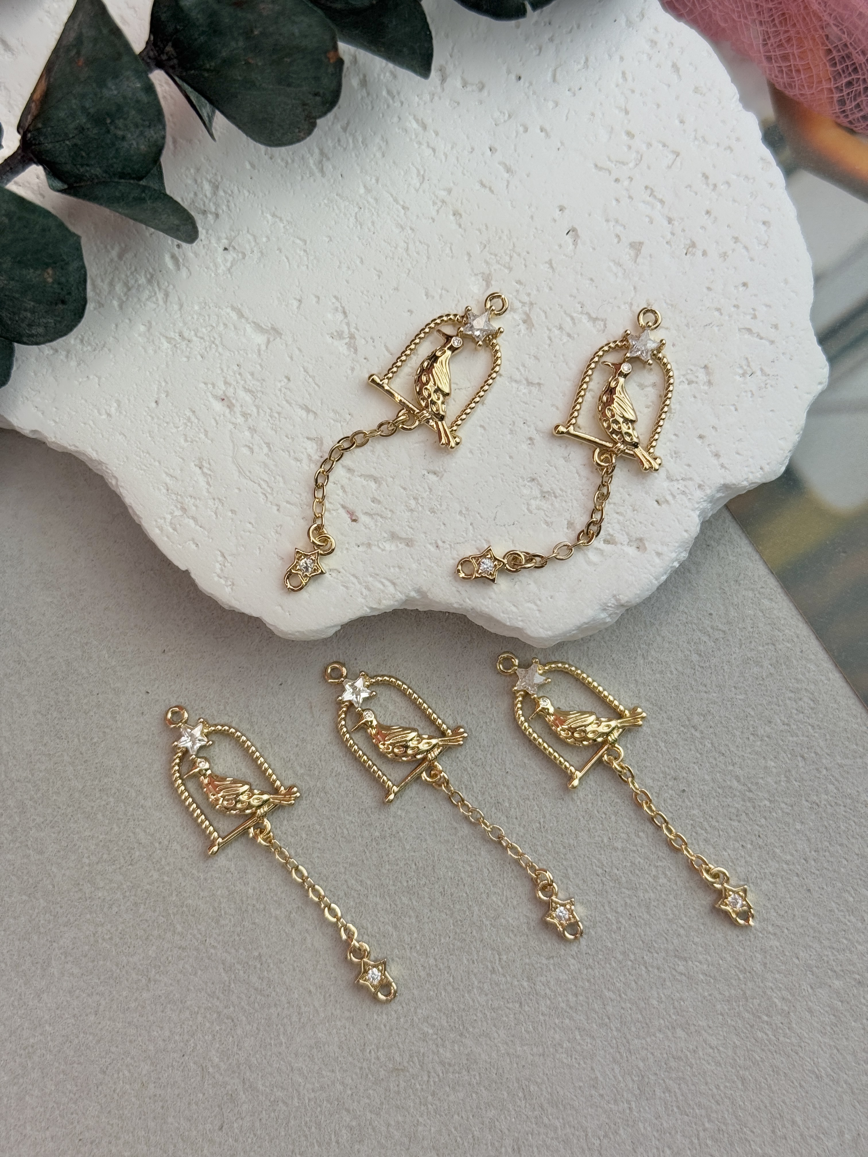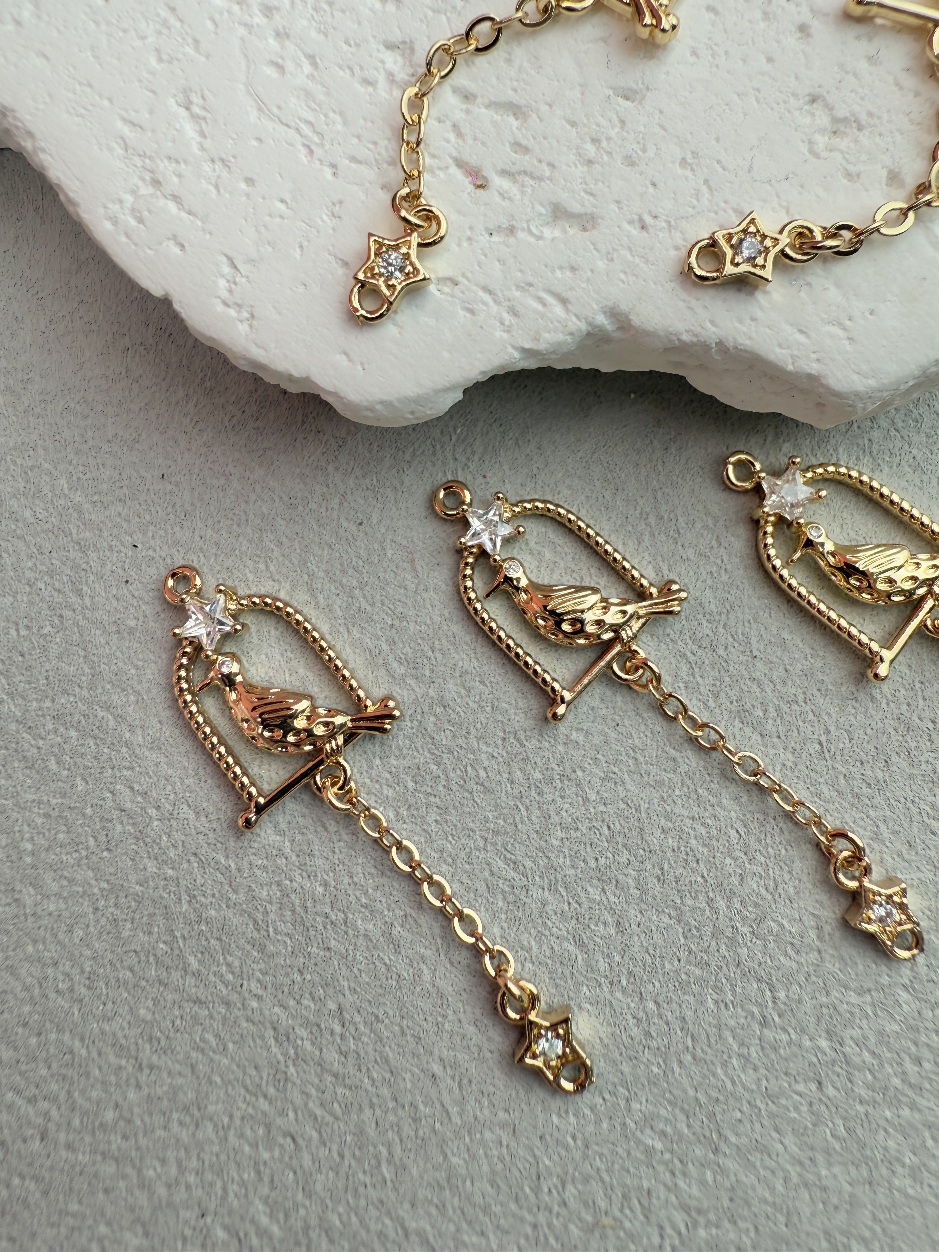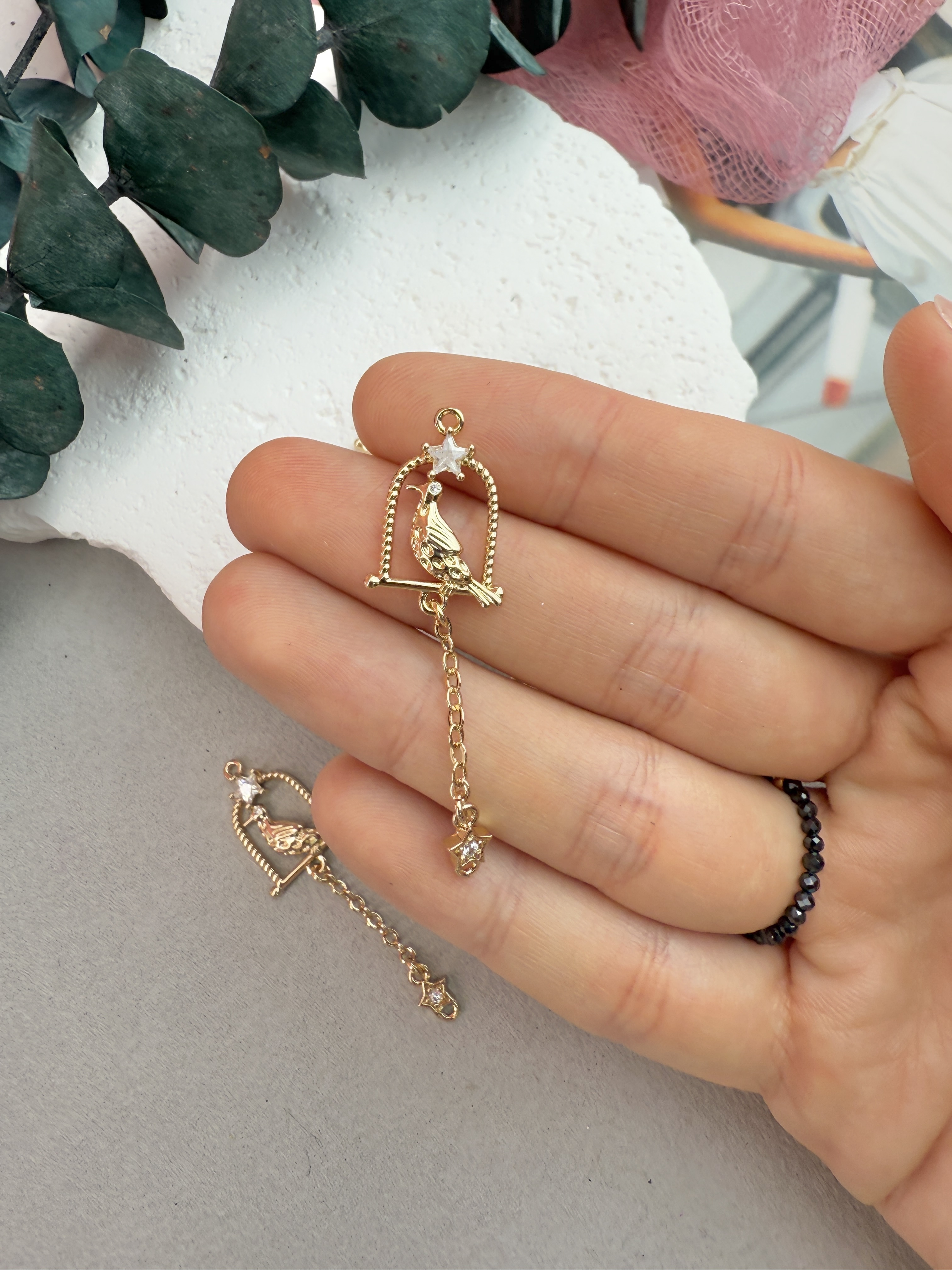 Подвеска в виде сойки с цепочкой и фианитами для создания украшений ручной работы. Гипоаллергенная фурнитура для сборки украшений.