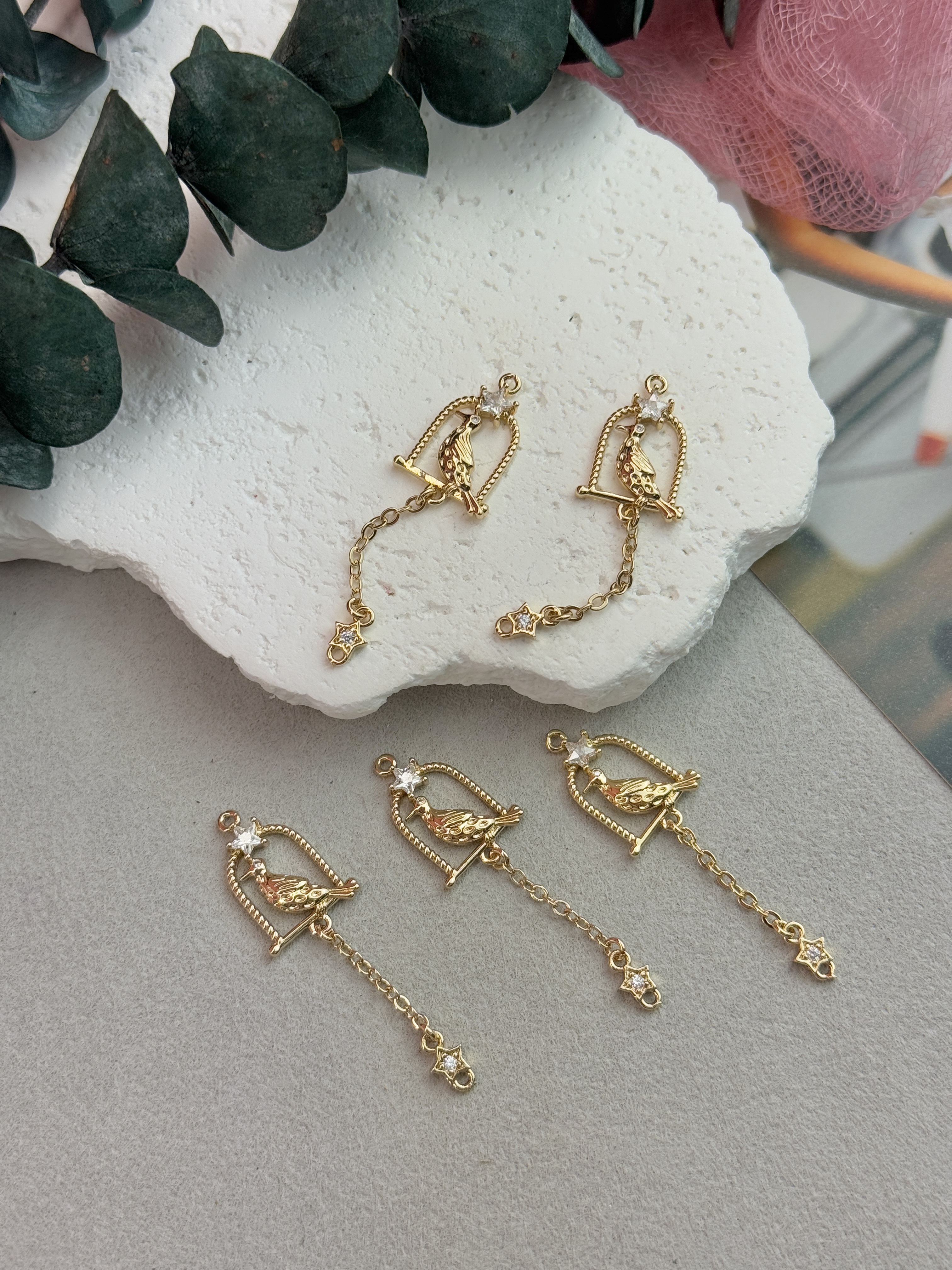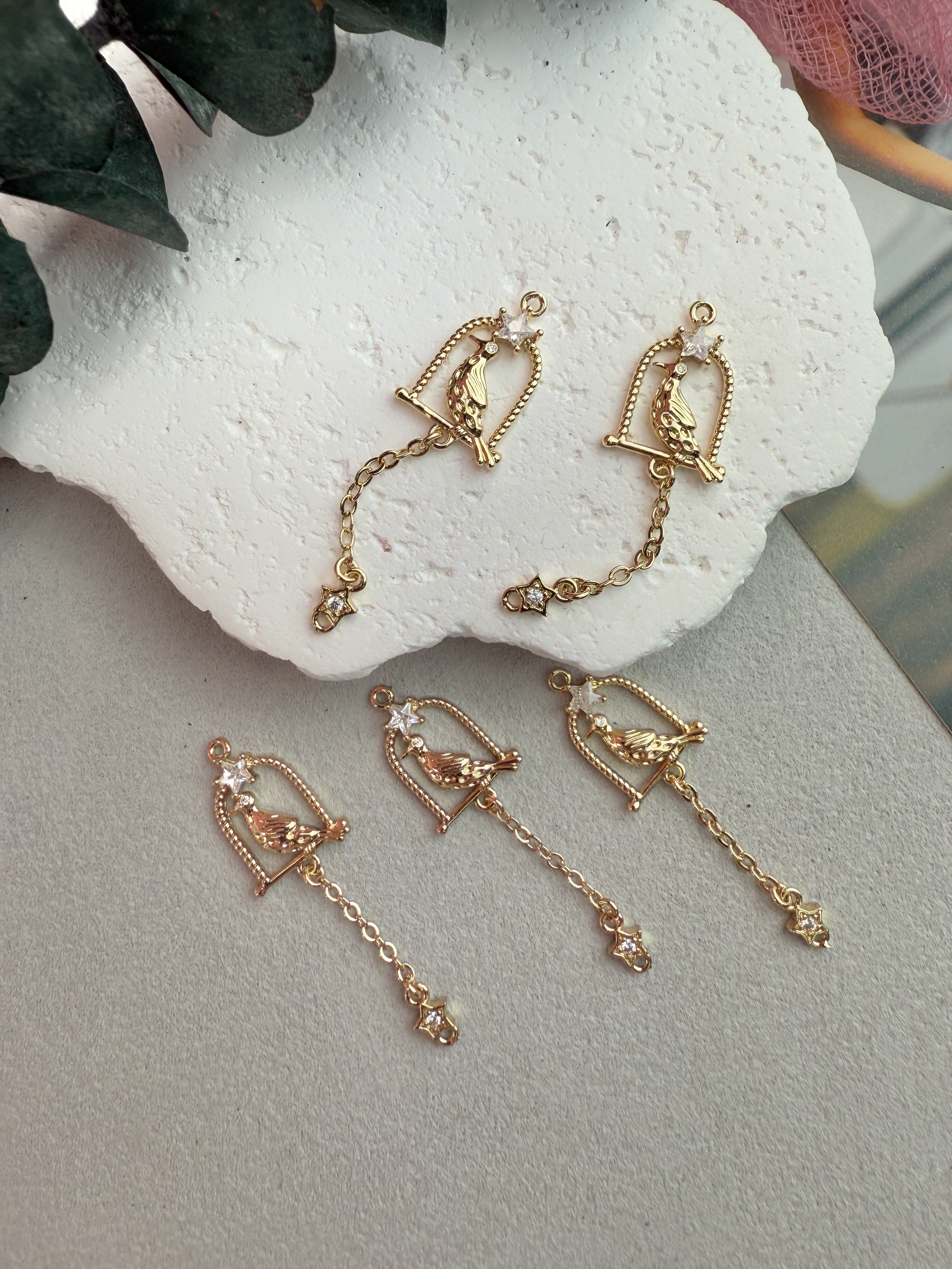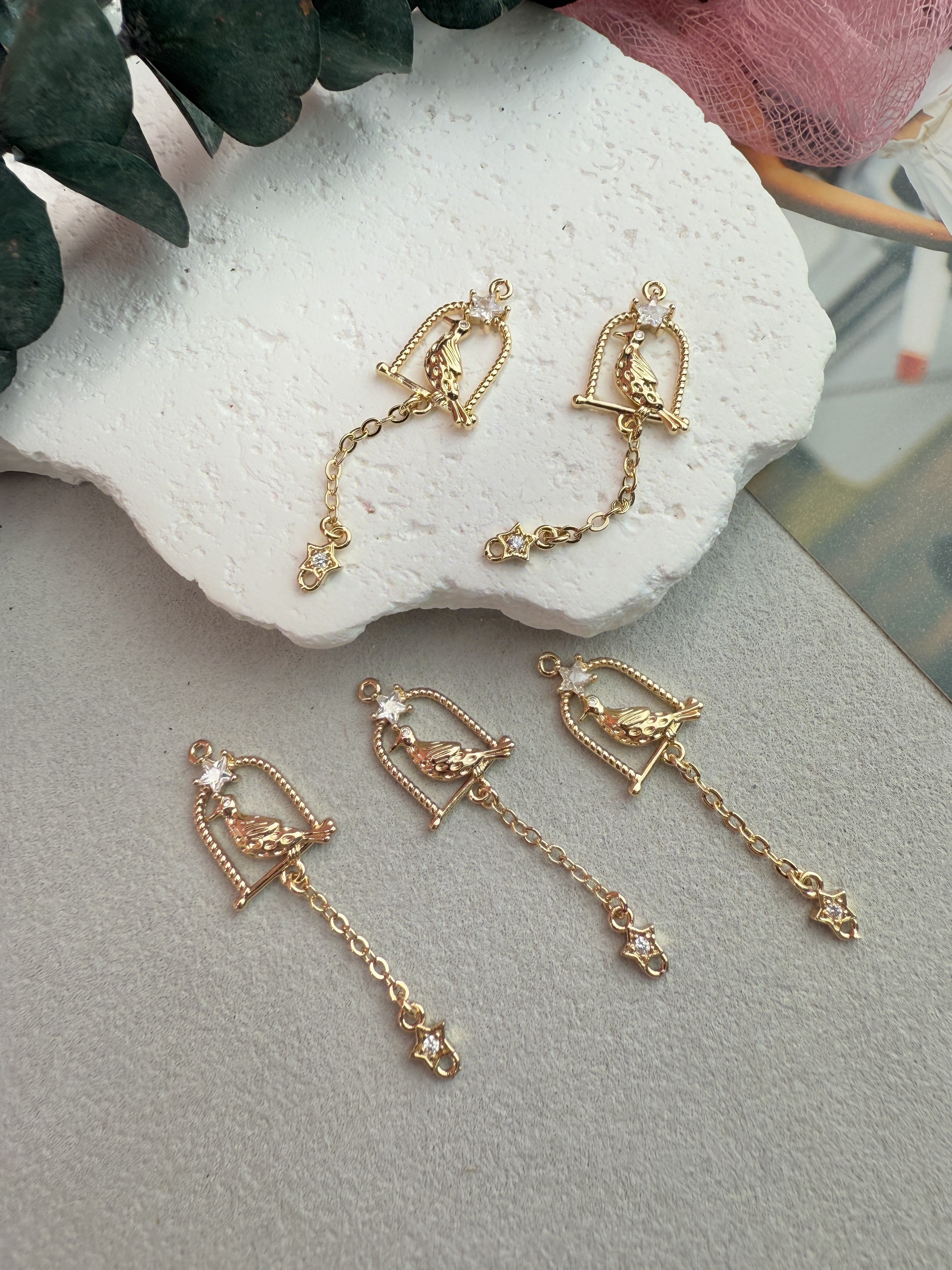 Подвеска в виде сойки с цепочкой и фианитами для создания украшений ручной работы. Гипоаллергенная фурнитура для сборки украшений.