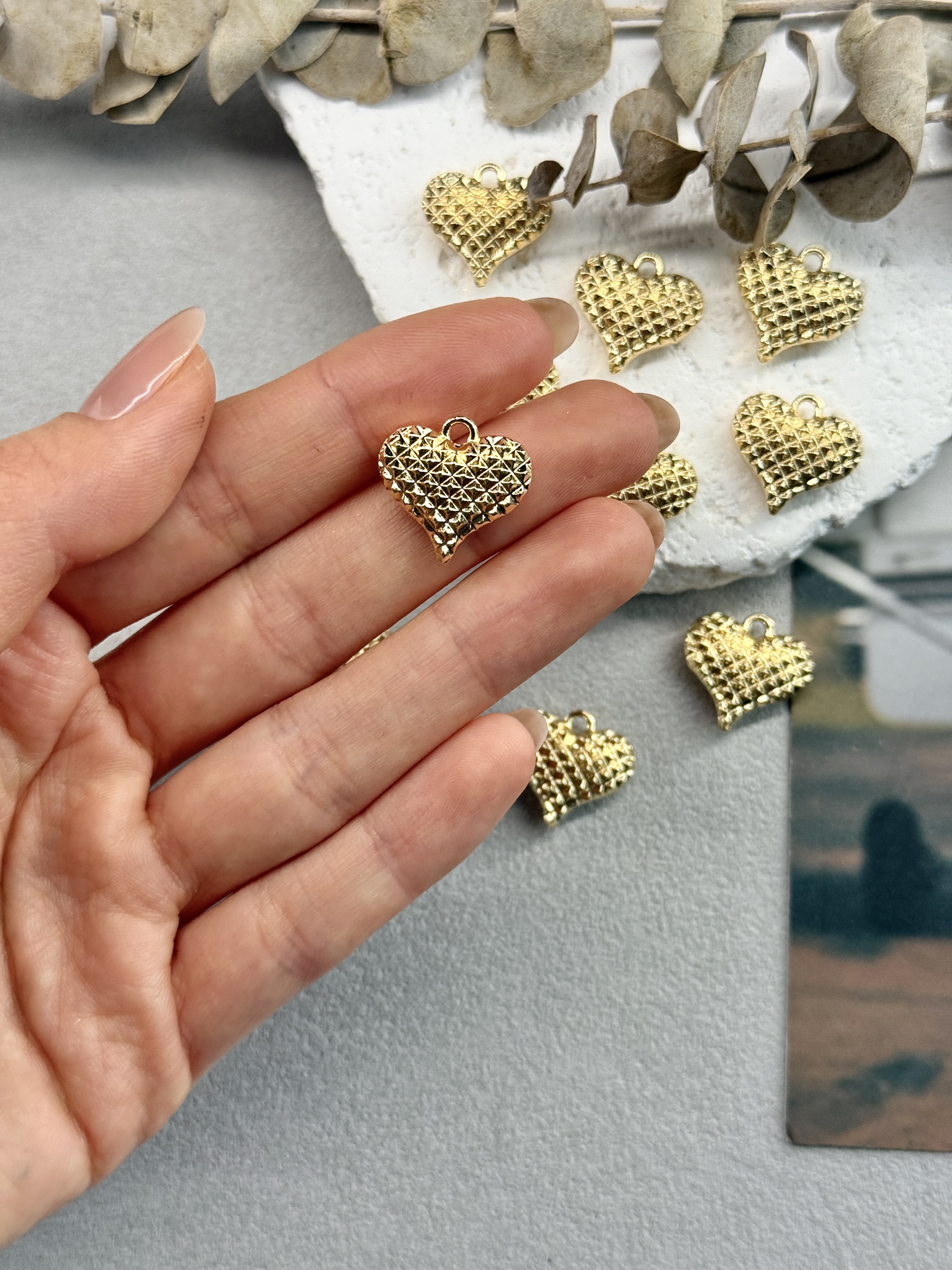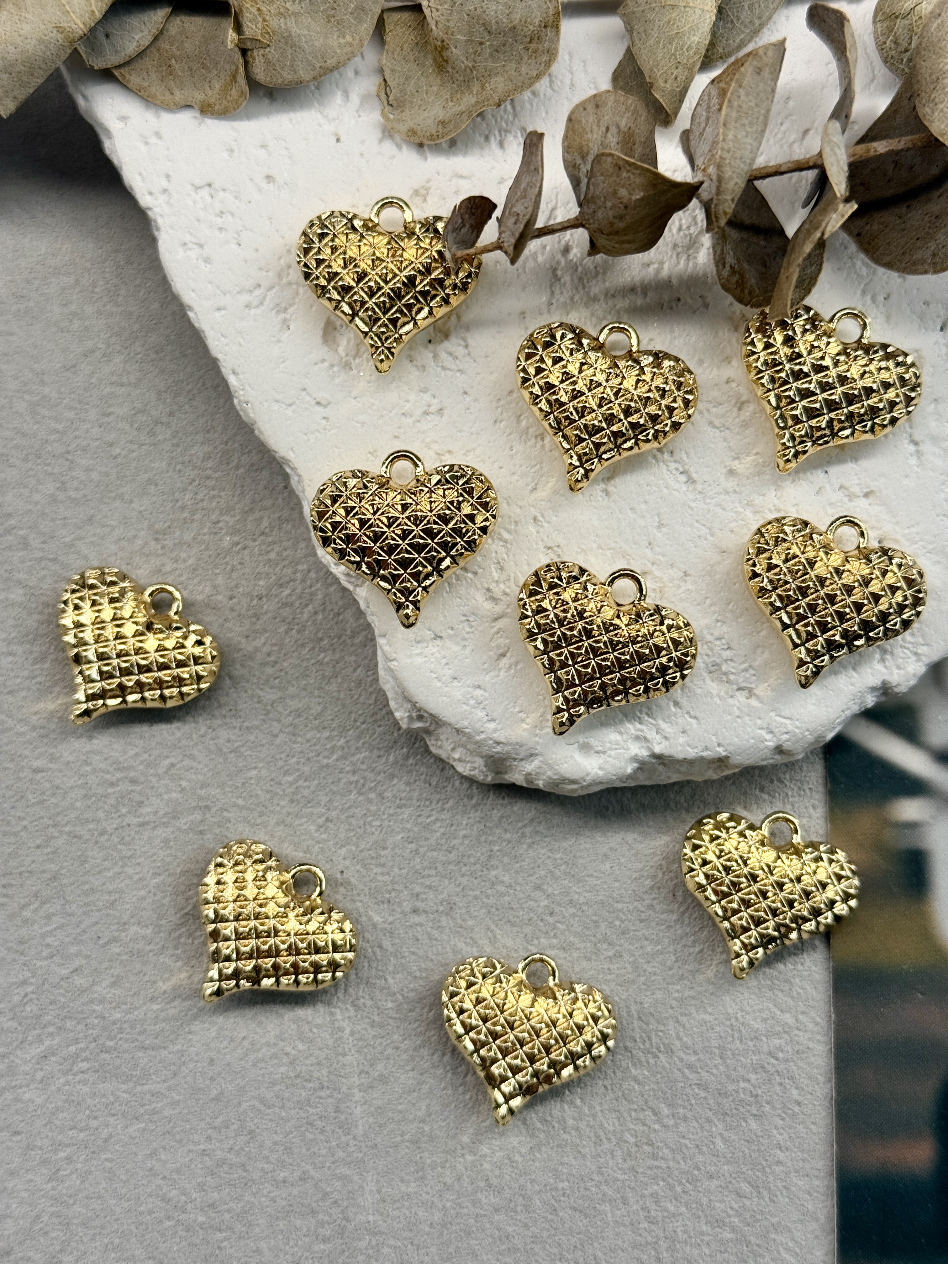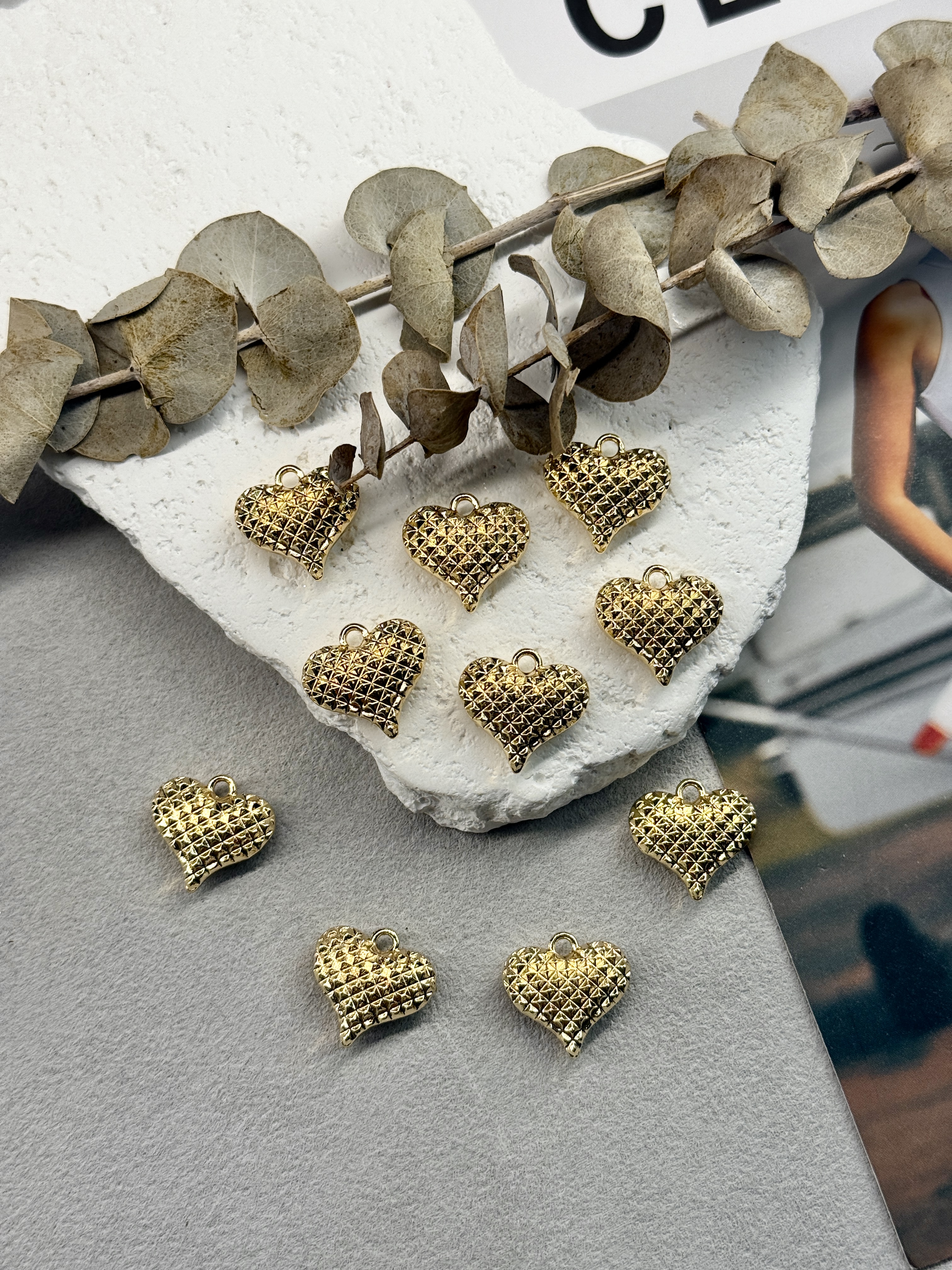 Подвеска "Стёганое сердце" 17*18 мм, позолота 14к