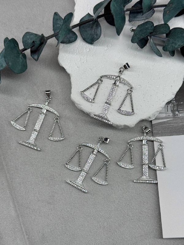 Подвеска в виде подвижных весов с вставками белых фианитов (циркона) для создания украшений ручной работы. Гипоаллергенная фурнитура для сборки украшений.