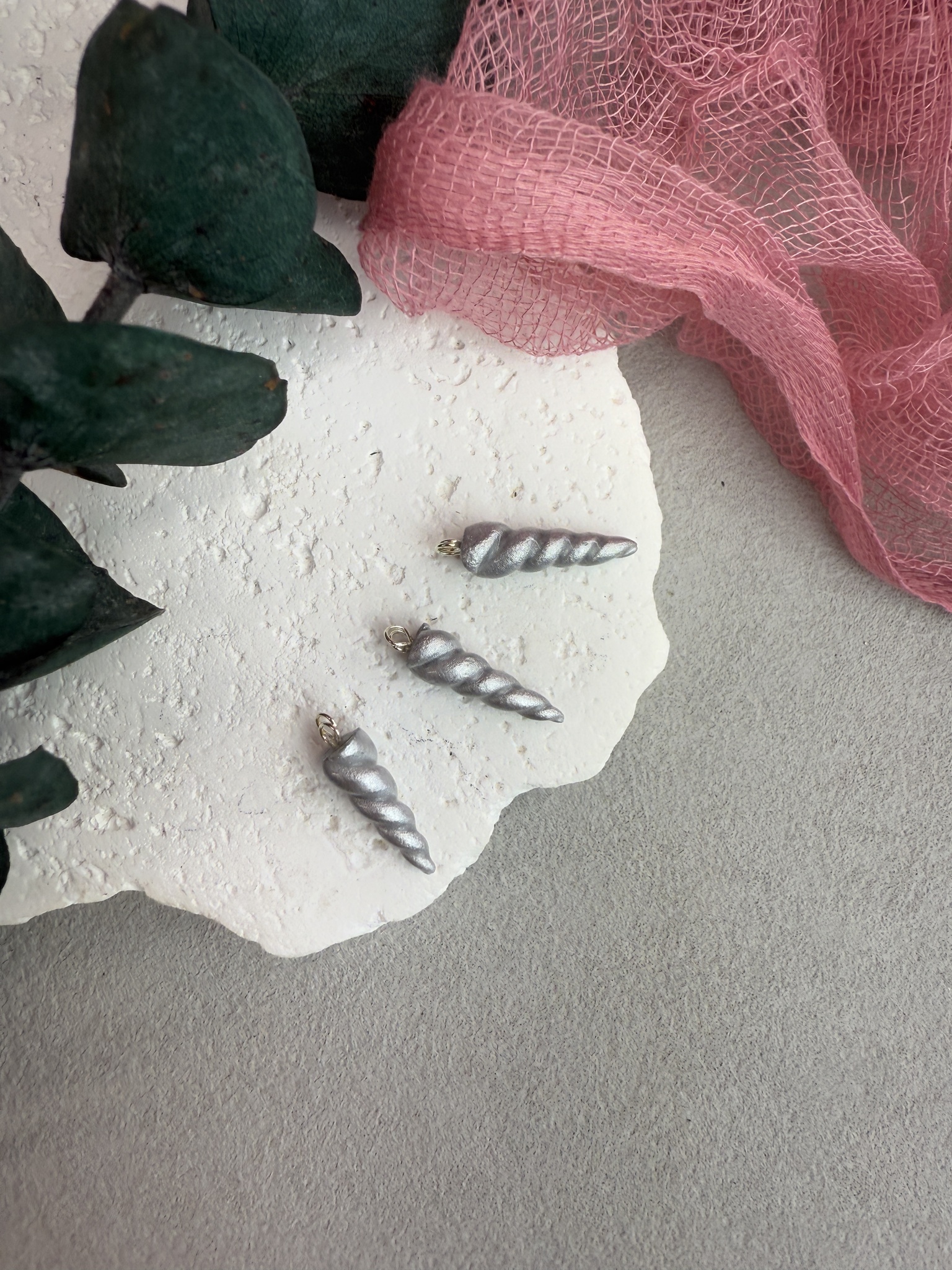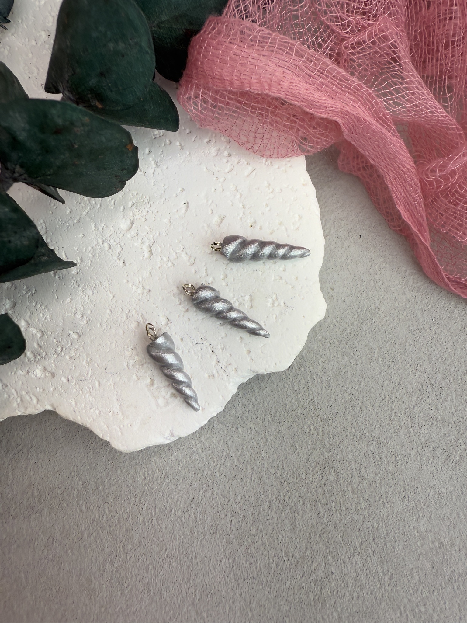 Рог единорога из полимерной глины для броши, (серебро)