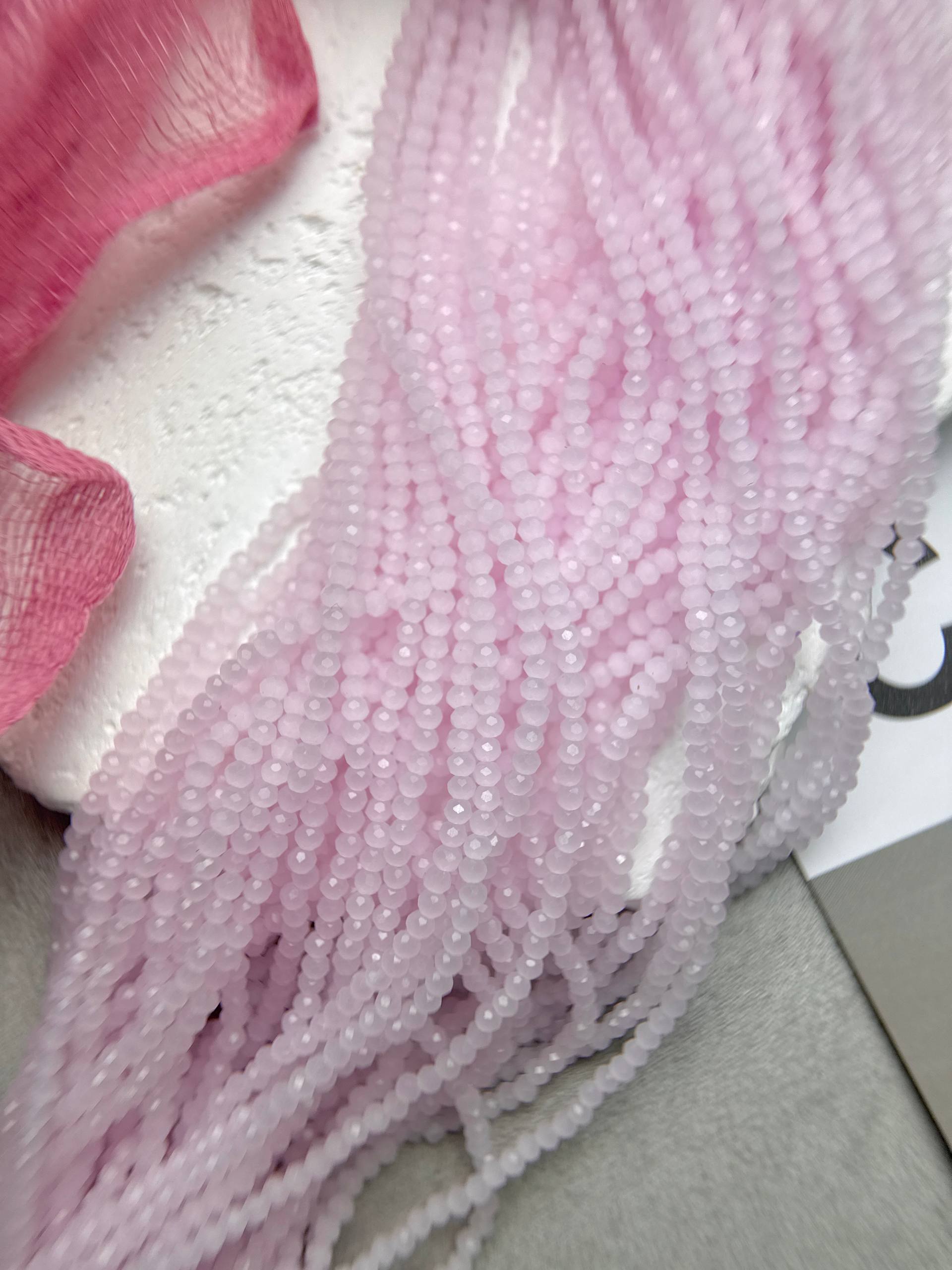 Стеклянные рондели на нити для рукоделия и вышивки 2,5*2 мм, Розовый опал