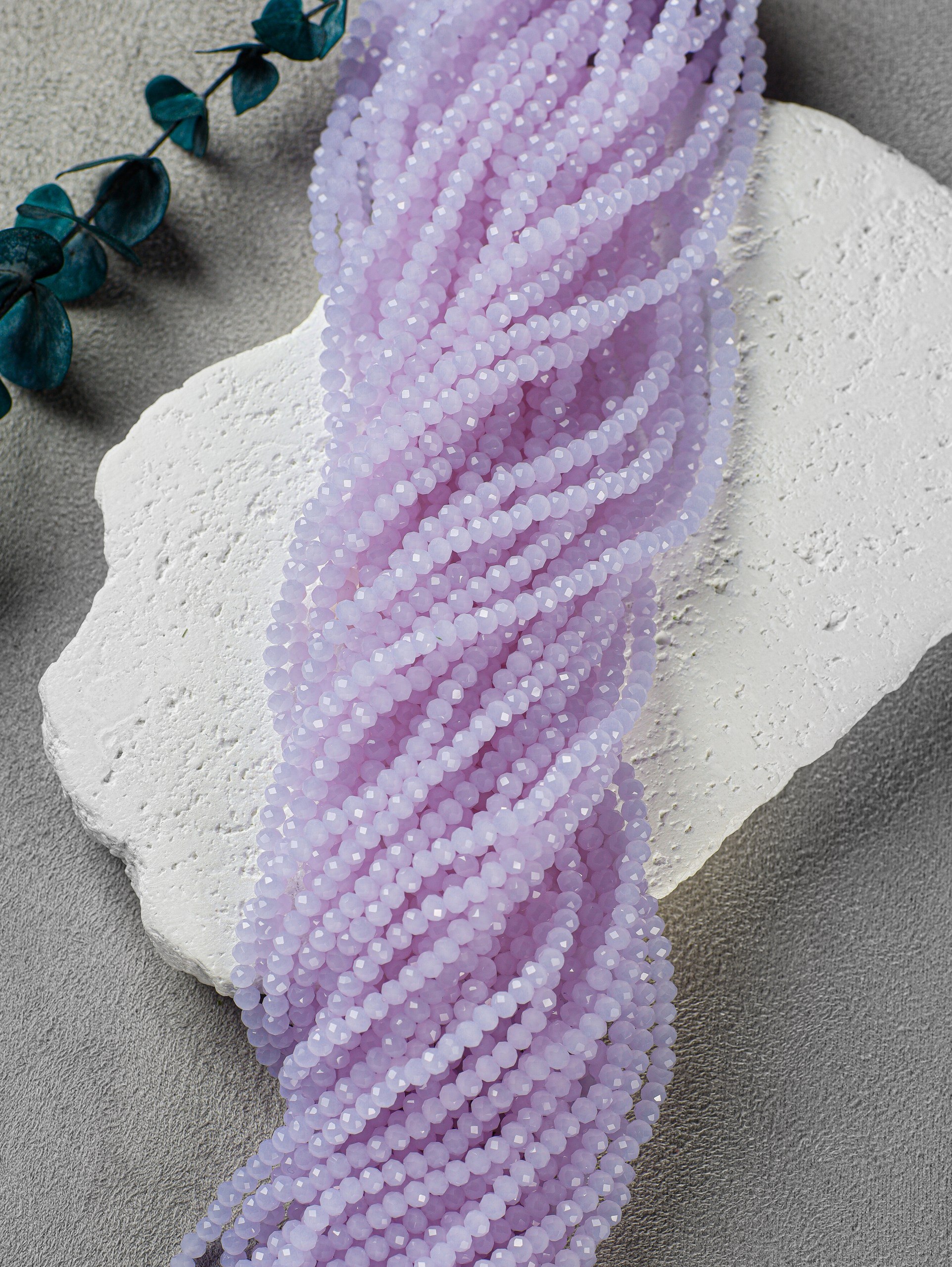 Стеклянные рондели на нити для рукоделия и вышивки 3 мм, фиалка опал