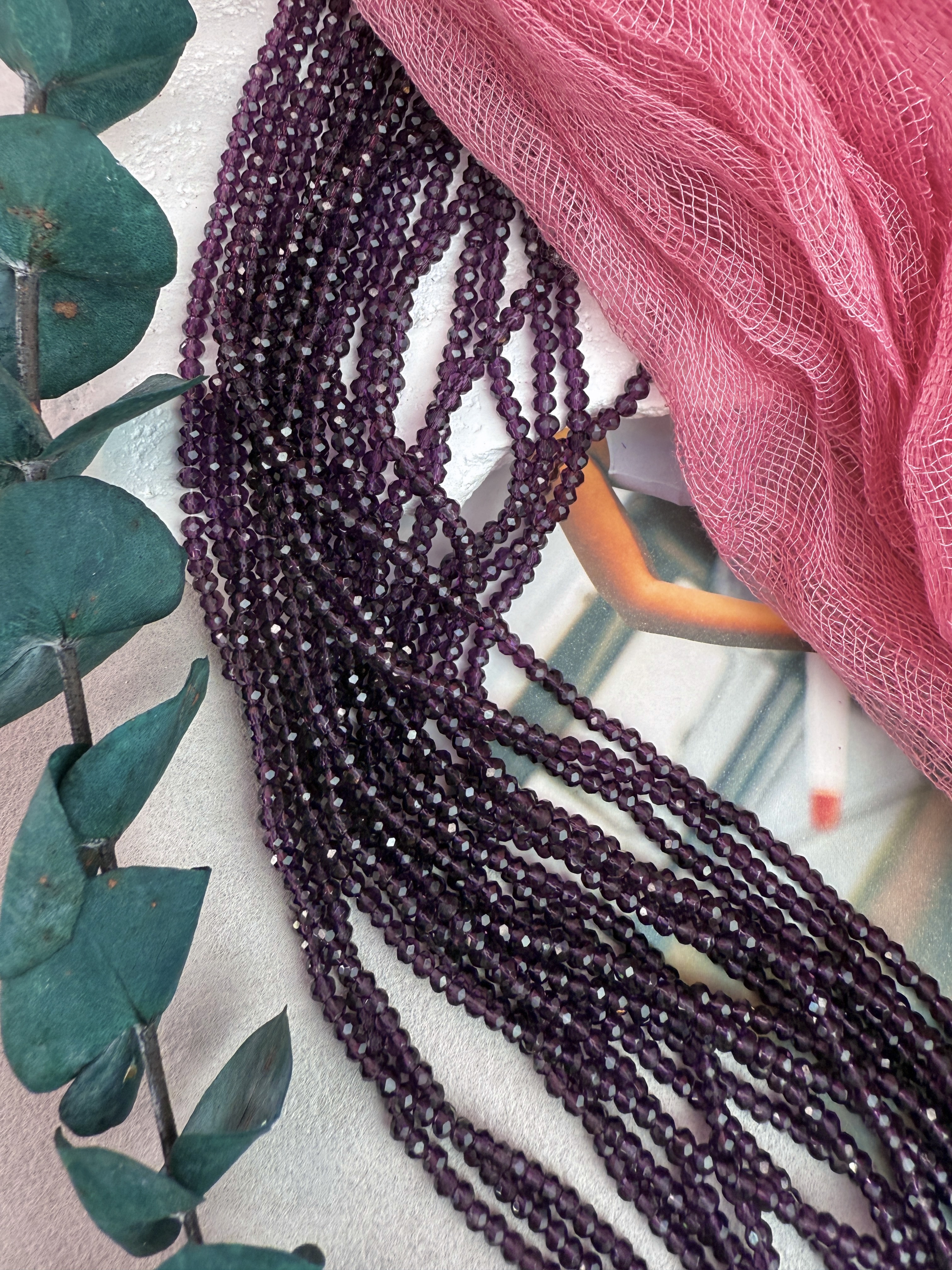 Стеклянные рондели на нити для рукоделия и вышивки 3,5*2 мм, виноград