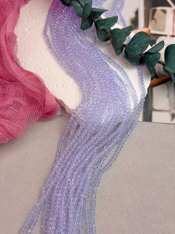 Стеклянные рондели на нити для рукоделия и вышивки 3,5*2 мм, фиалка
