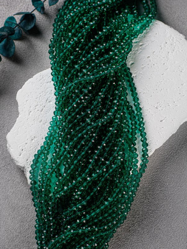 Стеклянные рондели на нити для рукоделия и вышивки 4 мм, нефрит