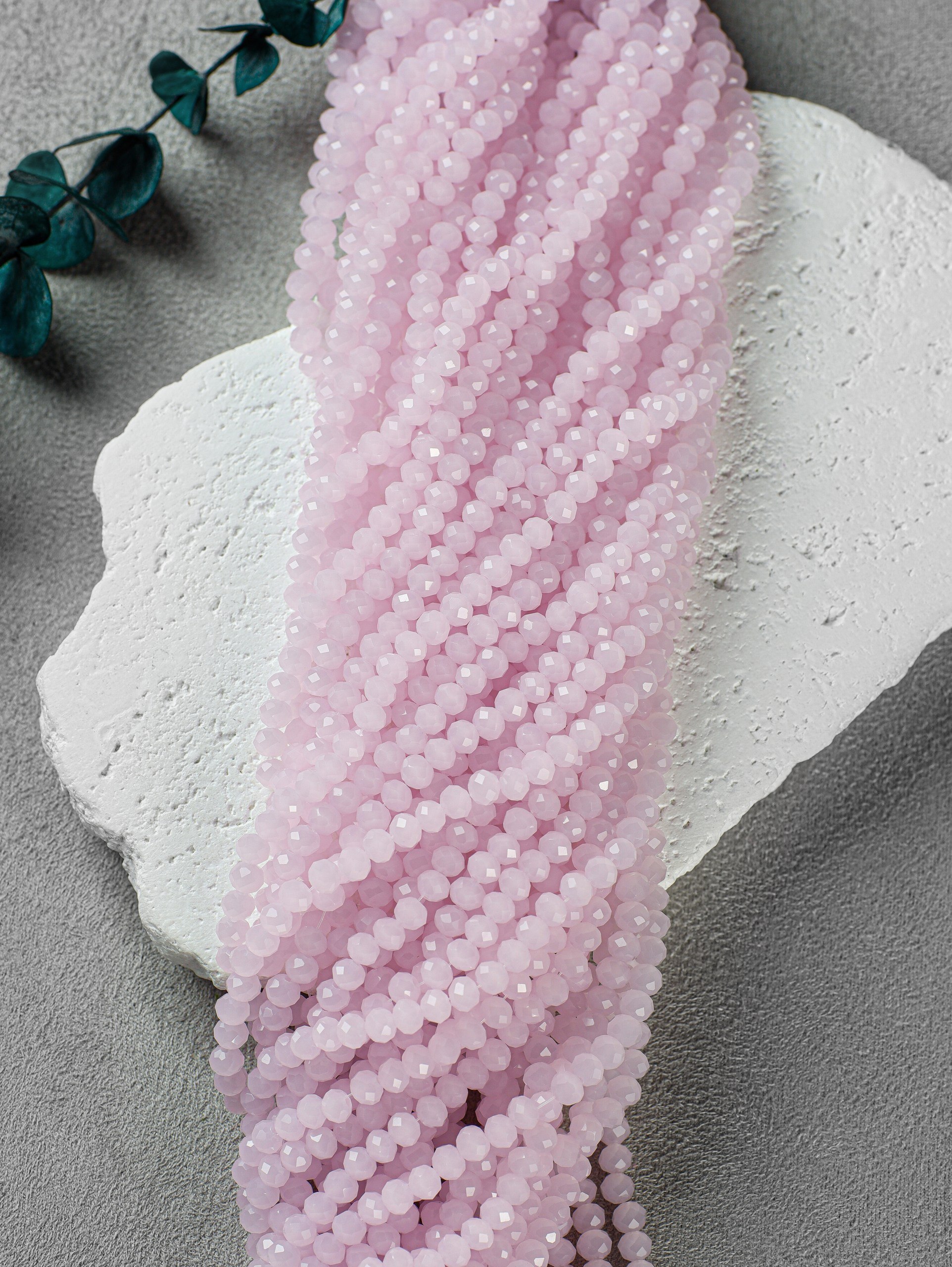 Стеклянные рондели на нити для рукоделия и вышивки 4 мм, Розовый опал