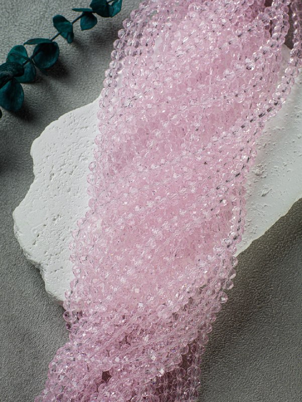 Стеклянные рондели на нити для рукоделия и вышивки 6 мм, розовый прозрачный